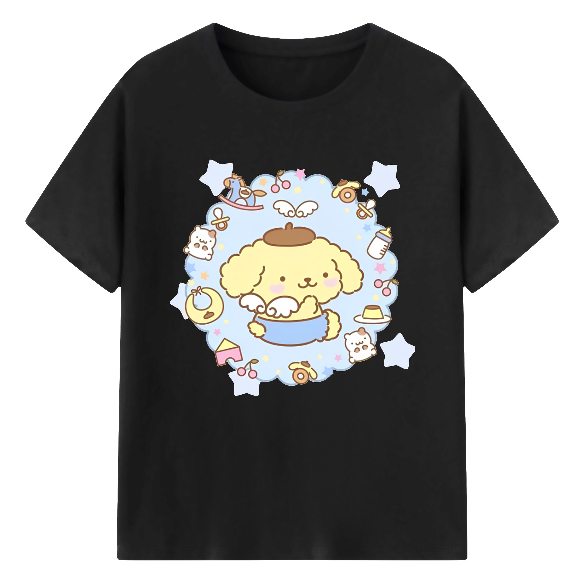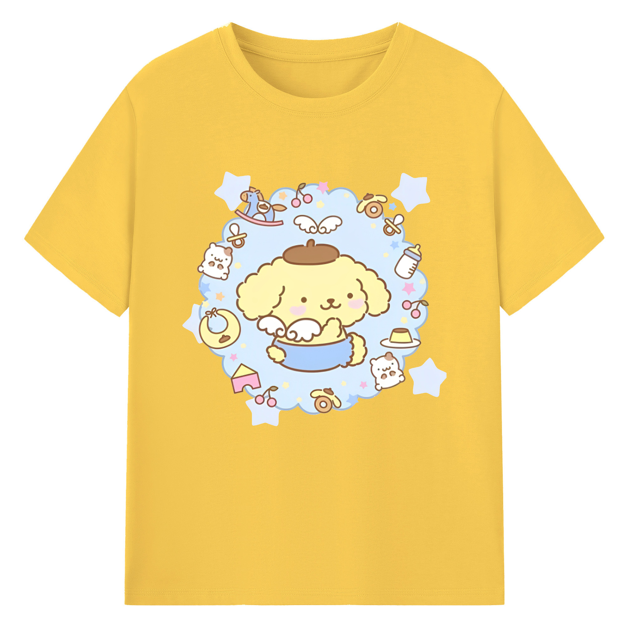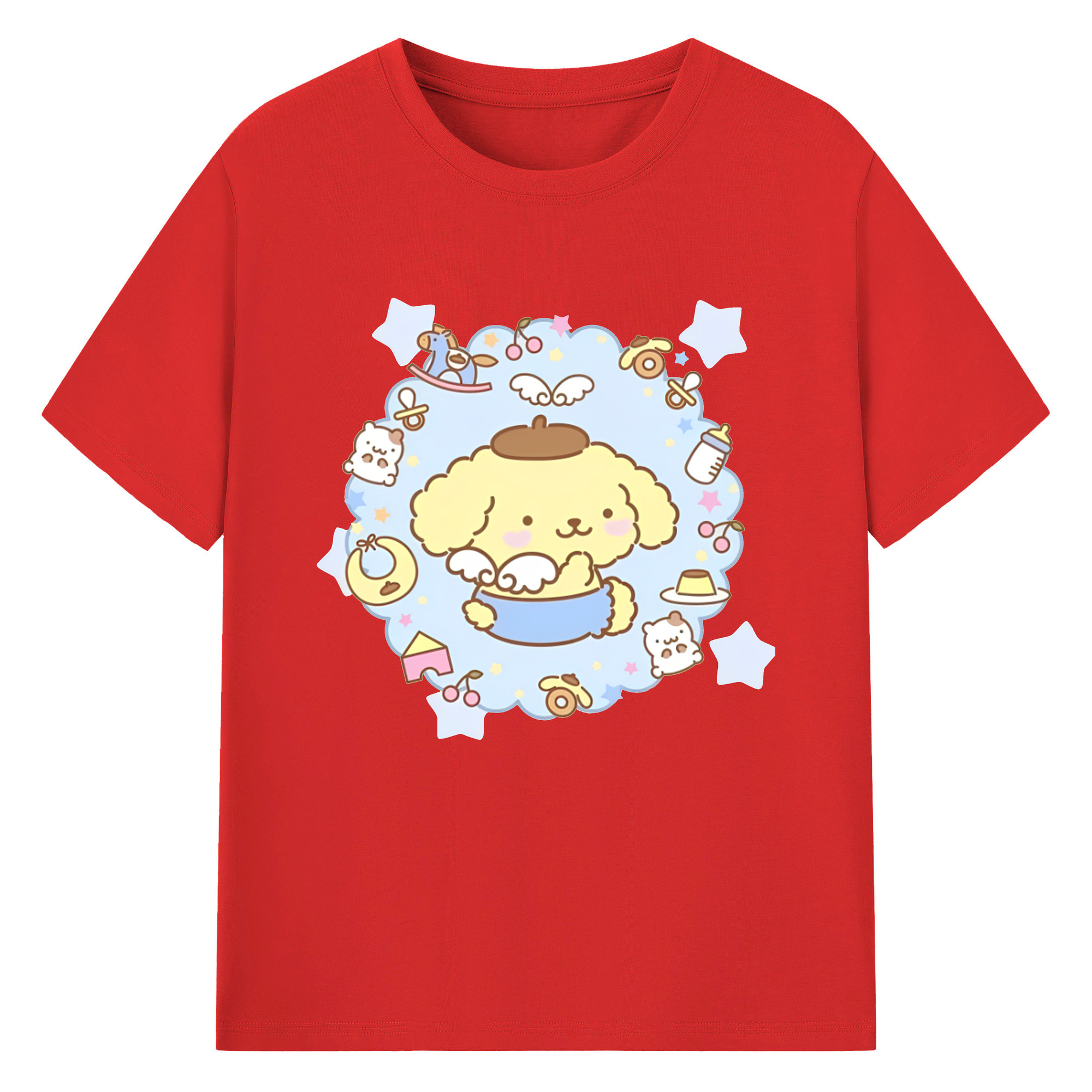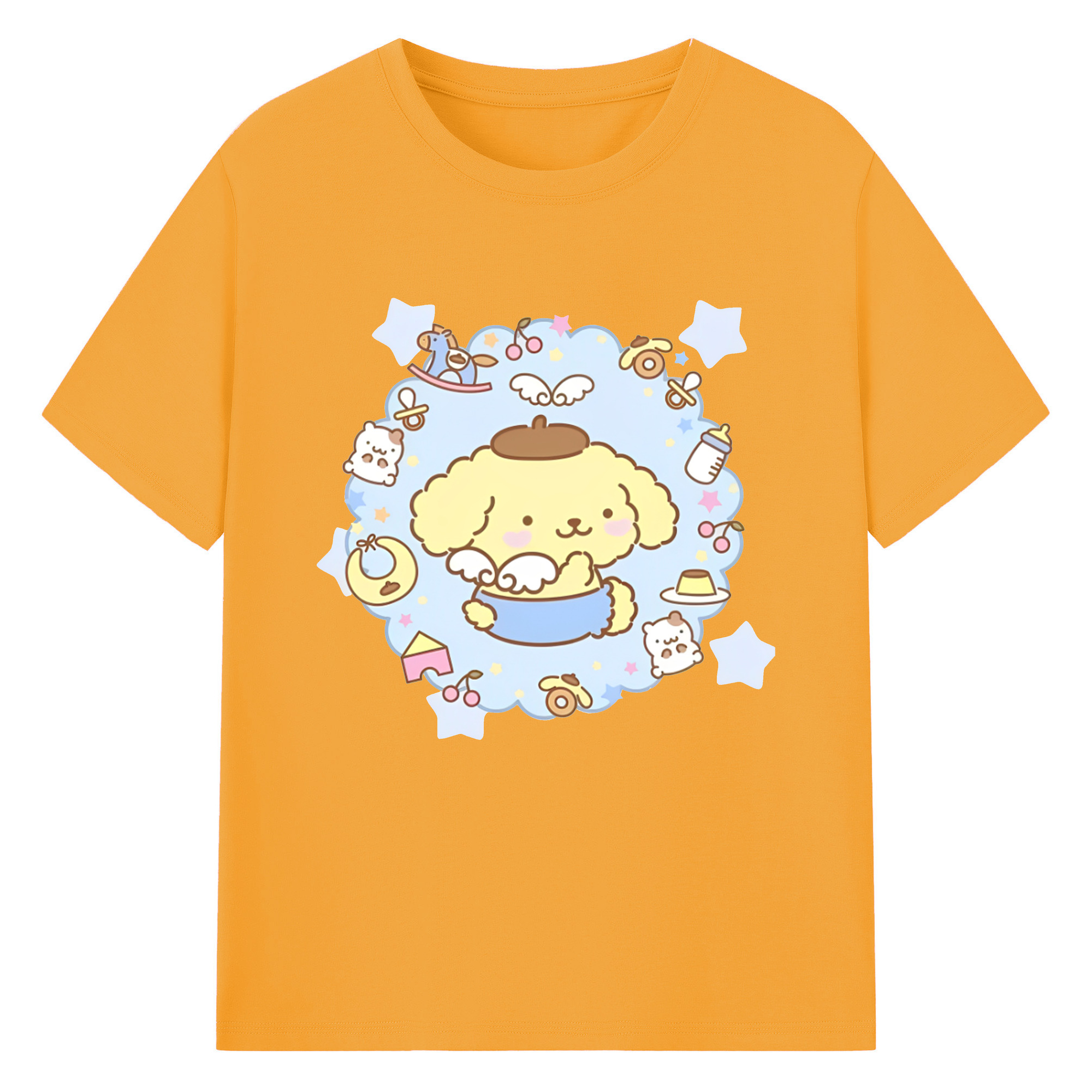 ユニークなデザインのポムポムプリン - 綿100% キッズTシャツ ・ フロントプリント ・ 快適 通気性 ・ スポーツ カジュアル 散歩用