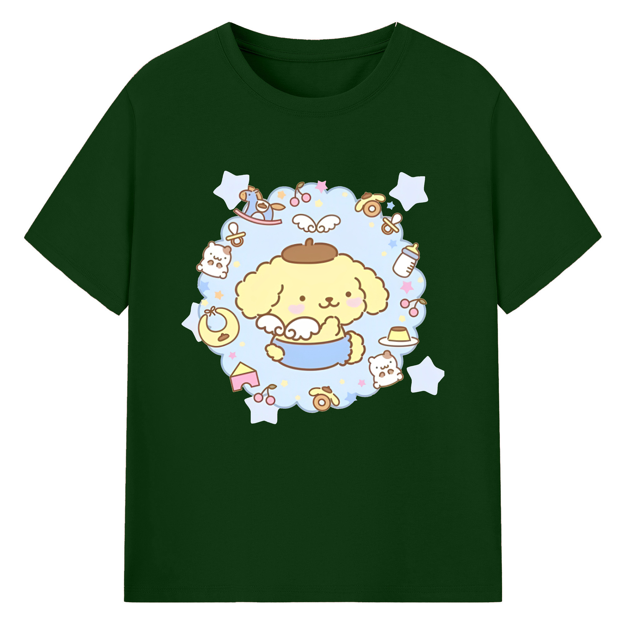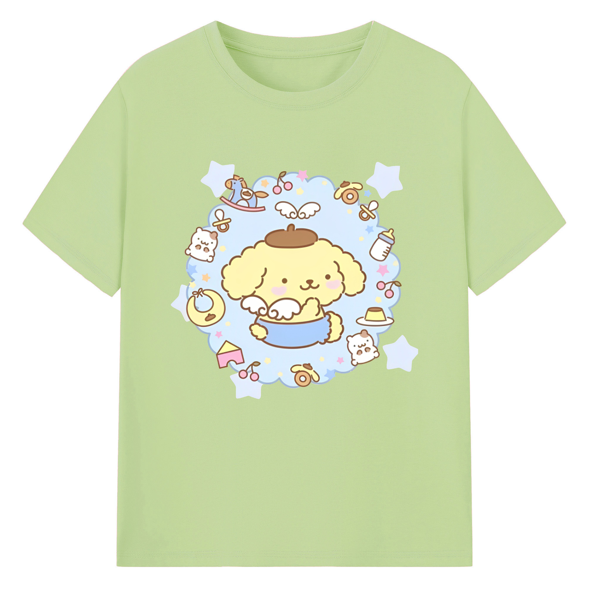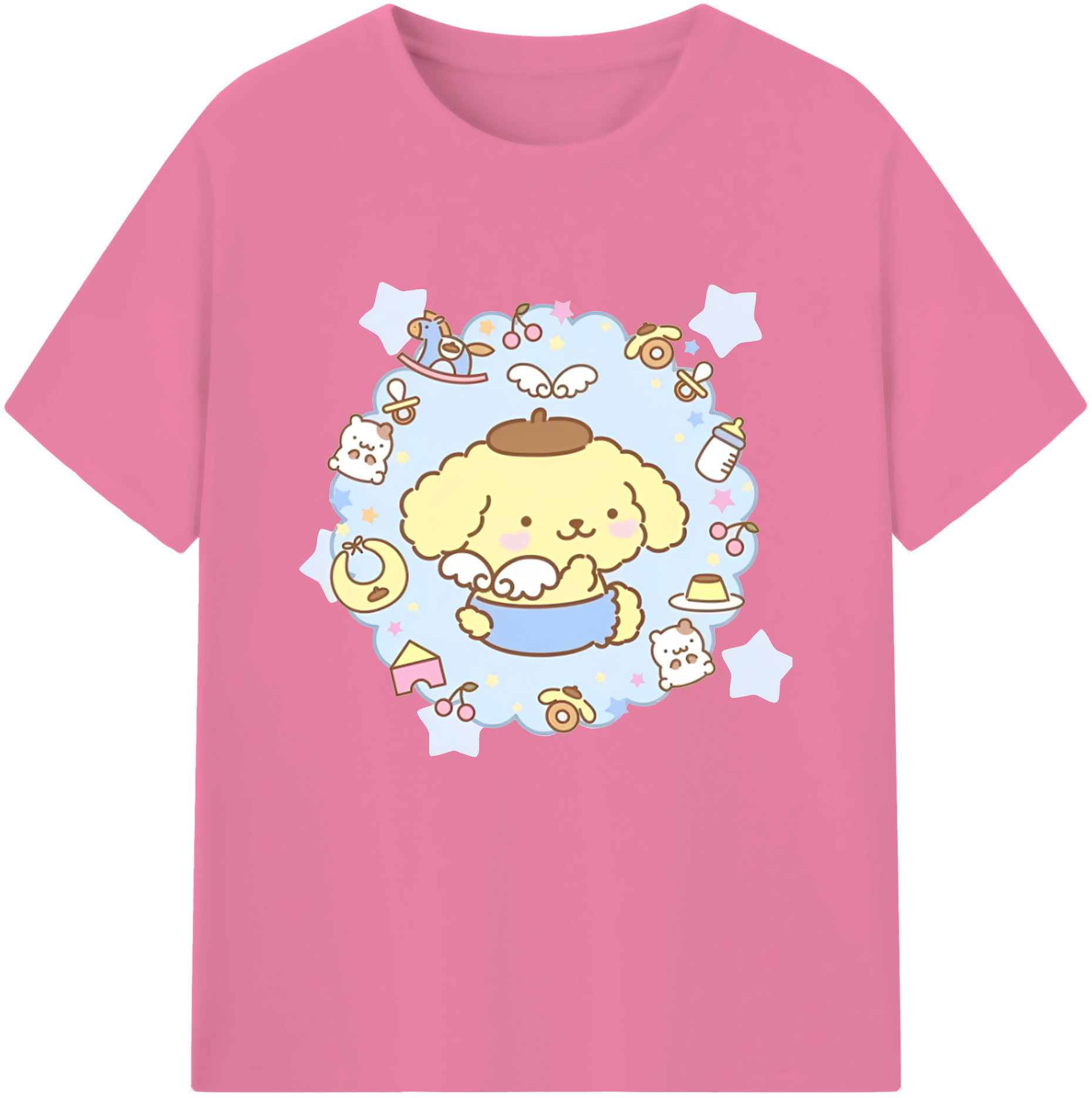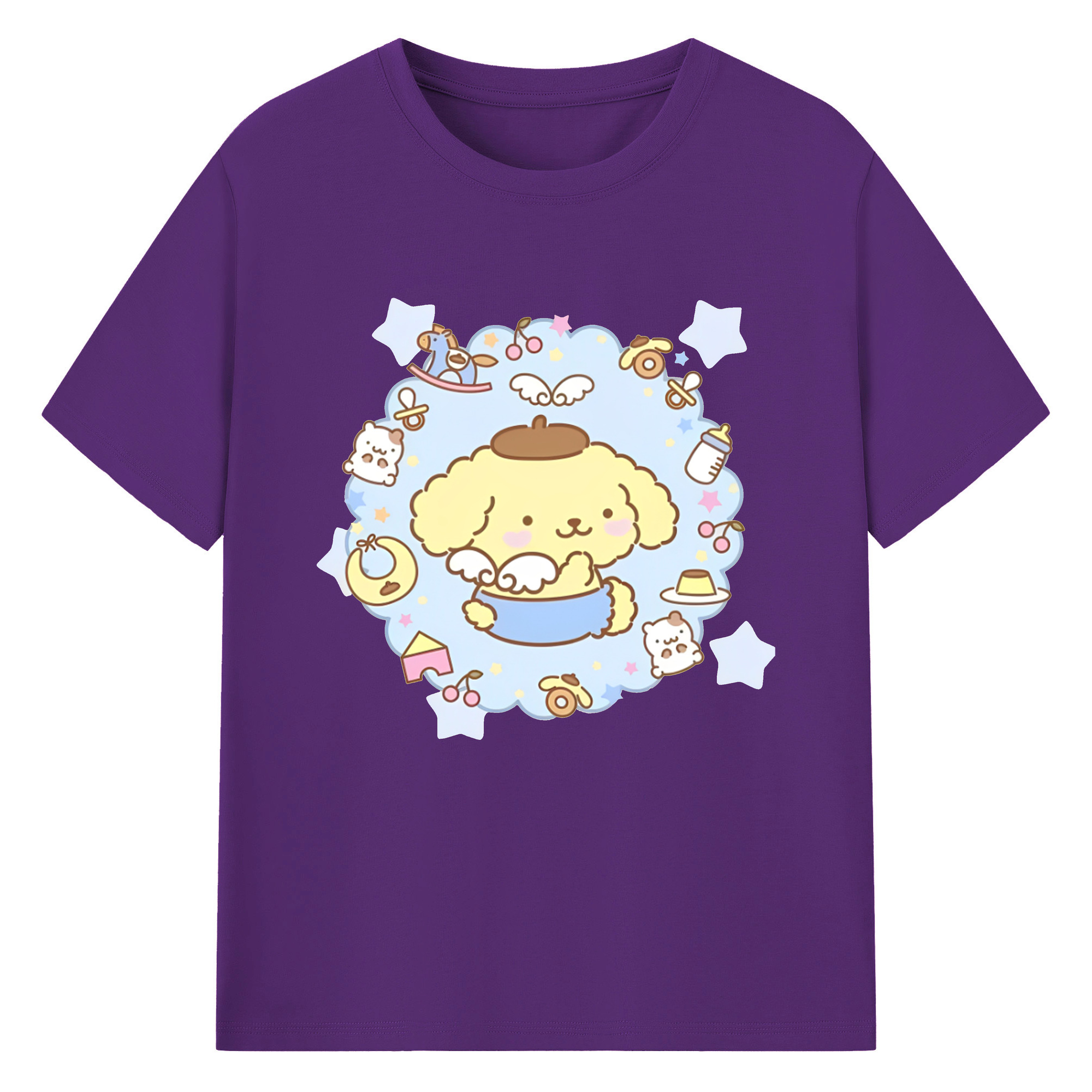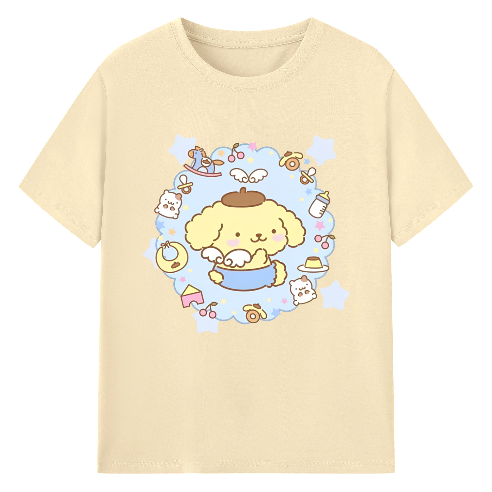 ユニークなデザインのポムポムプリン - 綿100% キッズTシャツ ・ フロントプリント ・ 快適 通気性 ・ スポーツ カジュアル 散歩用