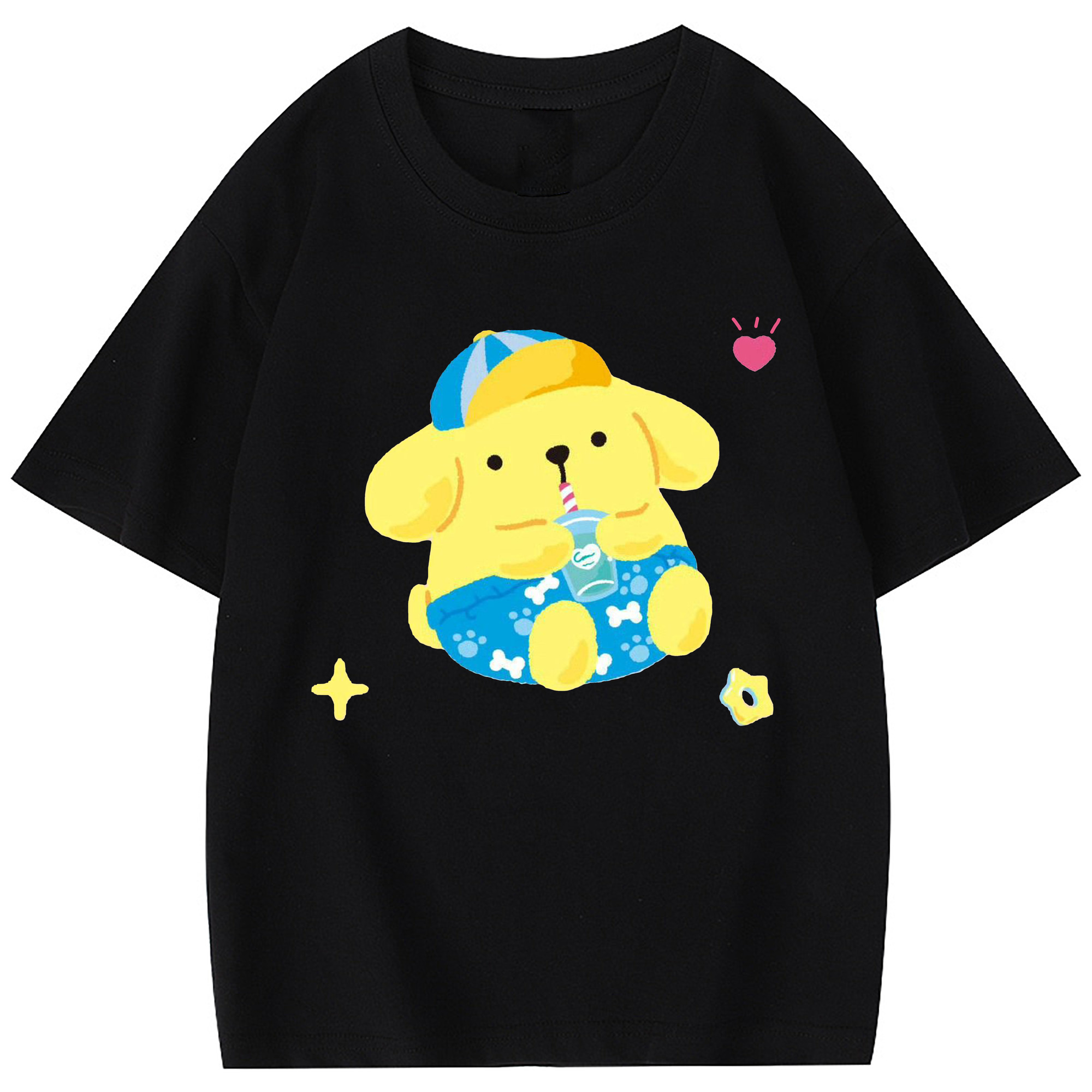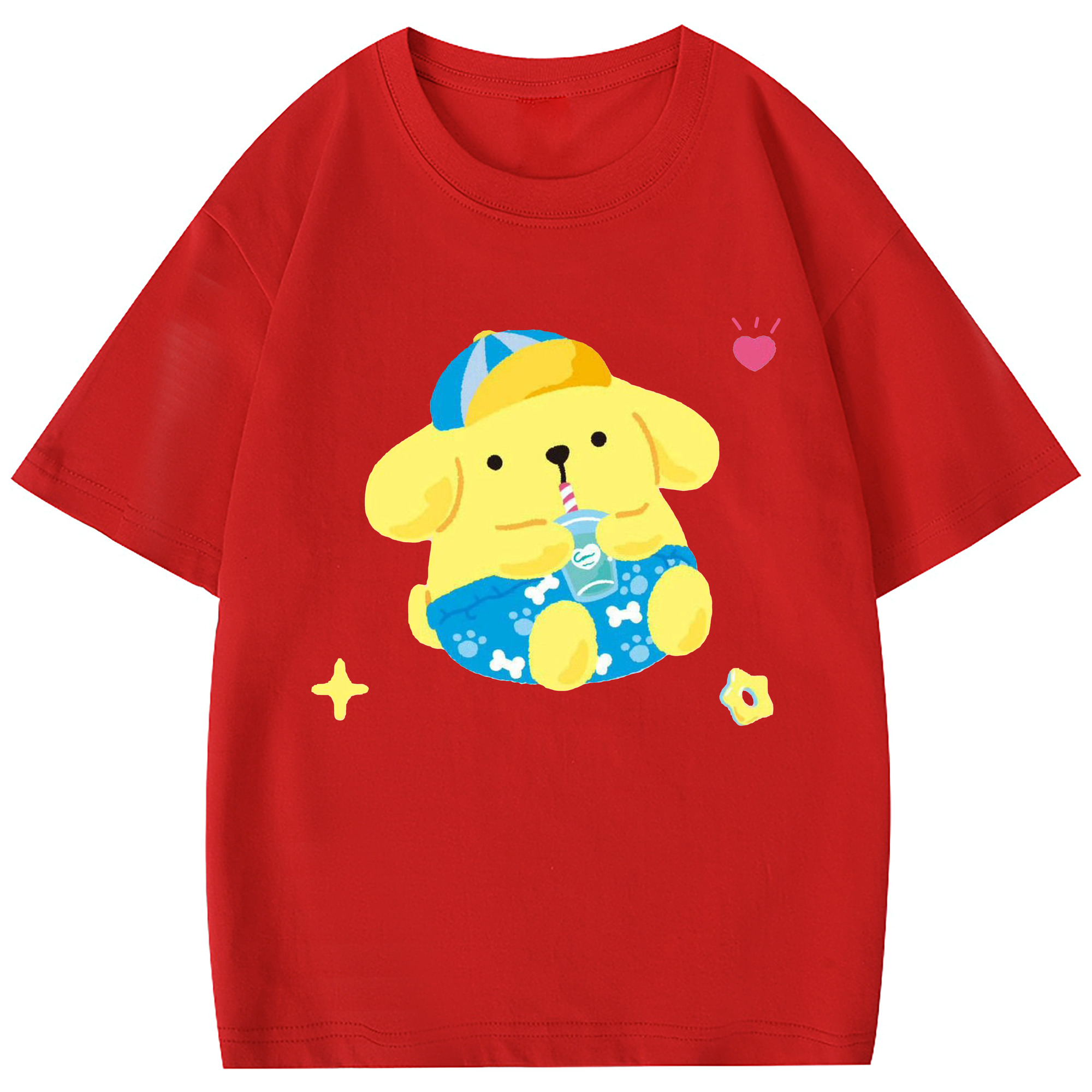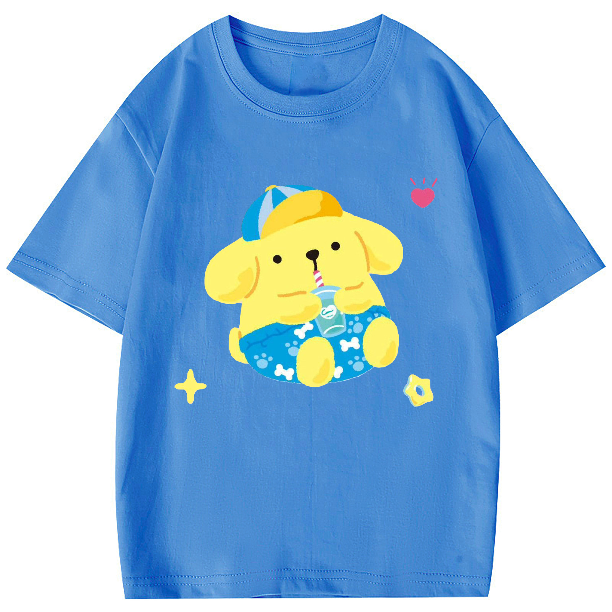 ユニークなデザインのポムポムプリン - 綿100% 半袖Tシャツ ・ フロントプリント ・ 快適 通気性 ・ 日常使い 散歩 スポーツ用