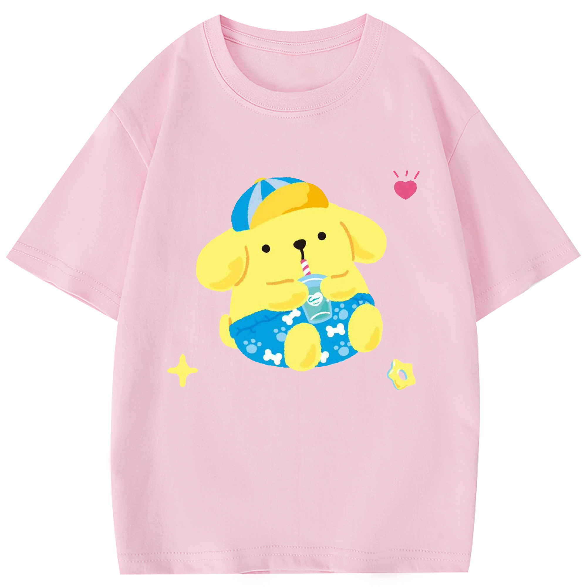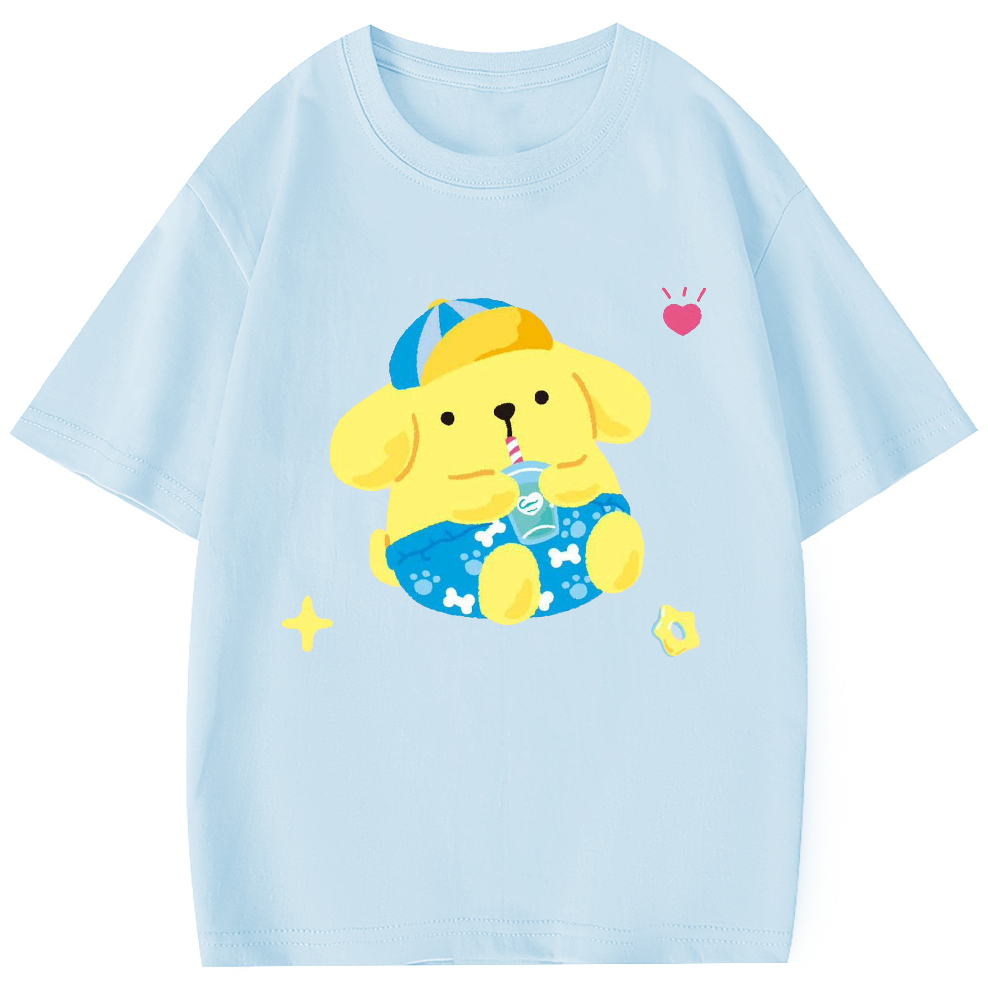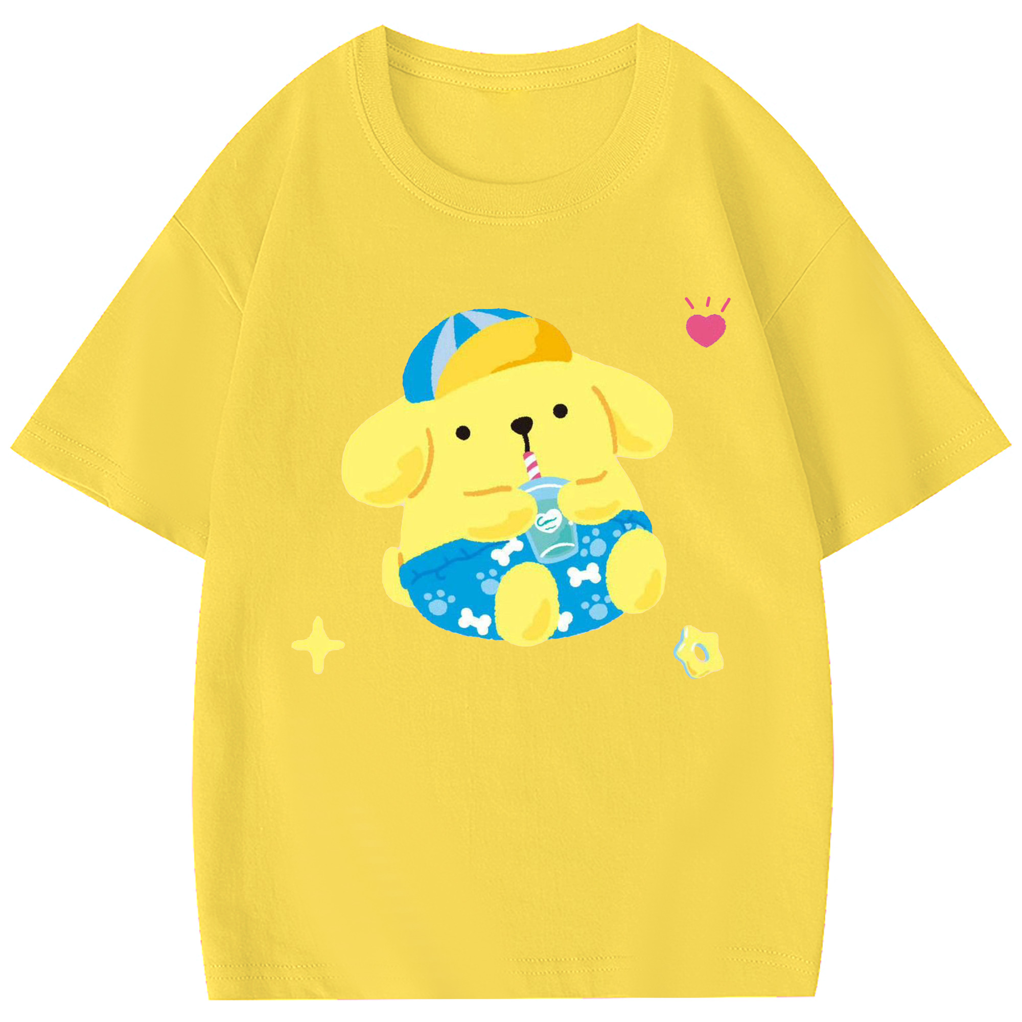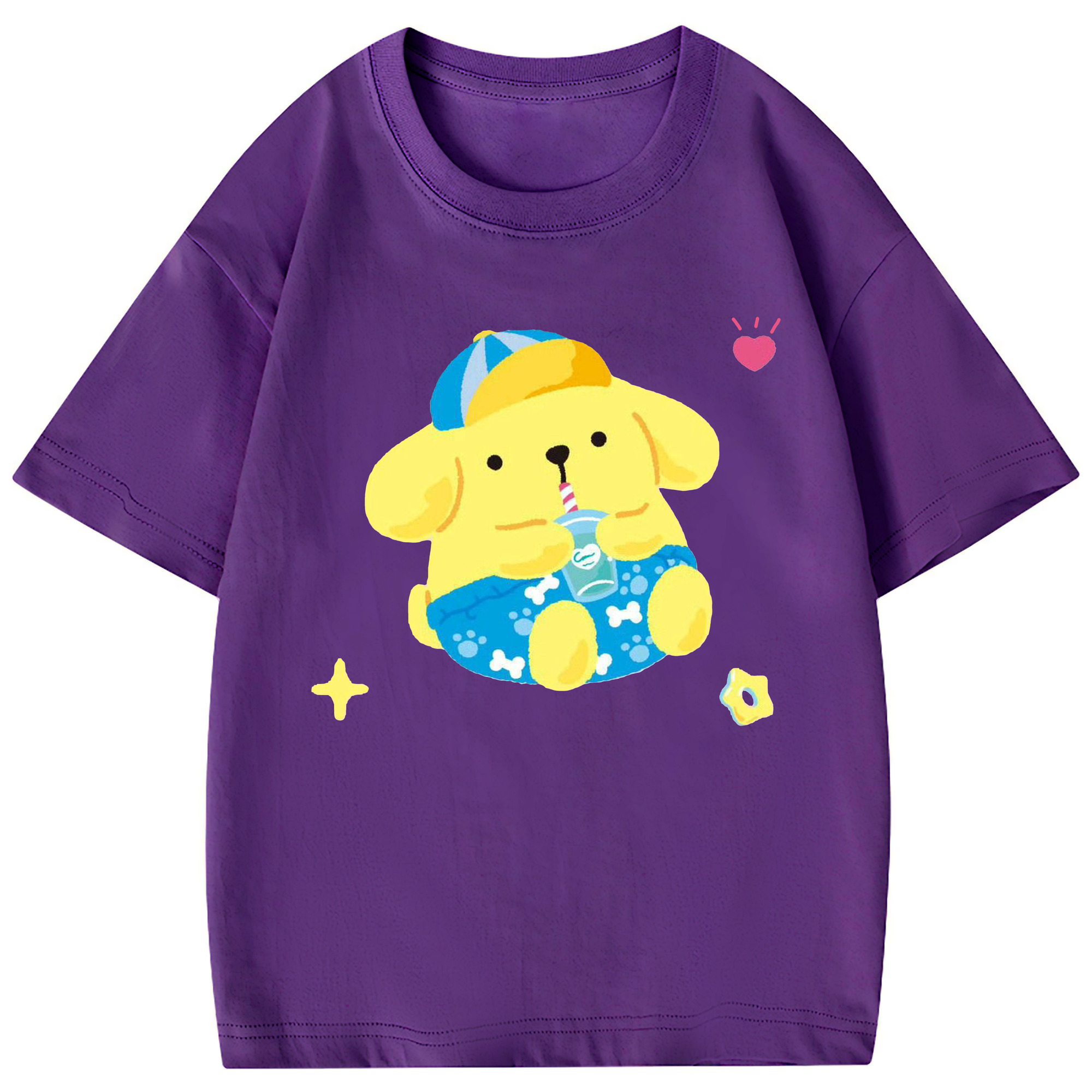 ユニークなデザインのポムポムプリン - 綿100% 半袖Tシャツ ・ フロントプリント ・ 快適 通気性 ・ 日常使い 散歩 スポーツ用