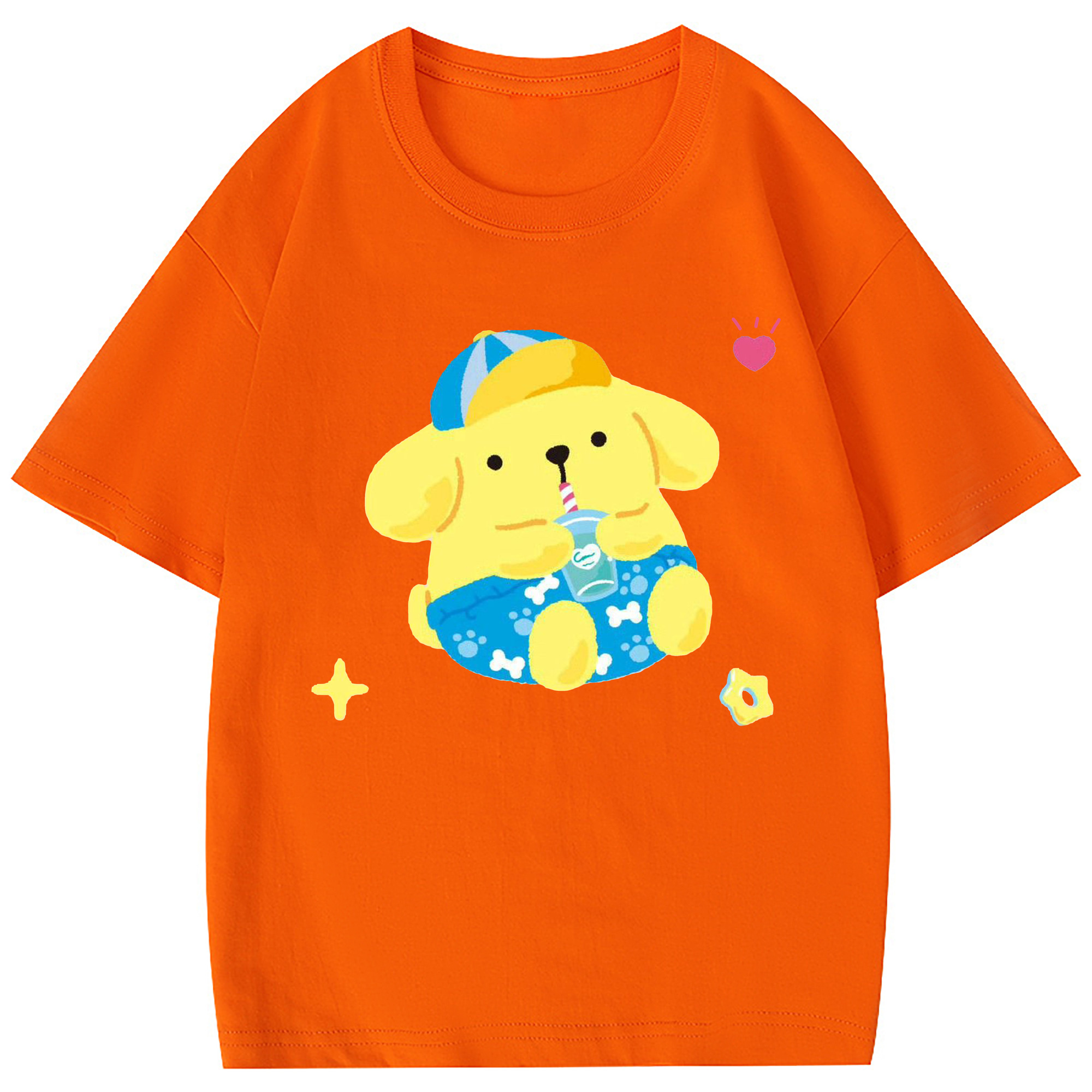 ユニークなデザインのポムポムプリン - 綿100% キッズTシャツ ・ フロントプリント ・ 快適 通気性 ・ スポーツ カジュアル 散歩用