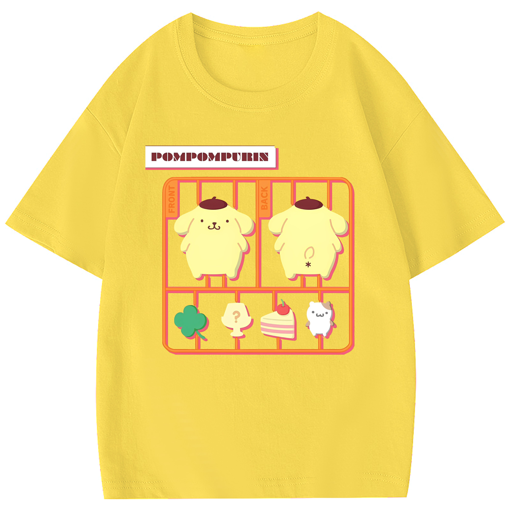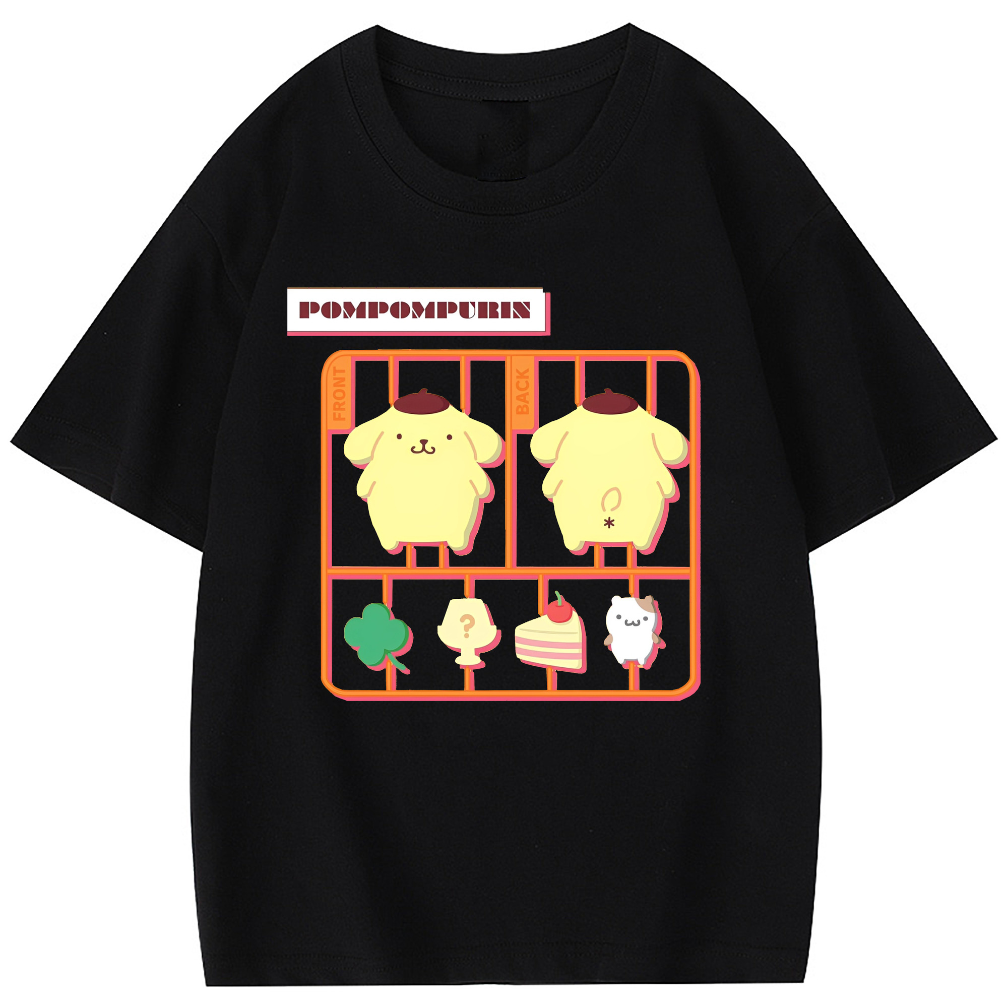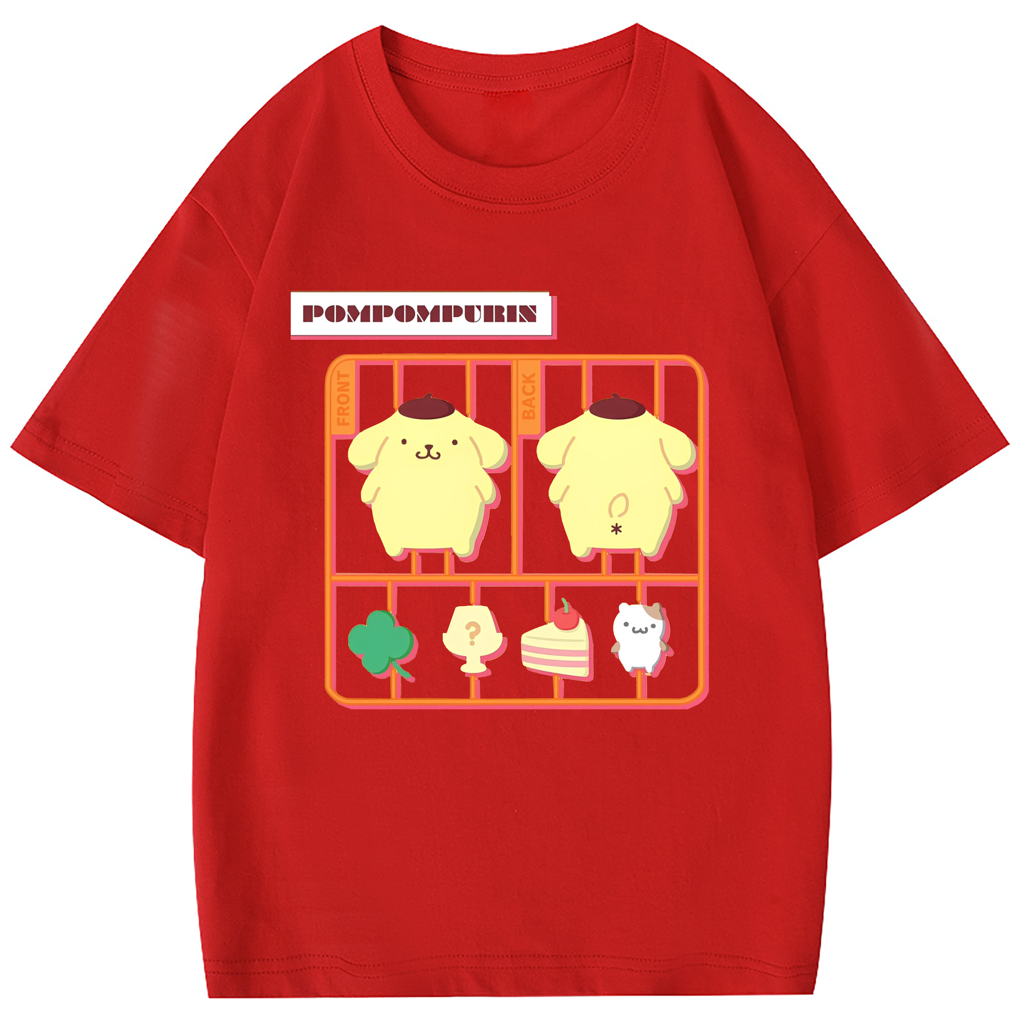 ユニークなデザインのポムポムプリン - 綿100% 半袖Tシャツ ・ フロントプリント ・ 快適 通気性 ・ 日常使い 散歩 スポーツ用