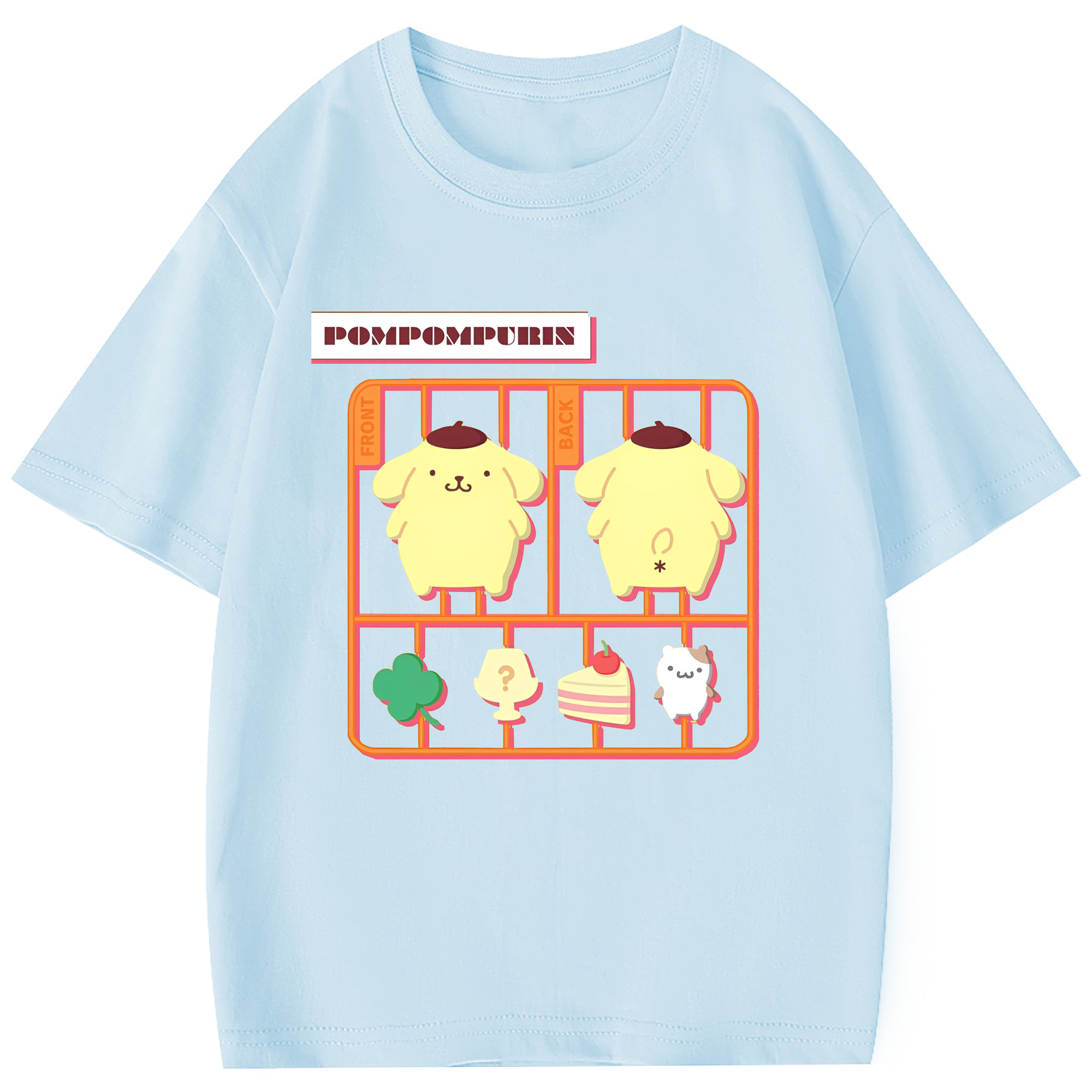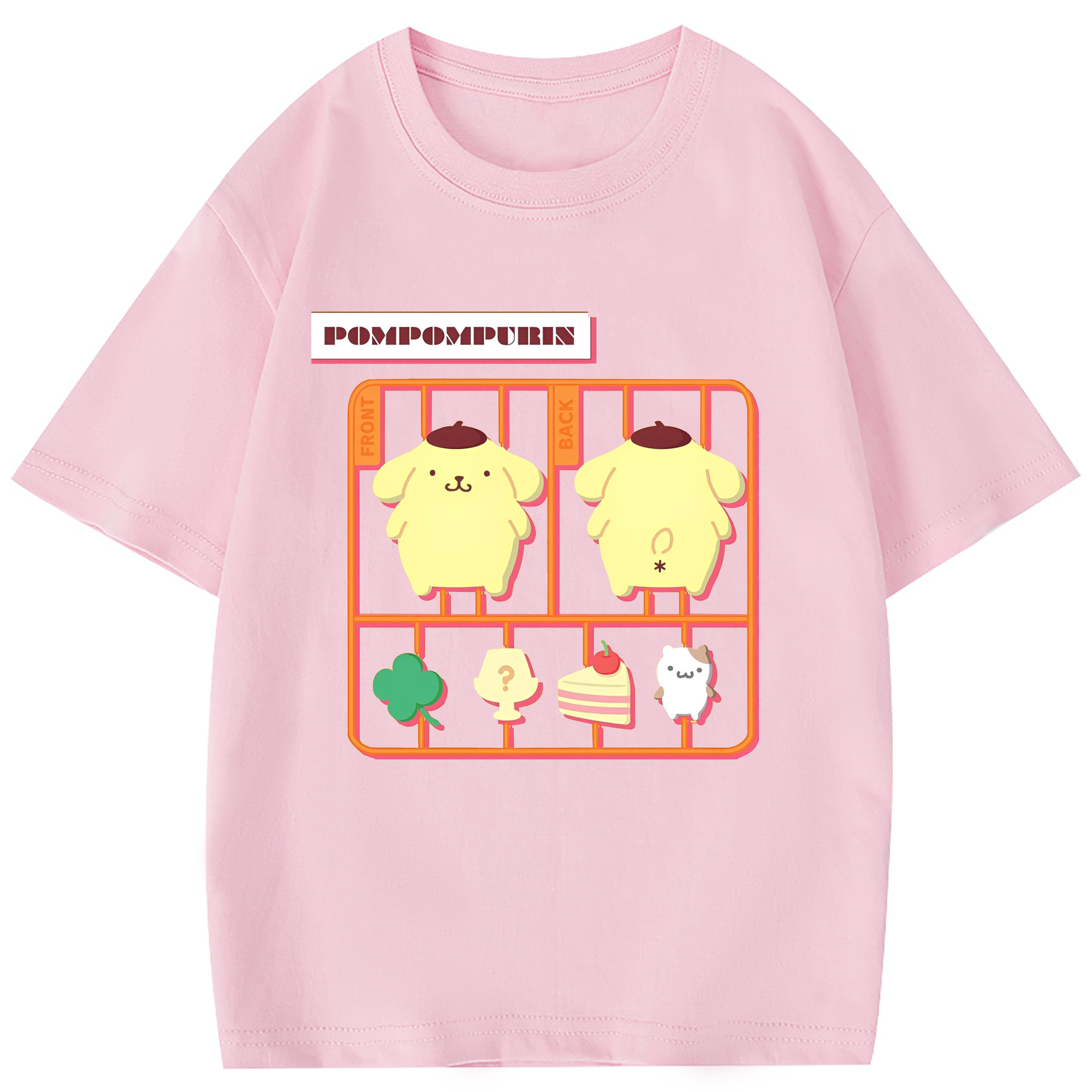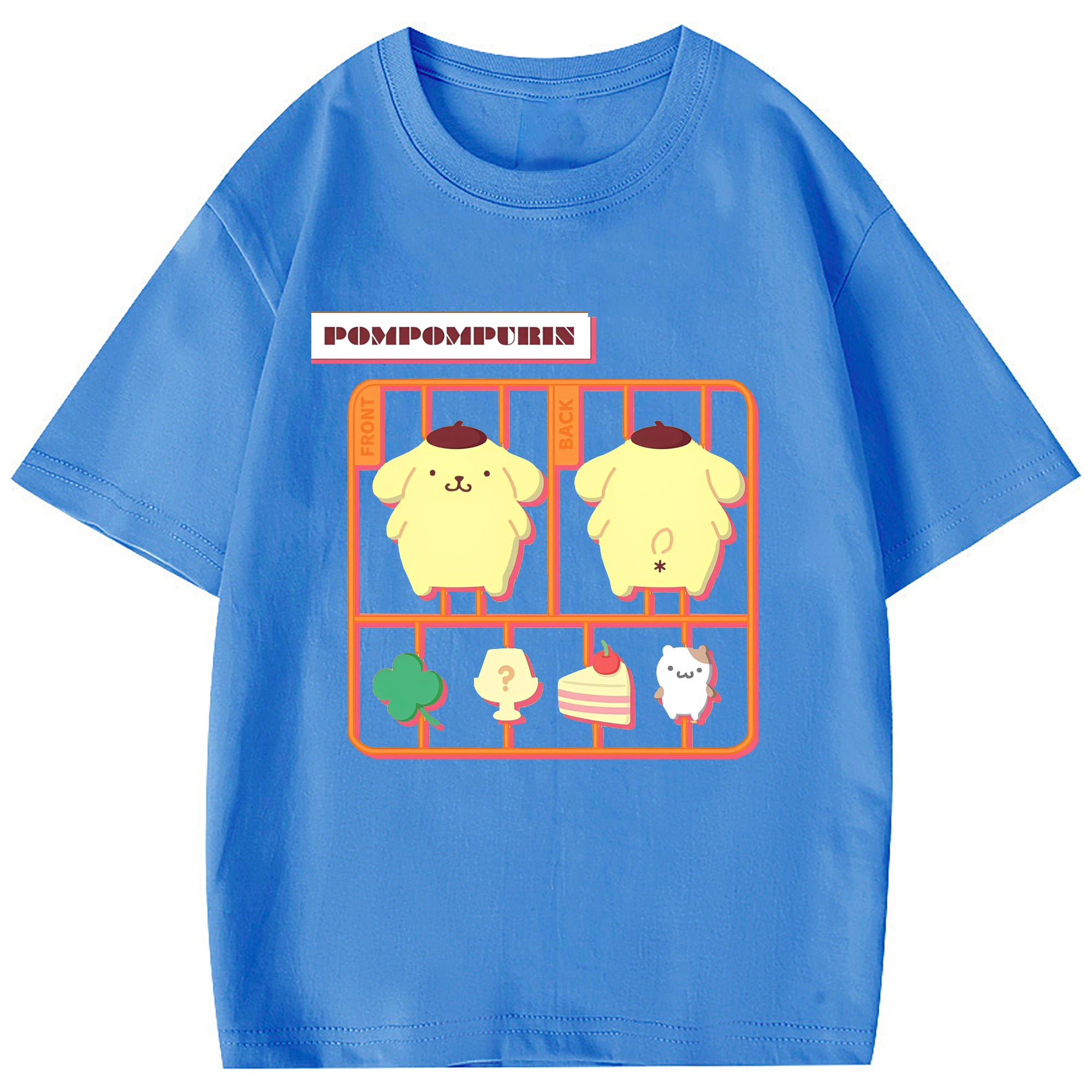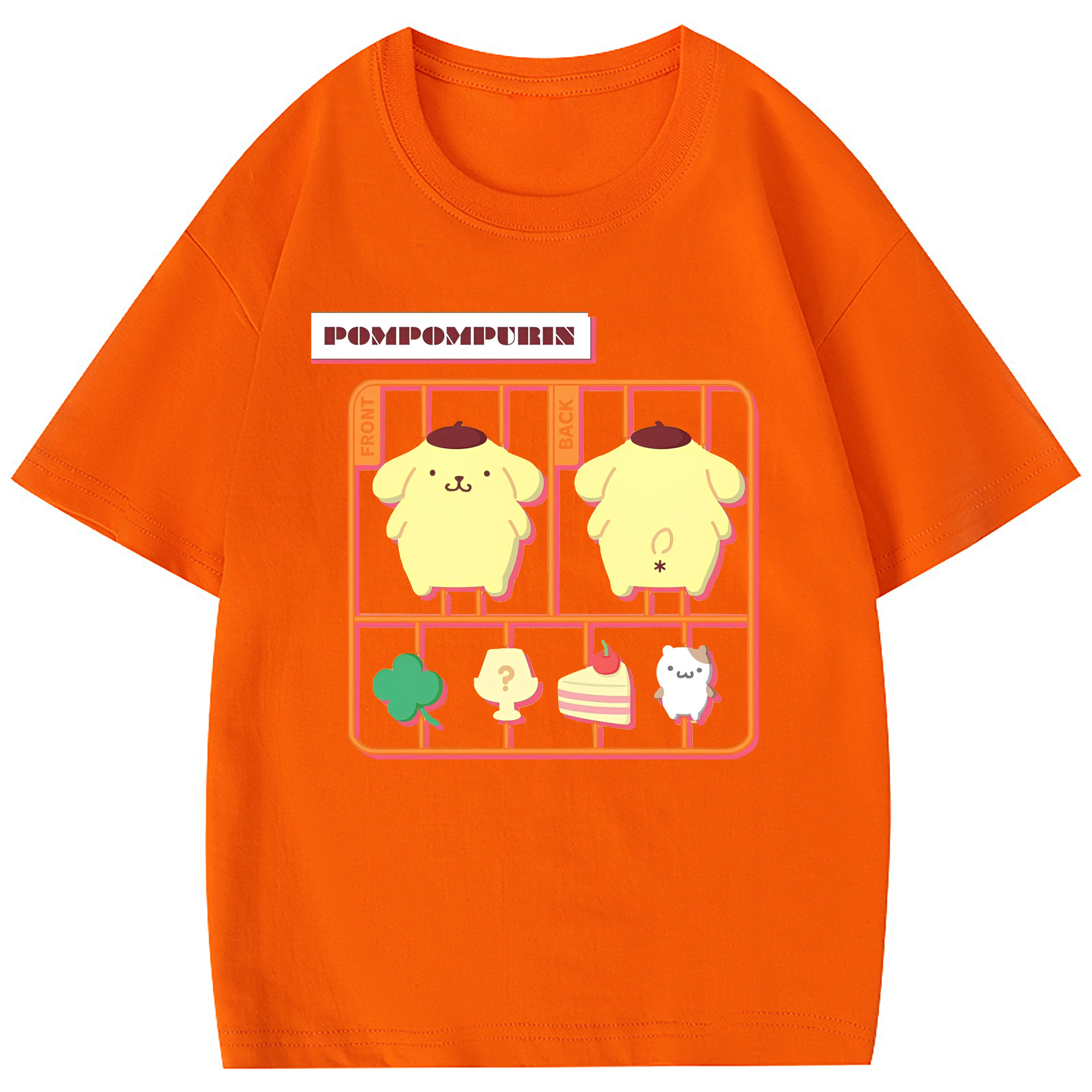 ユニークなデザインのポムポムプリン - 綿100% 半袖Tシャツ ・ フロントプリント ・ 快適 通気性 ・ 日常使い 散歩 スポーツ用