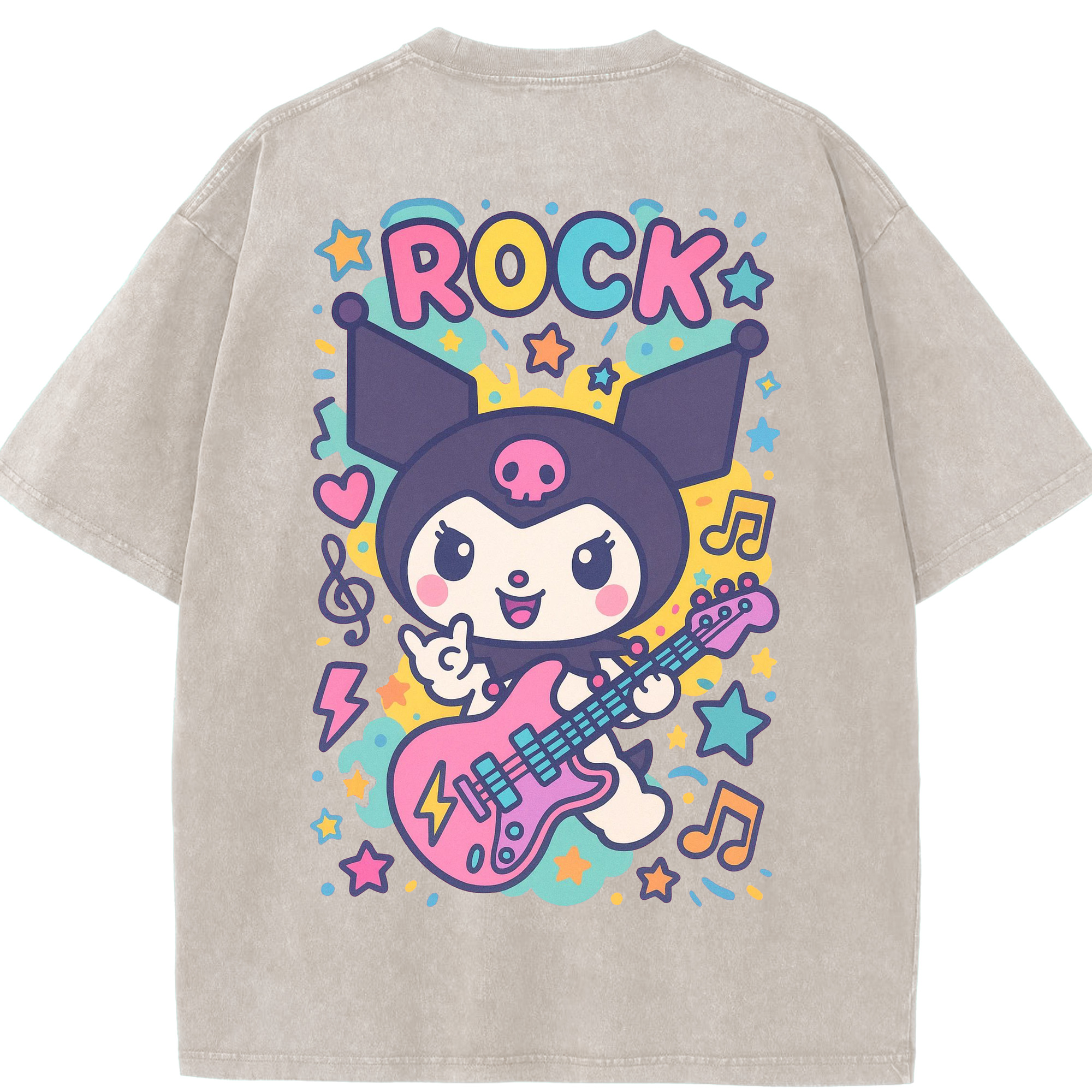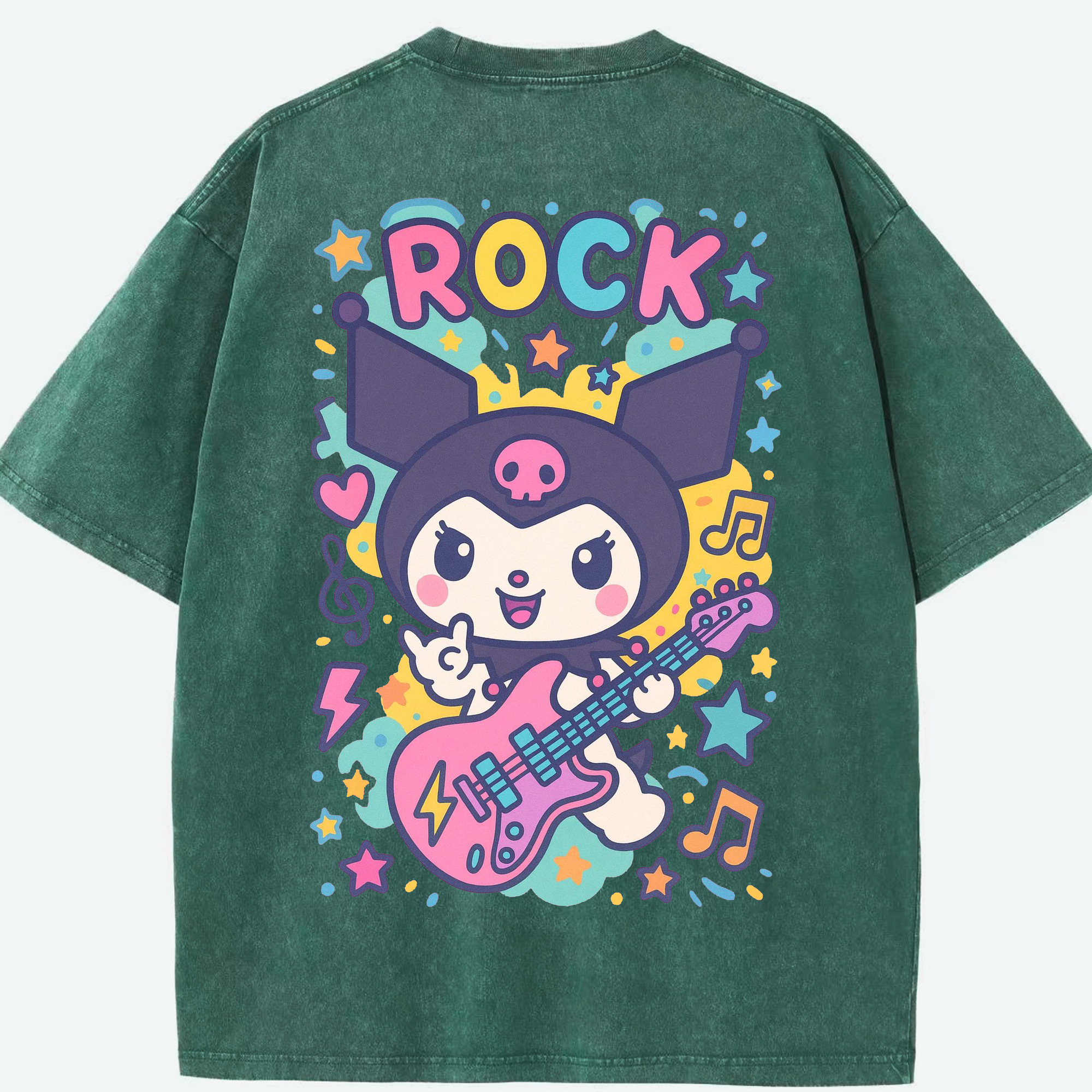 ロック風クロミ - 綿100% ヴィンテージ風 半袖Tシャツ ・ フロントプリント ・ 柔らか肌触り ・ 通気性 快適 ・ スポーツ カジュアル 外出用