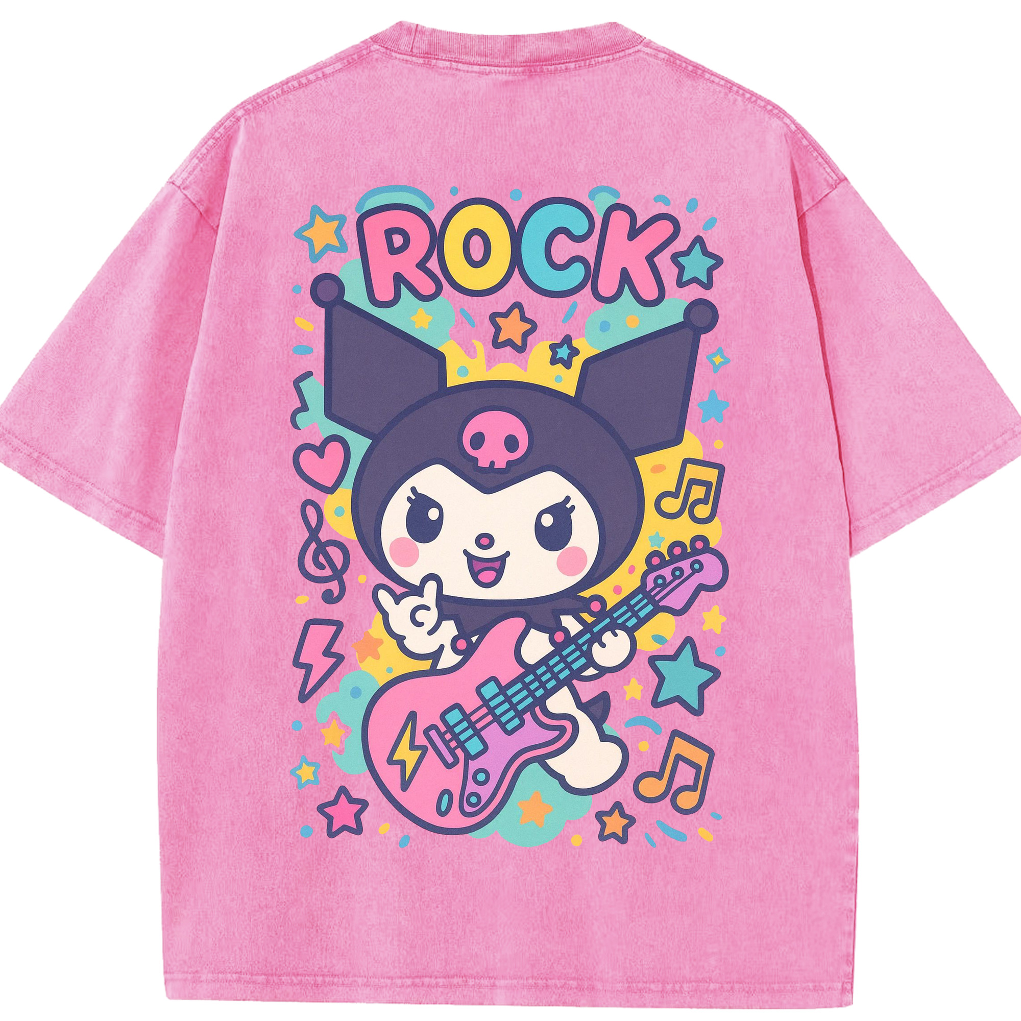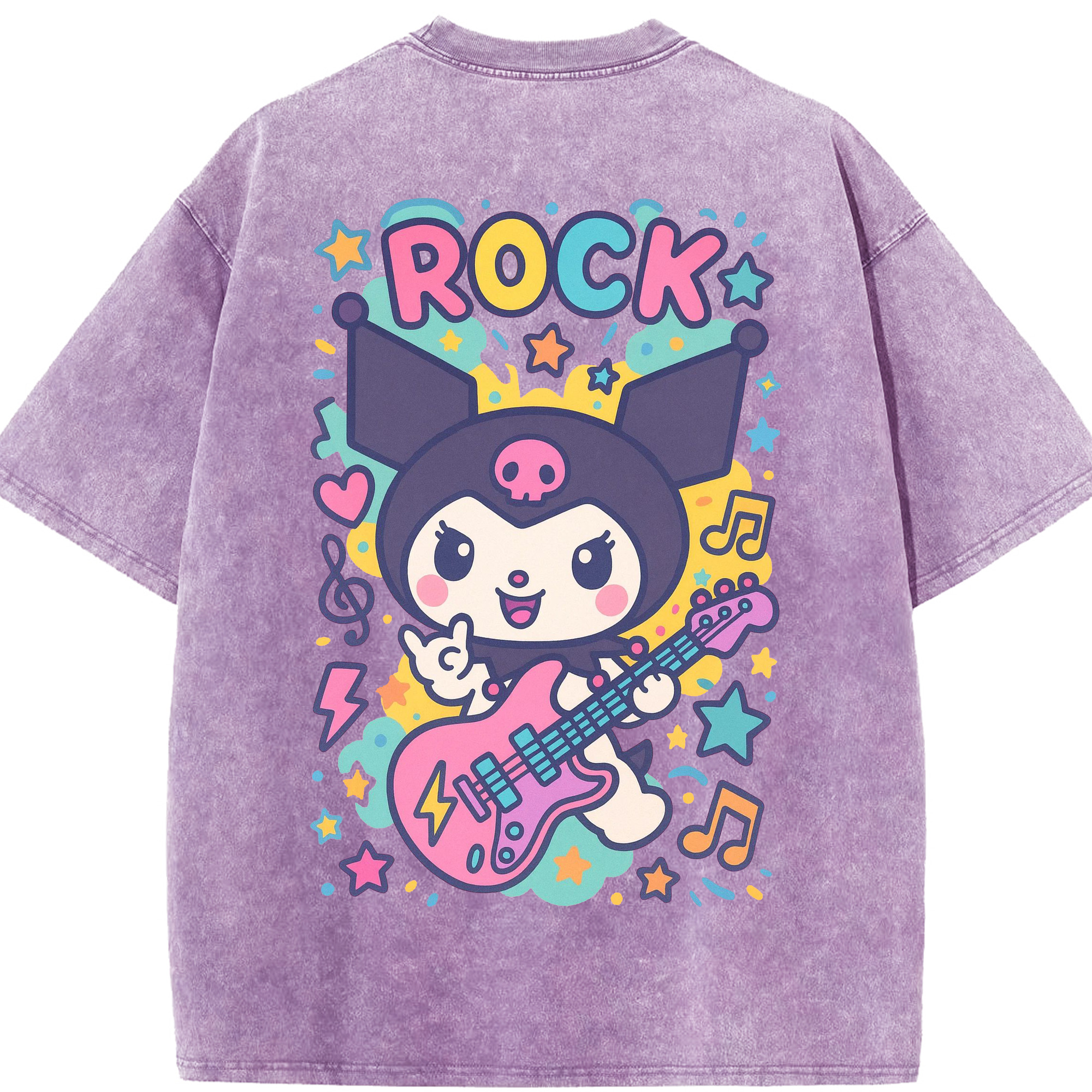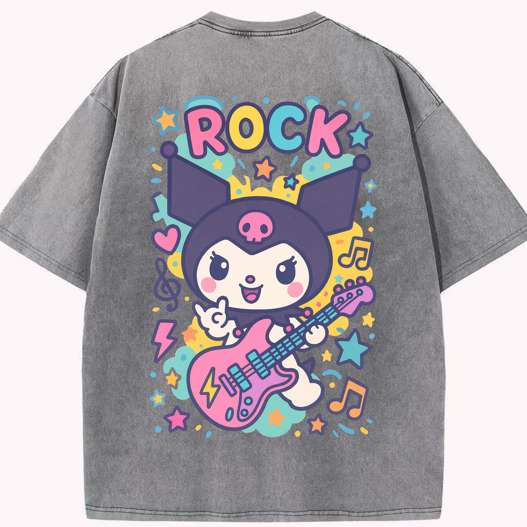 かわいいクロミ - 綿100% ヴィンテージ風 半袖Tシャツ ・ 背面プリント ・ 柔らか肌触り ・ 通気性 快適 ・ スポーツ カジュアル 外出用