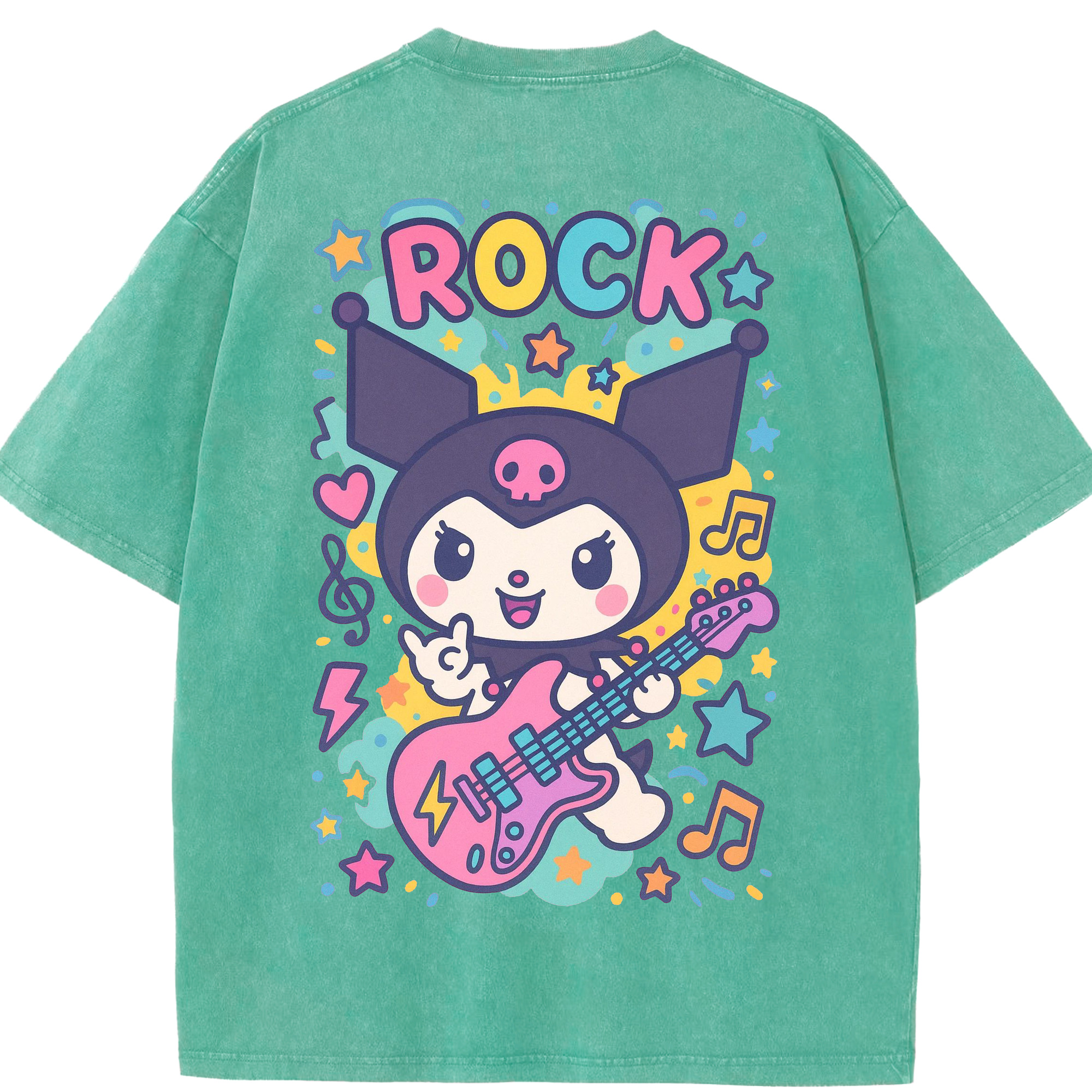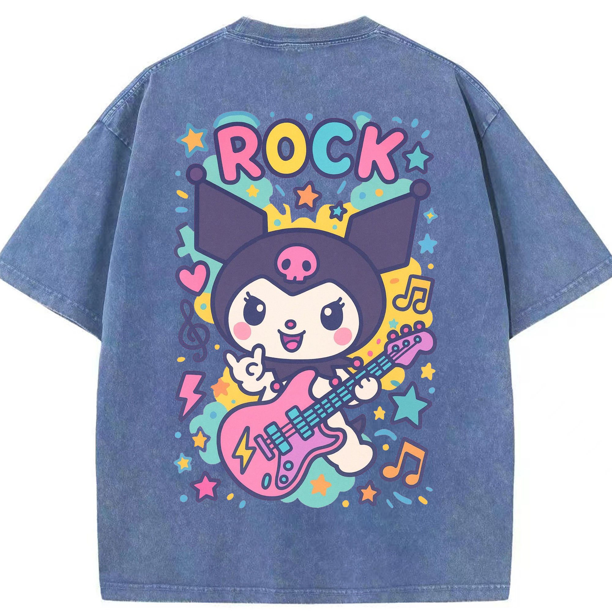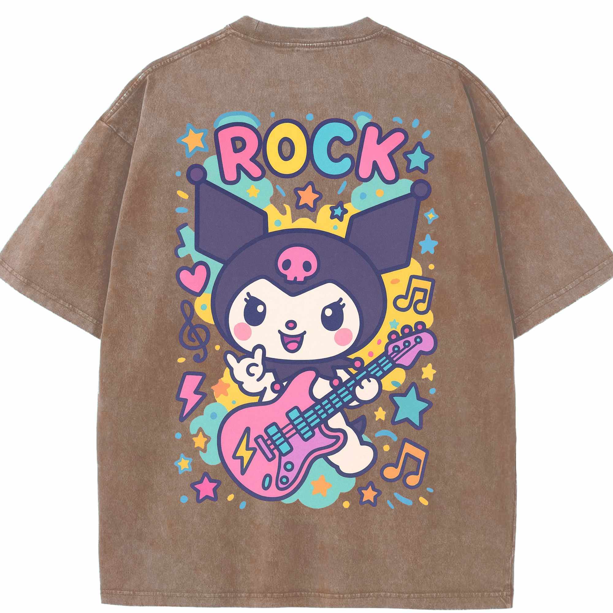 かわいいクロミ - 綿100% ヴィンテージ風 半袖Tシャツ ・ 背面プリント ・ 柔らか肌触り ・ 通気性 快適 ・ スポーツ カジュアル 外出用