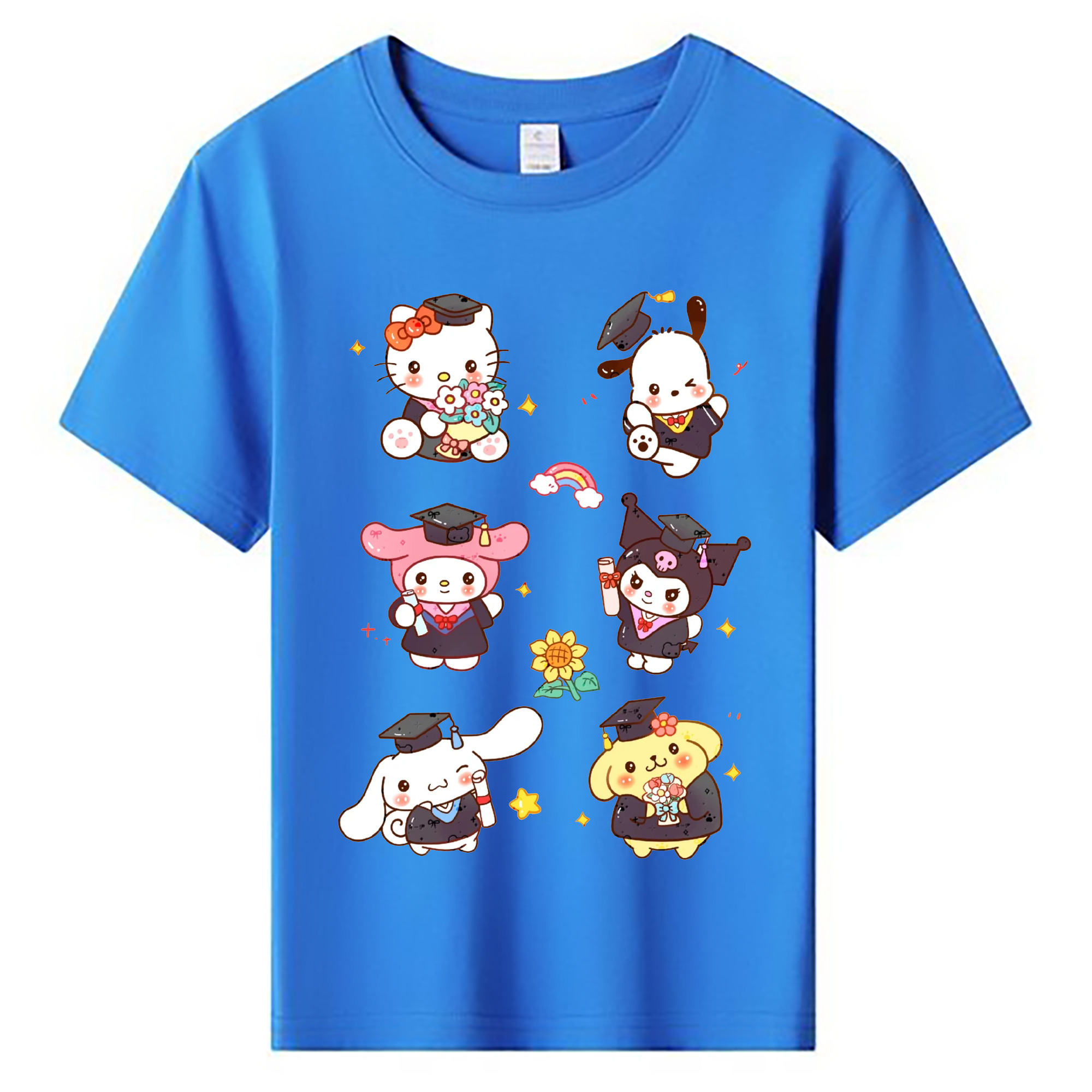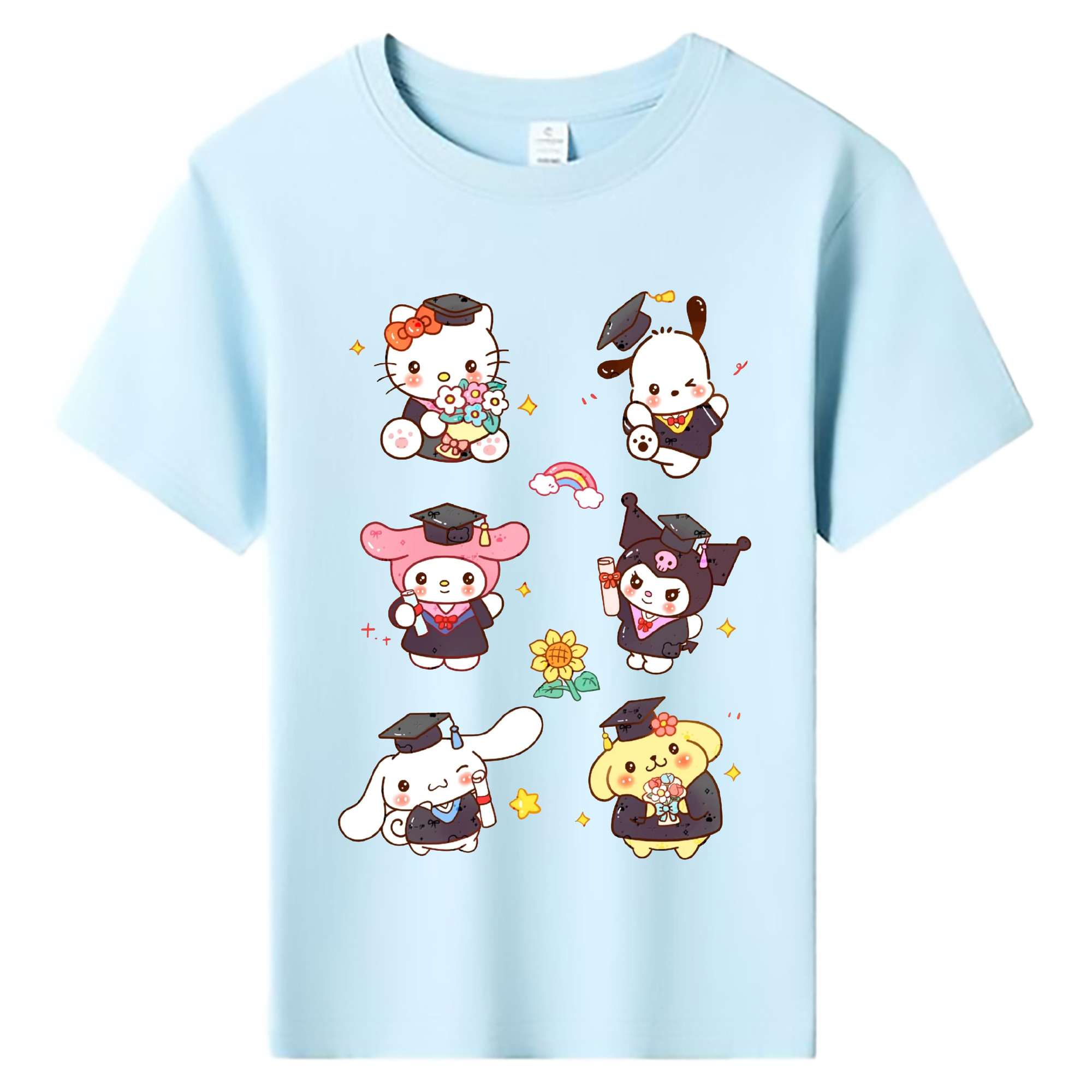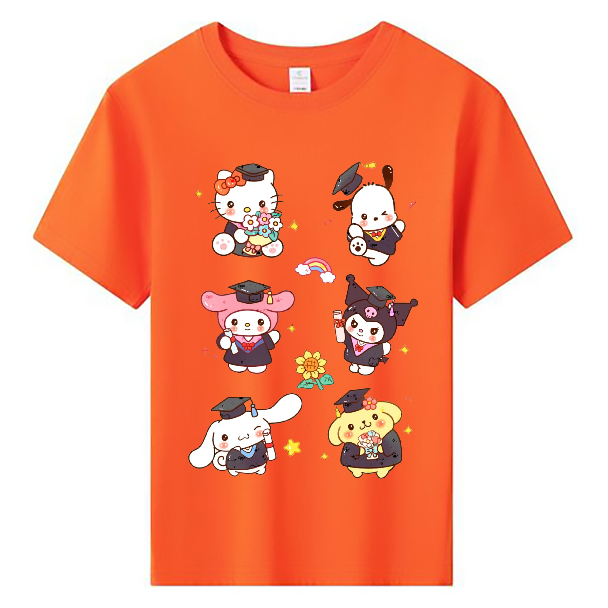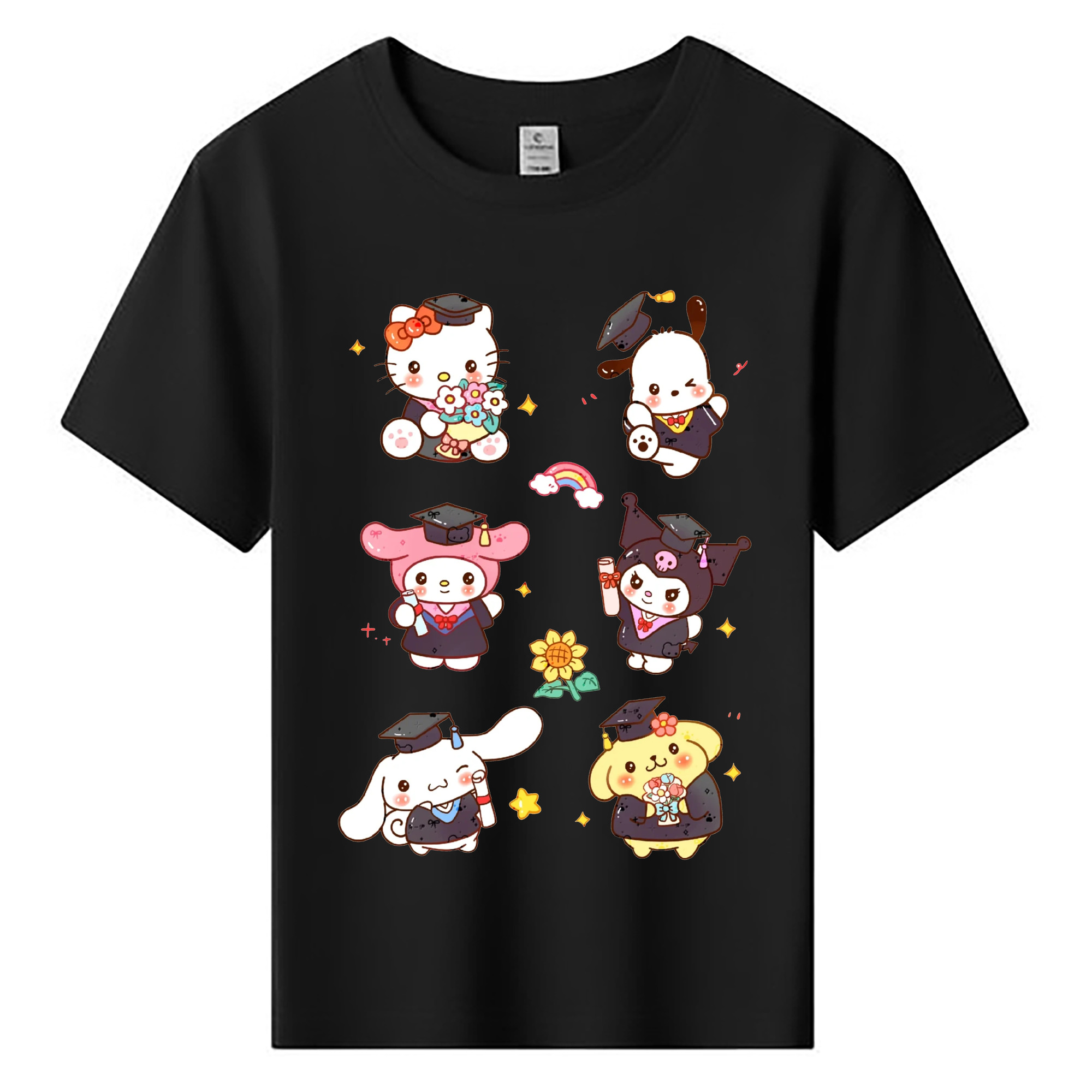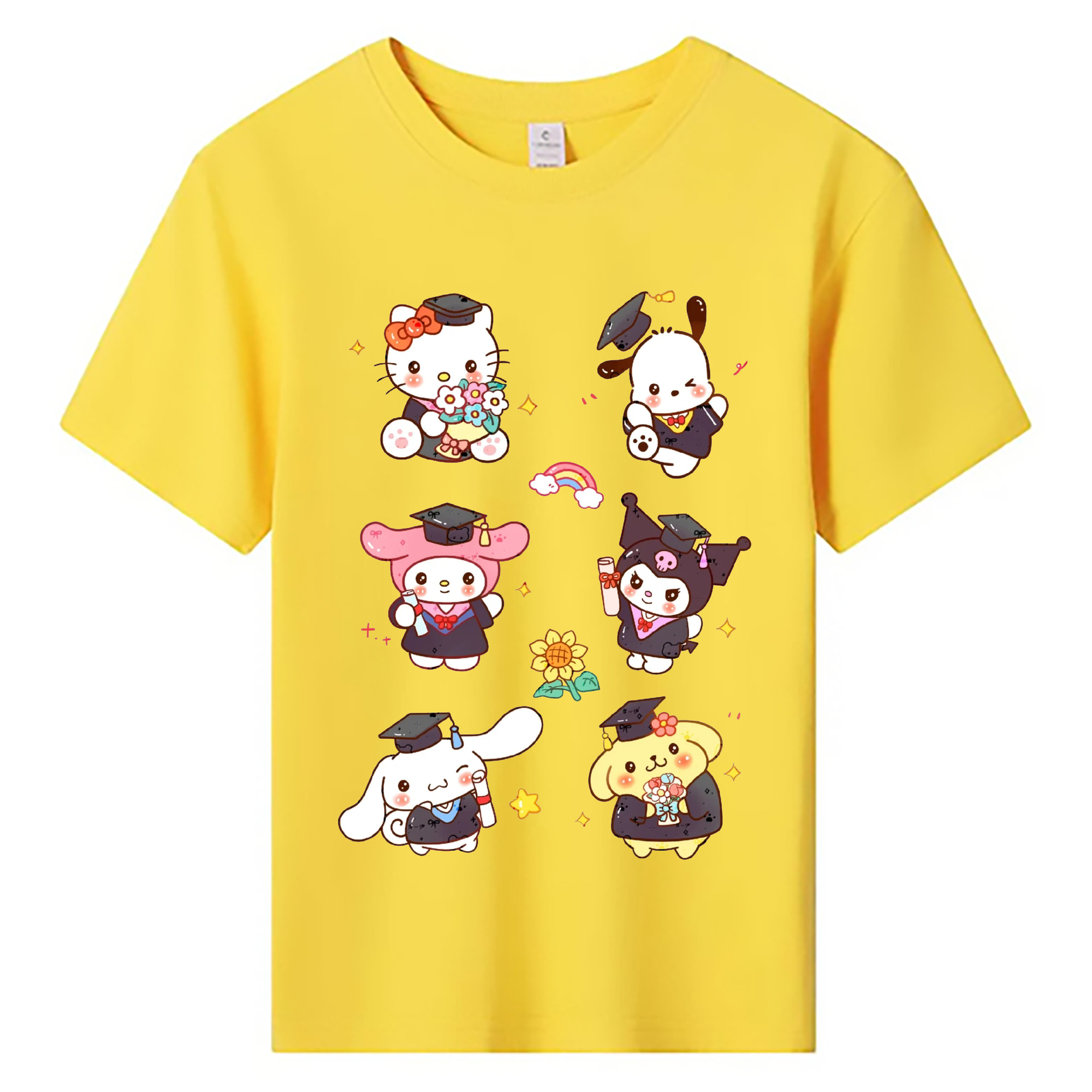 卒業シーズン×サンリオ - 綿100% ヴィンテージ風 半袖Tシャツ ・ フロントプリント ・ 柔らか肌触り ・ 通気性 快適 ・ スポーツ カジュアル 外出用