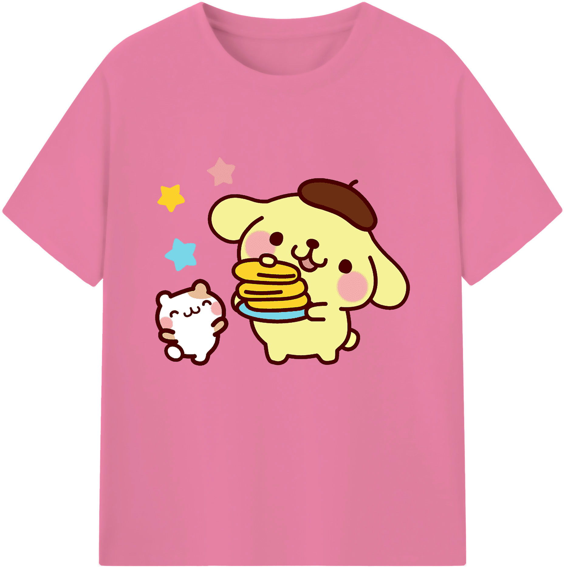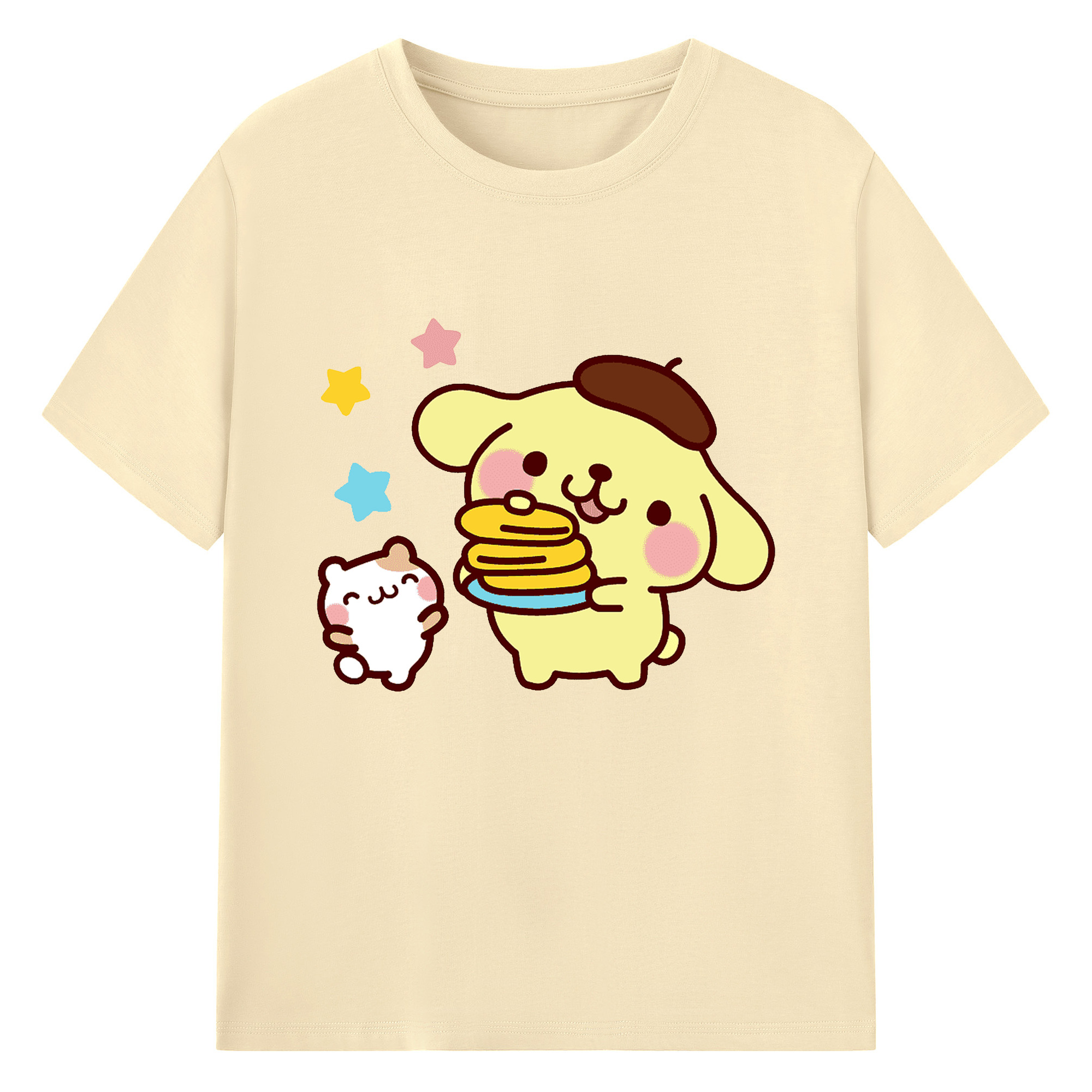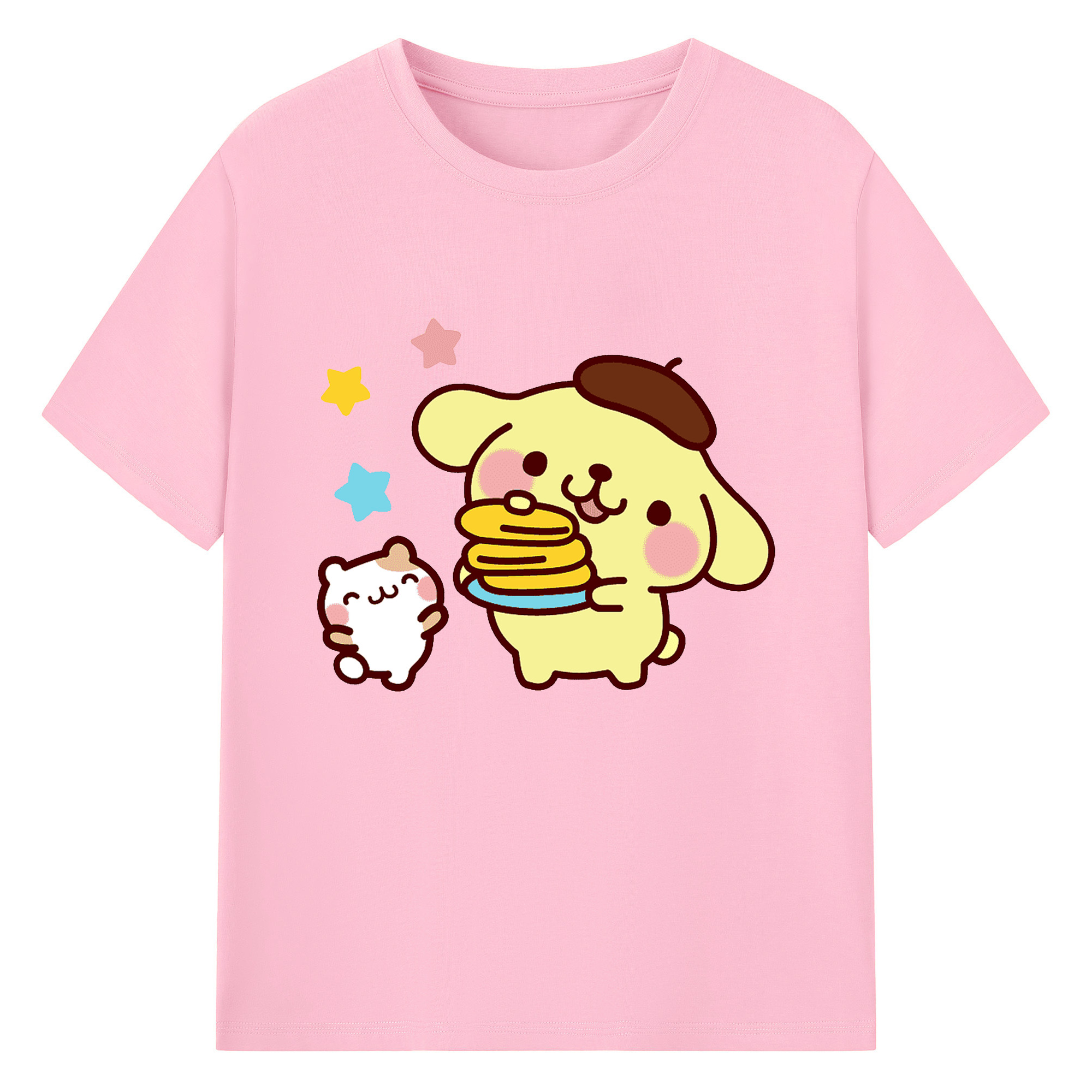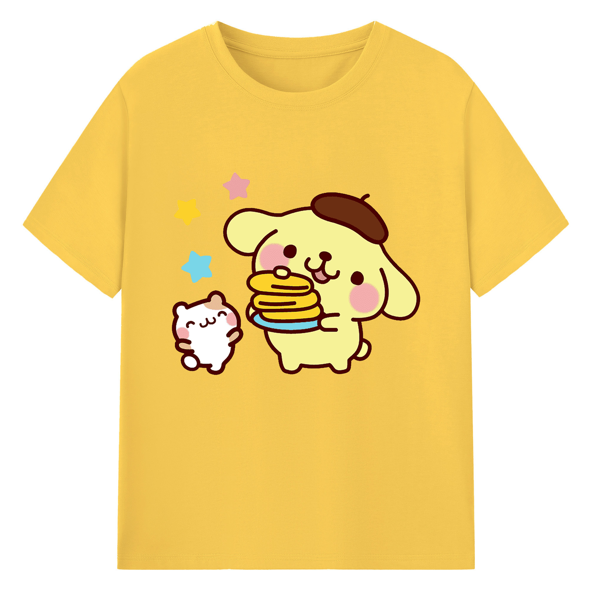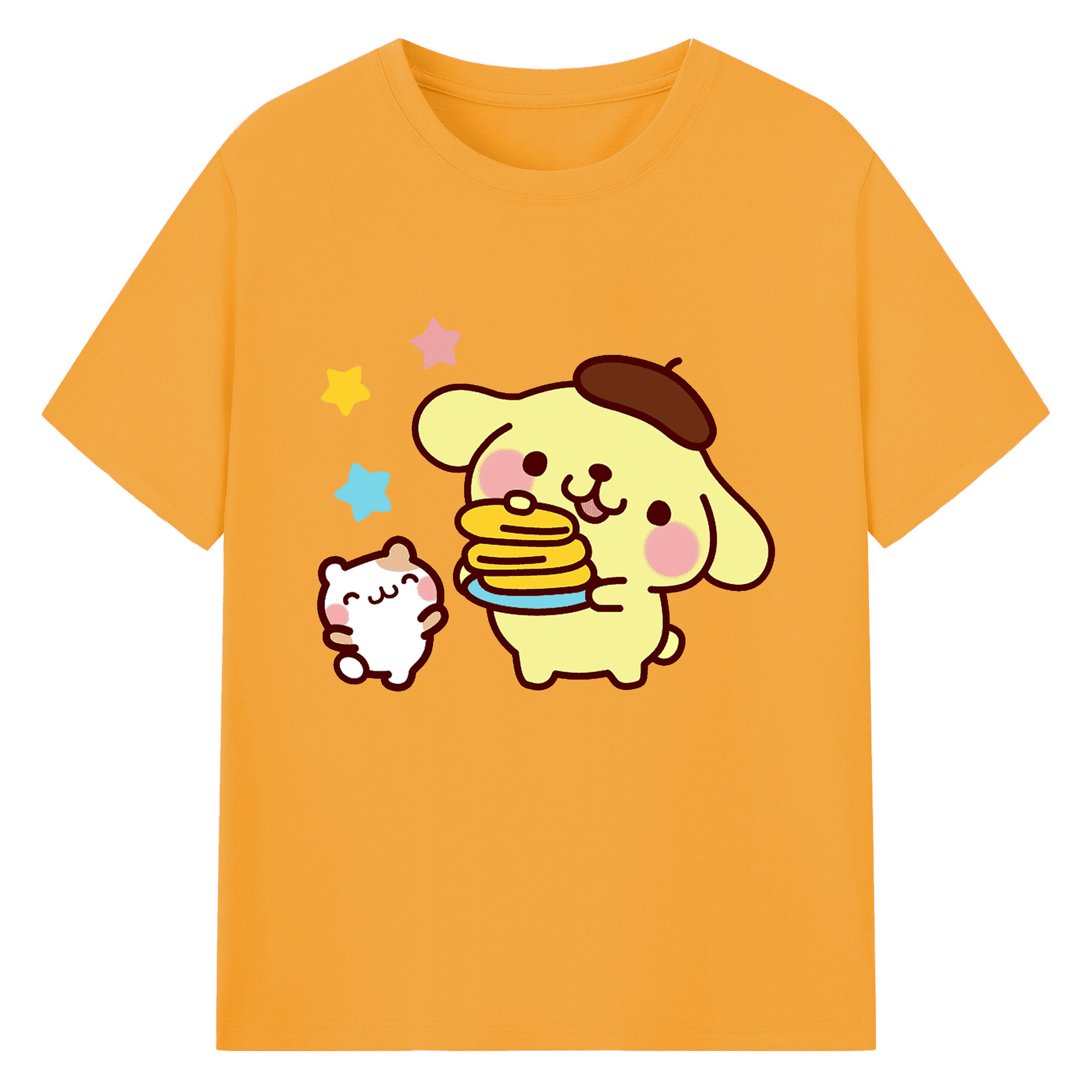 うれしいポムポムプリン - 綿100% 半袖Tシャツ ・ フロントプリント ・ 快適 通気性 ・ 日常使い 散歩 スポーツ用