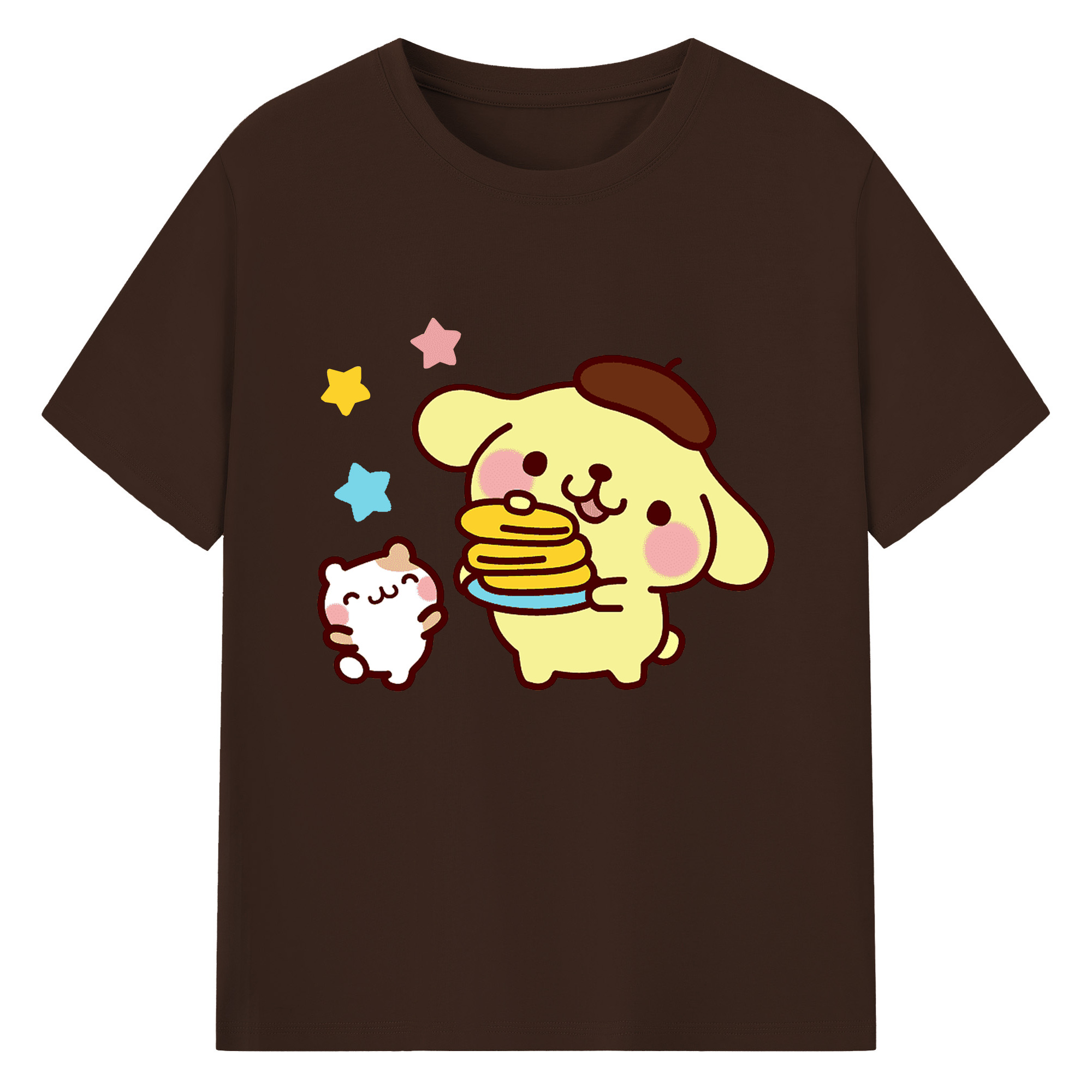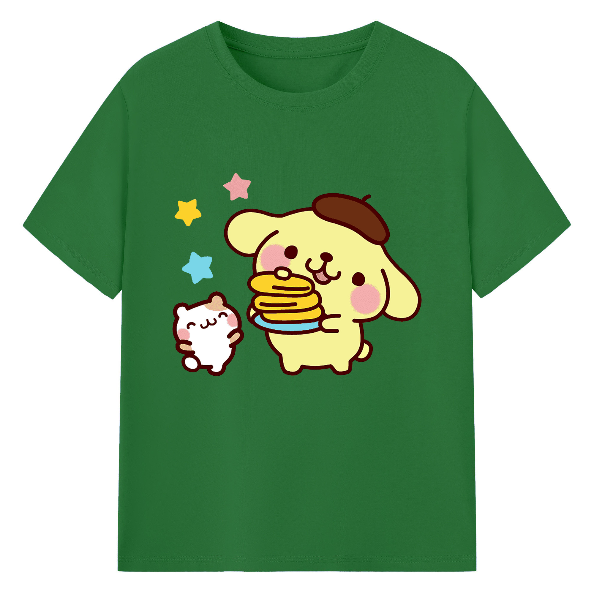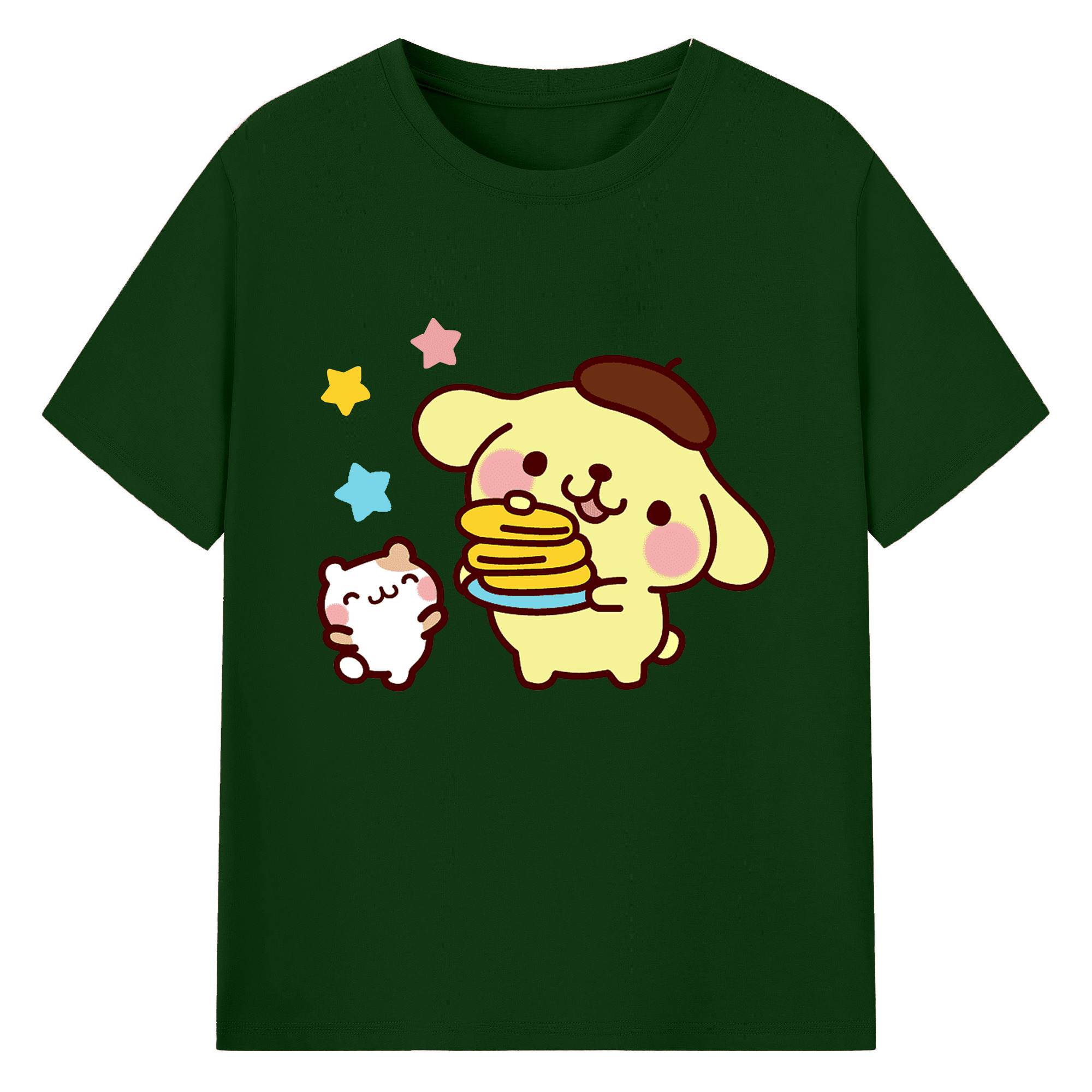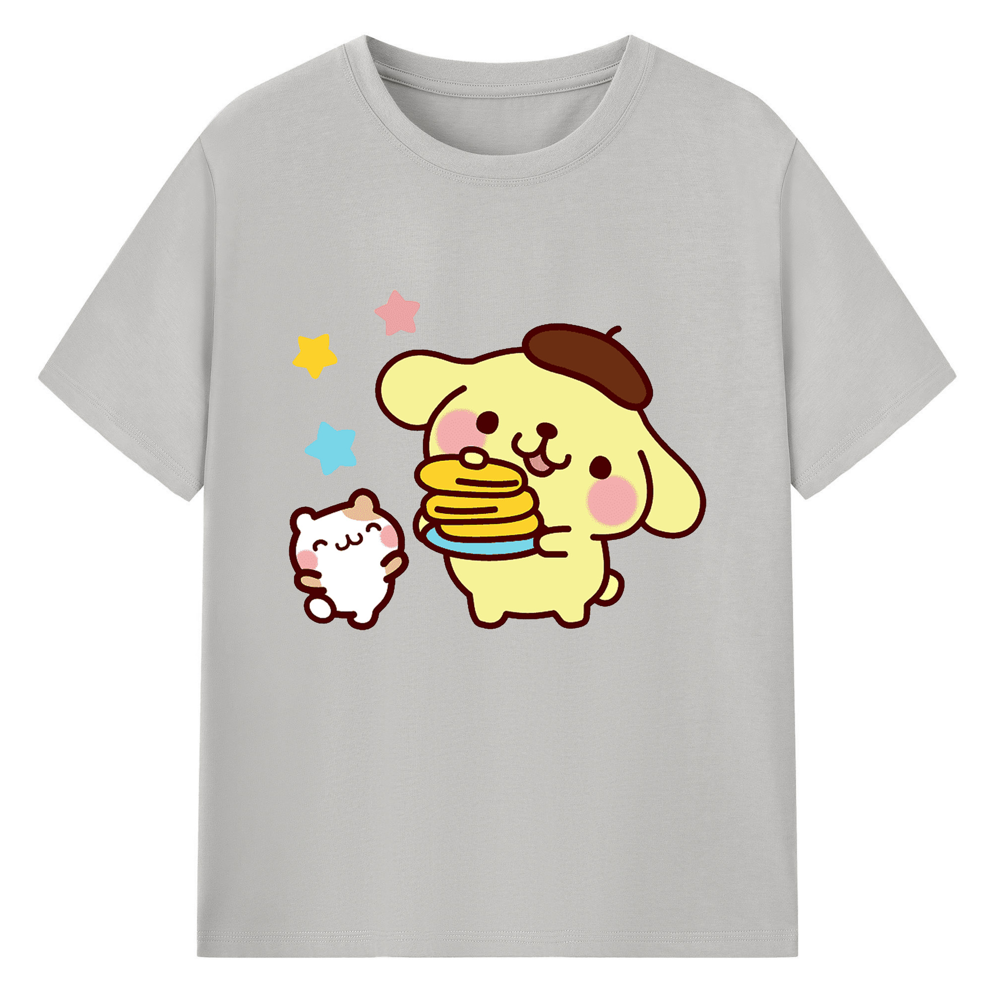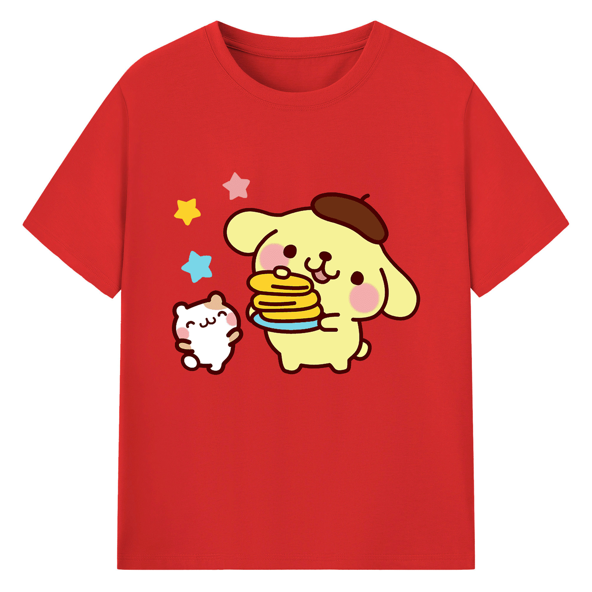 うれしいポムポムプリン - 綿100% 半袖Tシャツ ・ フロントプリント ・ 快適 通気性 ・ 日常使い 散歩 スポーツ用