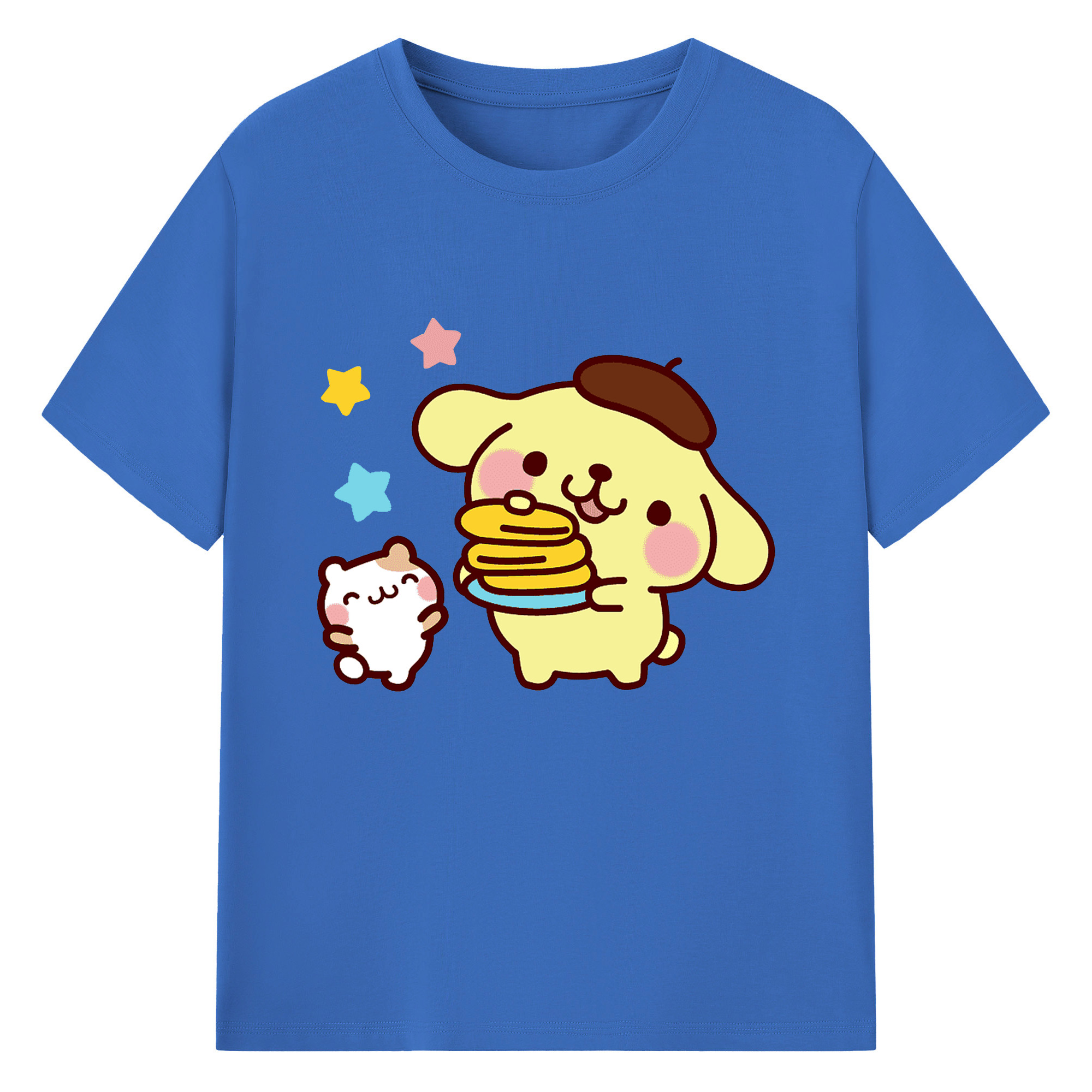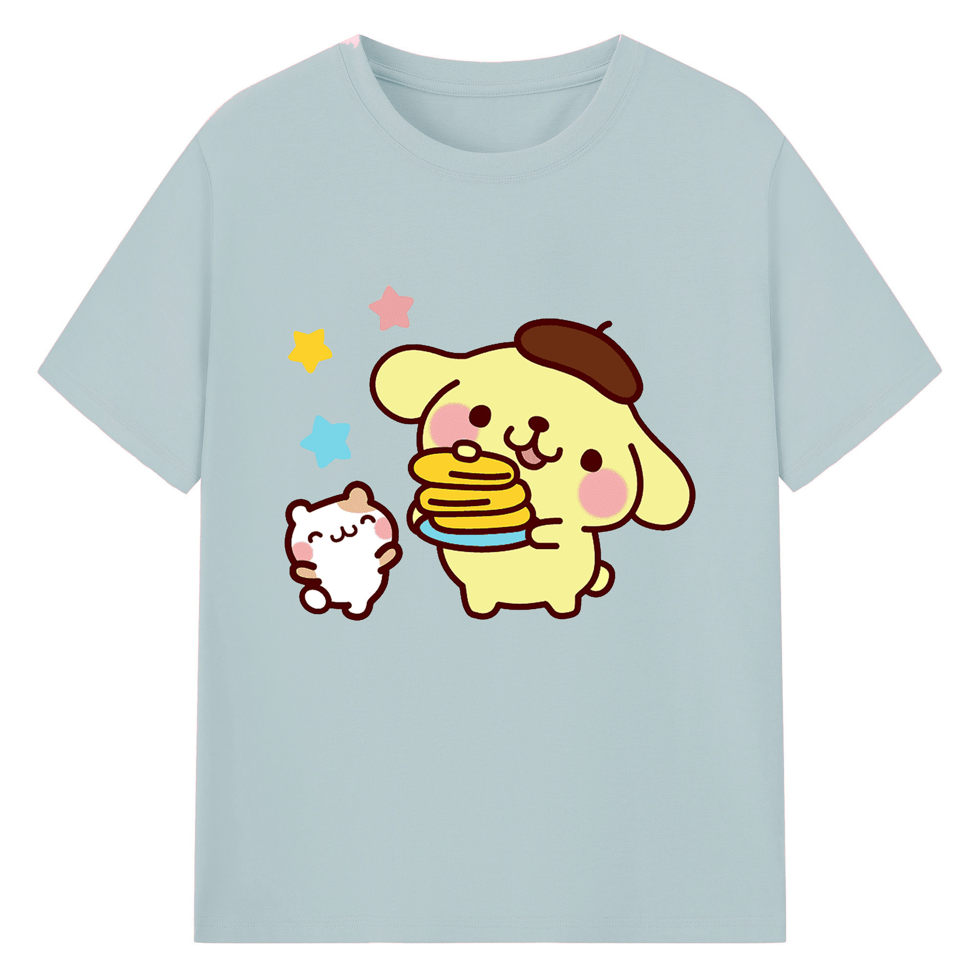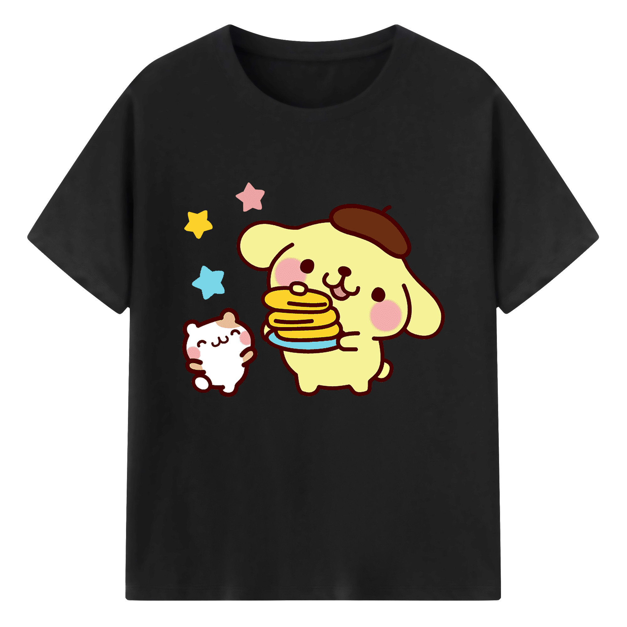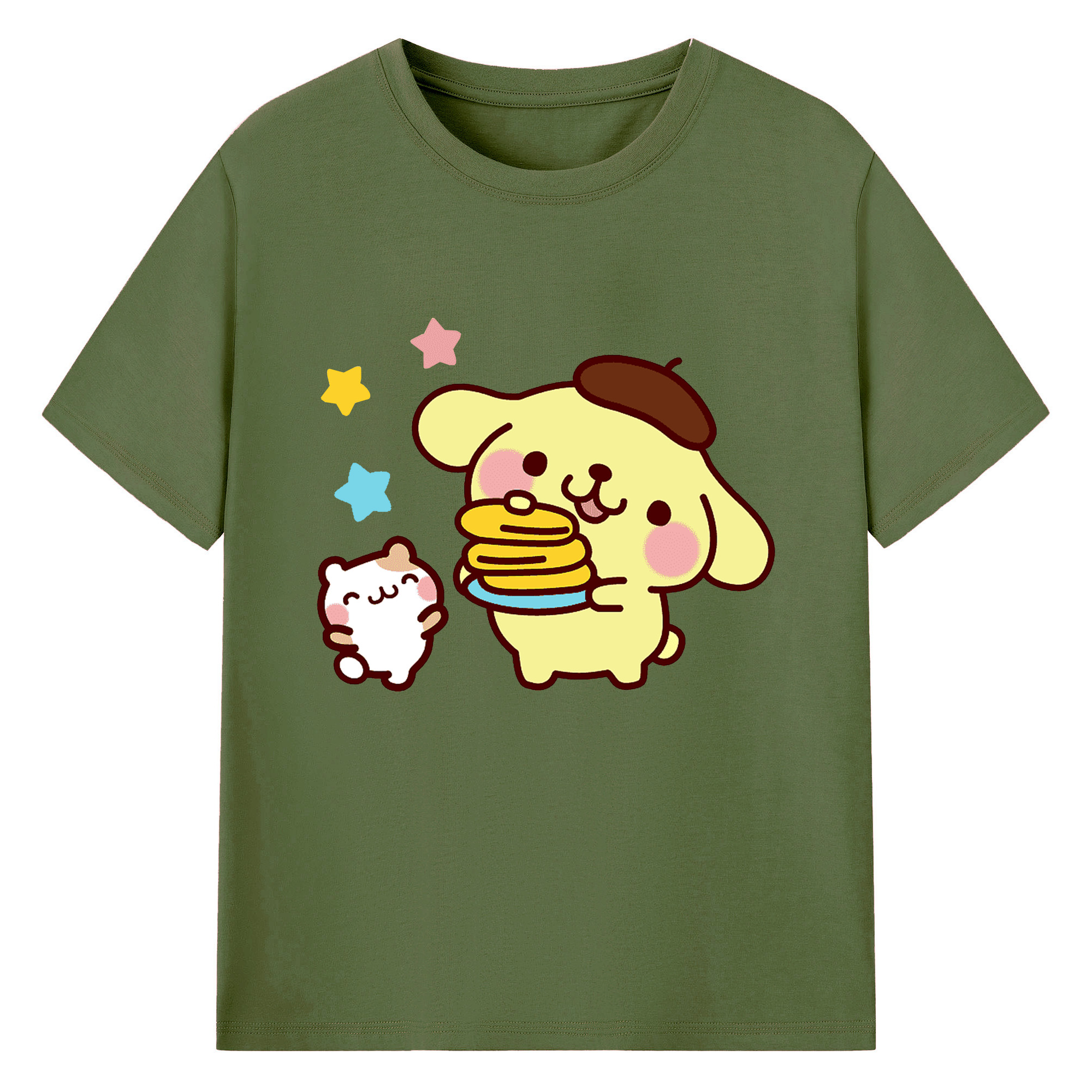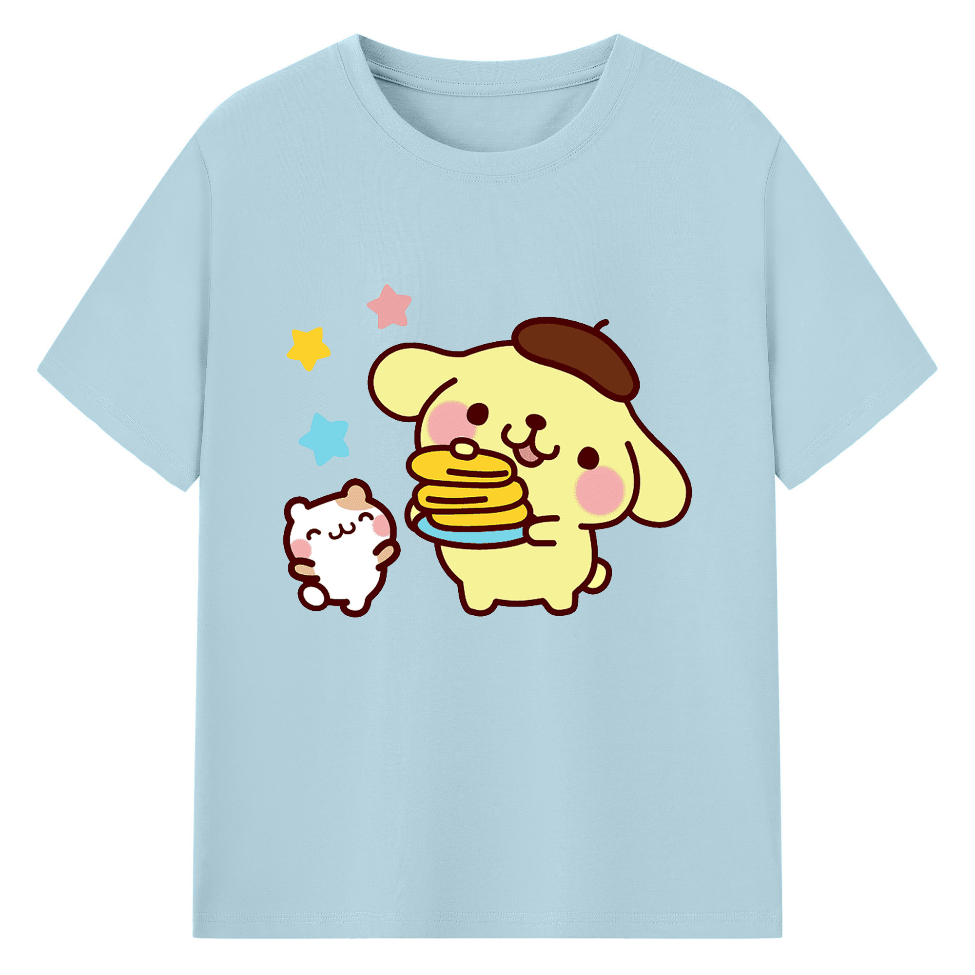 うれしいポムポムプリン - 綿100% 半袖Tシャツ ・ フロントプリント ・ 快適 通気性 ・ 日常使い 散歩 スポーツ用