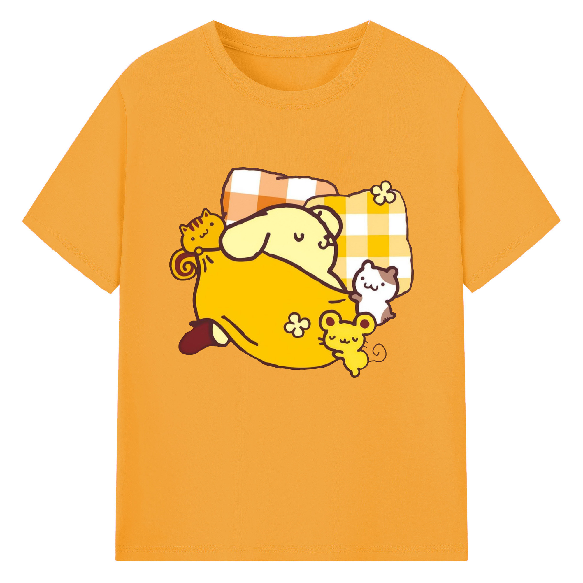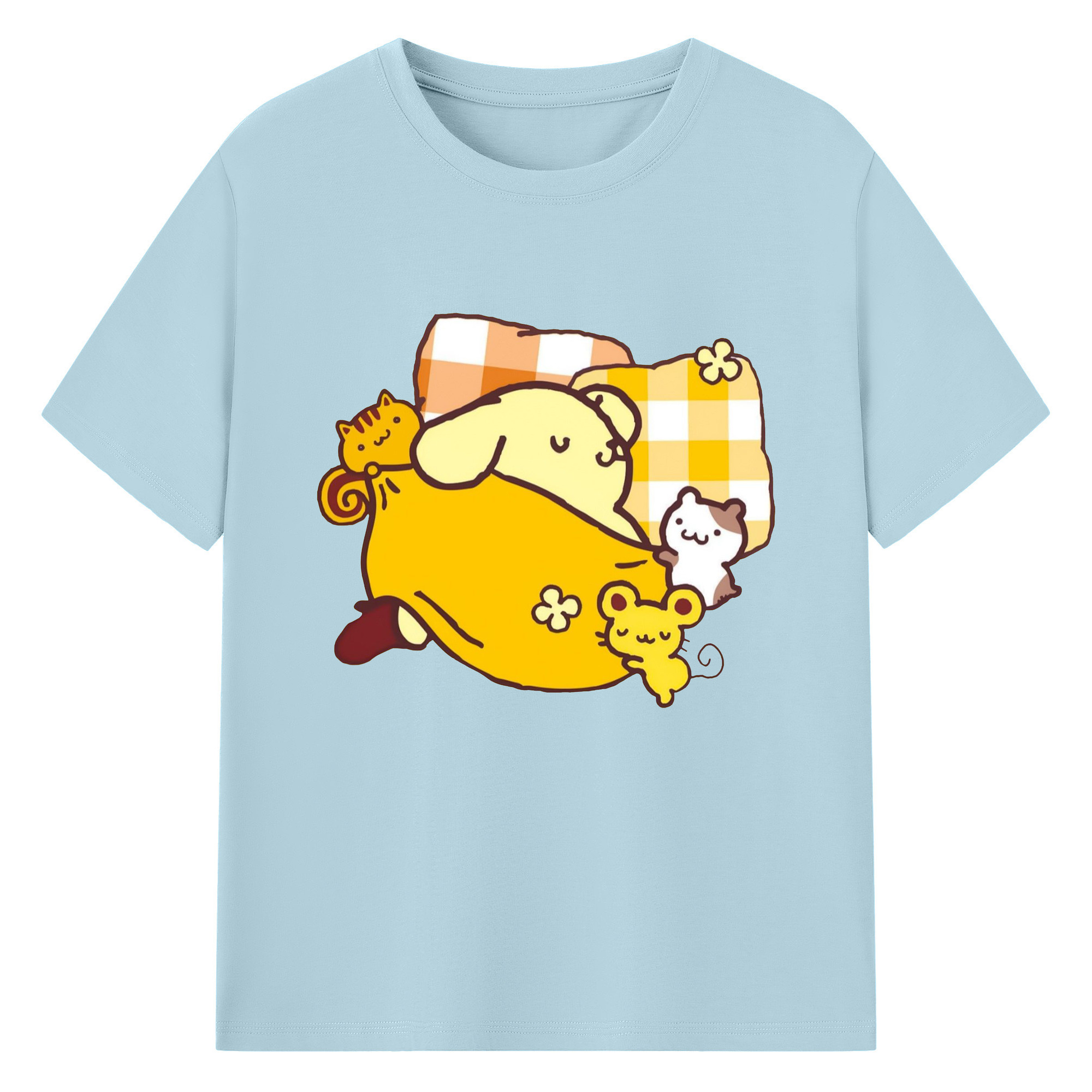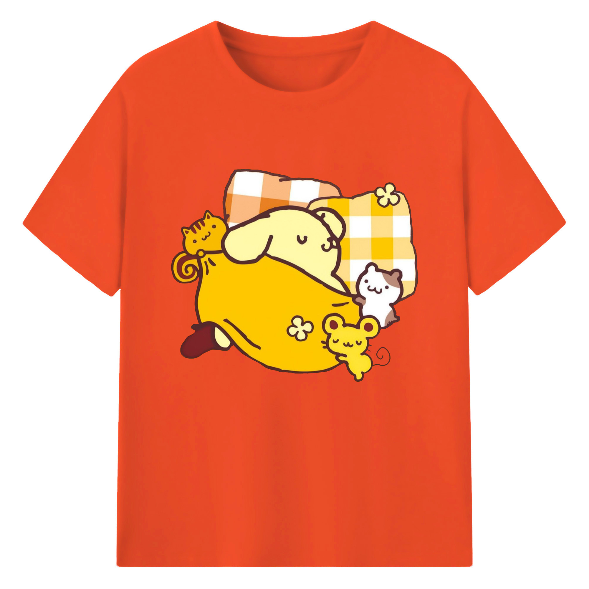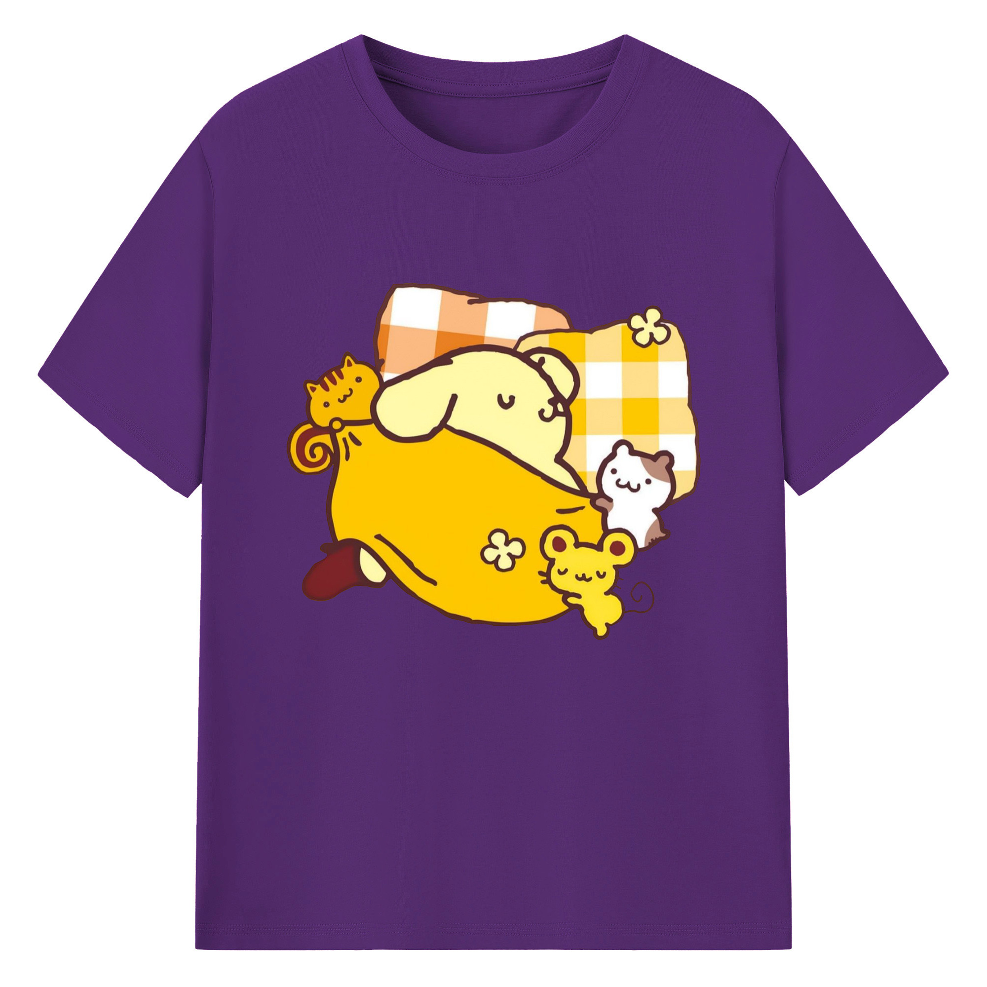 ユニークなデザインのポムポムプリン - 綿100% 半袖Tシャツ ・ フロントプリント ・ 快適 通気性 ・ 日常使い 散歩 スポーツ用