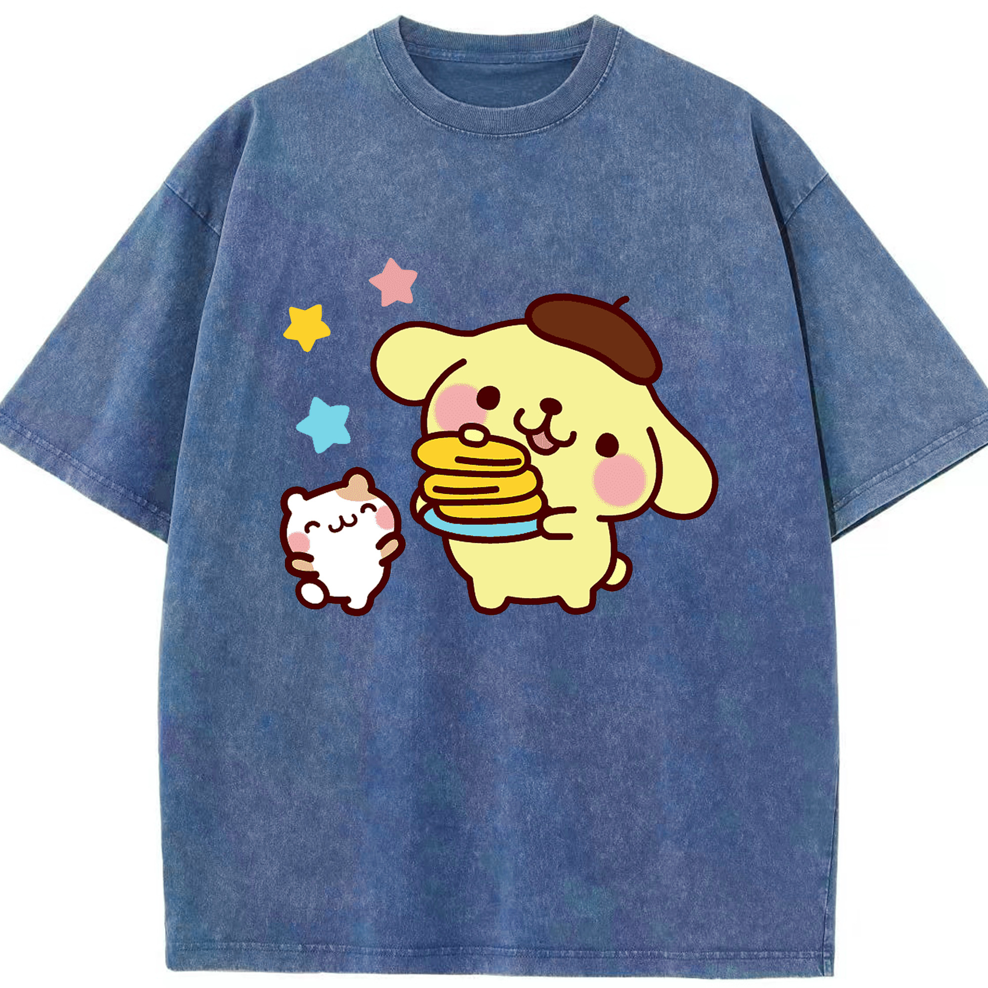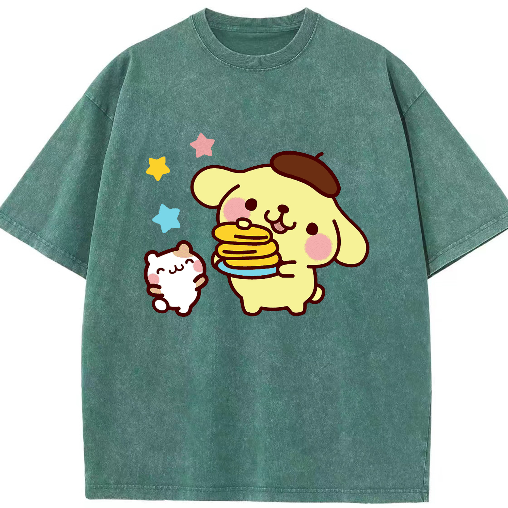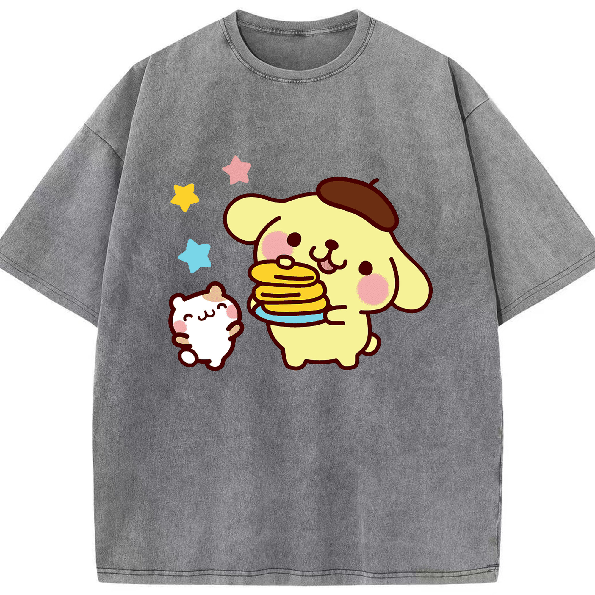 ユニークなデザインのポムポムプリン - 綿100% ヴィンテージ風 半袖Tシャツ ・ フロントプリント ・ 柔らか肌触り ・ 通気性 快適 ・ スポーツ カジュアル 外出用