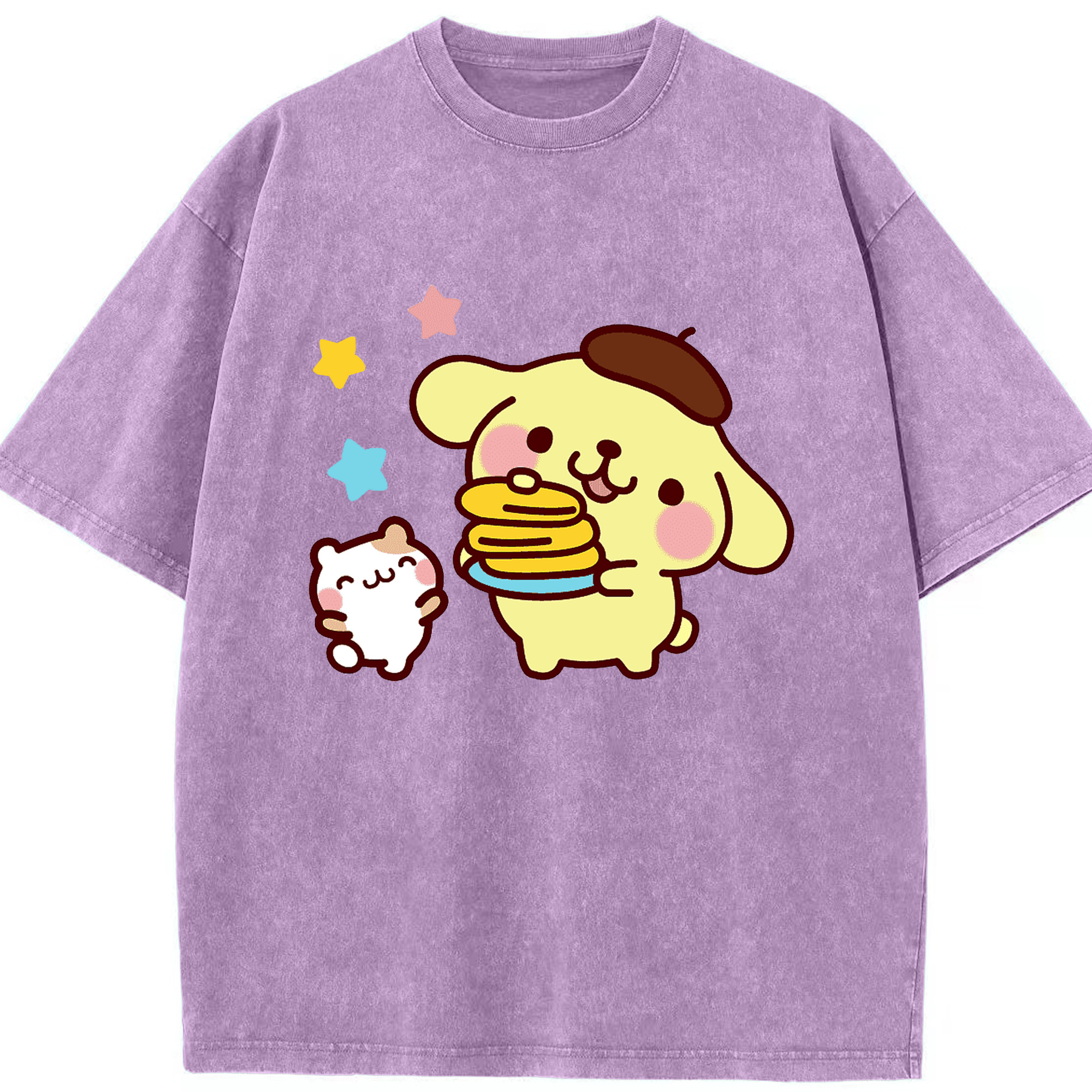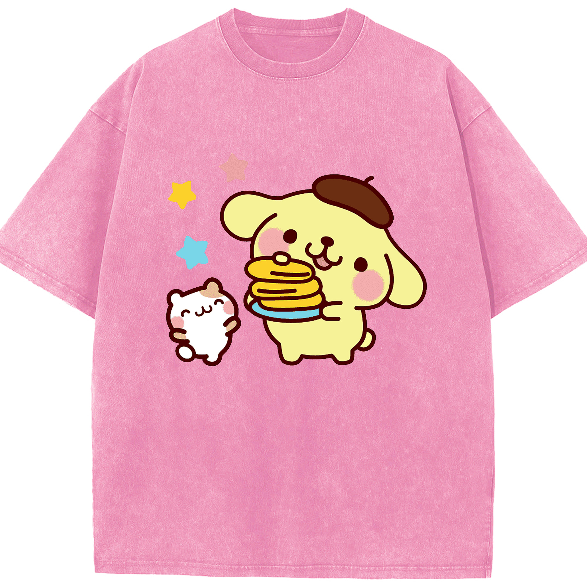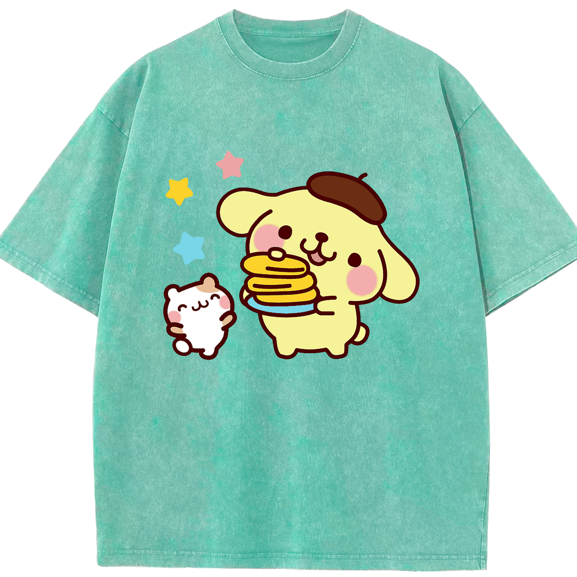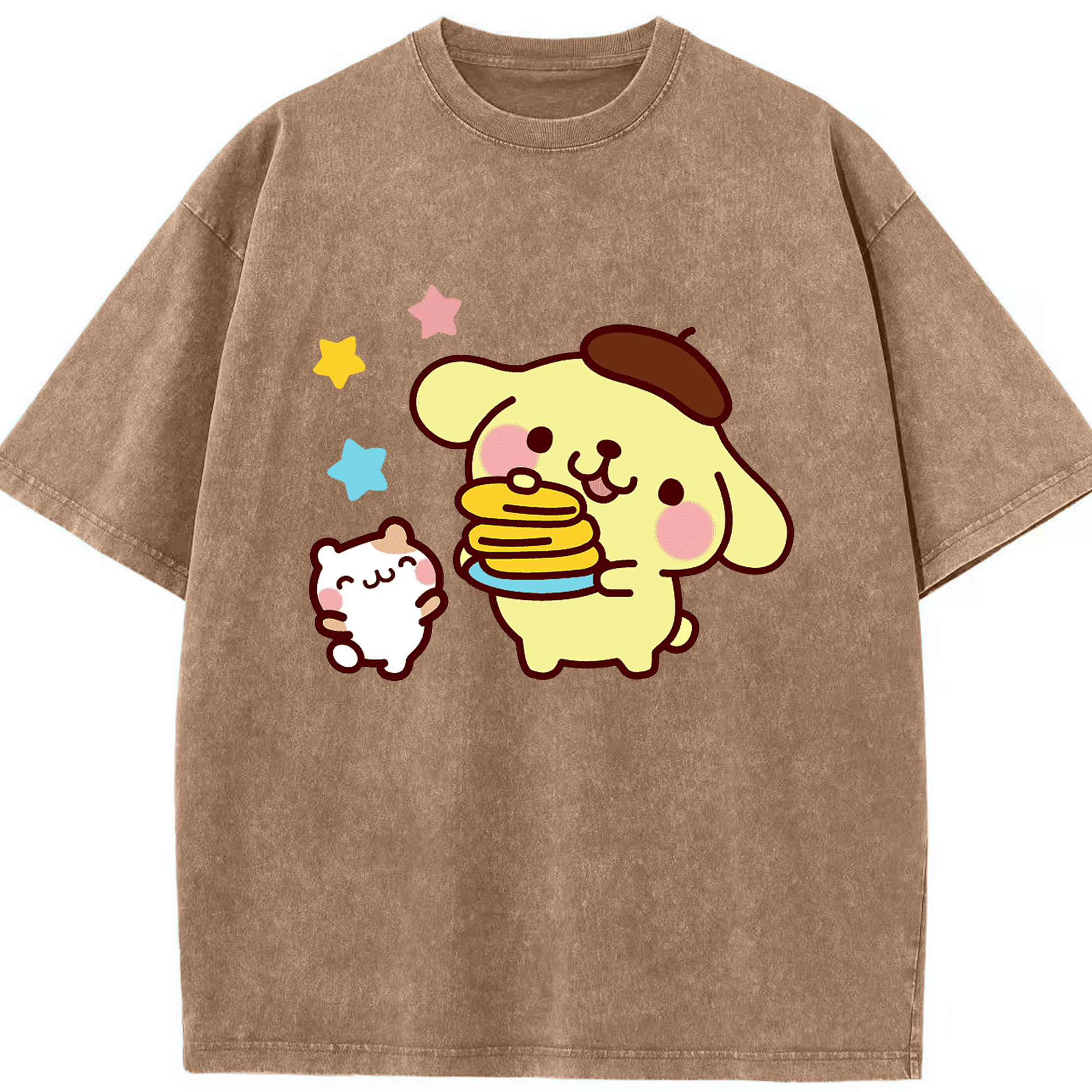 ユニークなデザインのポムポムプリン - 綿100% ヴィンテージ風 半袖Tシャツ ・ フロントプリント ・ 柔らか肌触り ・ 通気性 快適 ・ スポーツ カジュアル 外出用