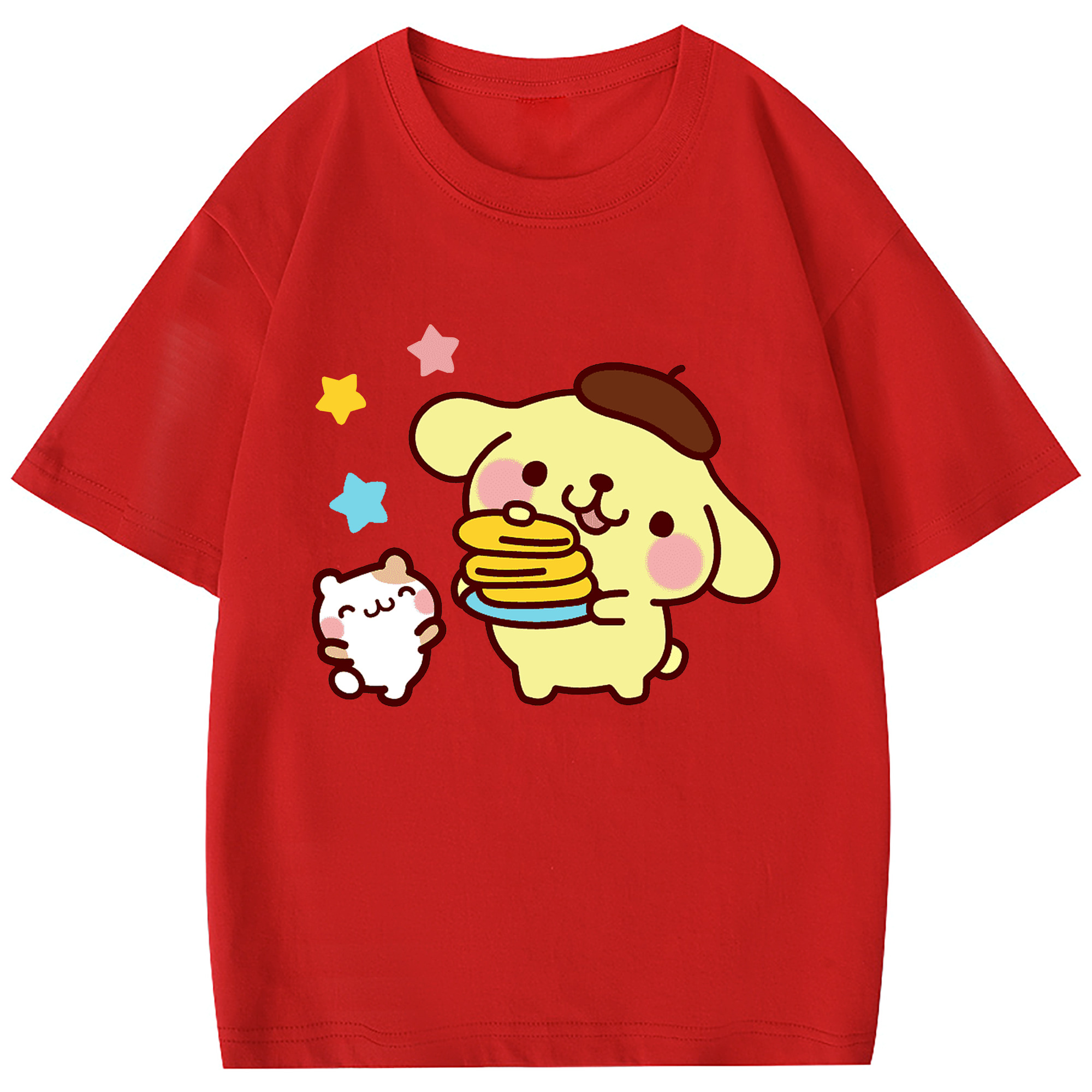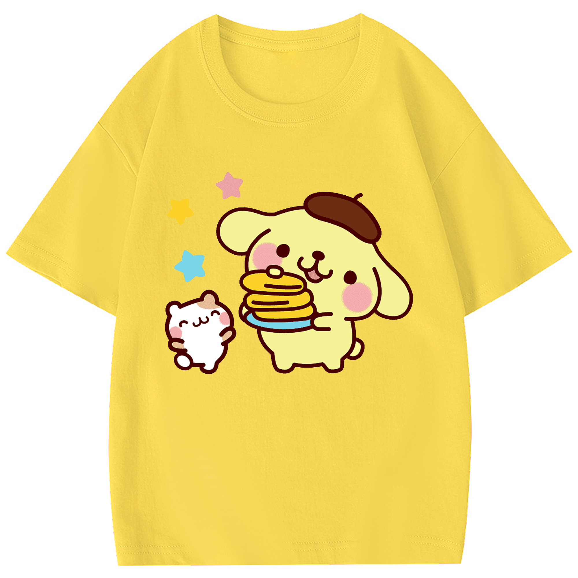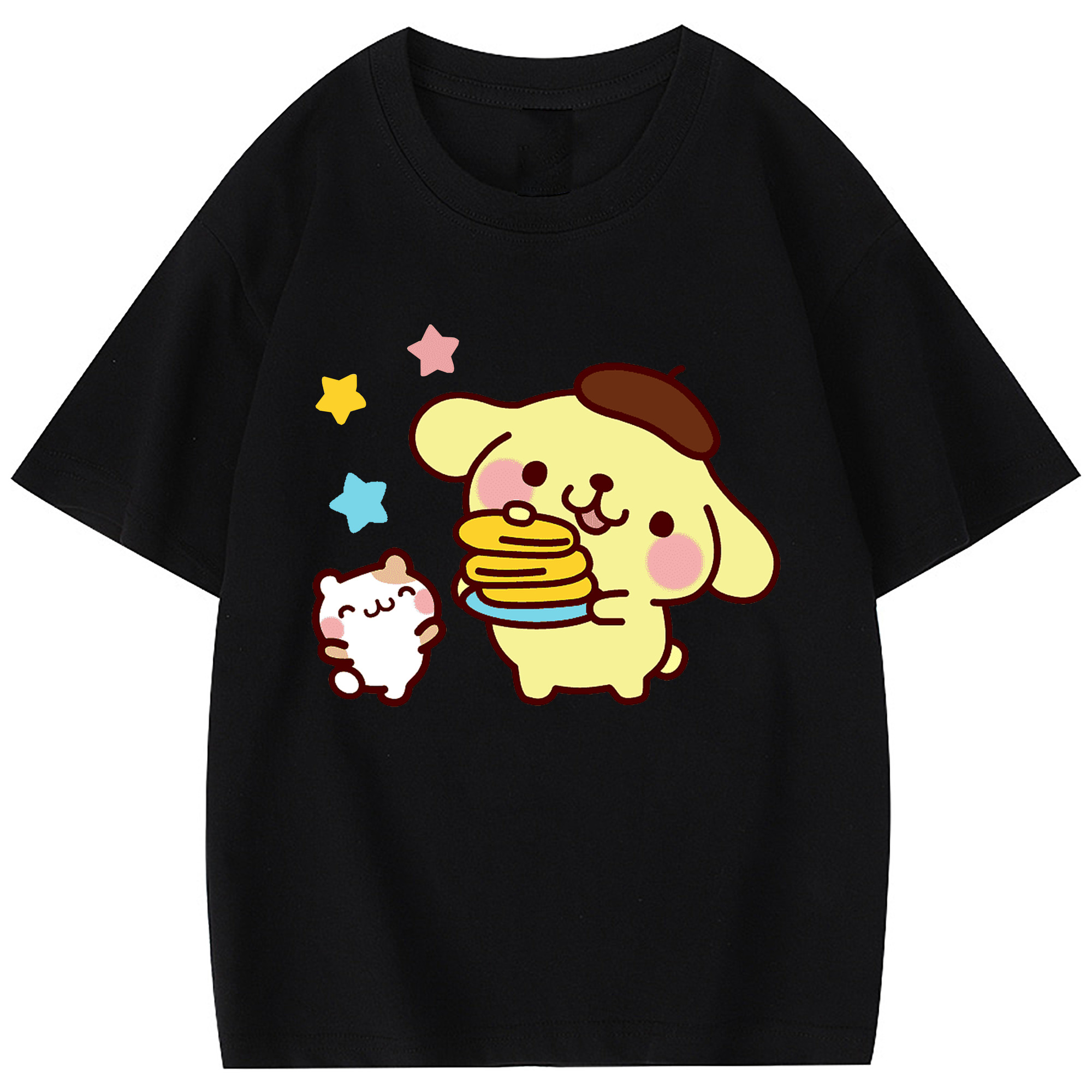 楽しいポムポムプリン - 綿100% 半袖Tシャツ ・ フロントプリント ・ 快適 通気性 ・ 日常使い 散歩 スポーツ用