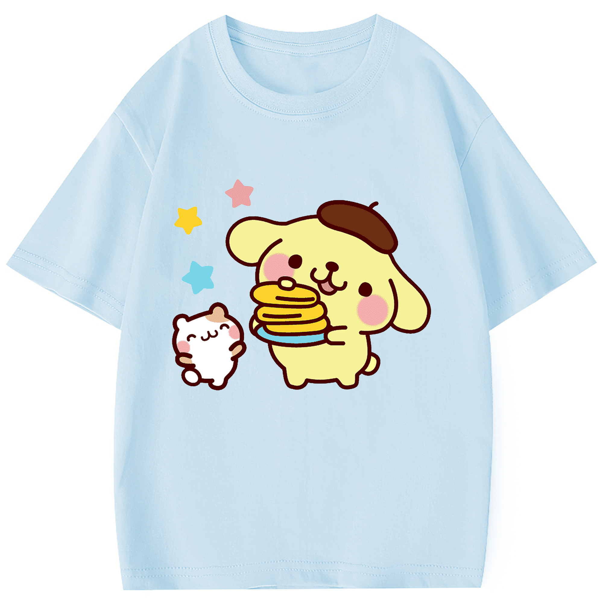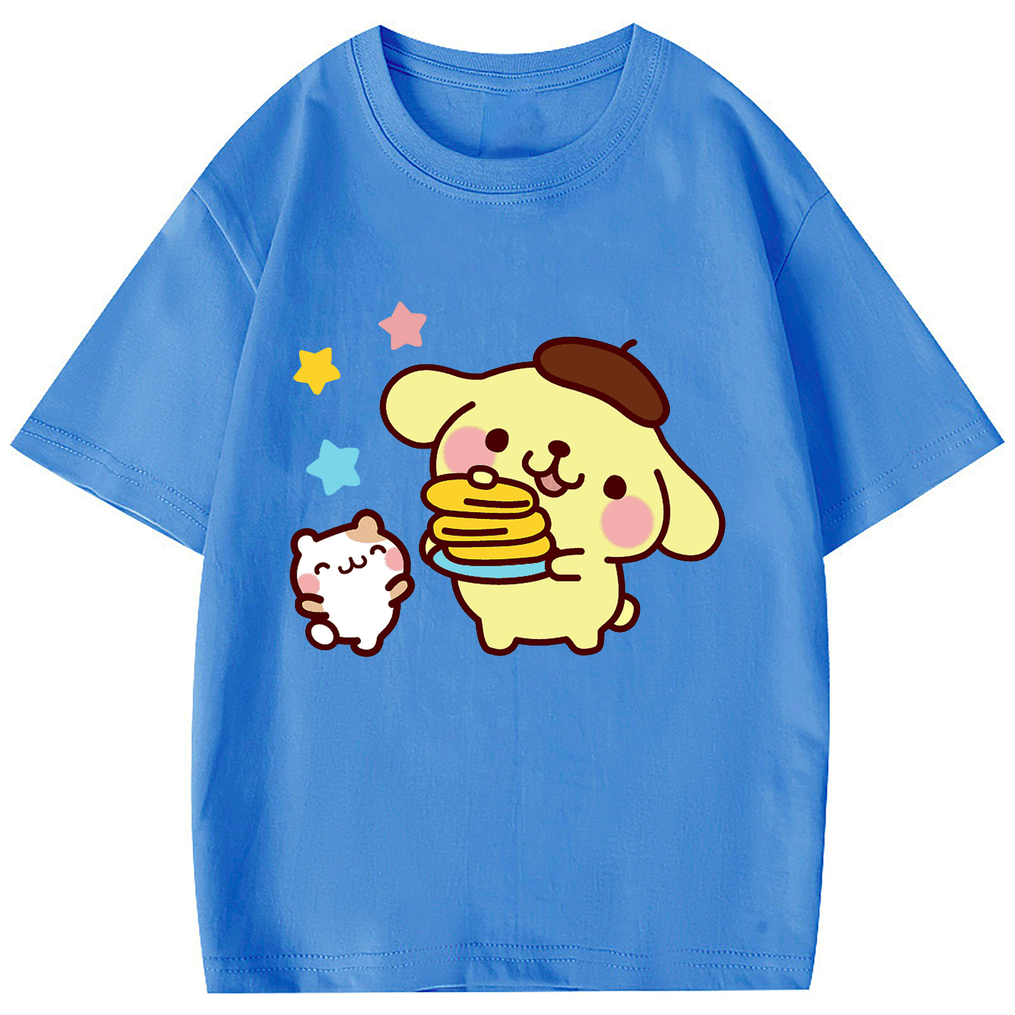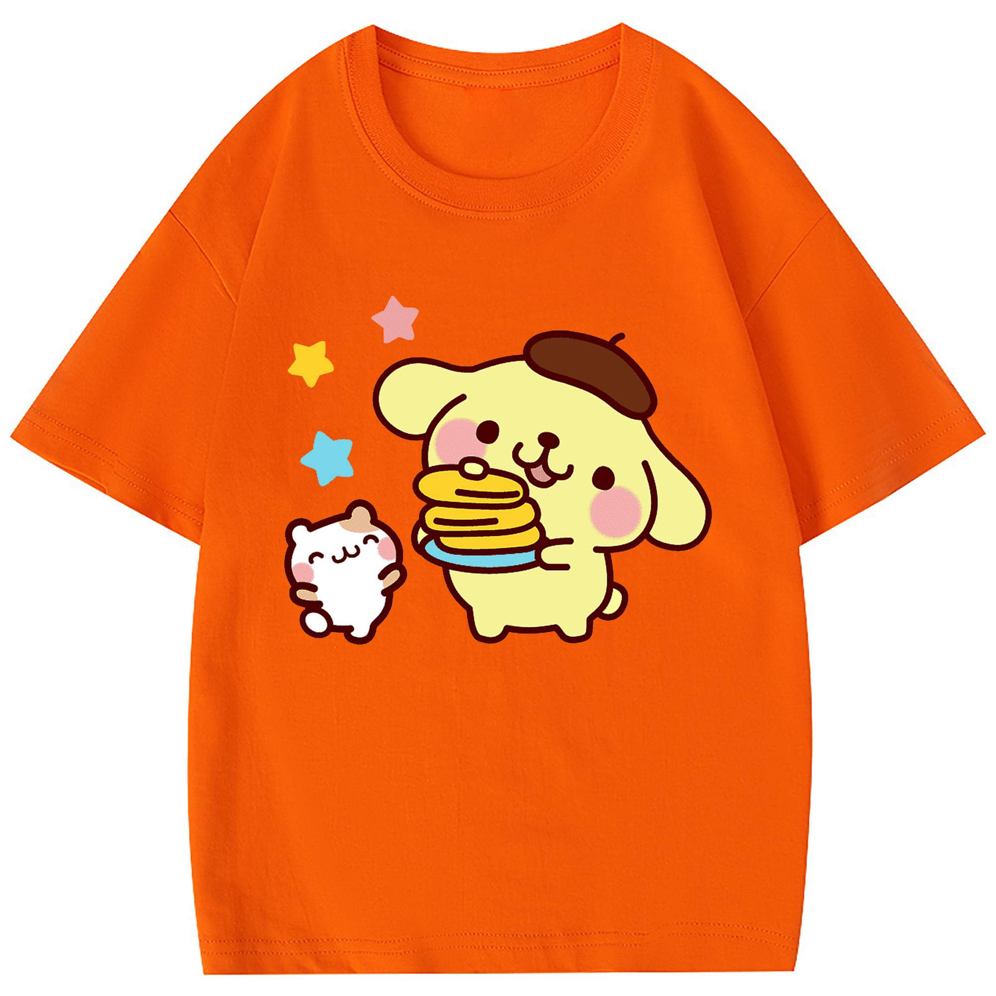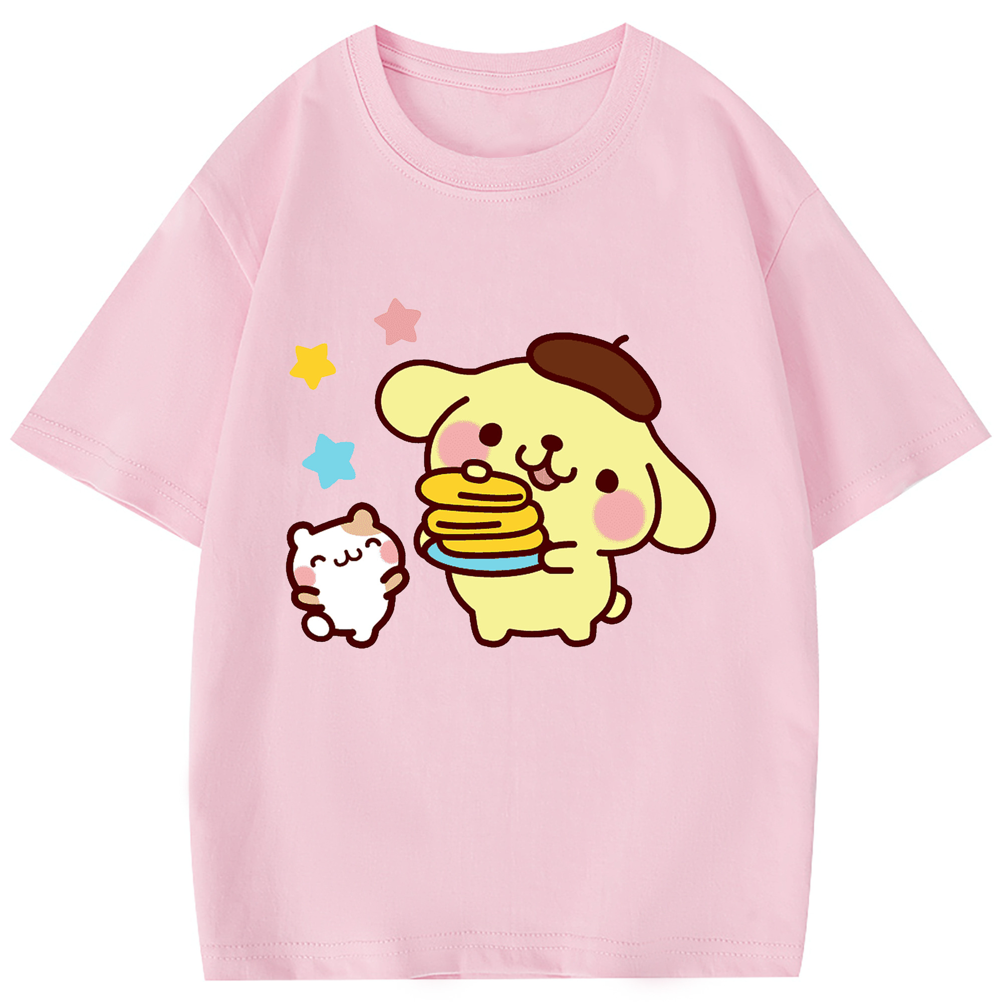 楽しいポムポムプリン - 綿100% 半袖Tシャツ ・ フロントプリント ・ 快適 通気性 ・ 日常使い 散歩 スポーツ用