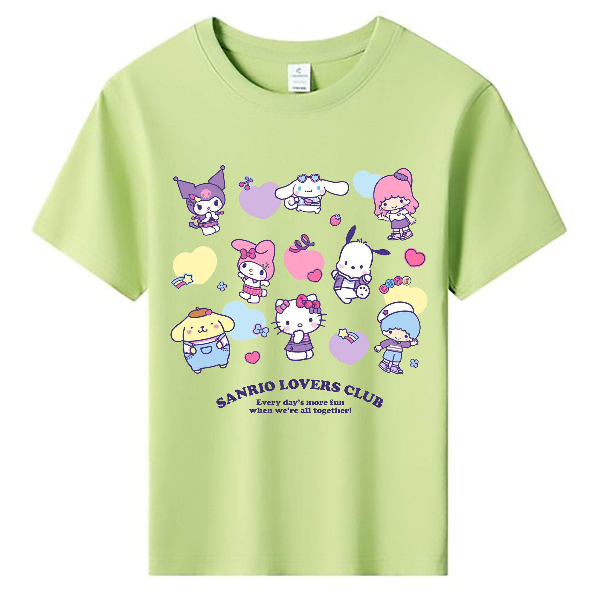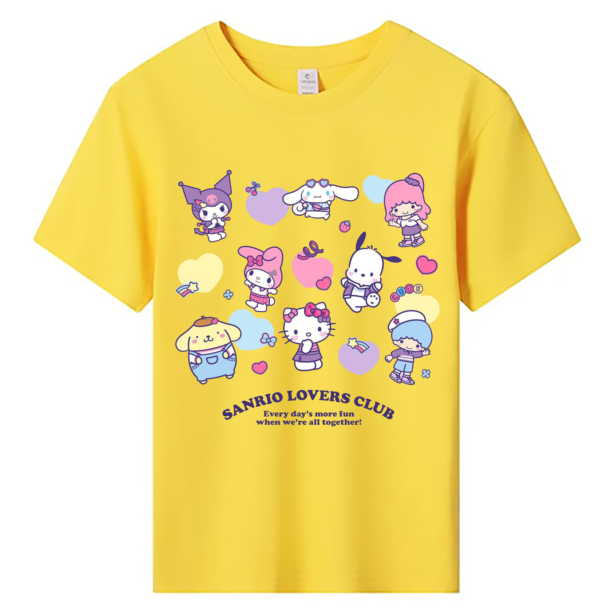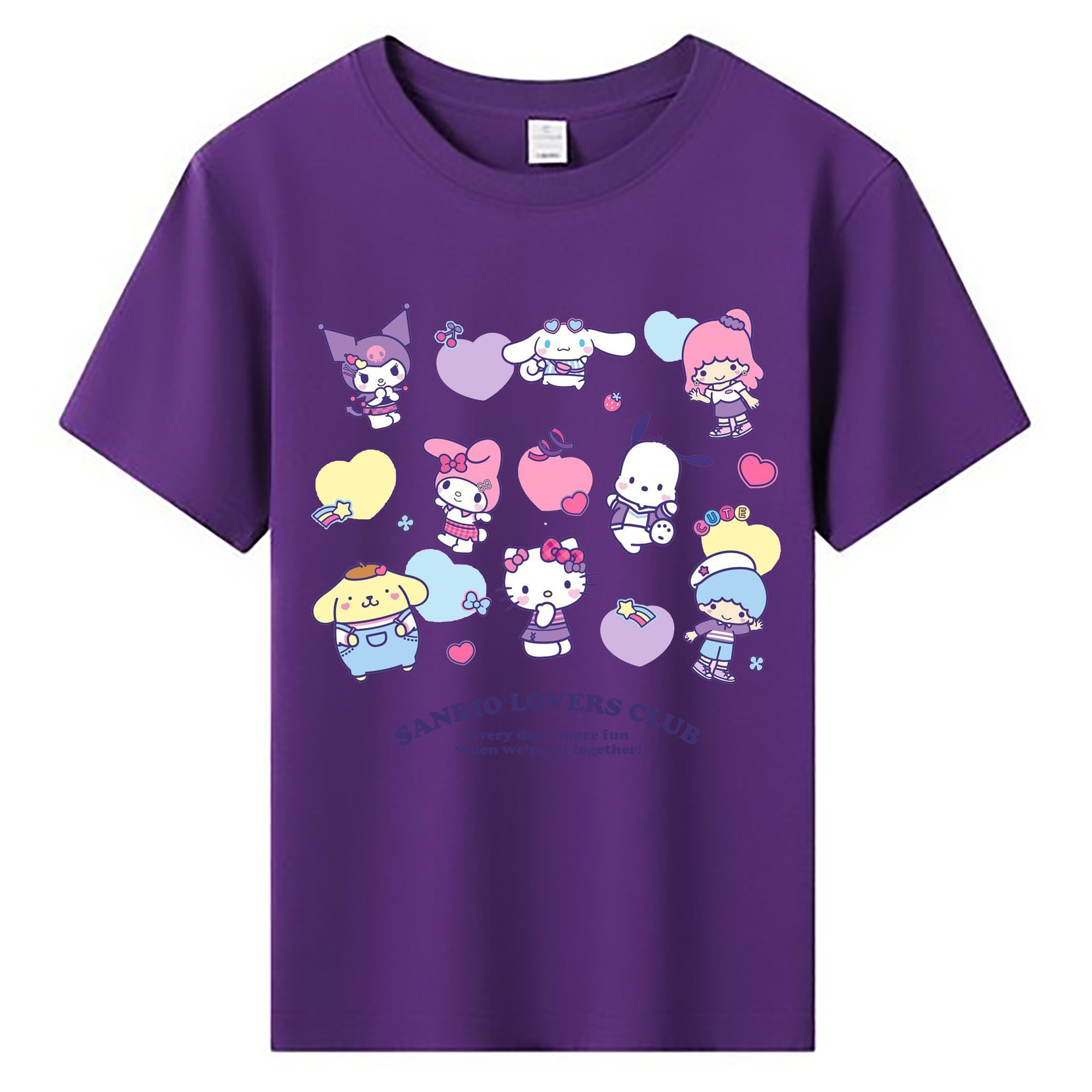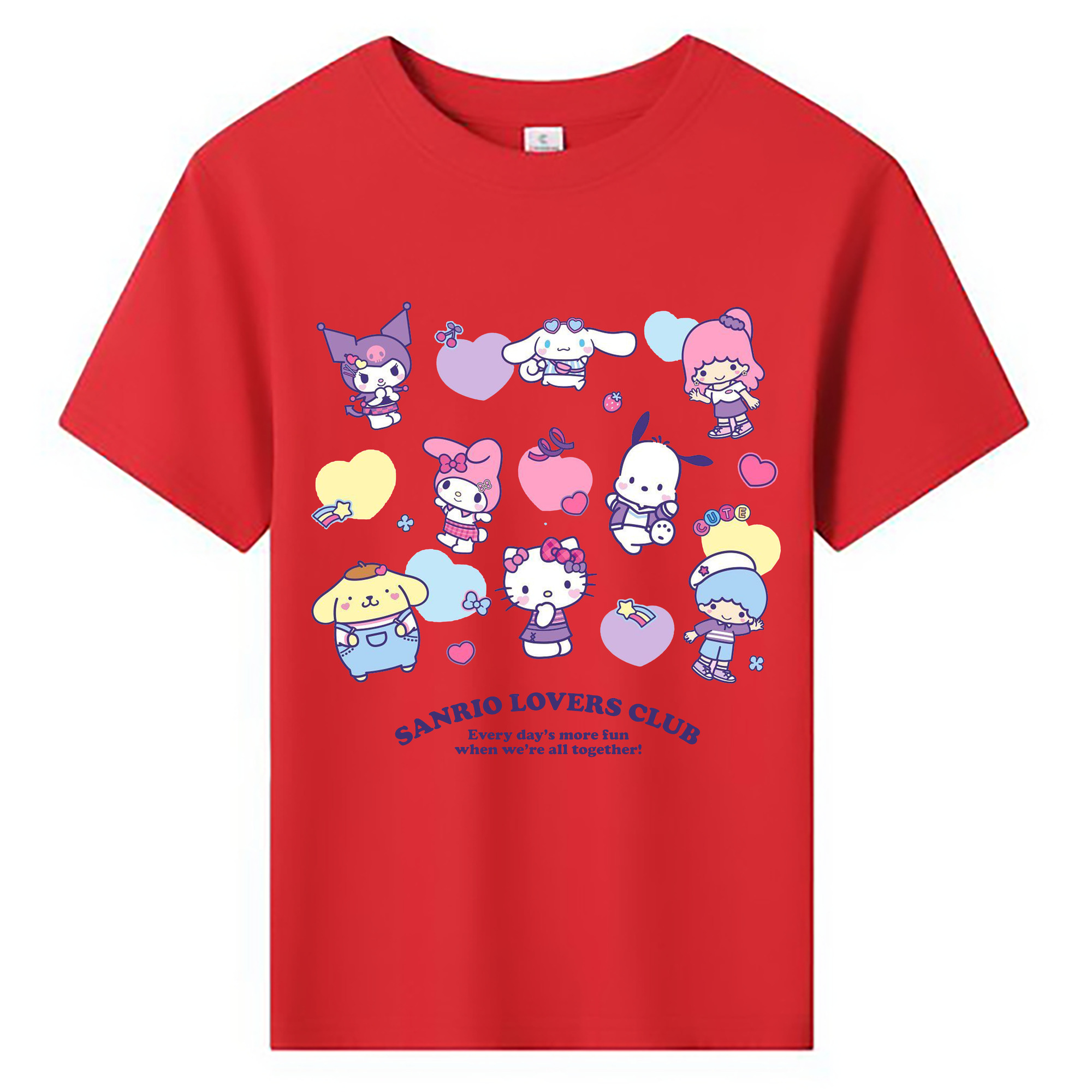 サンリオファミリー - 綿100% キッズTシャツ ・ フロントプリント ・ 快適 通気性 ・ スポーツ カジュアル 散歩用