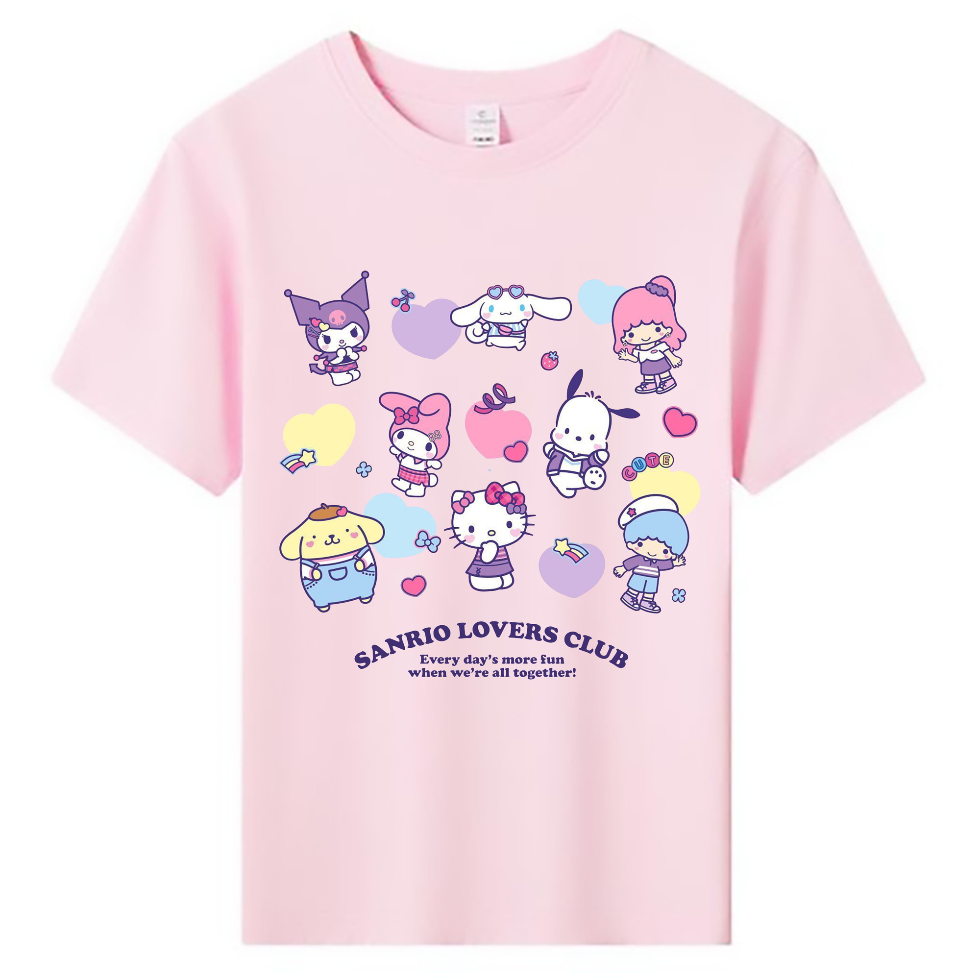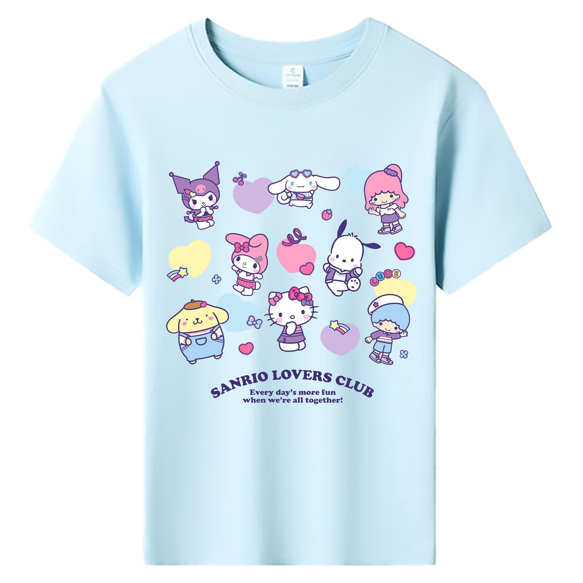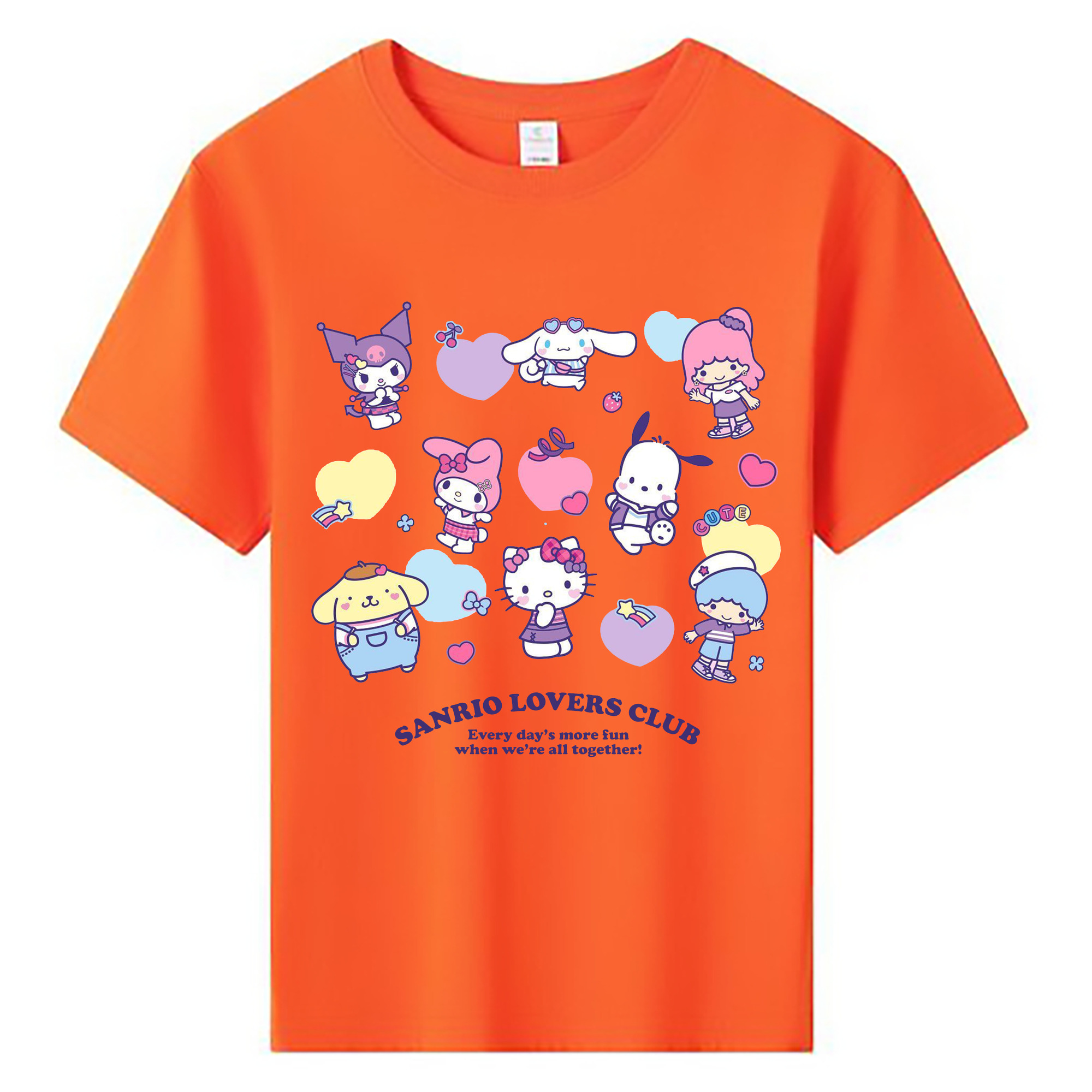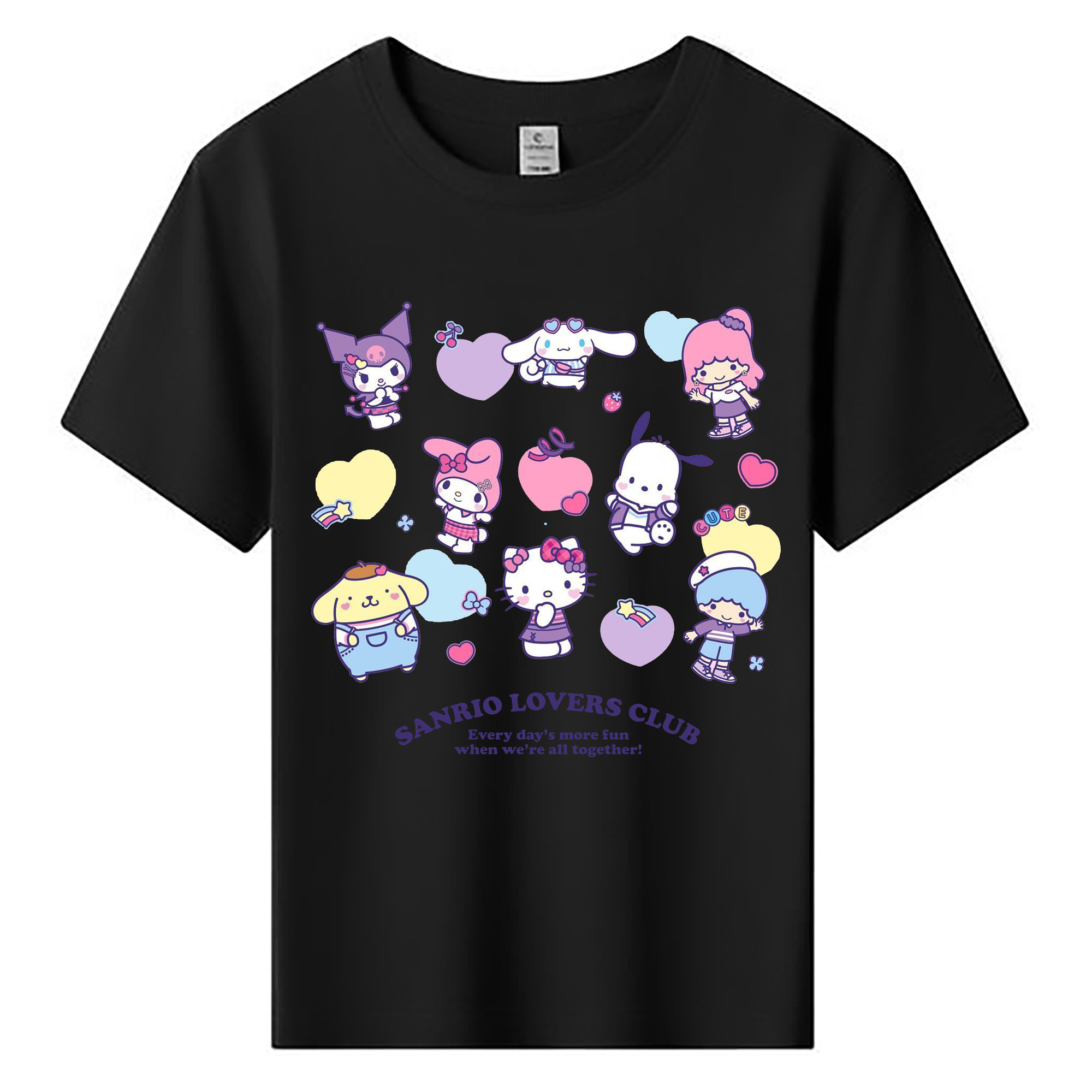 サンリオファミリー - 綿100% キッズTシャツ ・ フロントプリント ・ 快適 通気性 ・ スポーツ カジュアル 散歩用