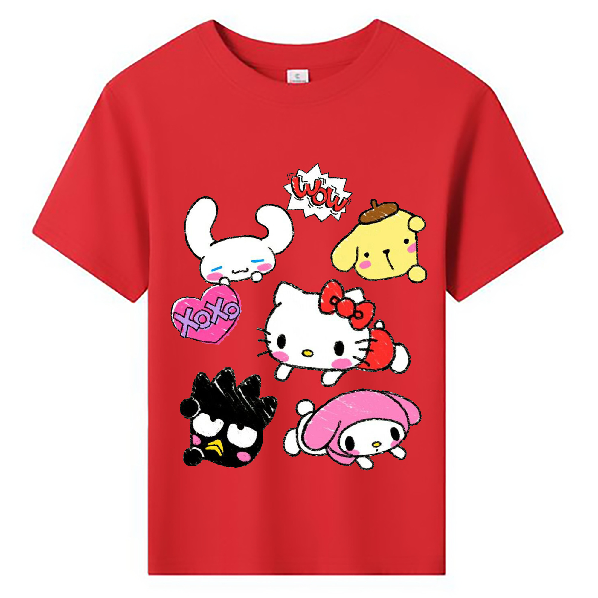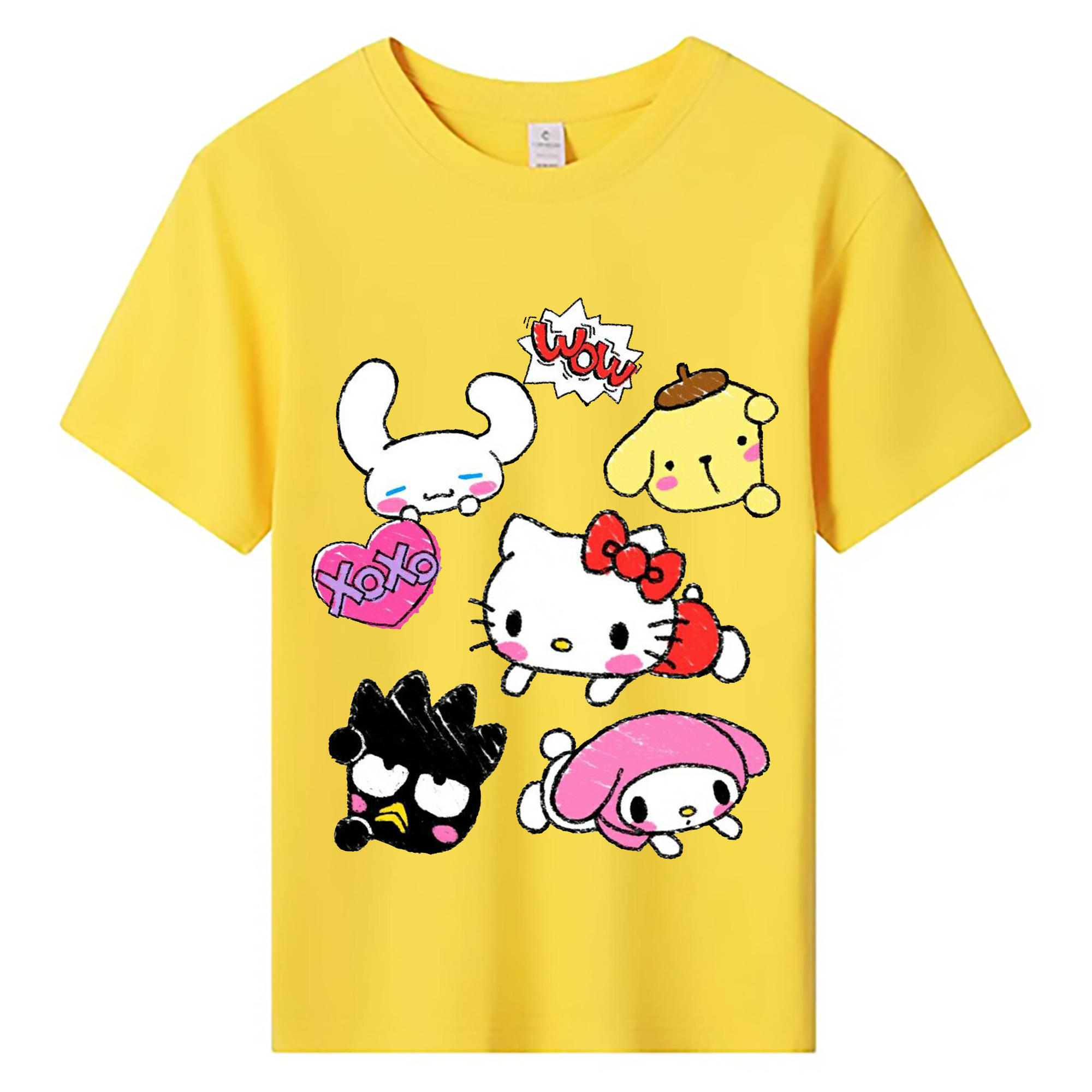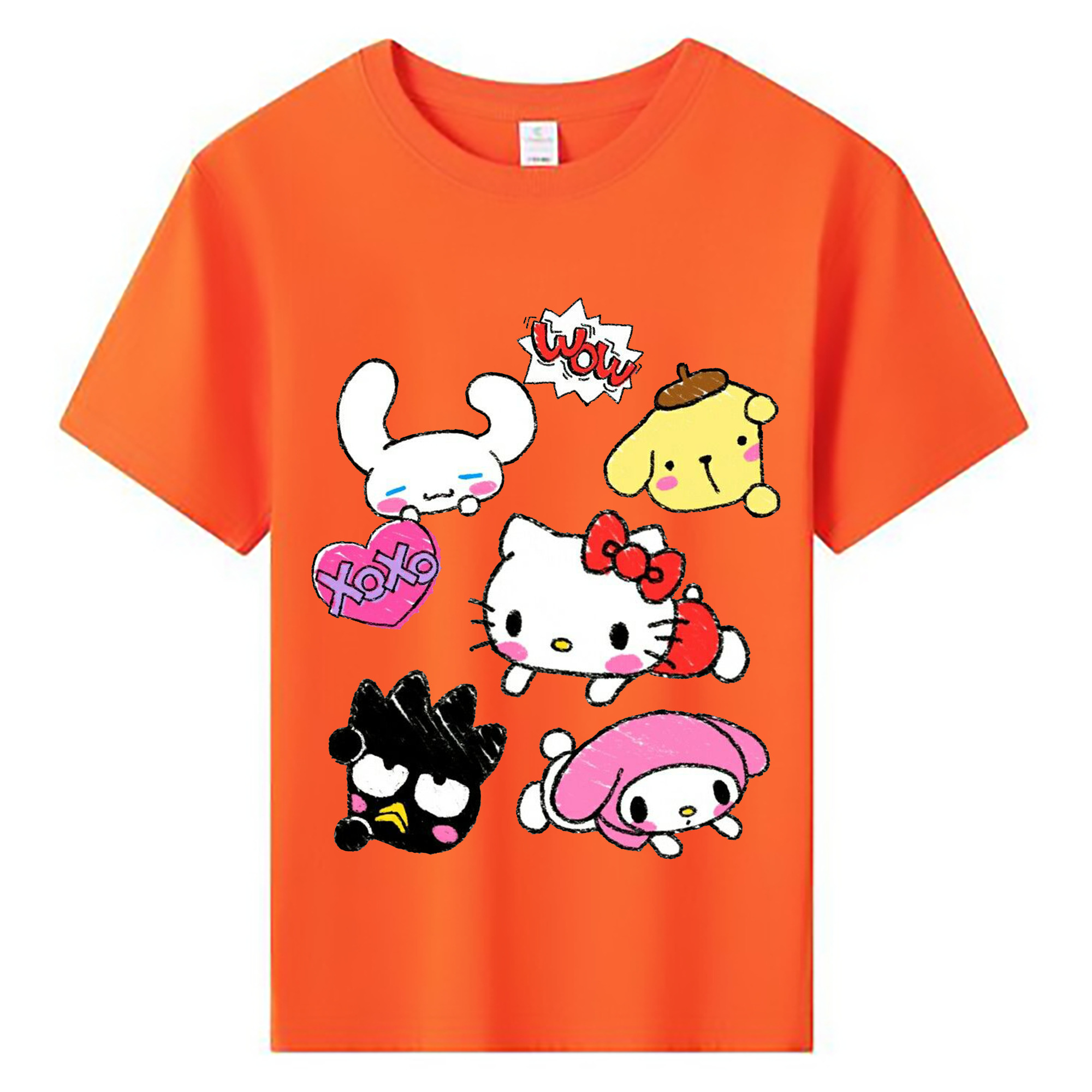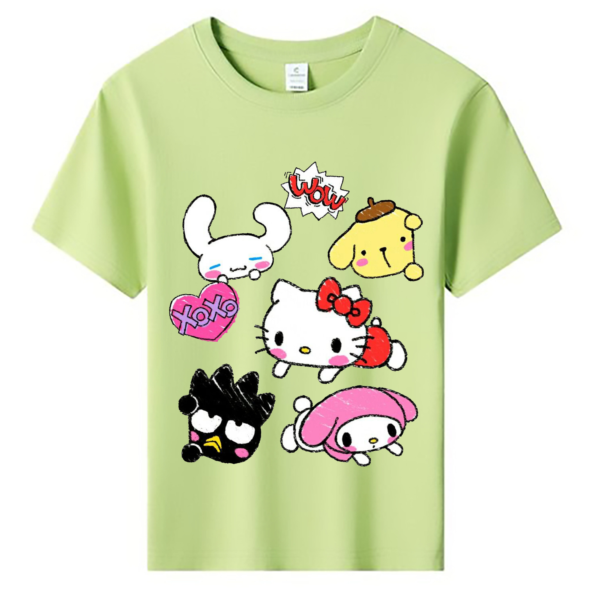 かわいい系サンリオ - 綿100% キッズTシャツ ・ フロントプリント ・ 快適 通気性 ・ スポーツ カジュアル 散歩用