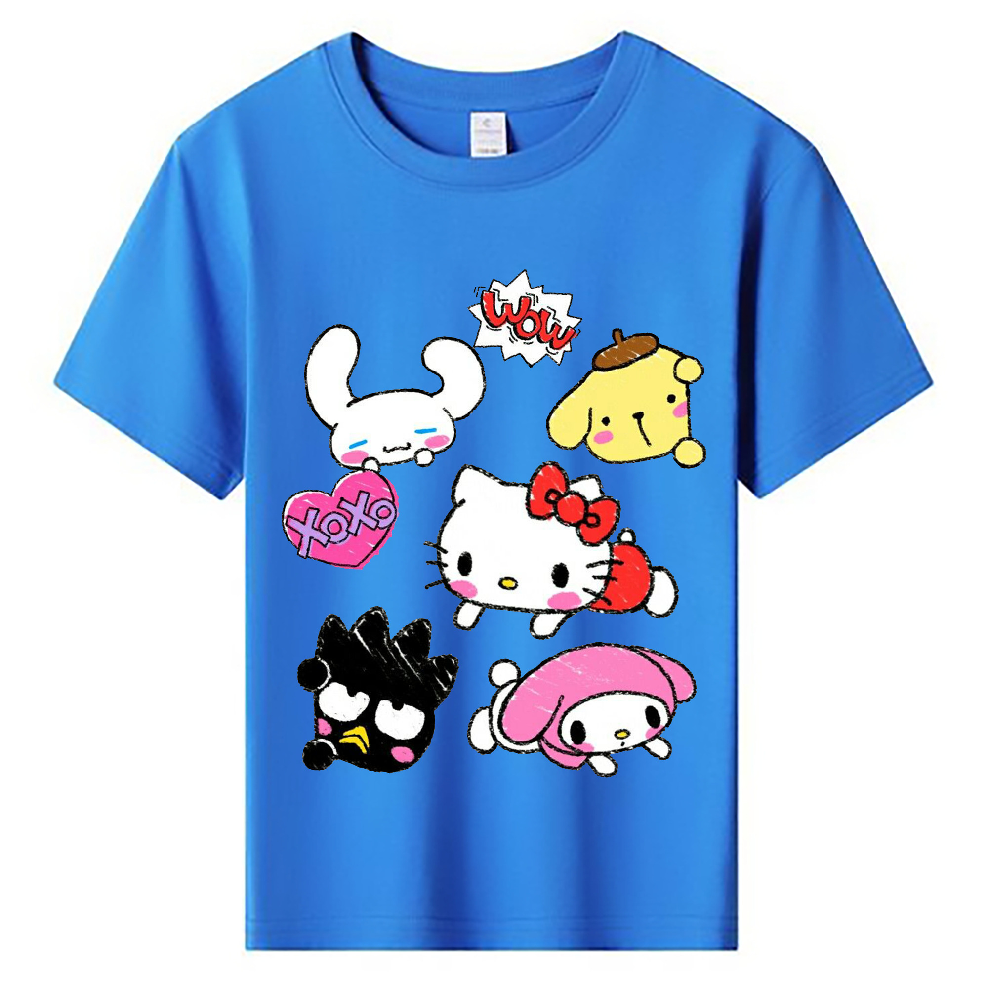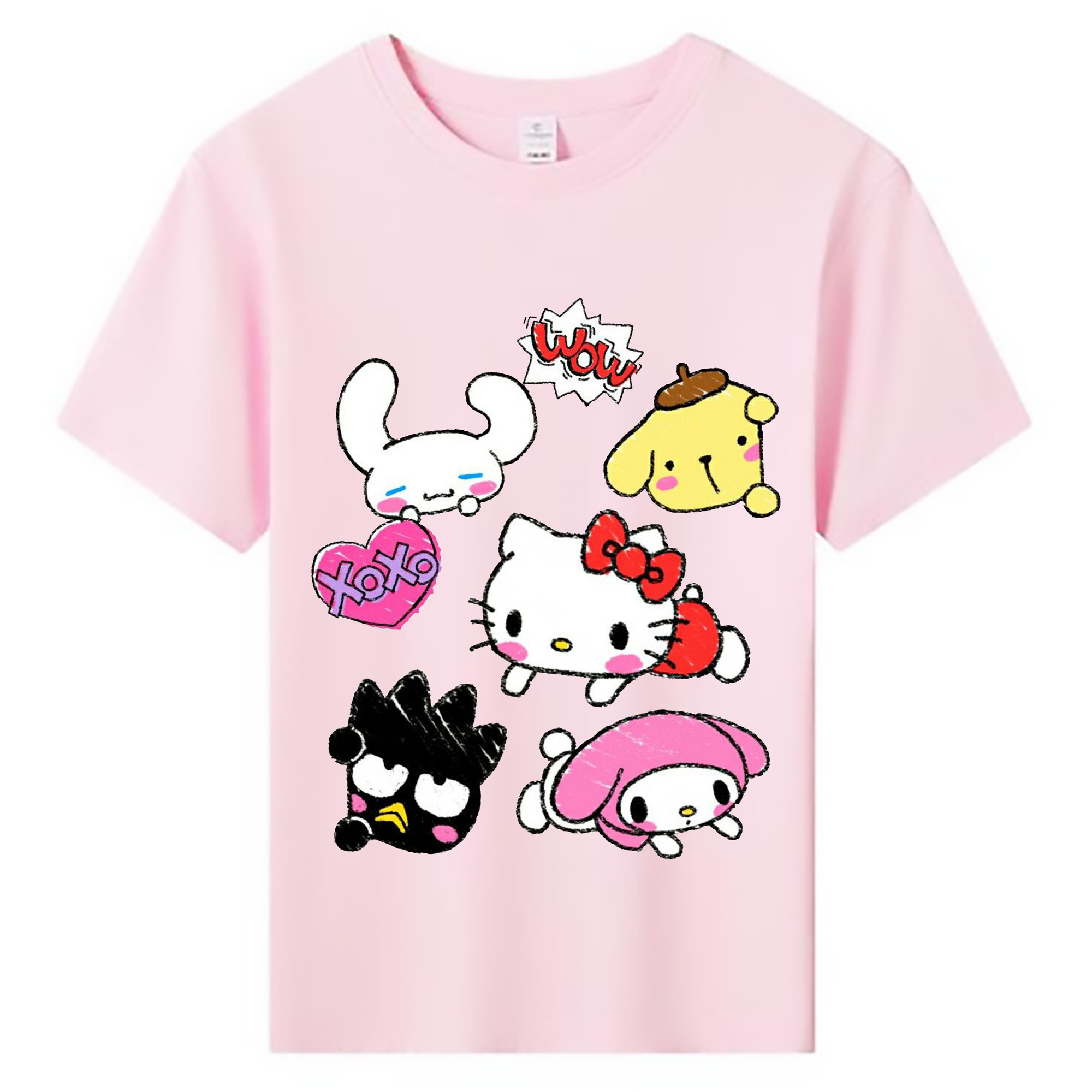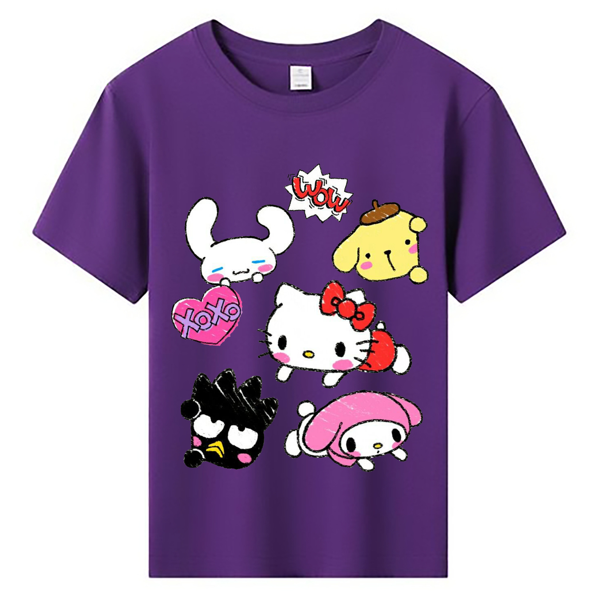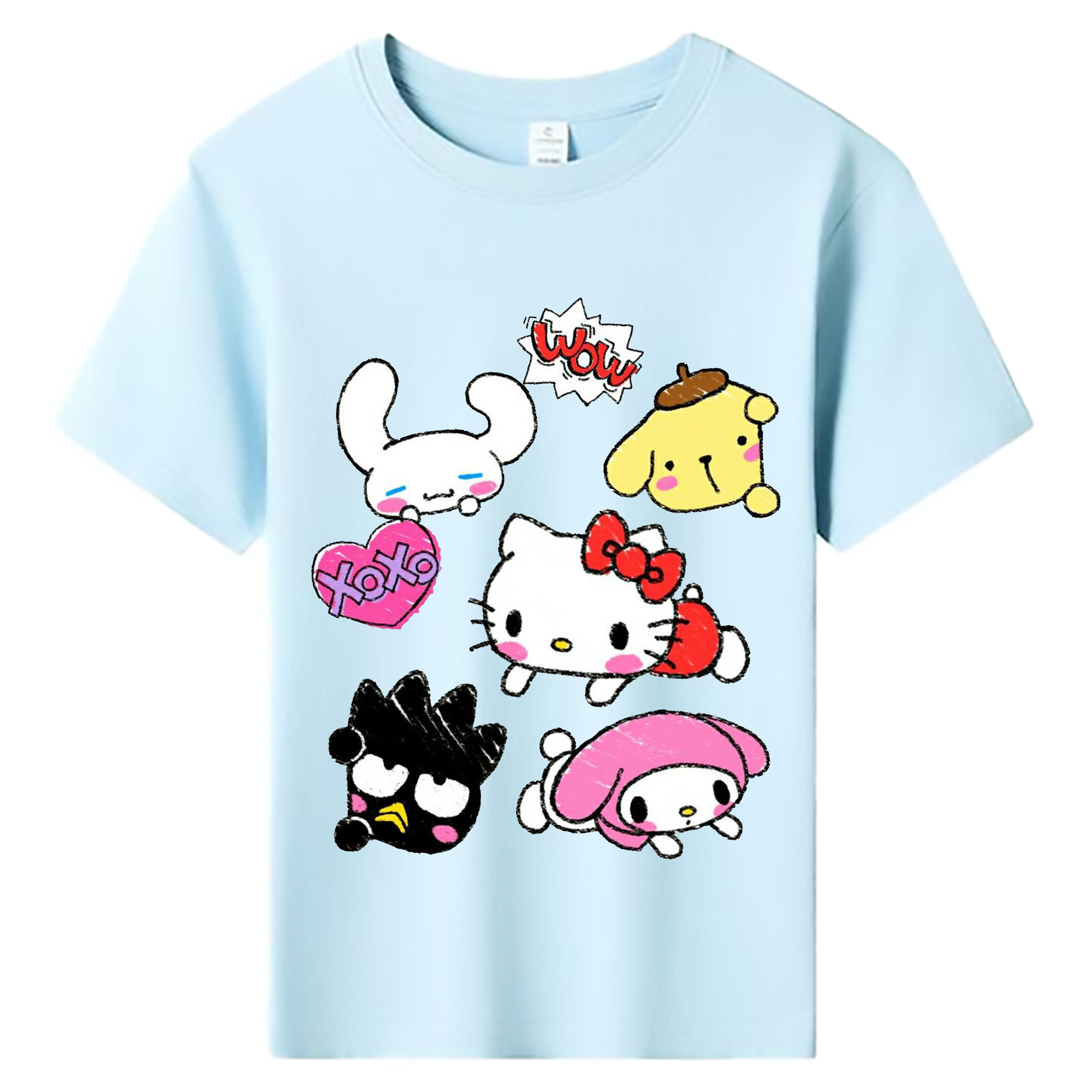 かわいい系サンリオ - 綿100% キッズTシャツ ・ フロントプリント ・ 快適 通気性 ・ スポーツ カジュアル 散歩用
