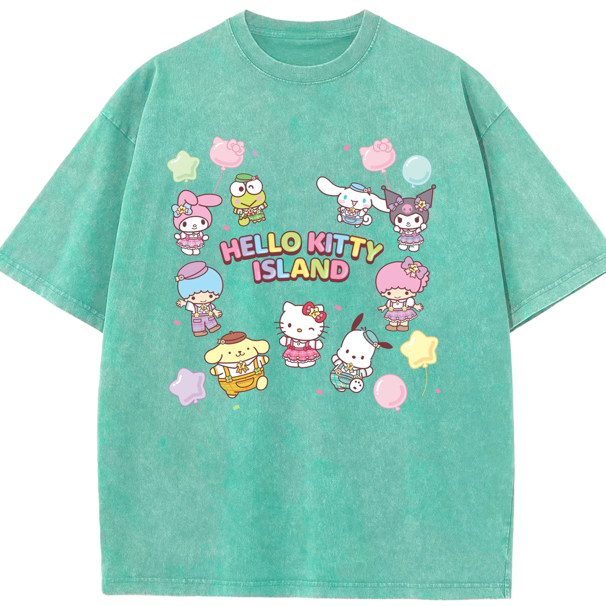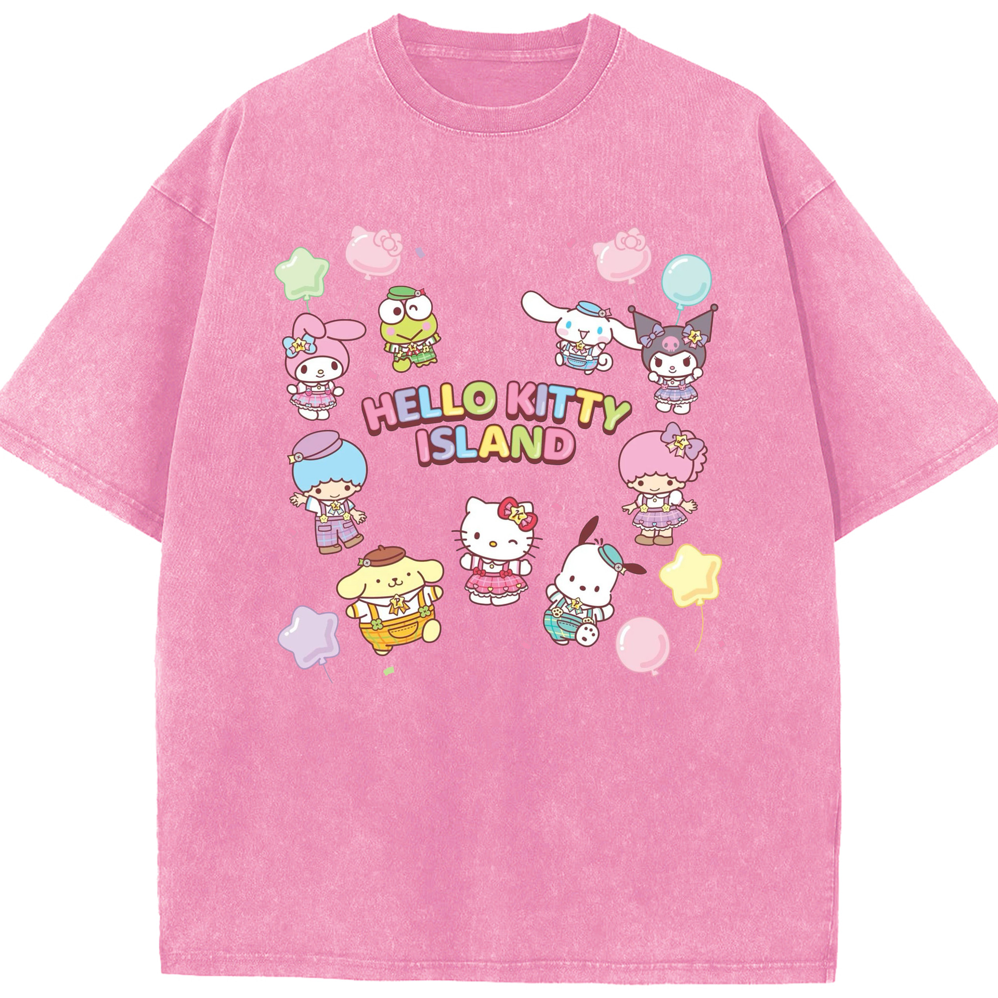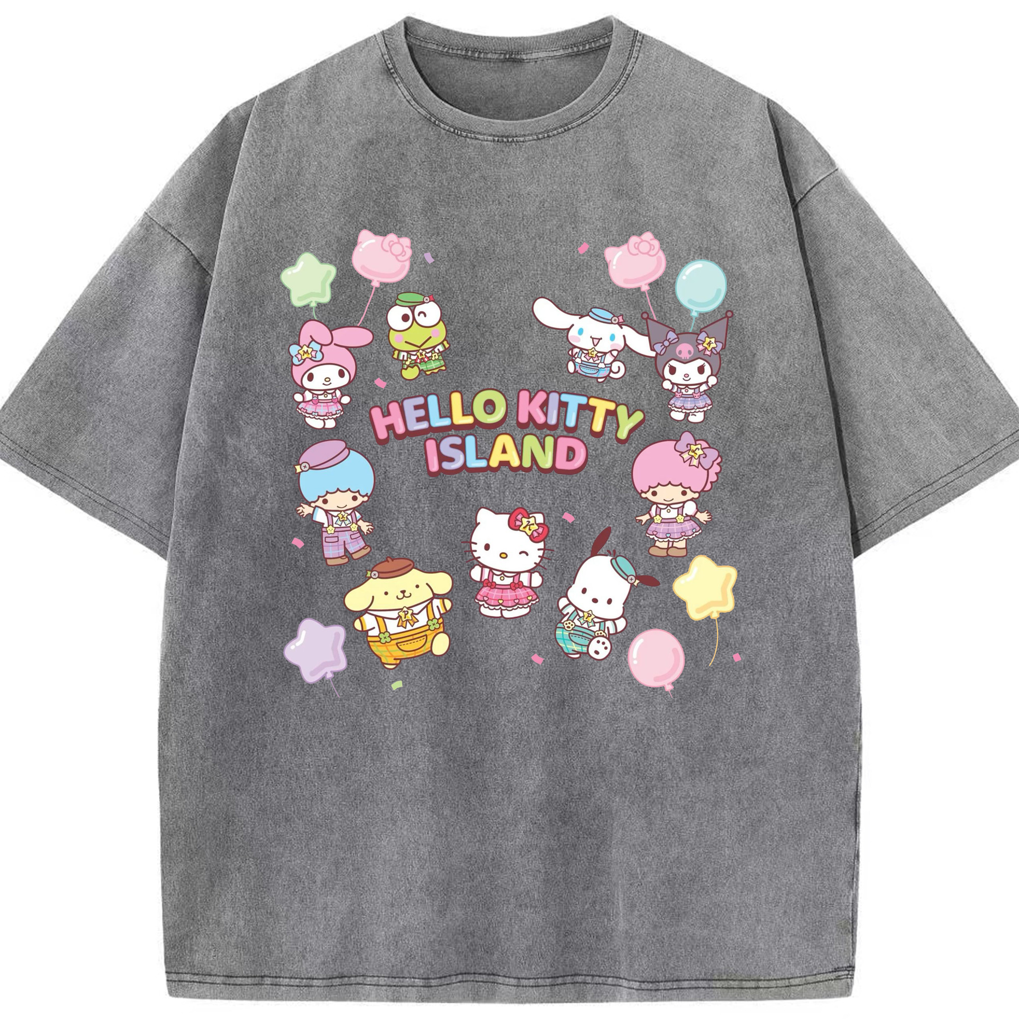 かわいい系サンリオ - 綿100% ヴィンテージ風 半袖Tシャツ ・ フロントプリント ・ 柔らか肌触り ・ 通気性 快適 ・ スポーツ カジュアル 外出用