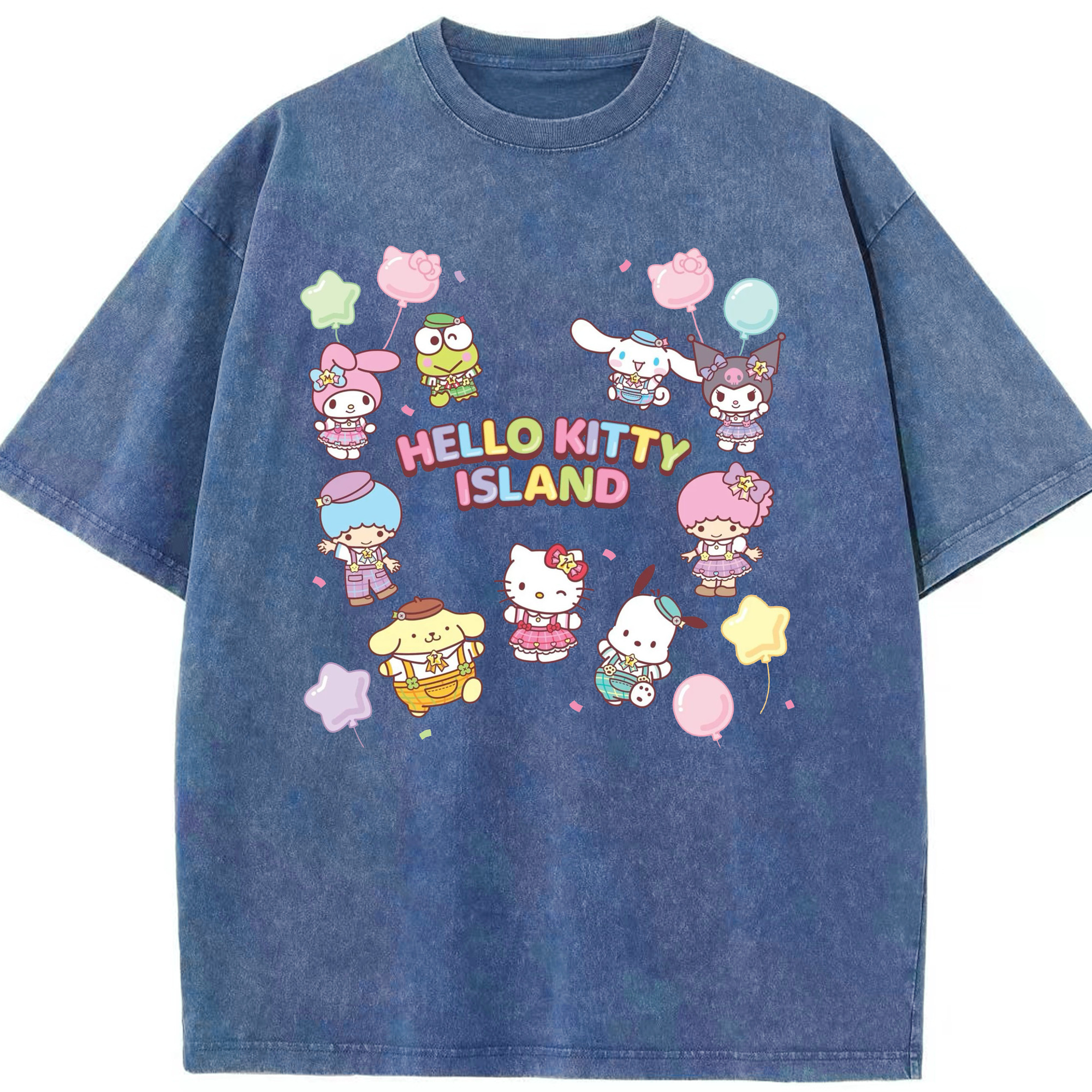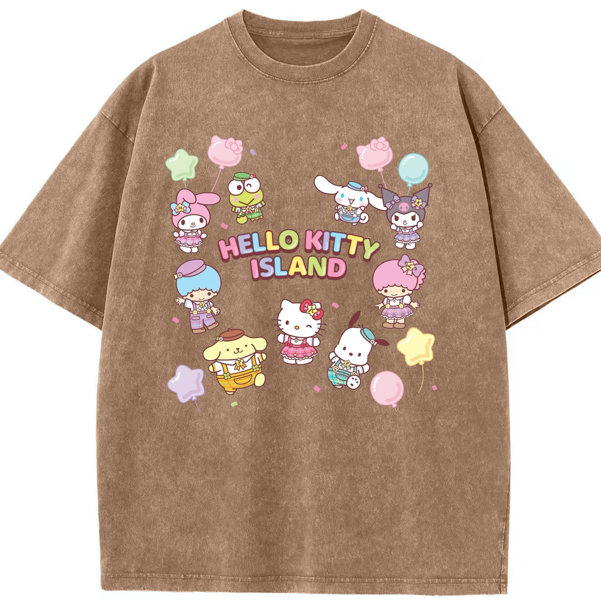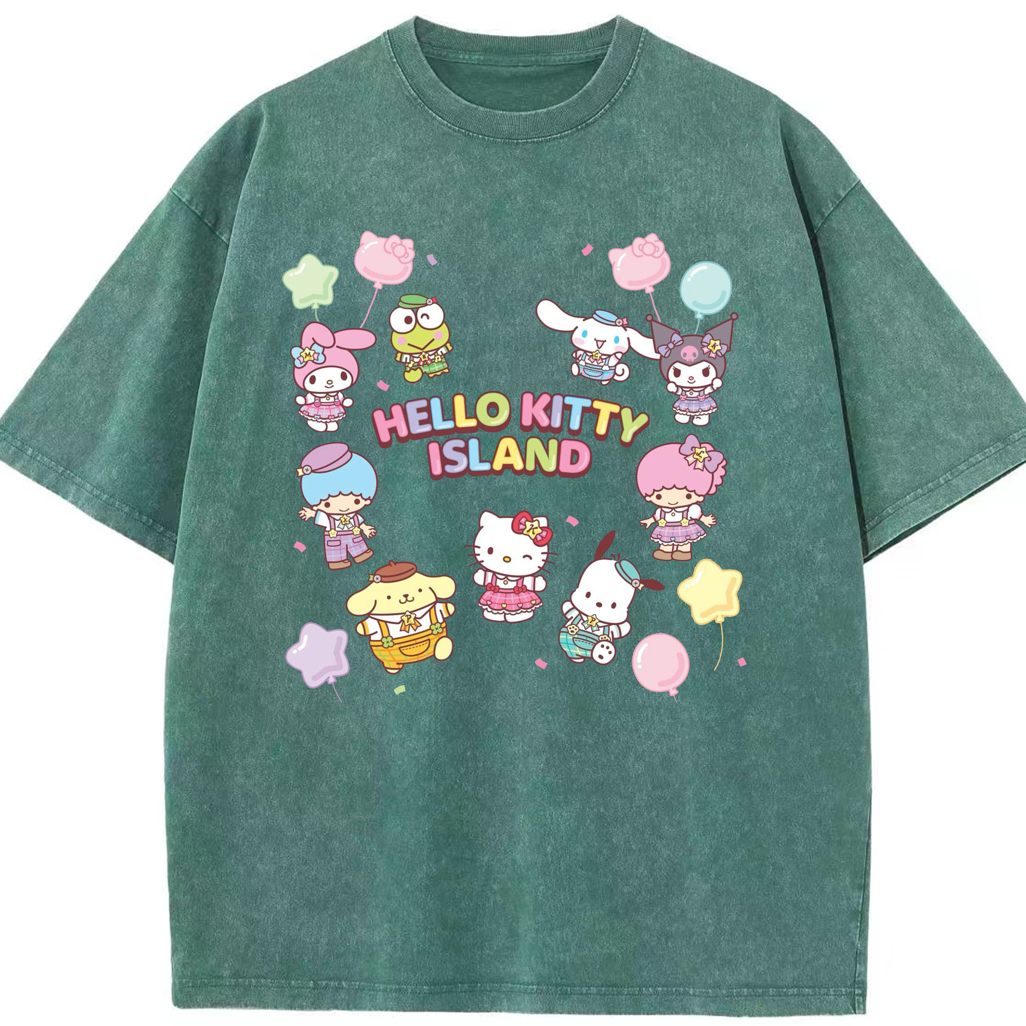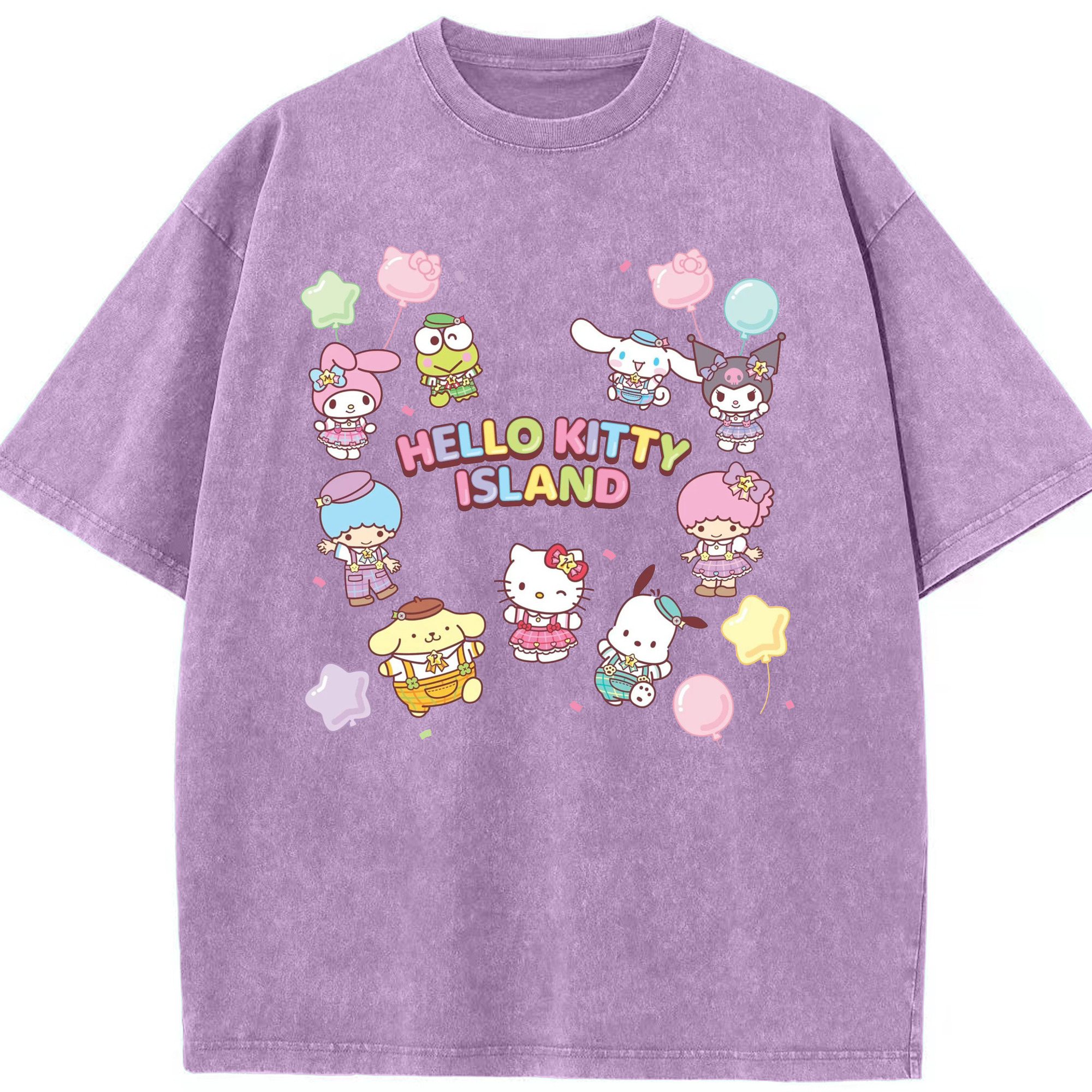 かわいい系サンリオ - 綿100% ヴィンテージ風 半袖Tシャツ ・ フロントプリント ・ 柔らか肌触り ・ 通気性 快適 ・ スポーツ カジュアル 外出用