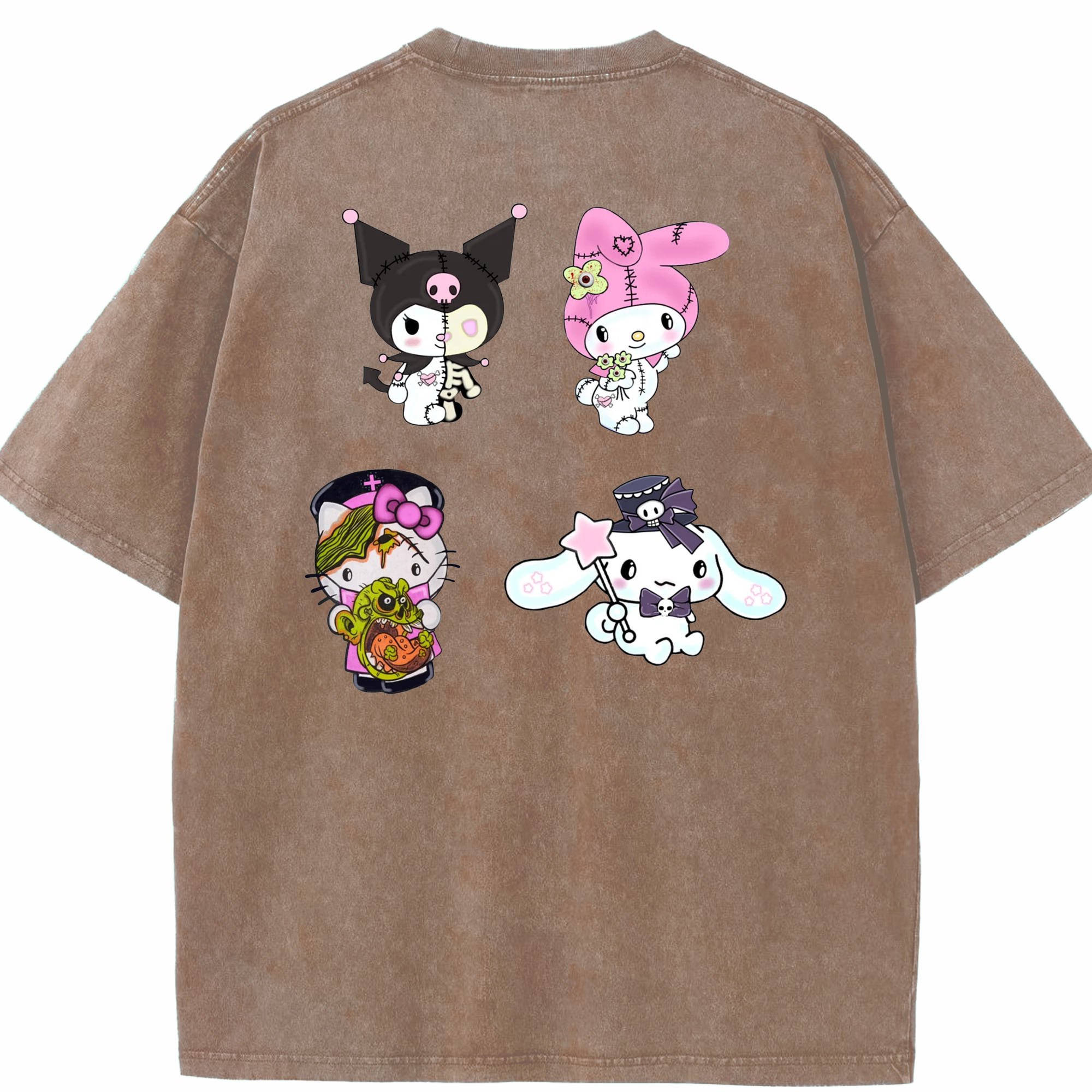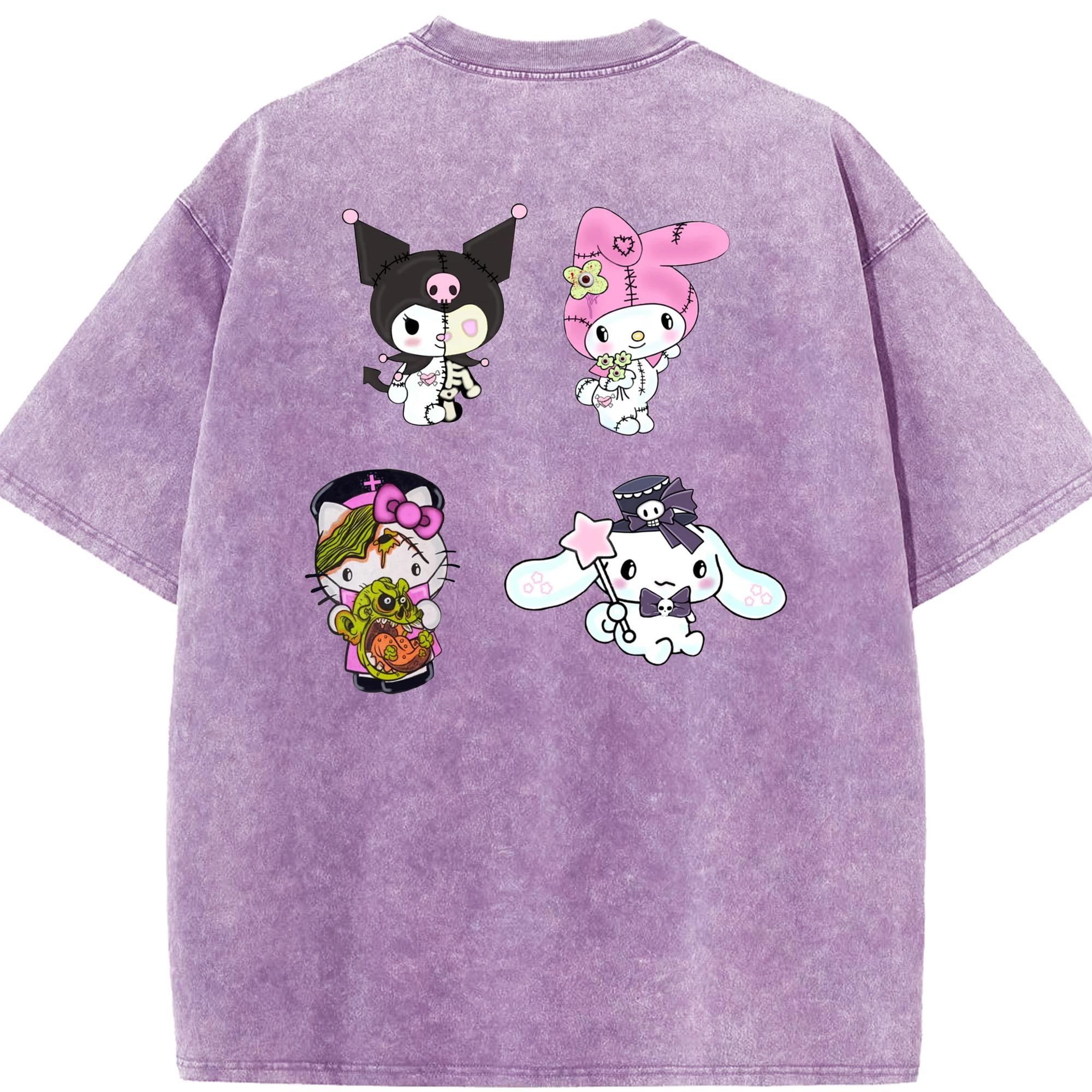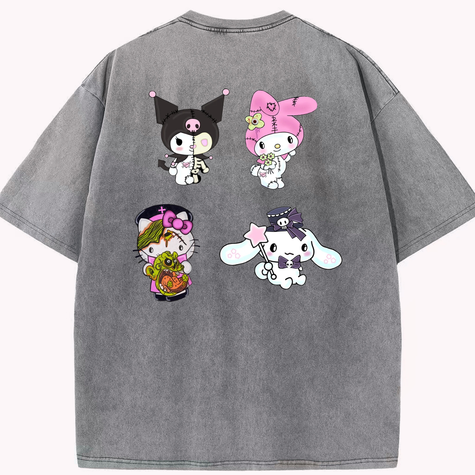 サンリオ&ちいかわ - 綿100% ヴィンテージ風 半袖Tシャツ ・ 背面プリント ・ 柔らか肌触り ・ 通気性 快適 ・ スポーツ カジュアル 外出用