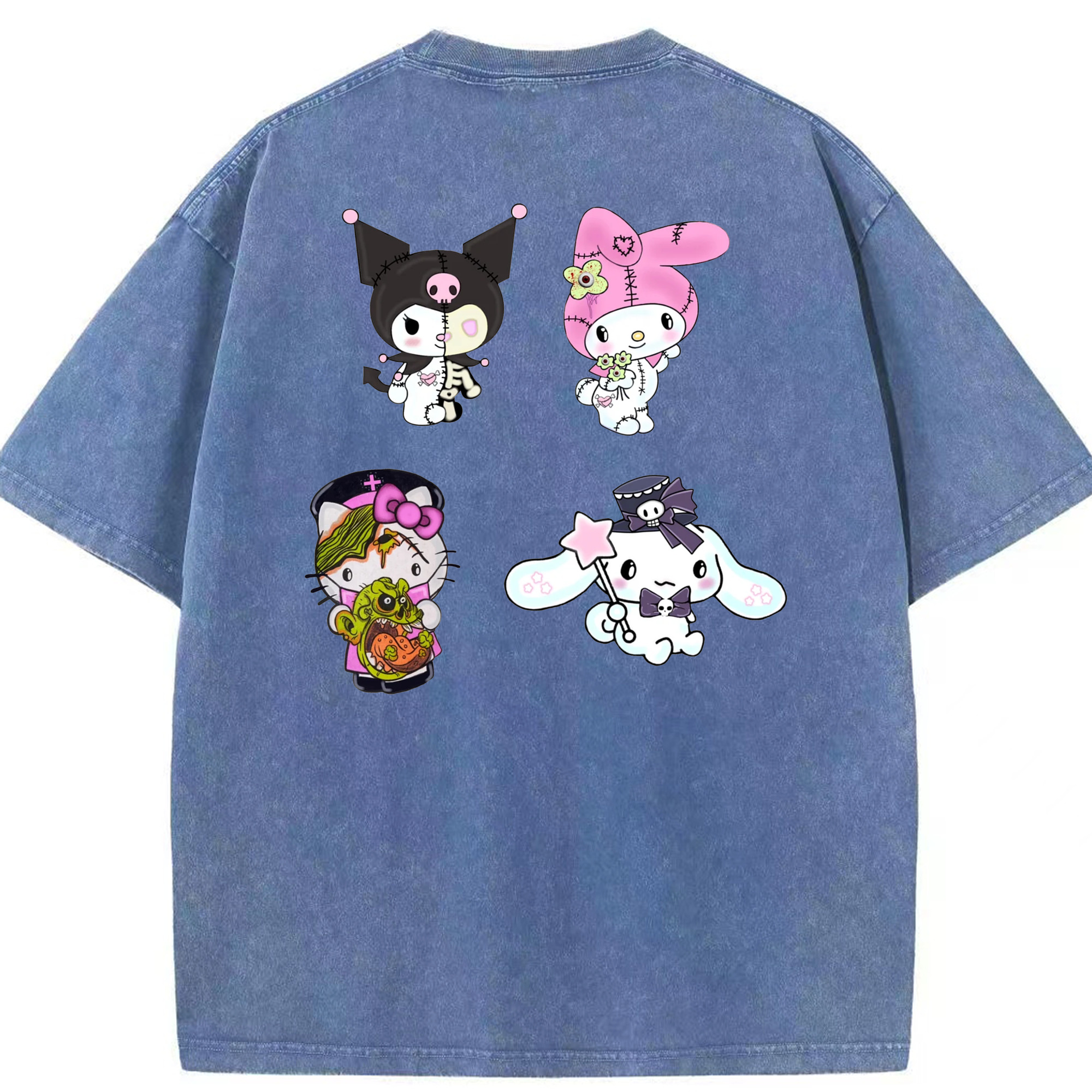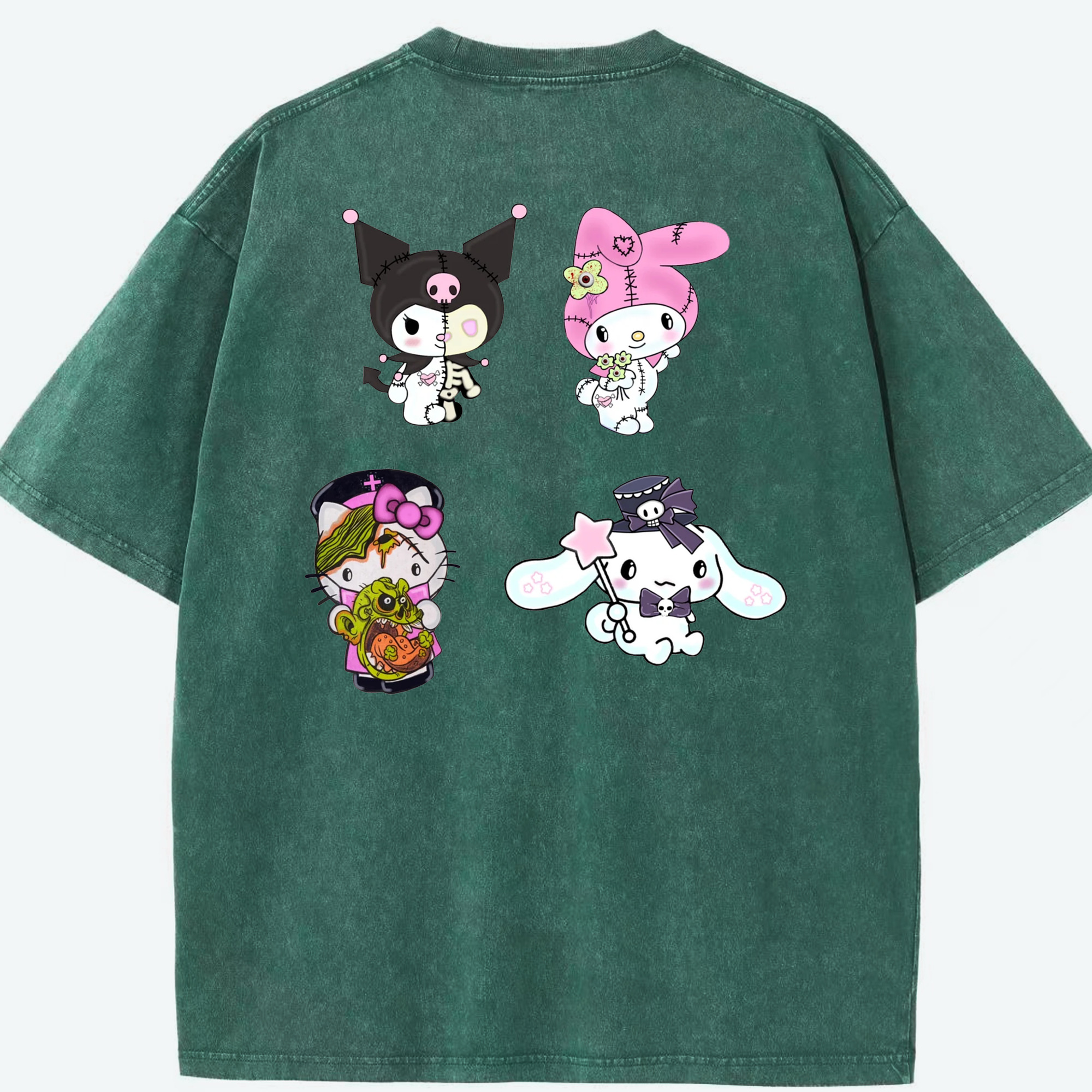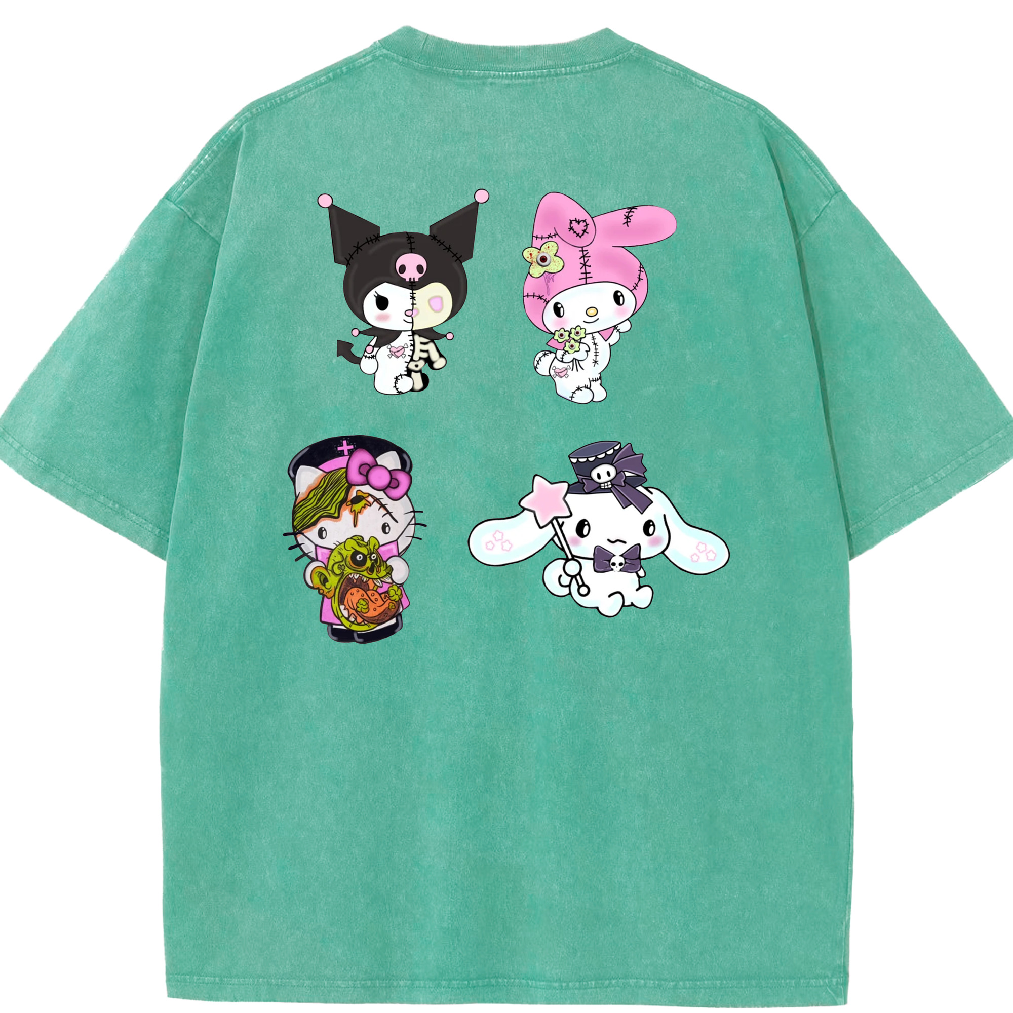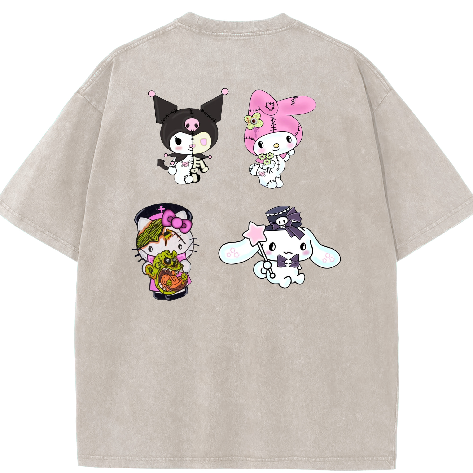 サンリオ&ちいかわ - 綿100% ヴィンテージ風 半袖Tシャツ ・ 背面プリント ・ 柔らか肌触り ・ 通気性 快適 ・ スポーツ カジュアル 外出用