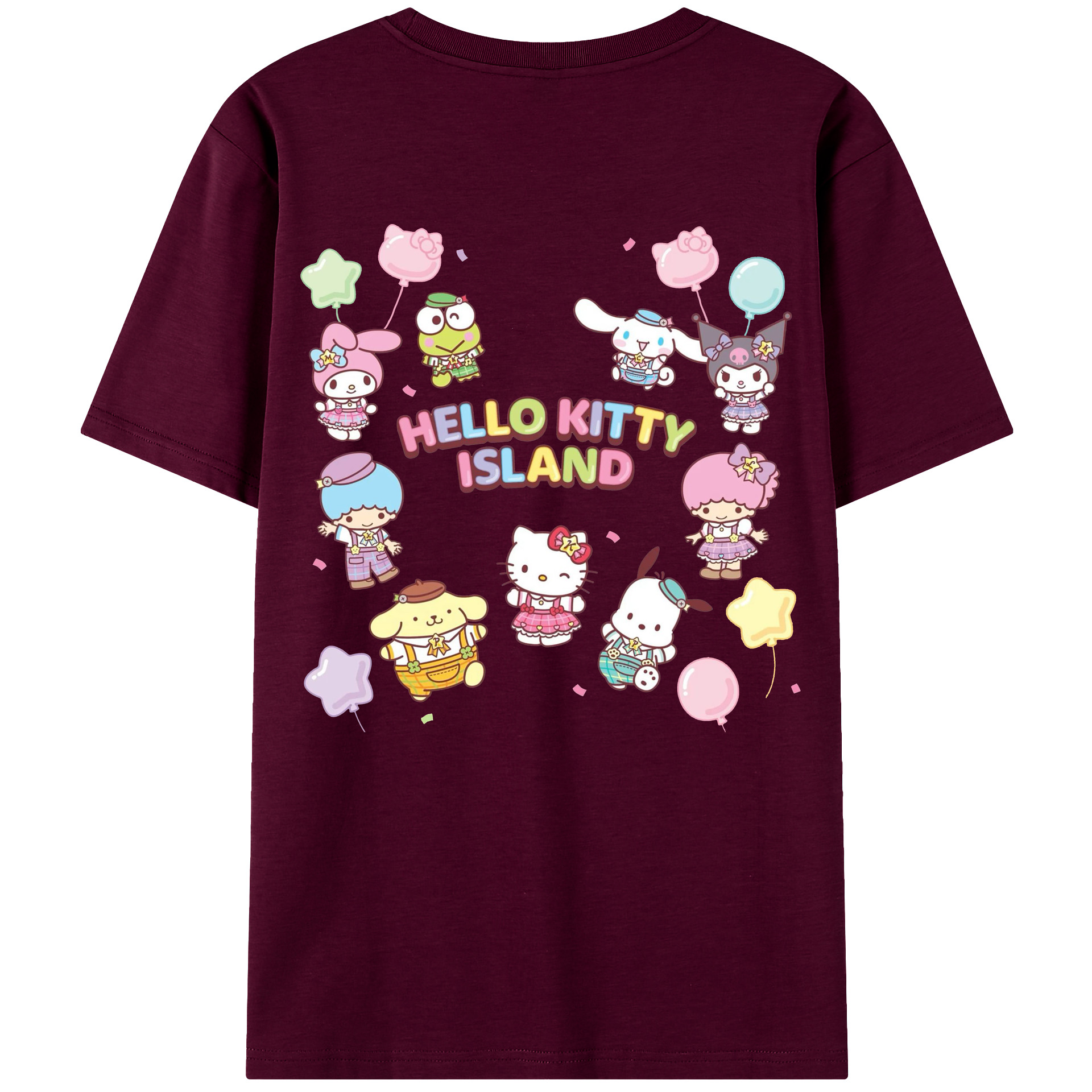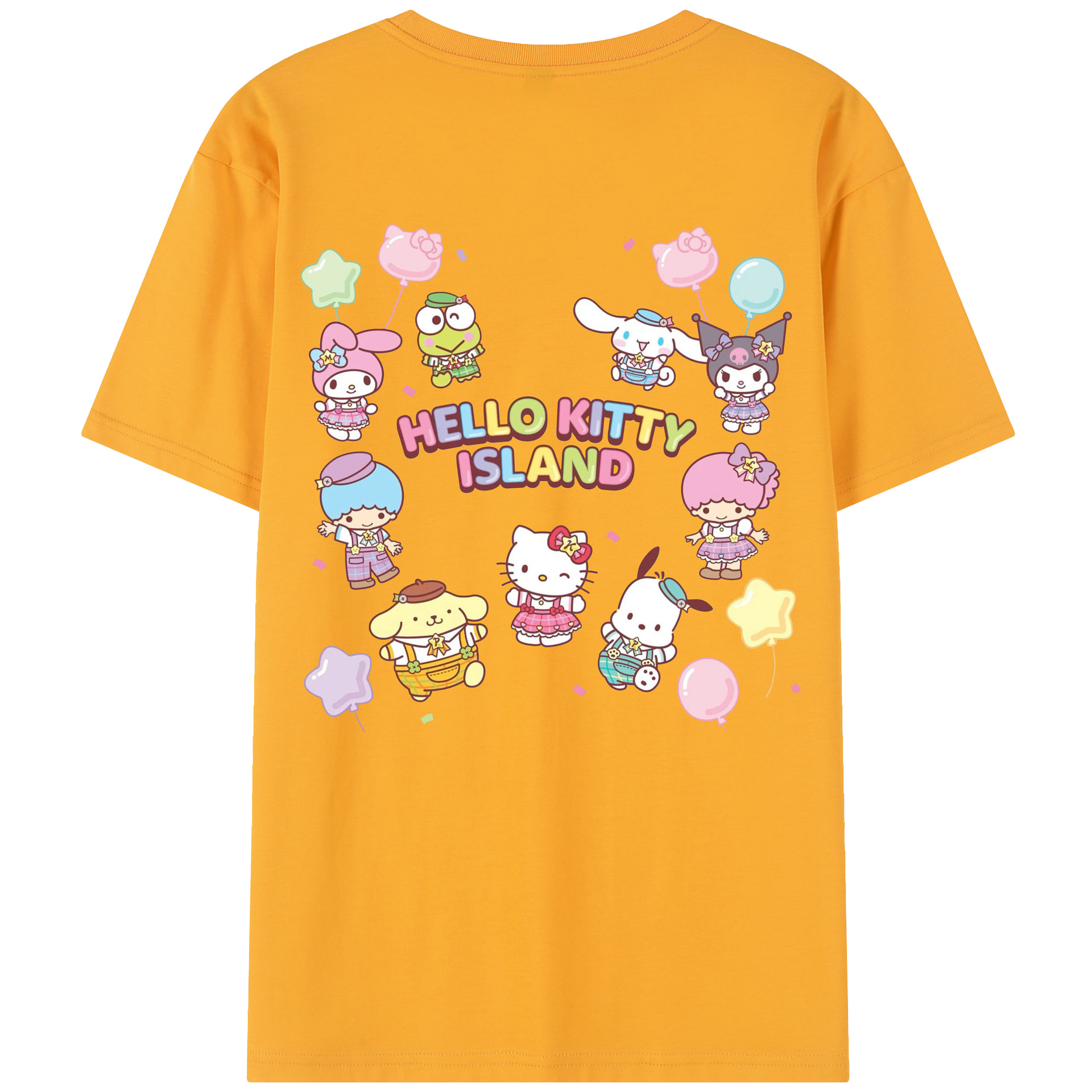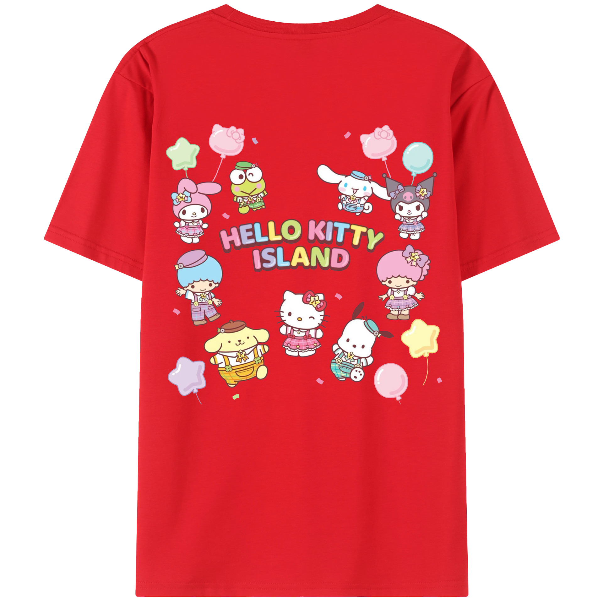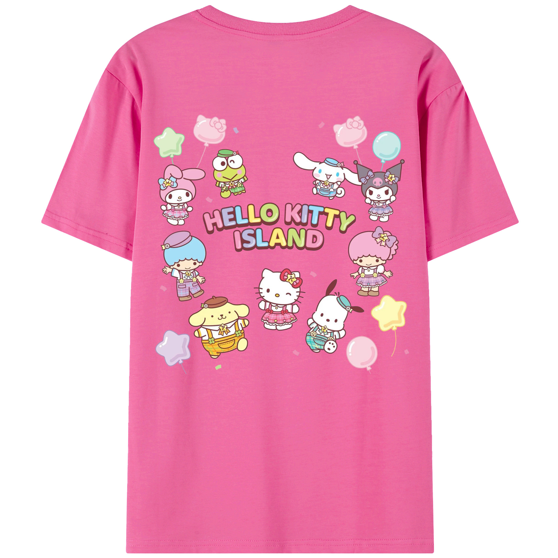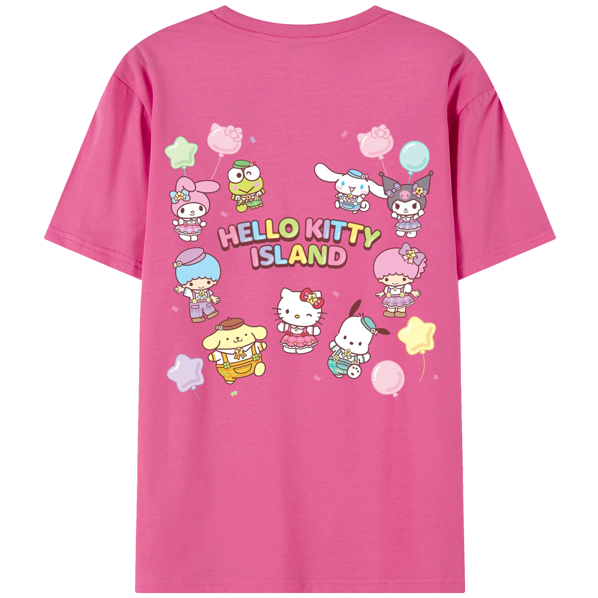 毎日着たい♪カジュアルサンリオ - レディース半袖Tシャツ ・ 綿100% ・ バックプリント ・ 強化クルーネック ・ 二重折り袖口 ・ 快適 通気性 ・ フィットネス カジュアル 旅行用