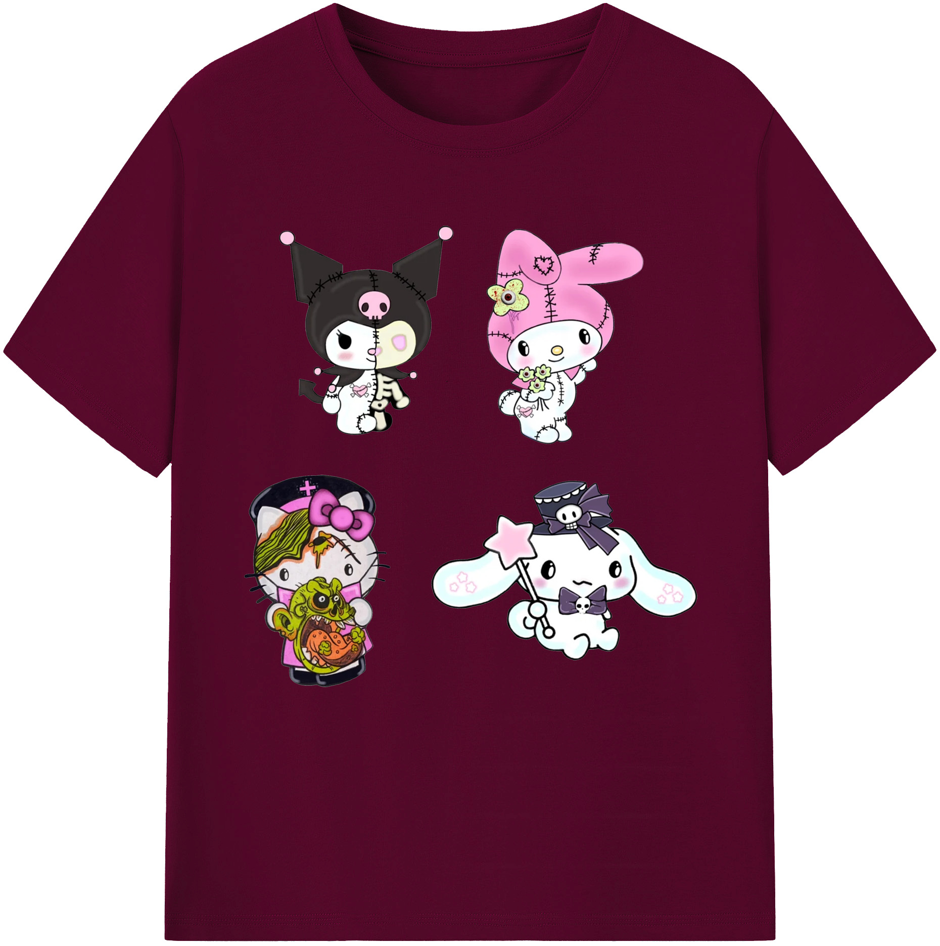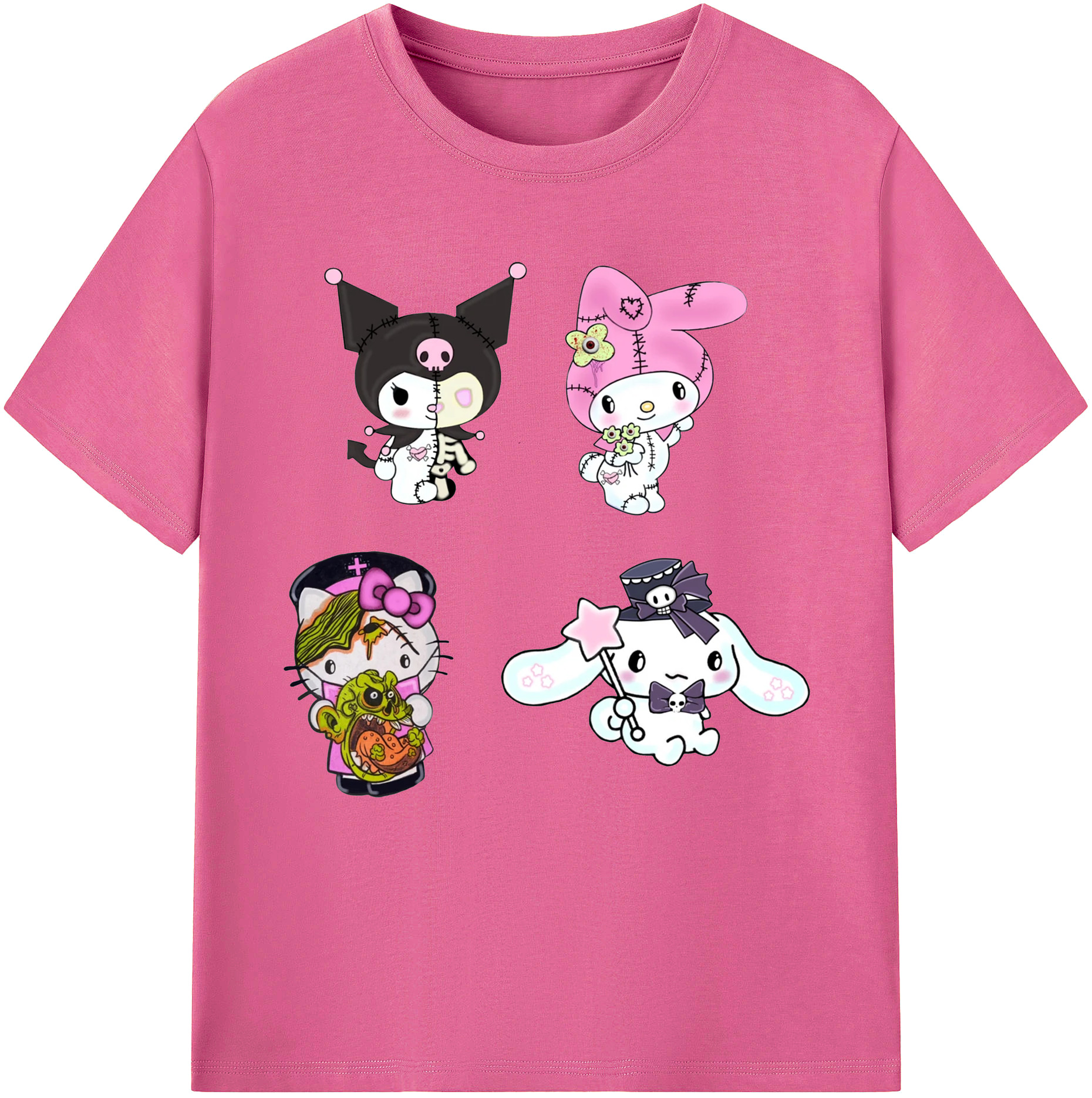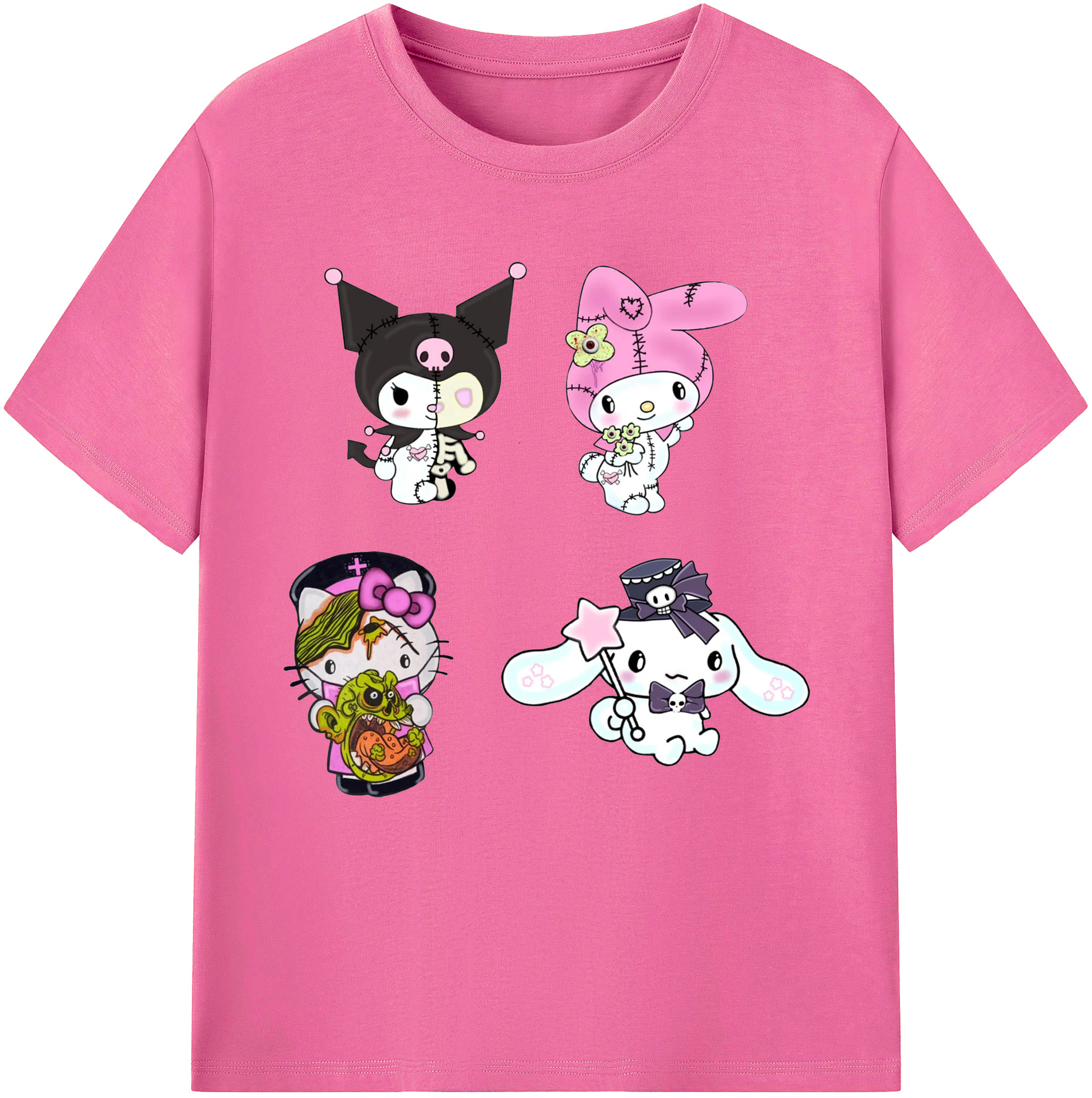 毎日着たい♪カジュアルサンリオ - レディースカジュアルプリントTシャツ ・ 綿100% ・ クルーネック ・ フロントプリント ・ 柔らかく快適 ・ フィットネス カジュアル 旅行用
