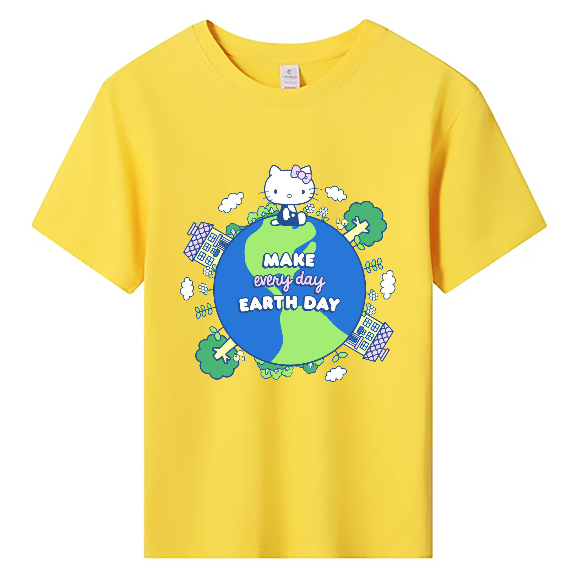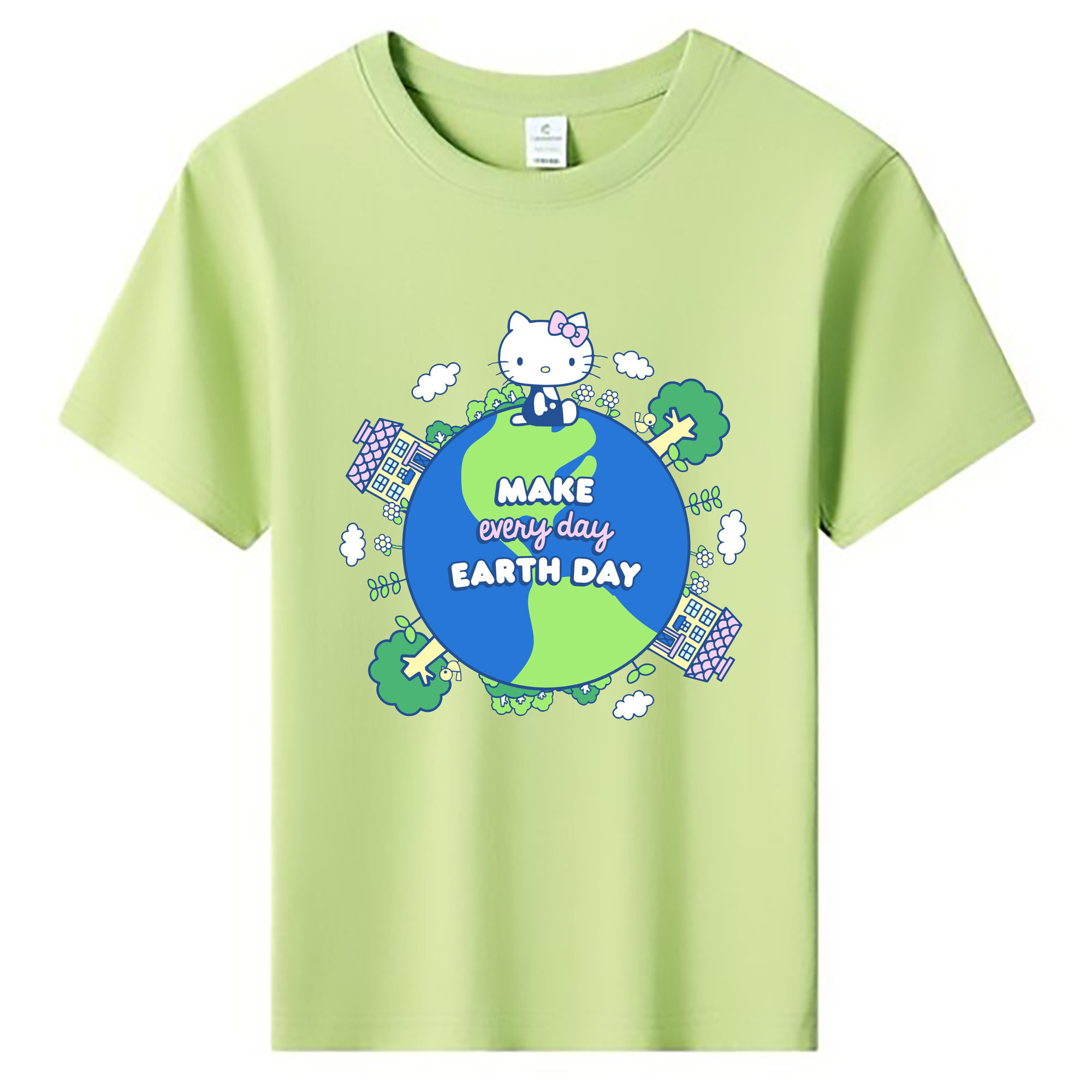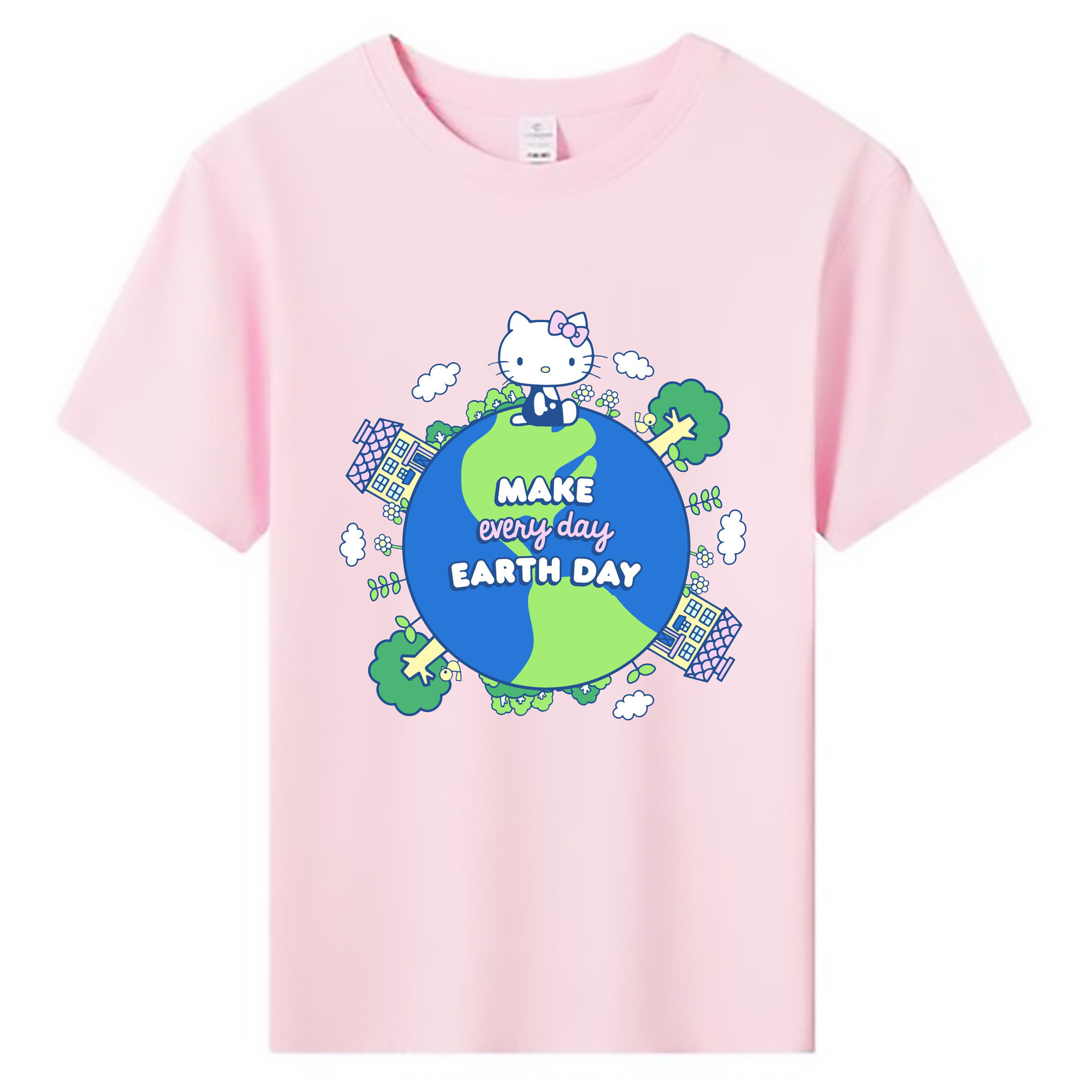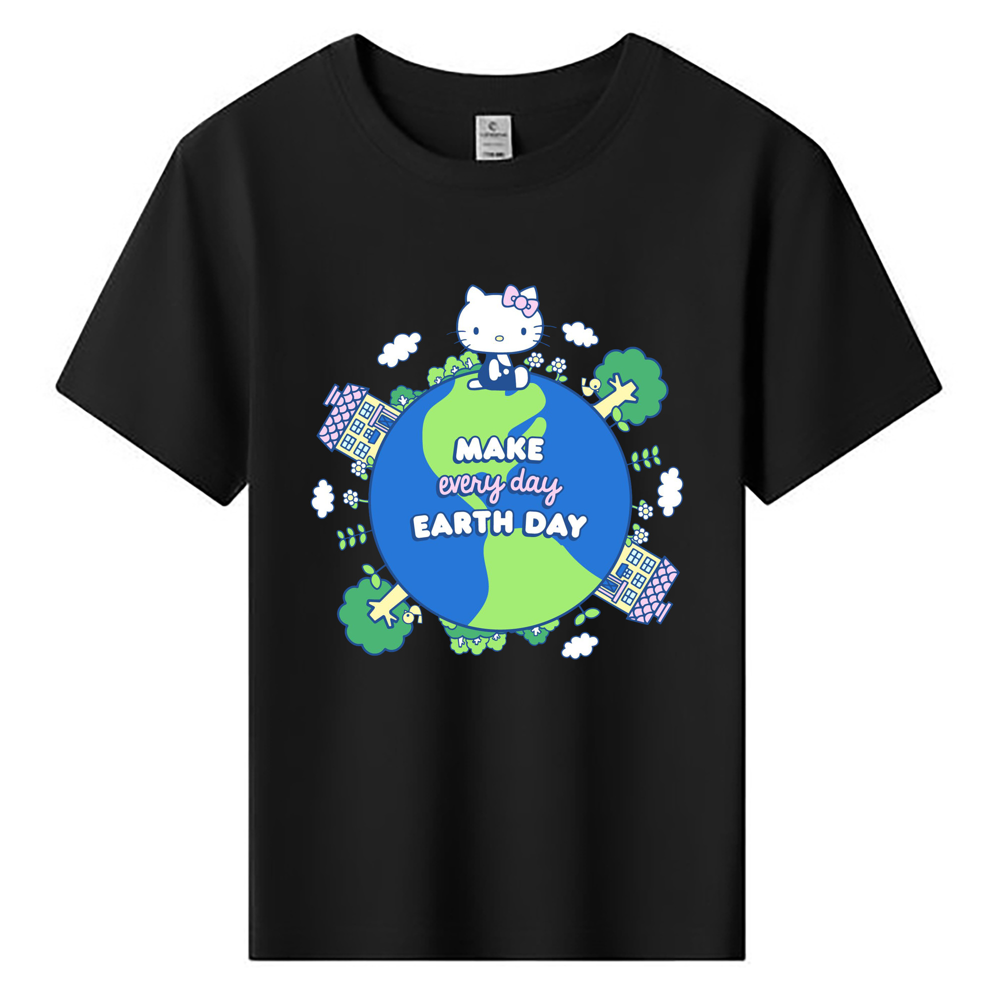 環境にやさしいハローキティ - 綿100% ヴィンテージ風 半袖Tシャツ ・ フロントプリント ・ 柔らか肌触り ・ 通気性 快適 ・ スポーツ カジュアル 外出用
