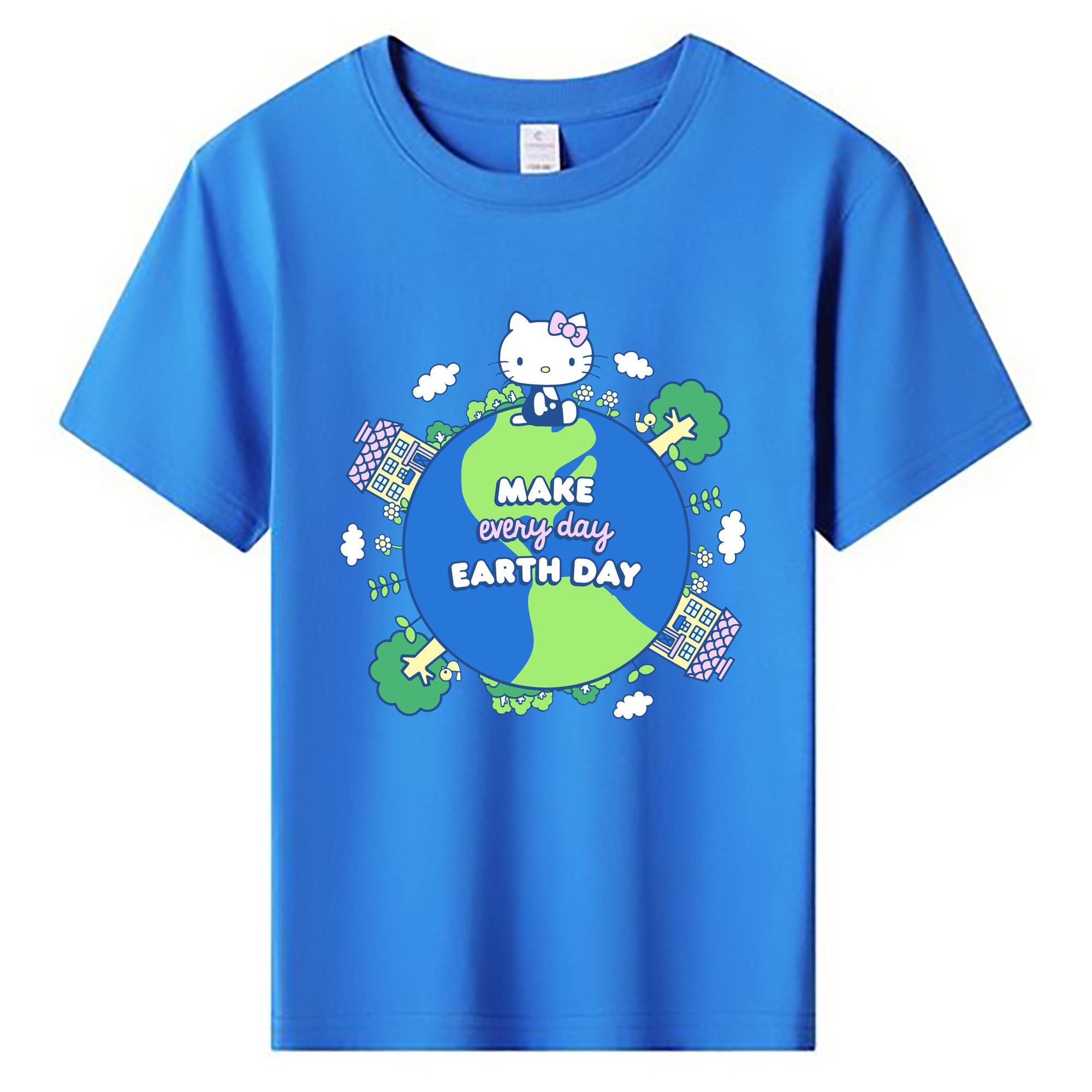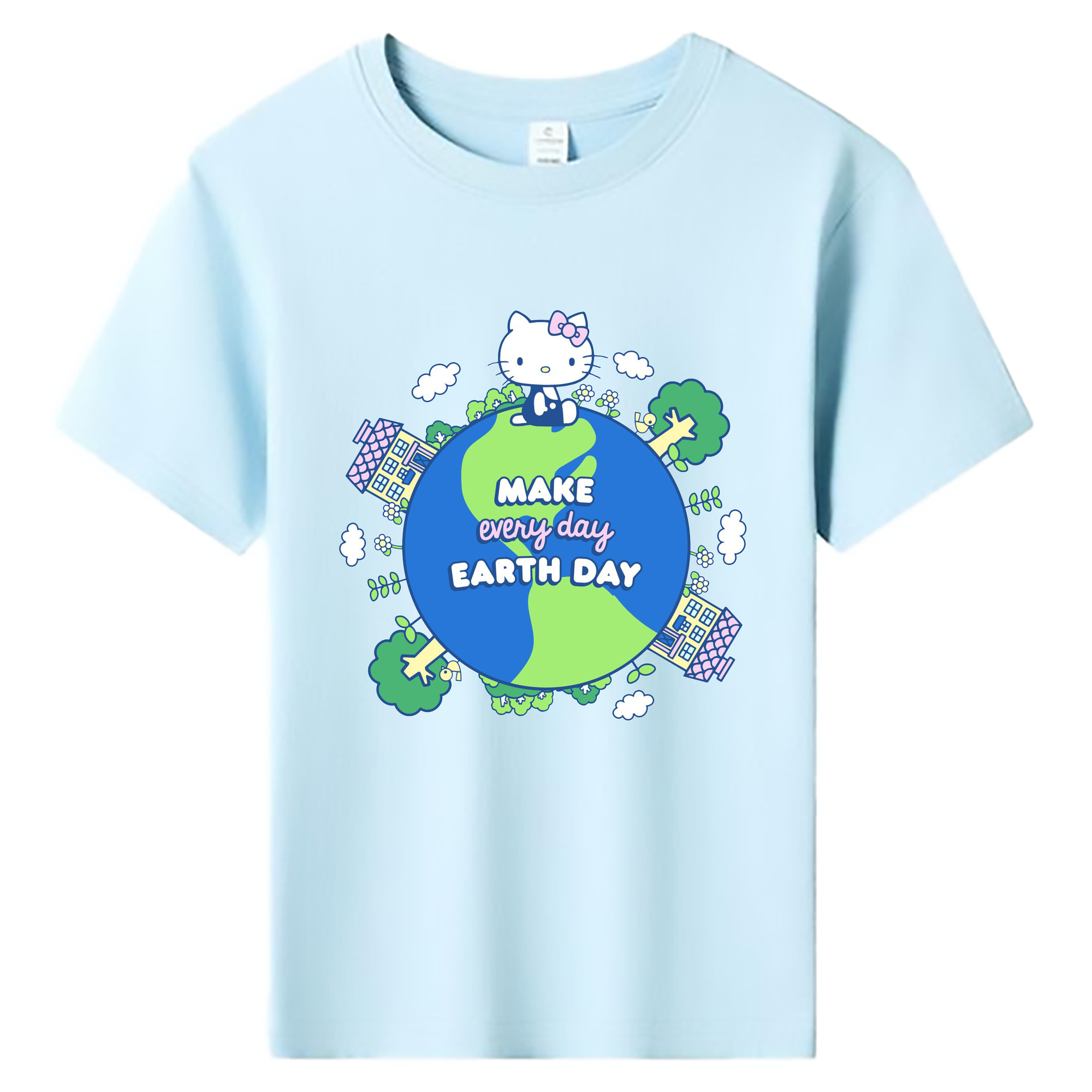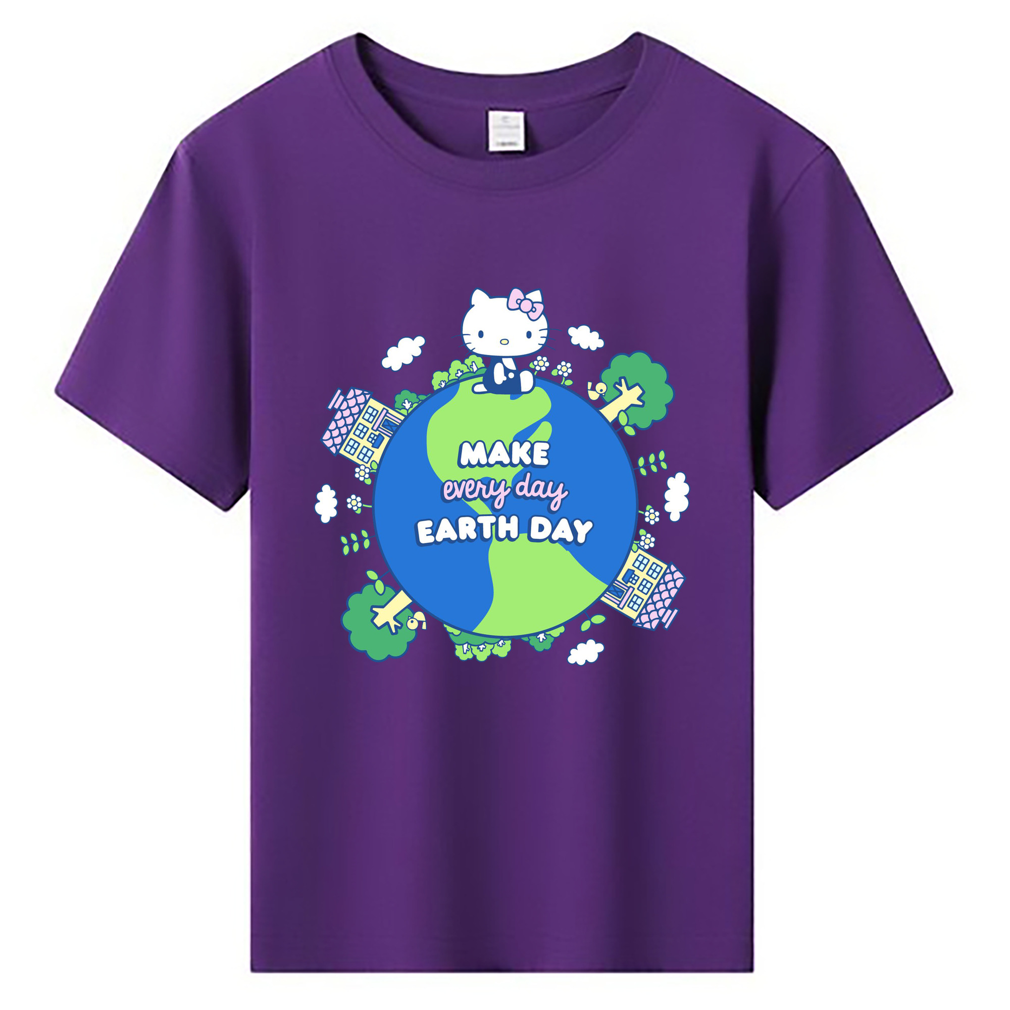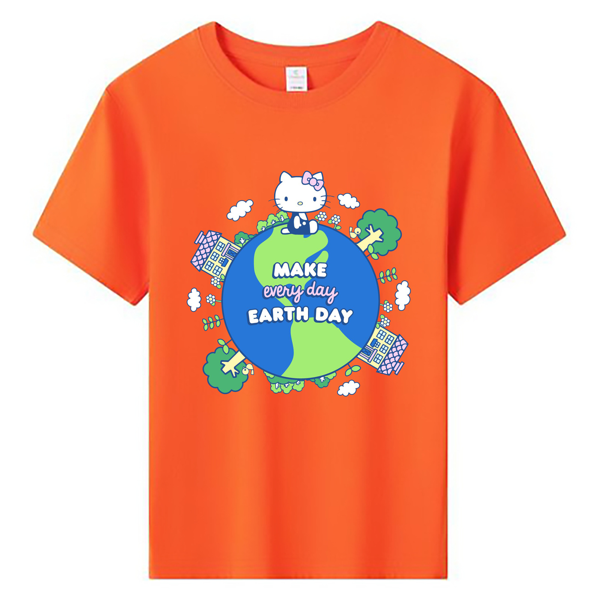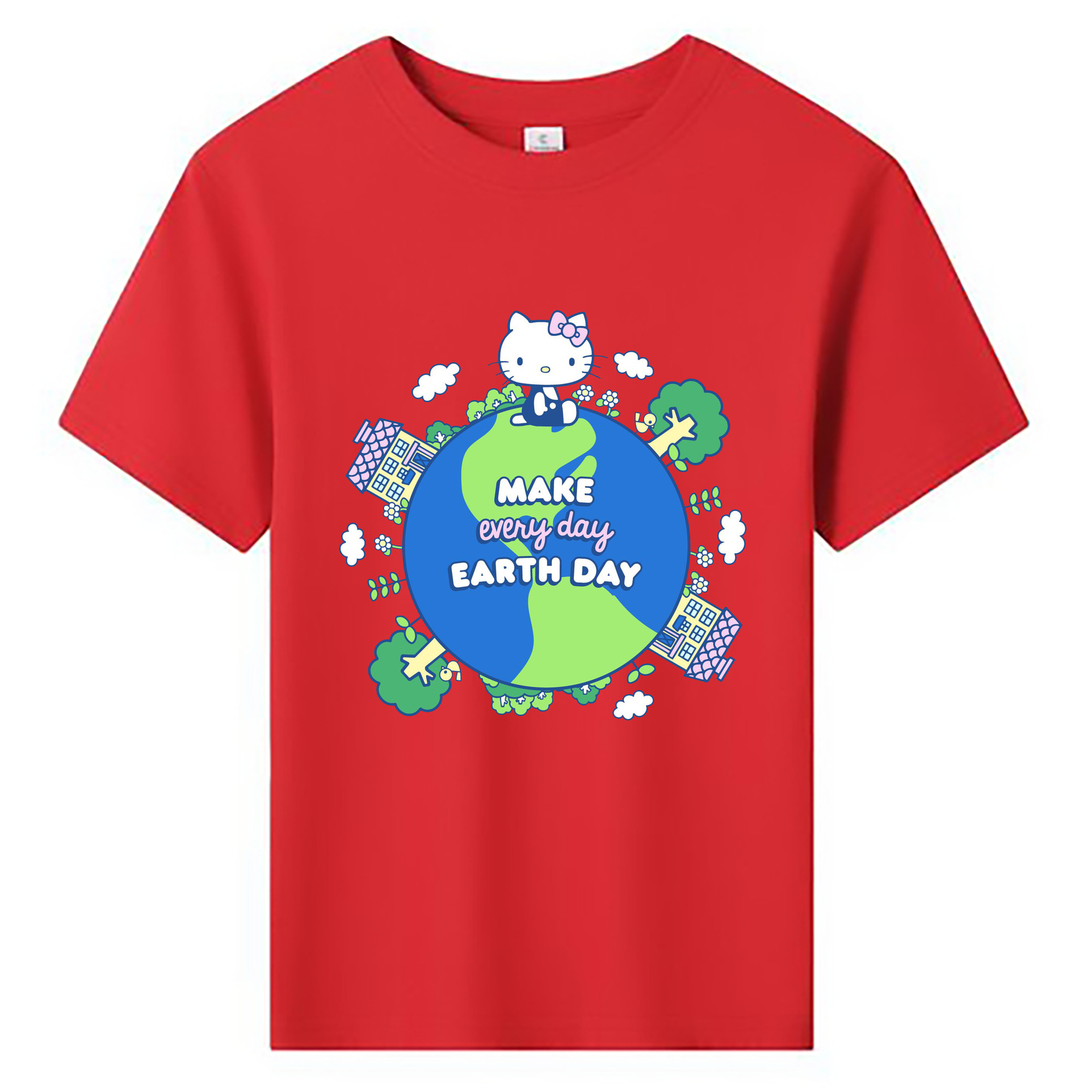 環境にやさしいハローキティ - 綿100% ヴィンテージ風 半袖Tシャツ ・ フロントプリント ・ 柔らか肌触り ・ 通気性 快適 ・ スポーツ カジュアル 外出用