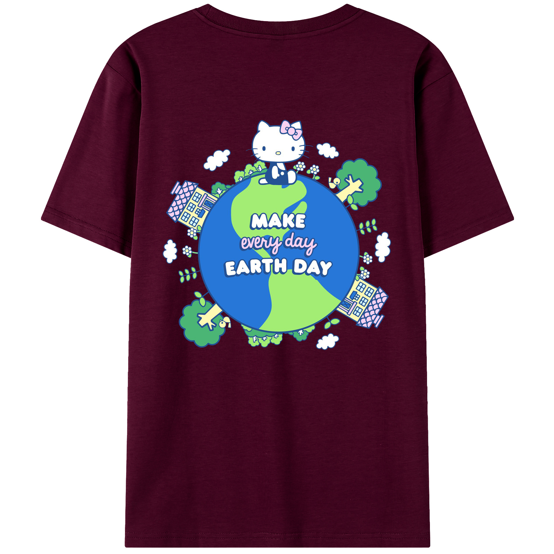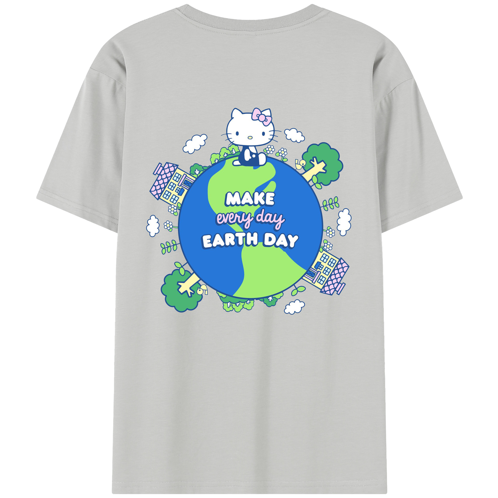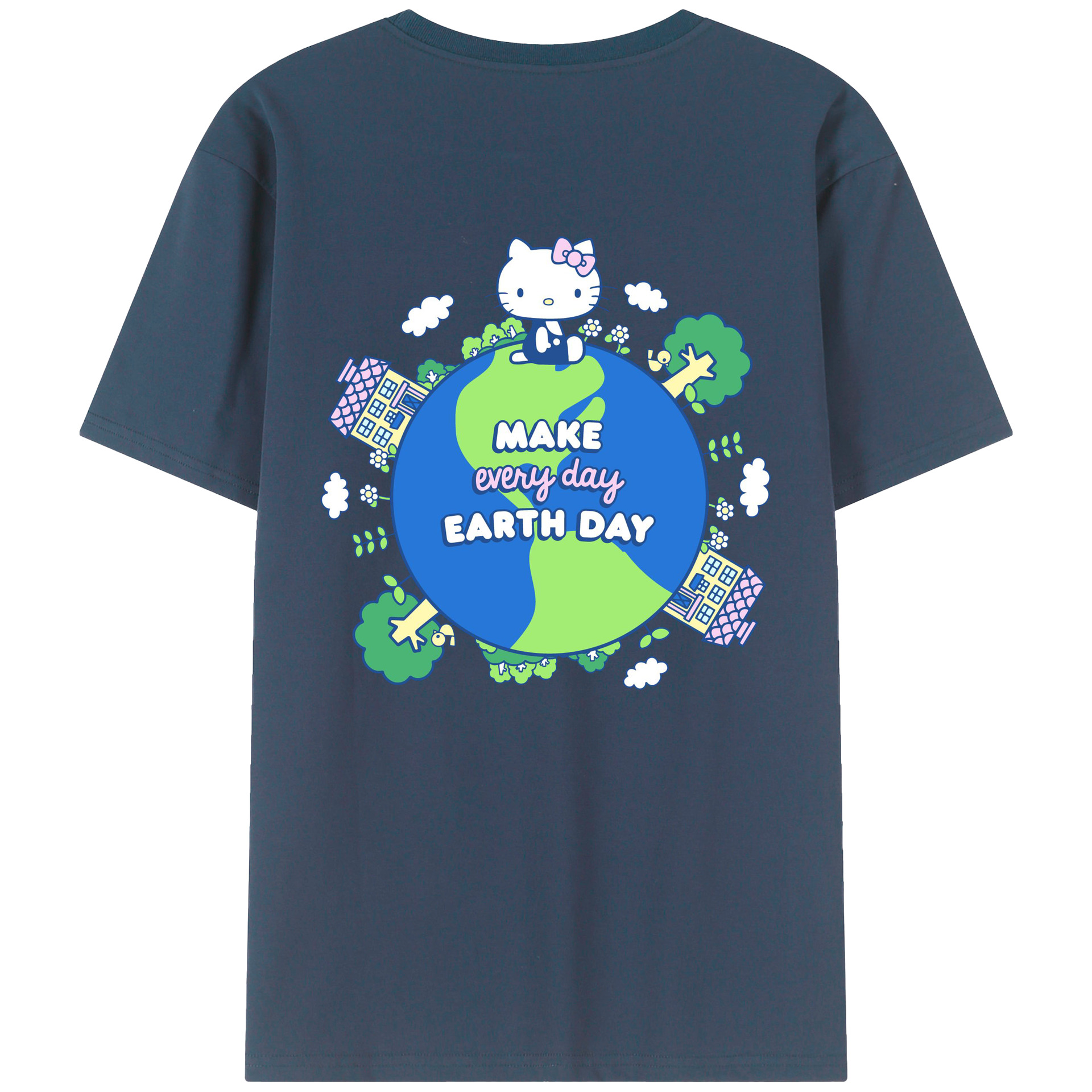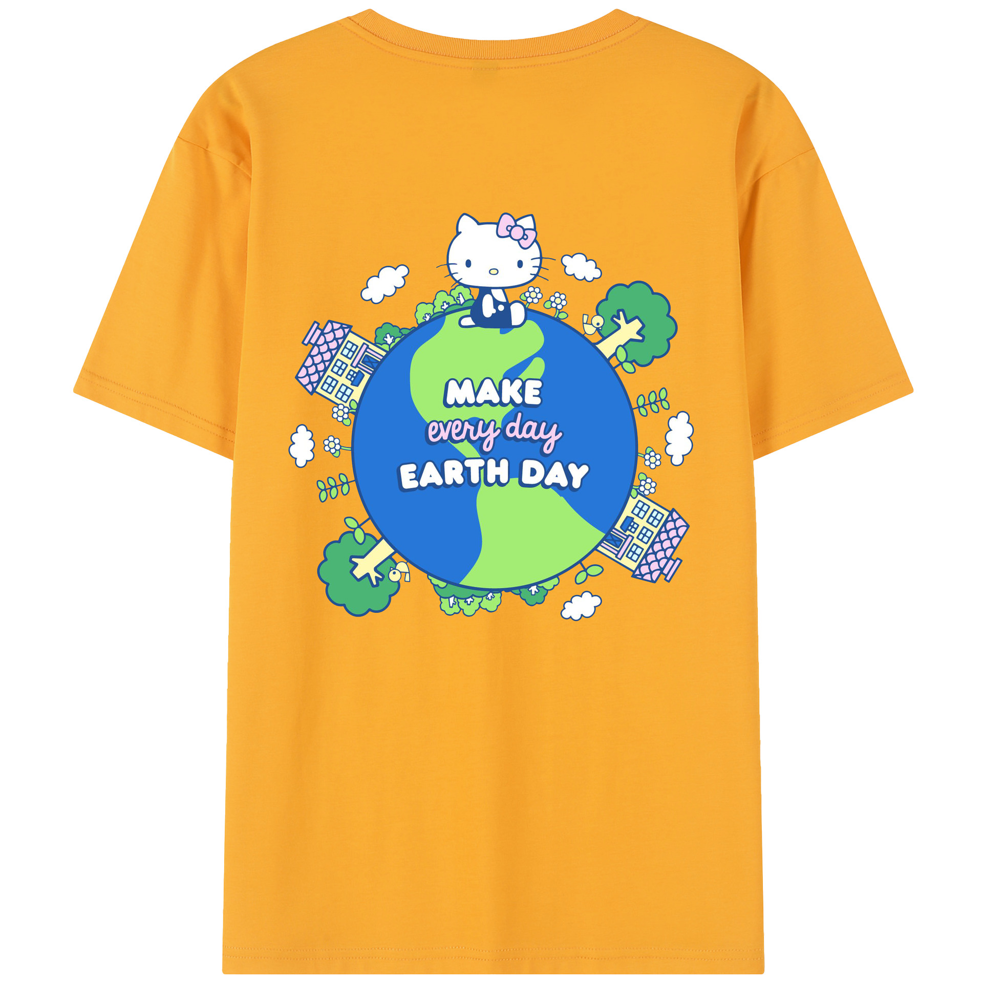 環境にやさしいハローキティ - レディース半袖Tシャツ ・ 綿100% ・ バックプリント ・ 強化クルーネック ・ 二重折り袖口 ・ 快適 通気性 ・ フィットネス カジュアル 旅行用