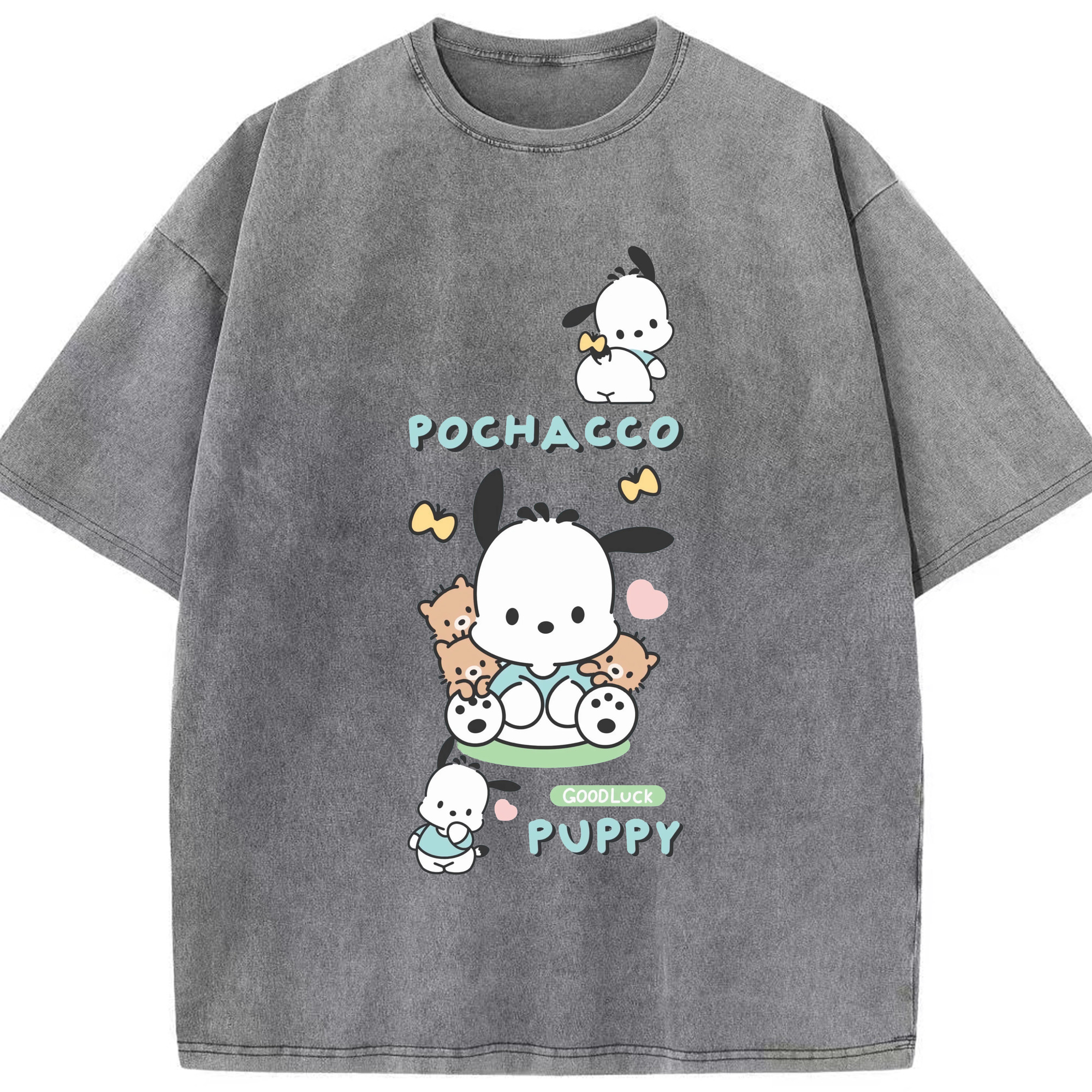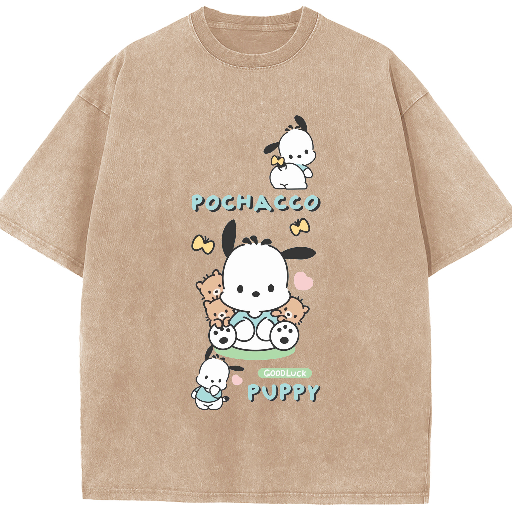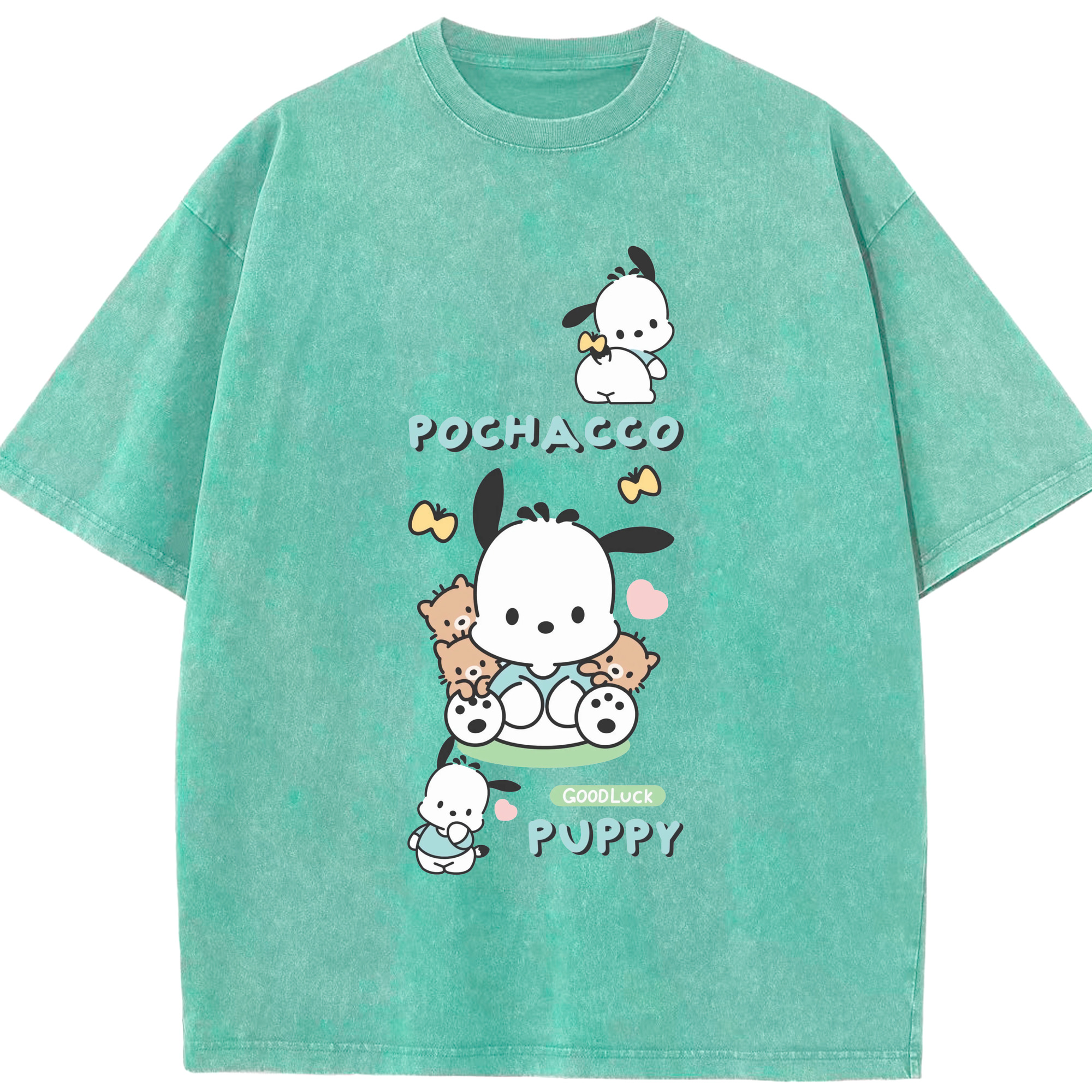 サンリオファミリー新作 - 綿100% ヴィンテージ風 半袖Tシャツ ・ フロントプリント ・ 柔らか肌触り ・ 通気性 快適 ・ スポーツ カジュアル 外出用