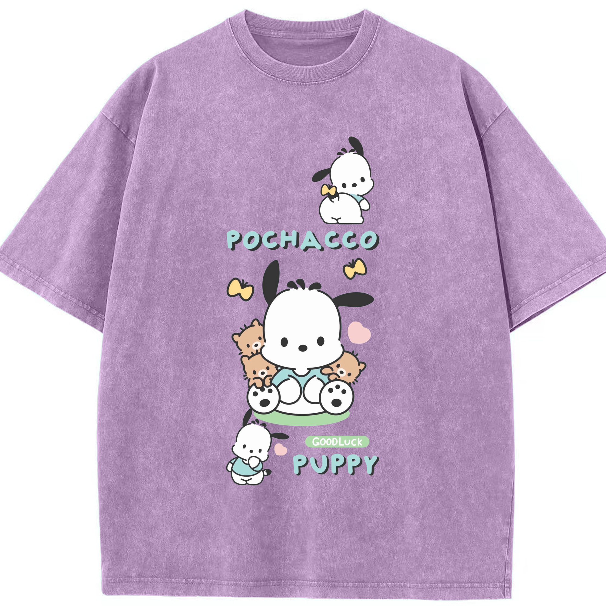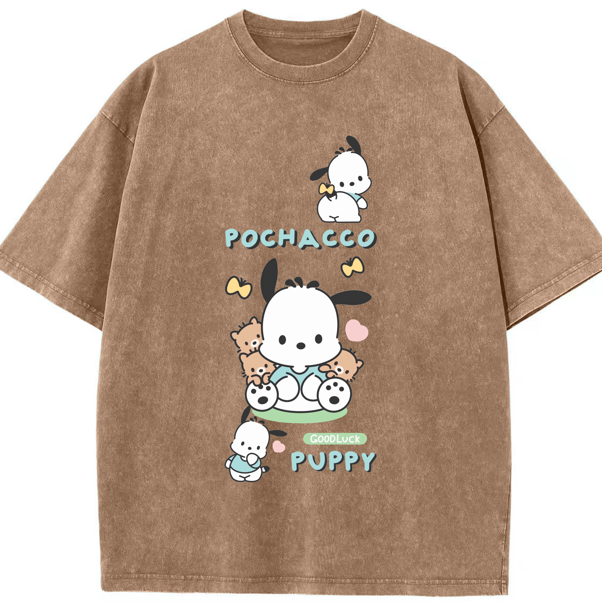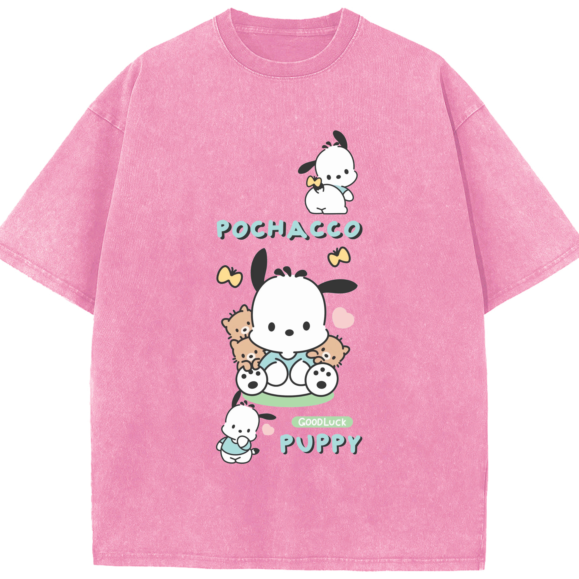 サンリオファミリー新作 - 綿100% ヴィンテージ風 半袖Tシャツ ・ フロントプリント ・ 柔らか肌触り ・ 通気性 快適 ・ スポーツ カジュアル 外出用