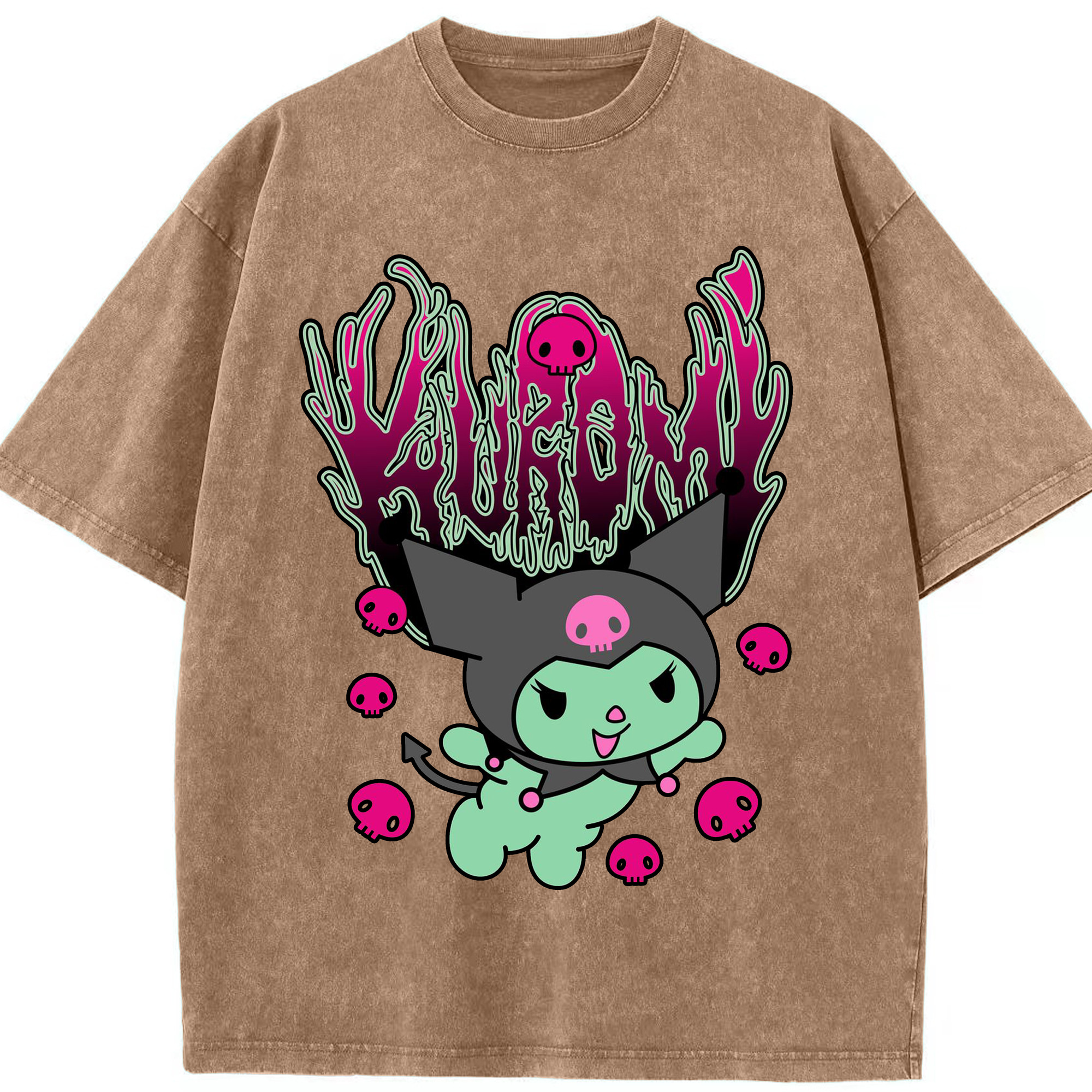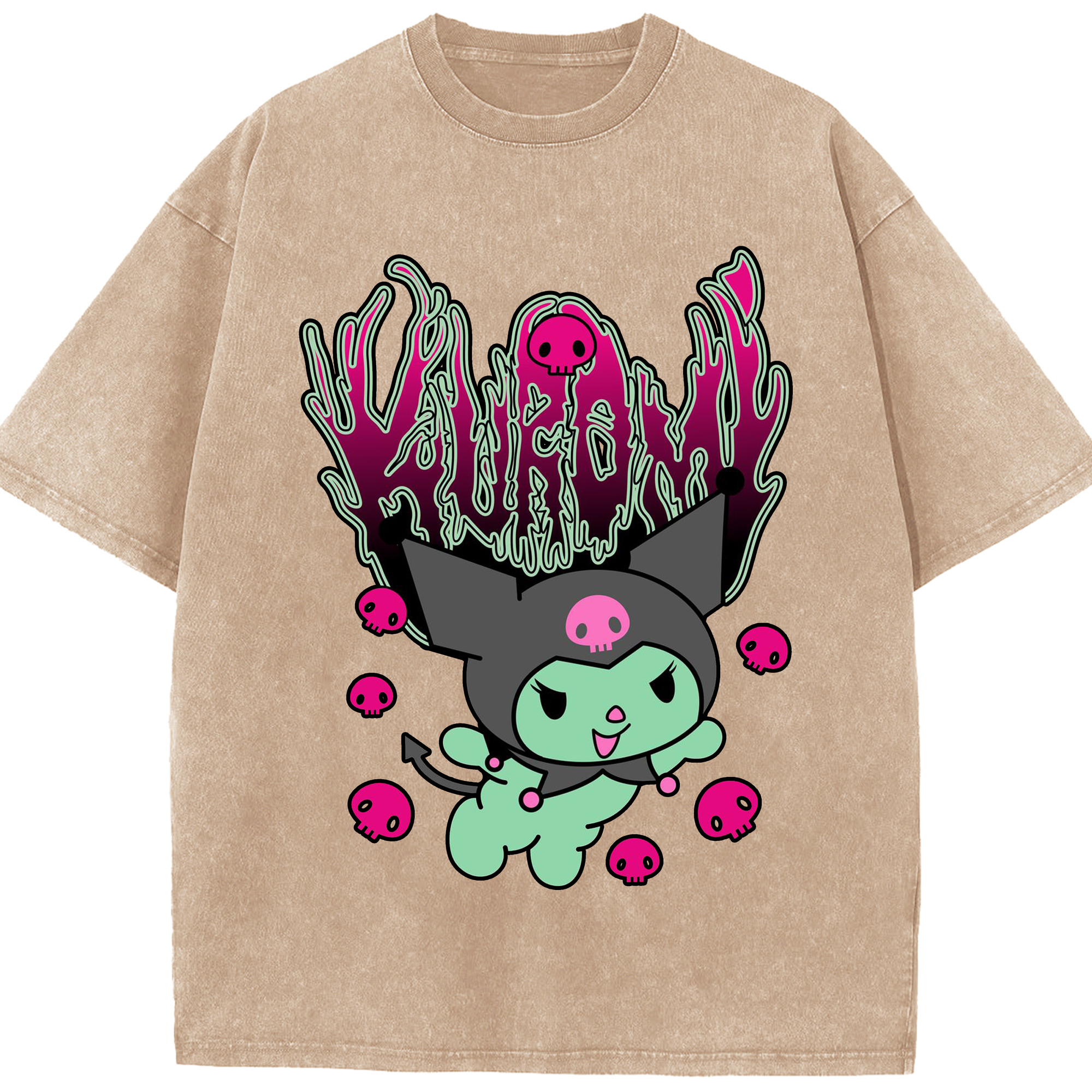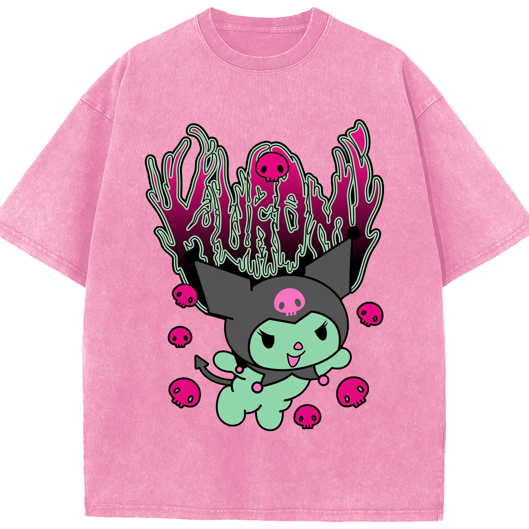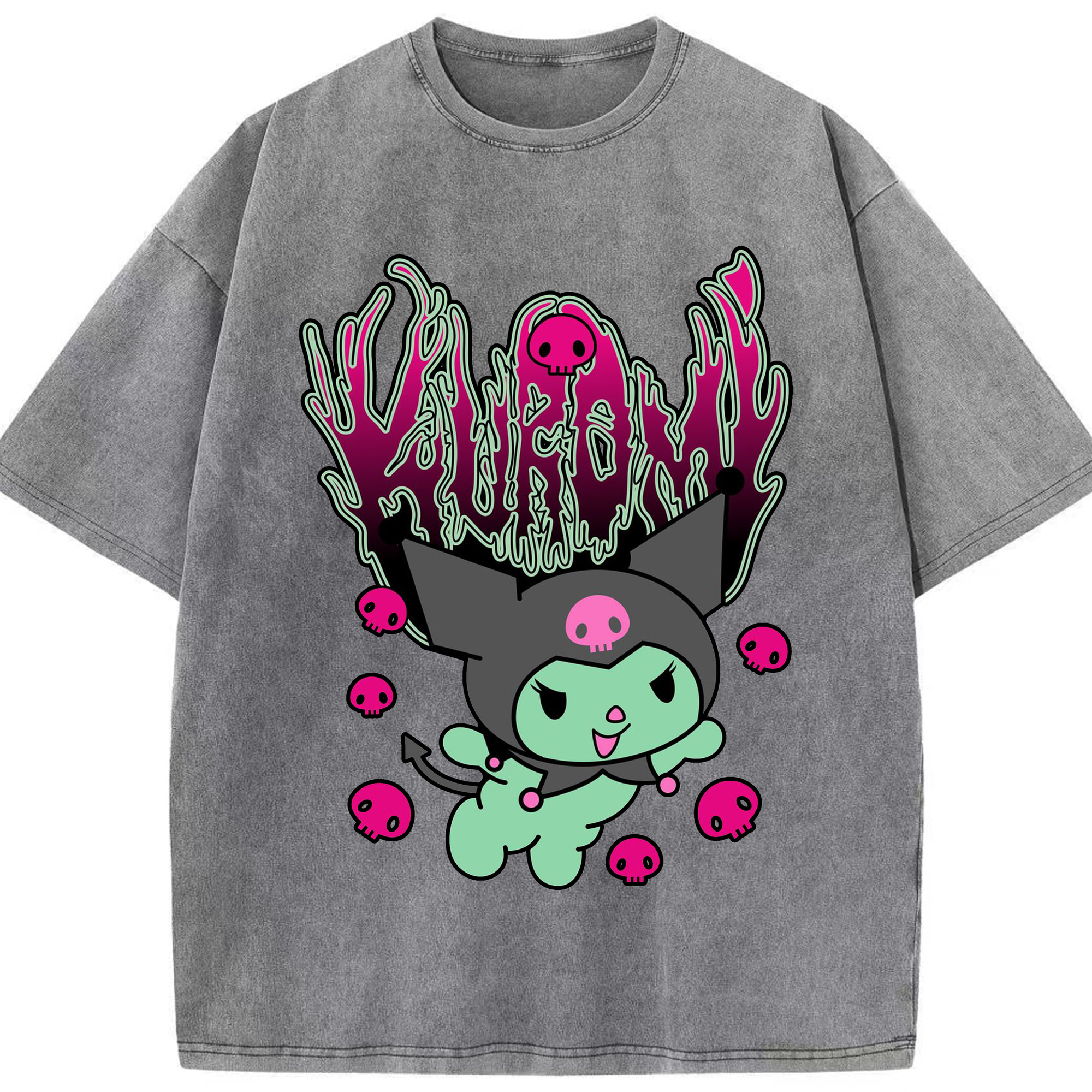サンリオクロミ - 綿100% ヴィンテージ風 半袖Tシャツ ・ フロントプリント ・ 柔らか肌触り ・ 通気性 快適 ・ スポーツ カジュアル 外出用