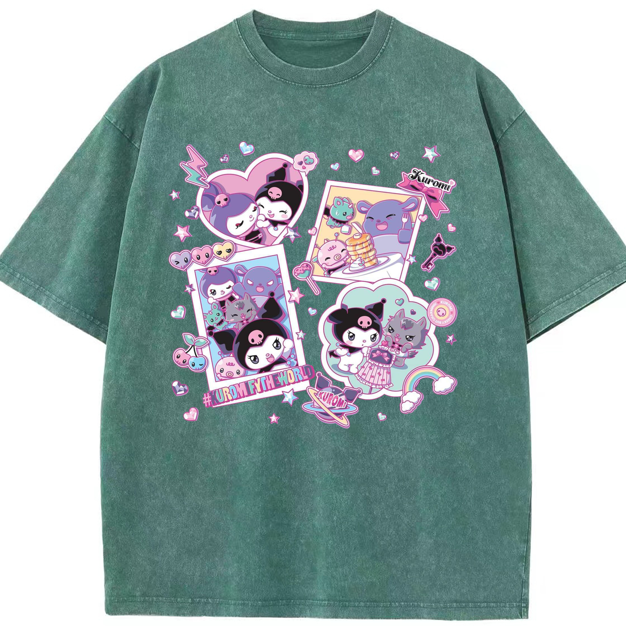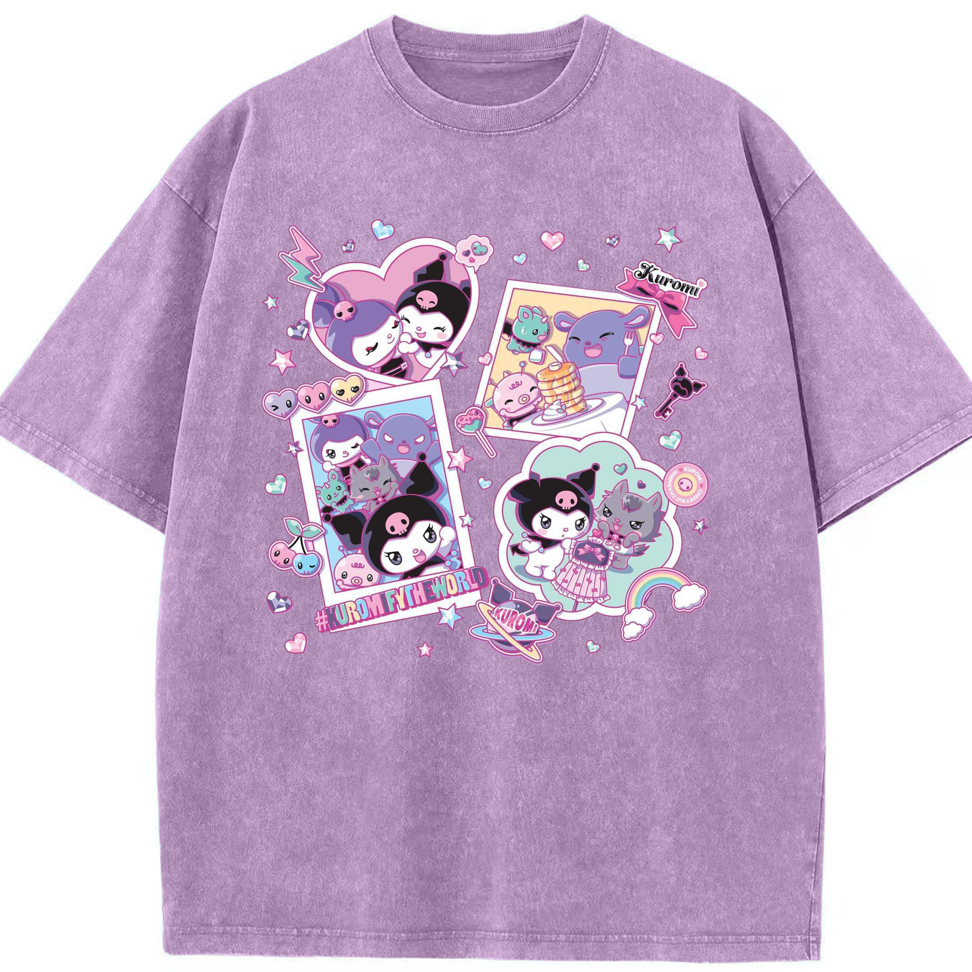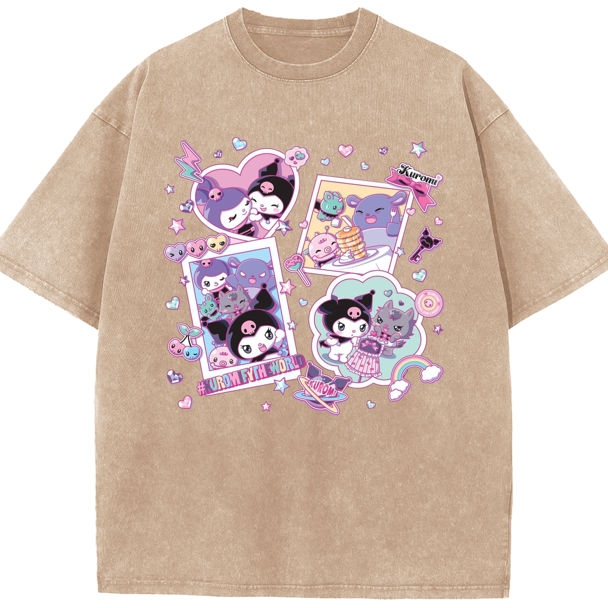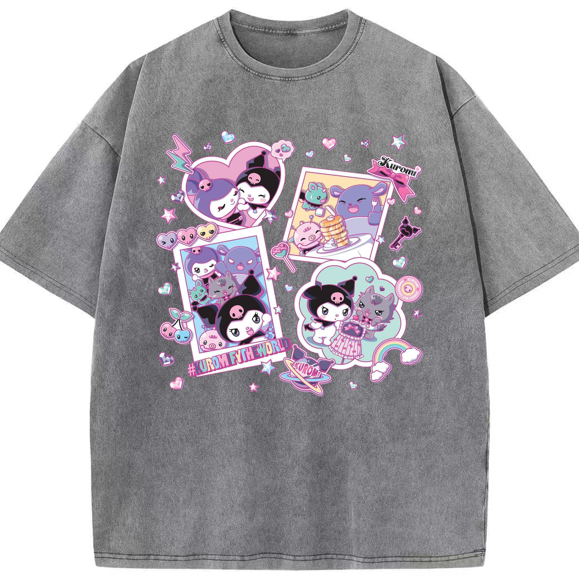 サンリオクロミ&LABUBU ラブブ - 綿100% ヴィンテージ風 半袖Tシャツ ・ フロントプリント ・ 柔らか肌触り ・ 通気性 快適 ・ スポーツ カジュアル 外出用