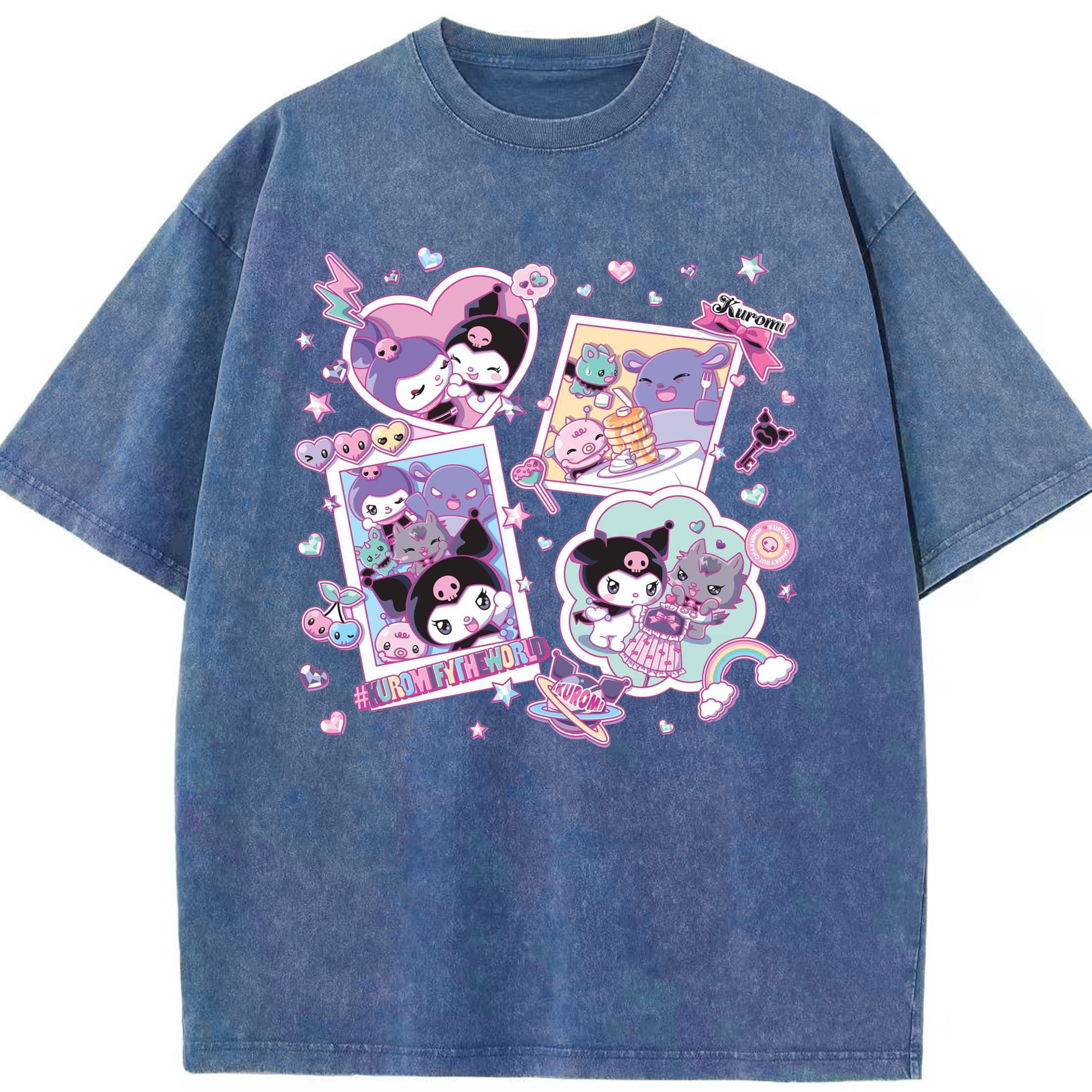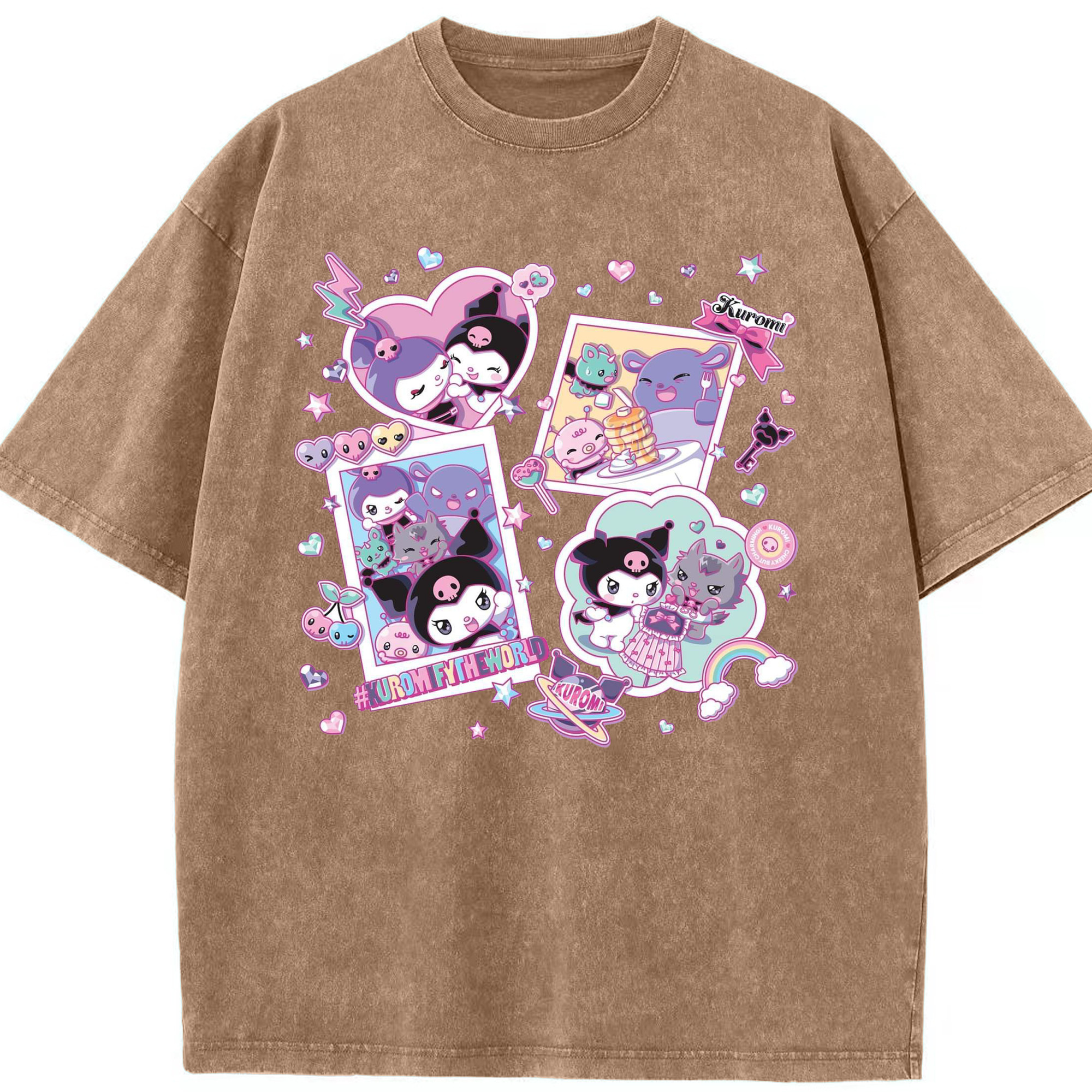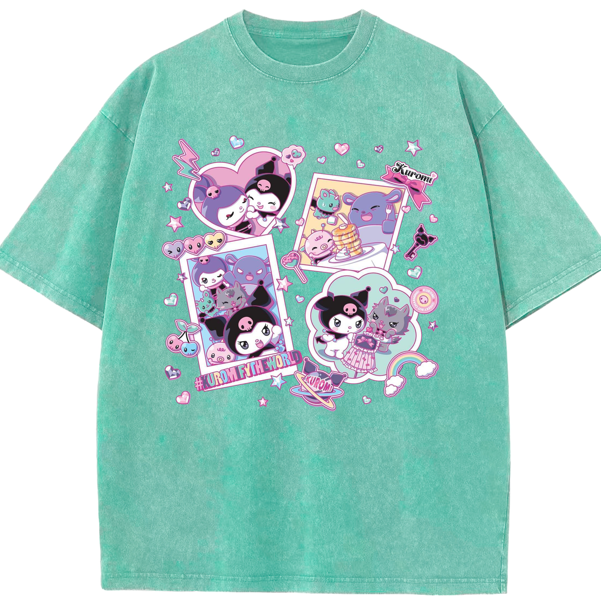 かわいいクロミ - 綿100% ヴィンテージ風 半袖Tシャツ ・ フロントプリント ・ 柔らか肌触り ・ 通気性 快適 ・ スポーツ カジュアル 外出用