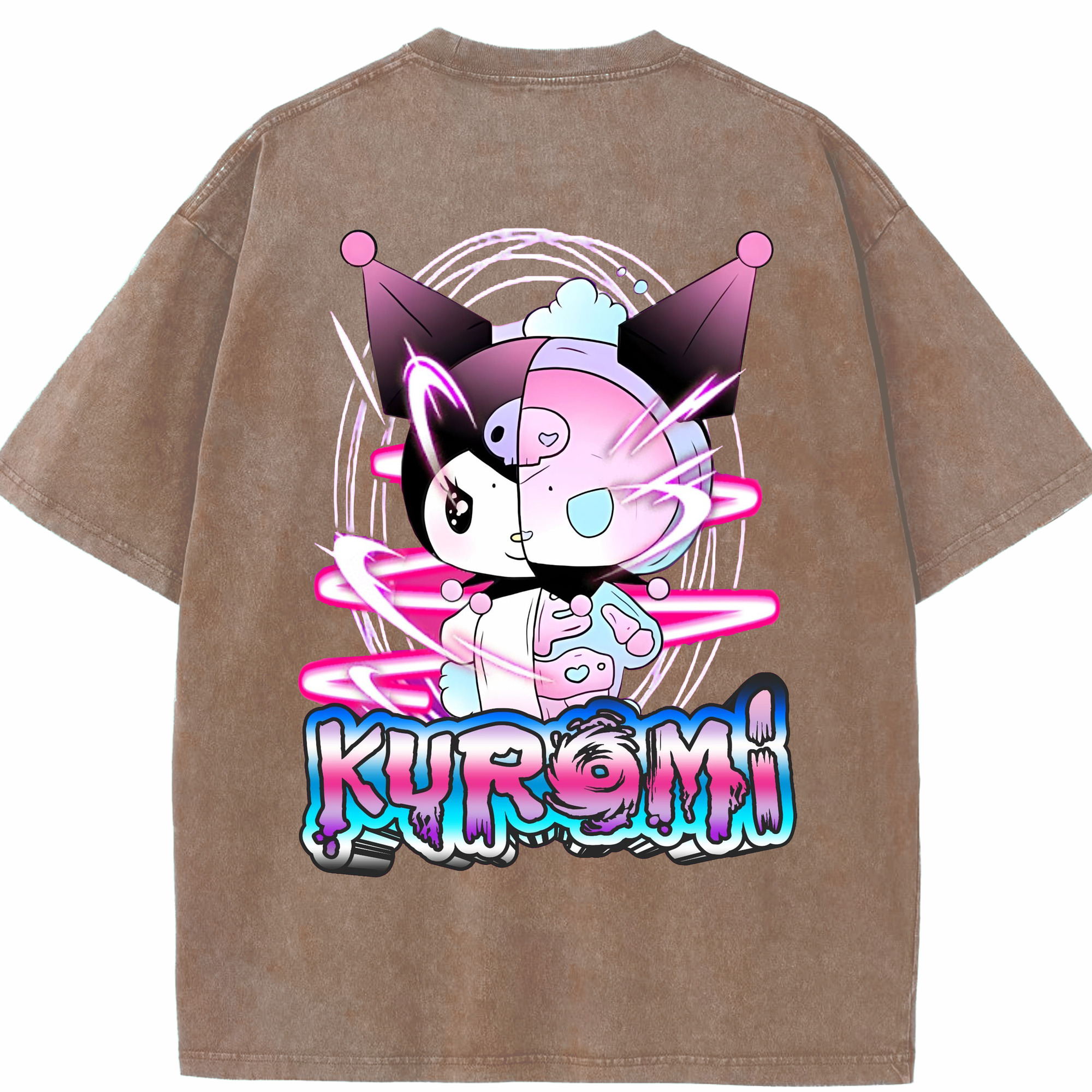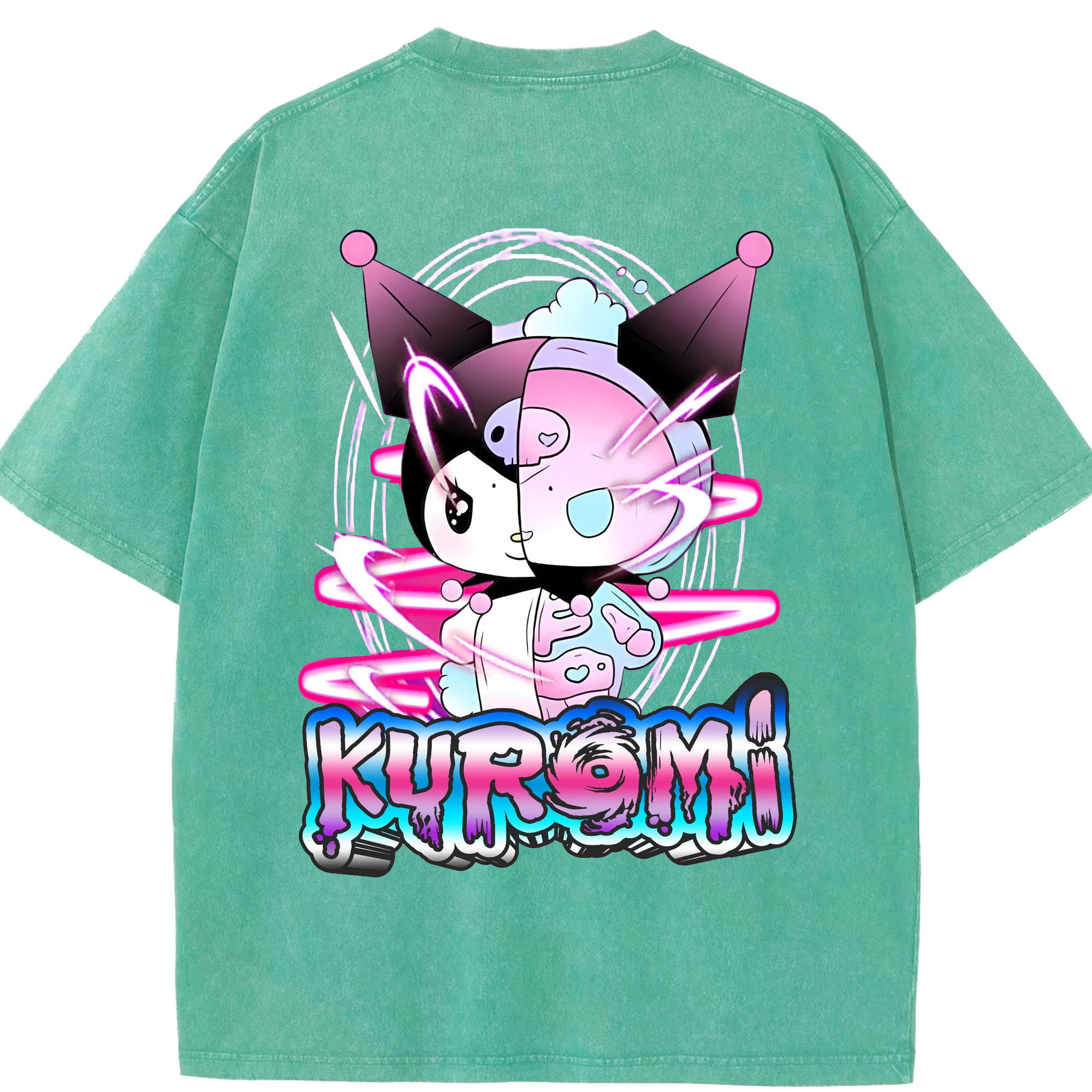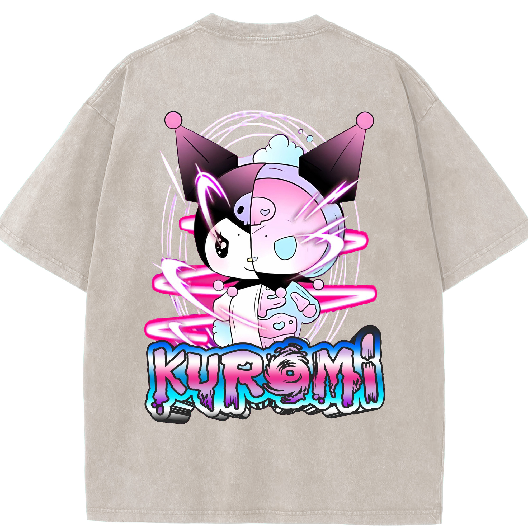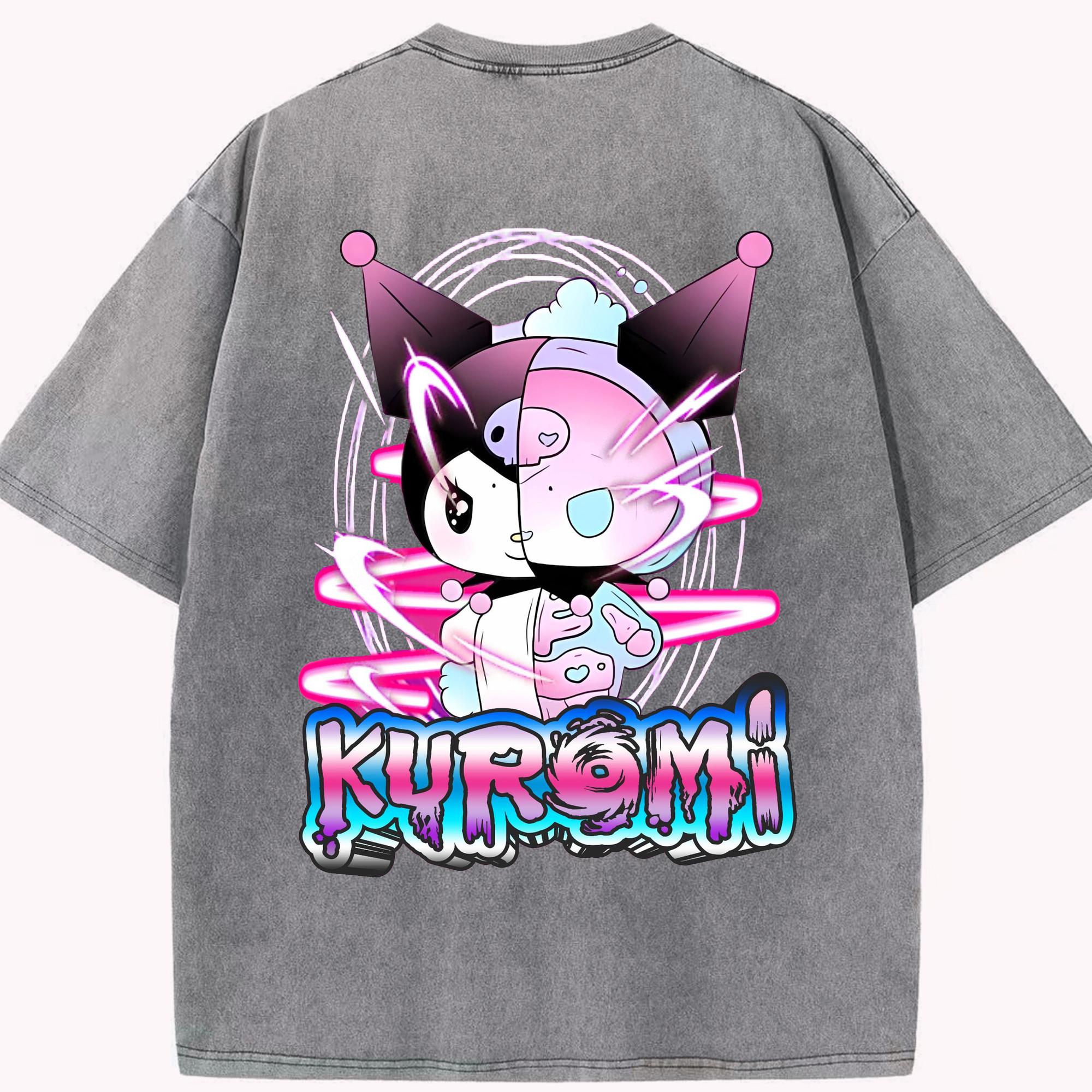 かわいい系サンリオ - 綿100% ヴィンテージ風 半袖Tシャツ ・ 背面プリント ・ 柔らか肌触り ・ 通気性 快適 ・ スポーツ カジュアル 外出用