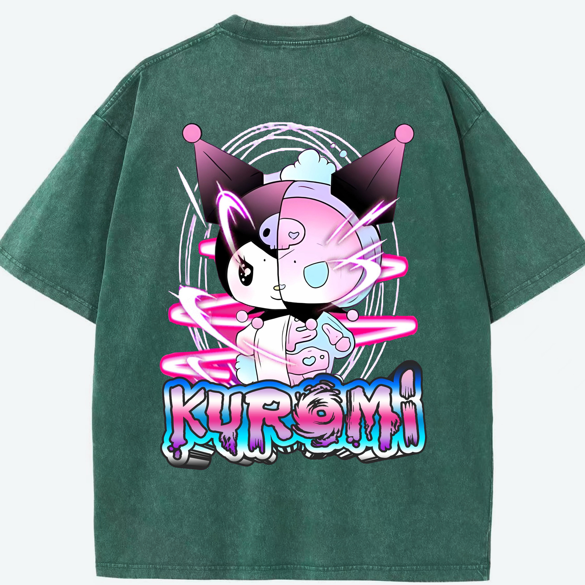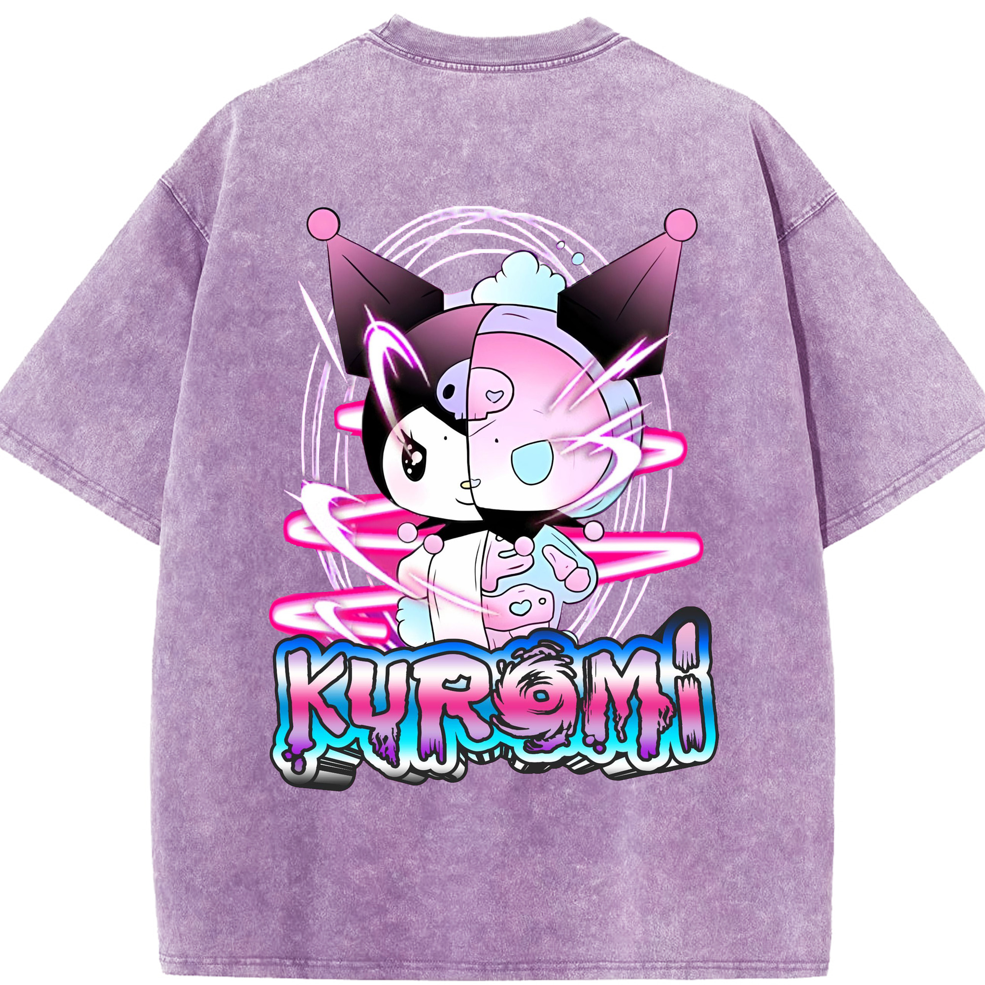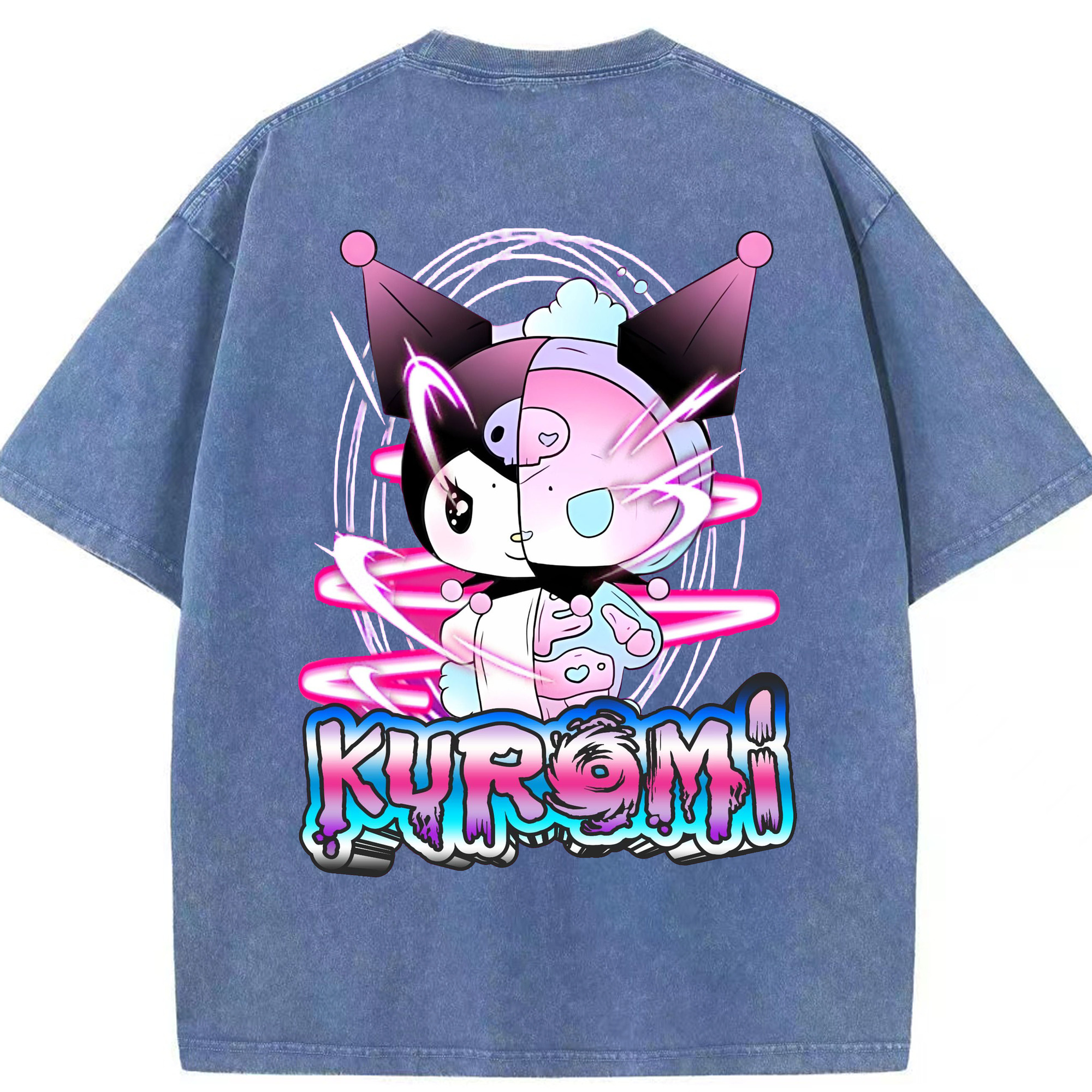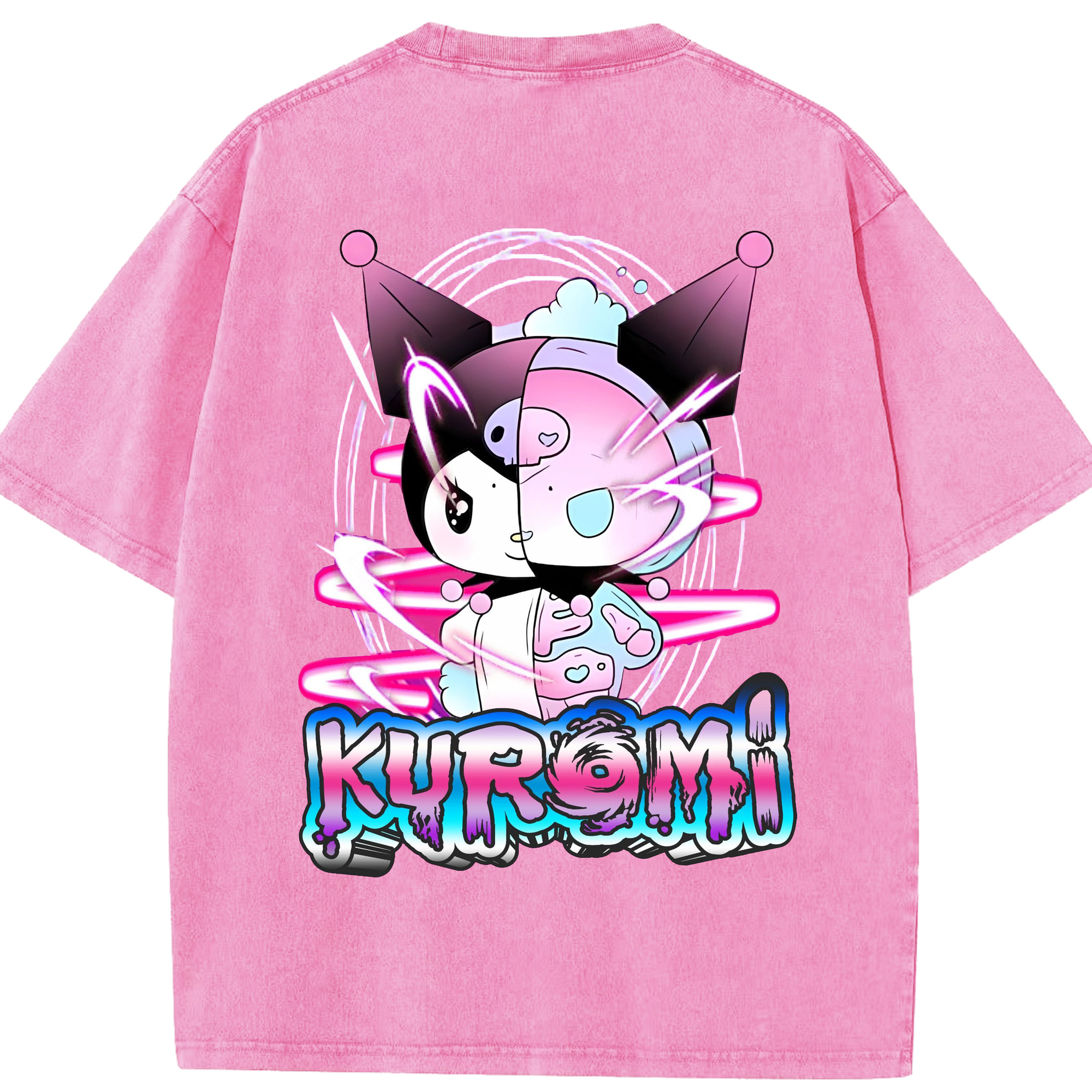 かわいい系サンリオ - 綿100% ヴィンテージ風 半袖Tシャツ ・ 背面プリント ・ 柔らか肌触り ・ 通気性 快適 ・ スポーツ カジュアル 外出用
