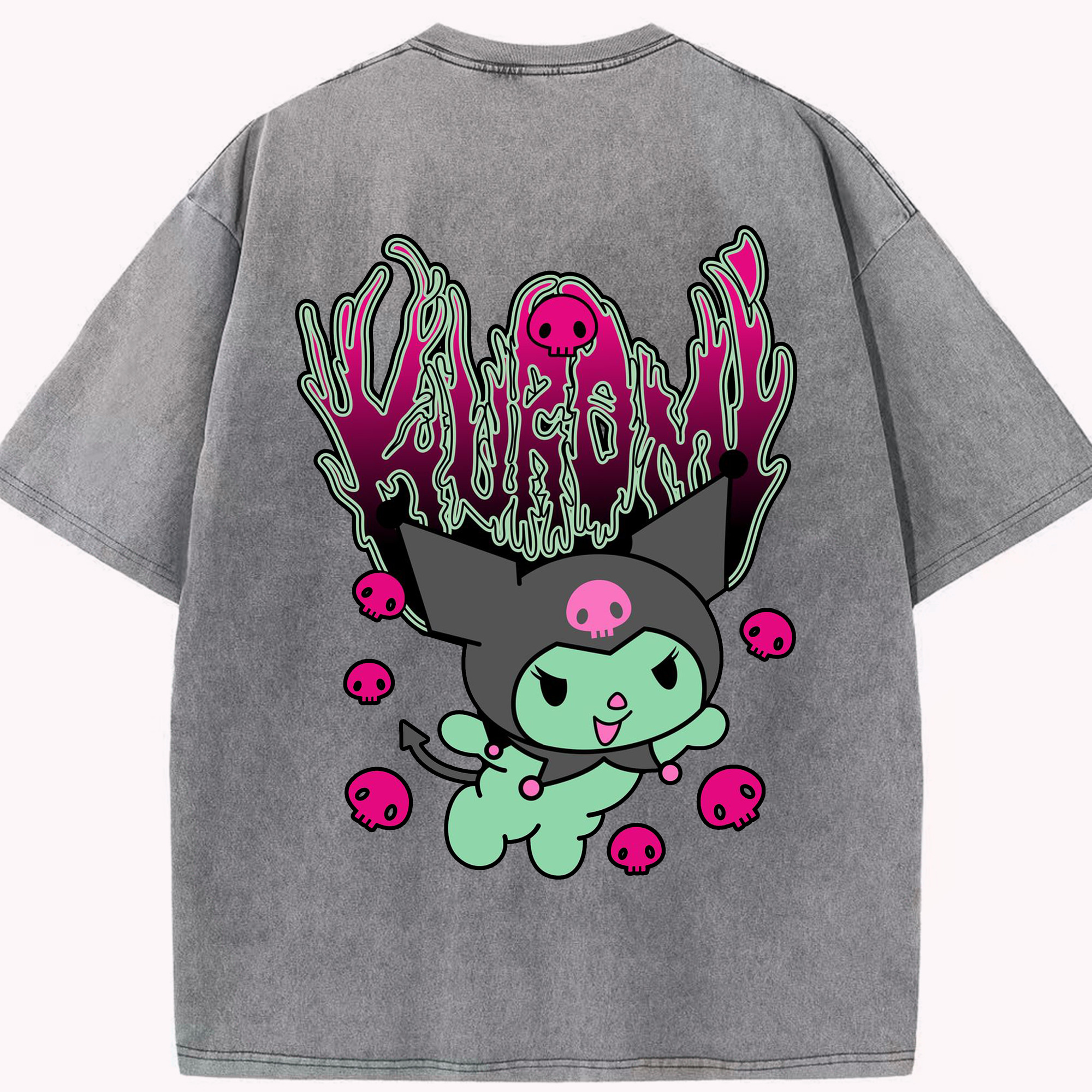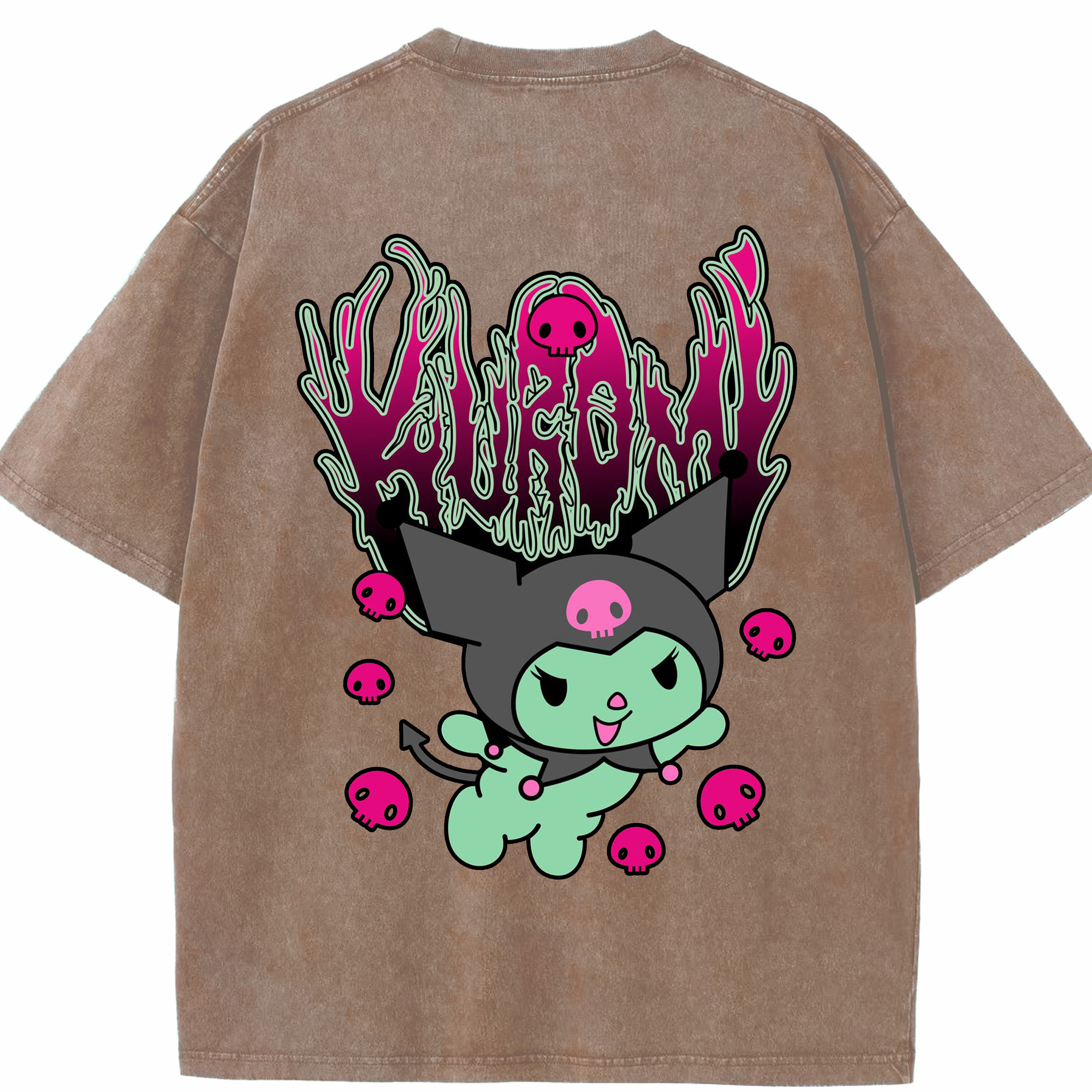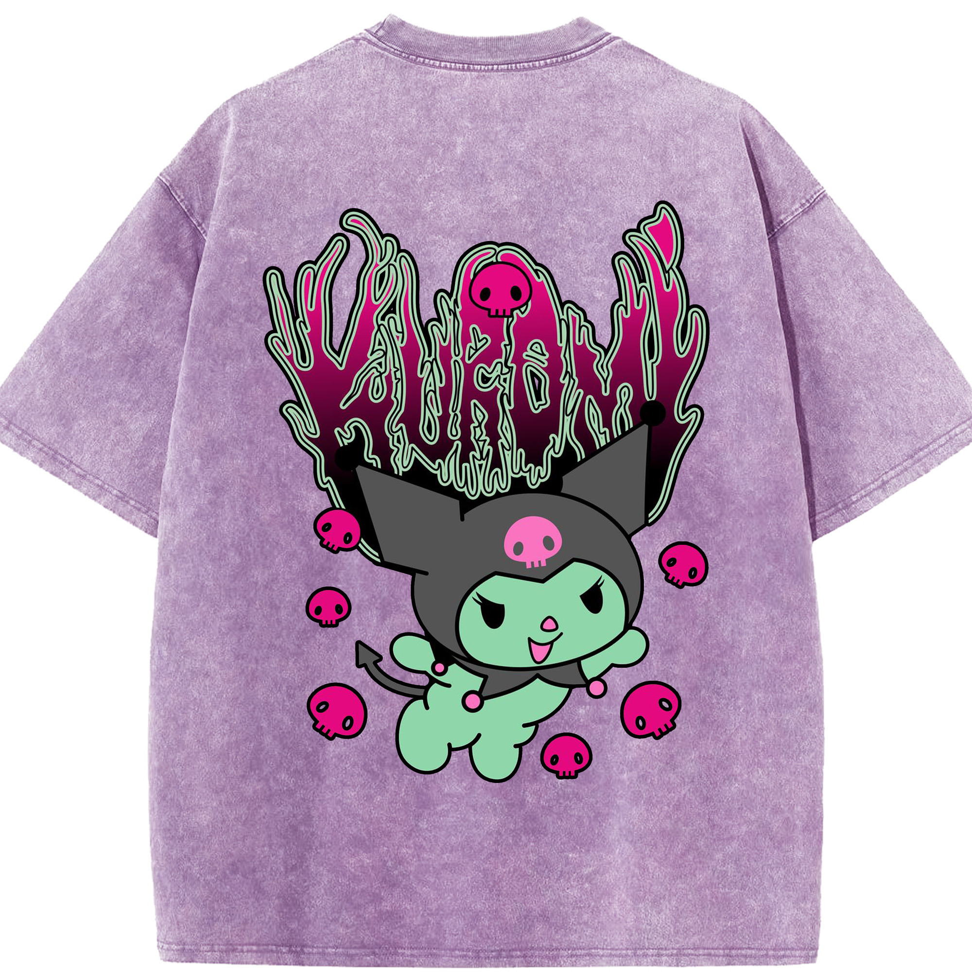 【限定】サンリオマイメロディ × ラブブ コラボ - 綿100% ヴィンテージ風 半袖Tシャツ ・ 背面プリント ・ 柔らか肌触り ・ 通気性 快適 ・ スポーツ カジュアル 外出用