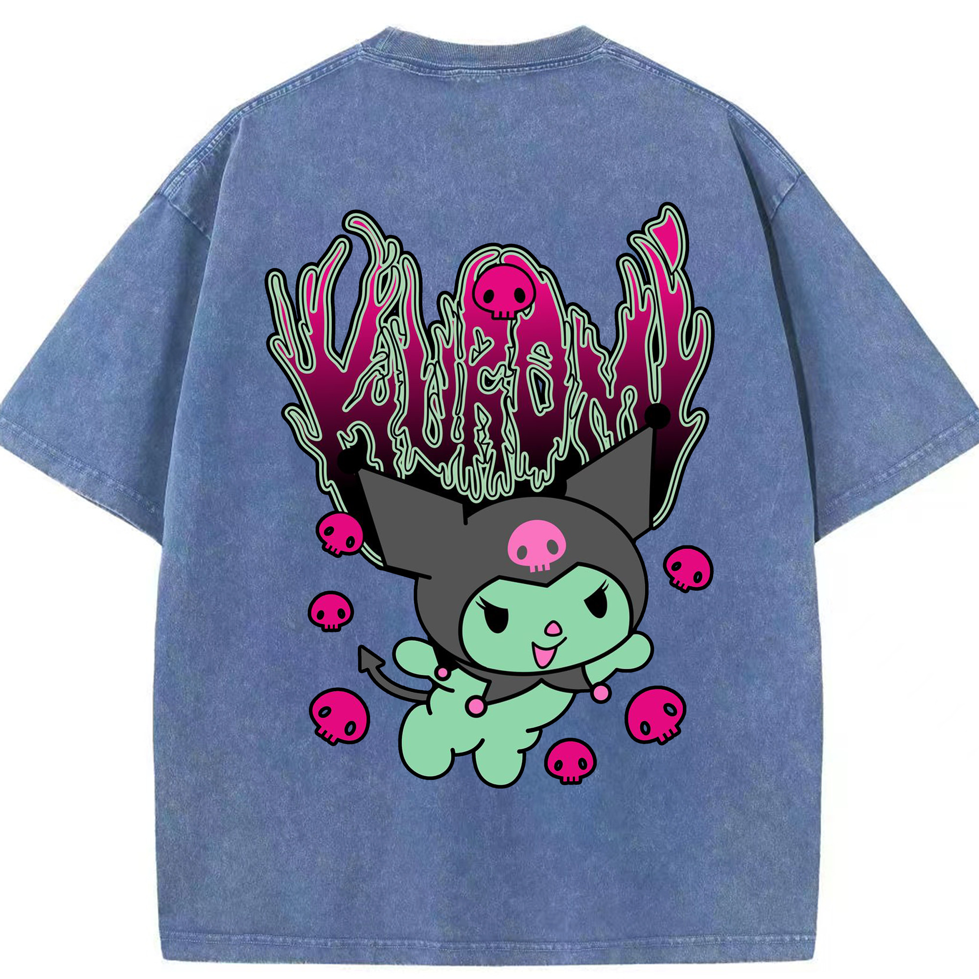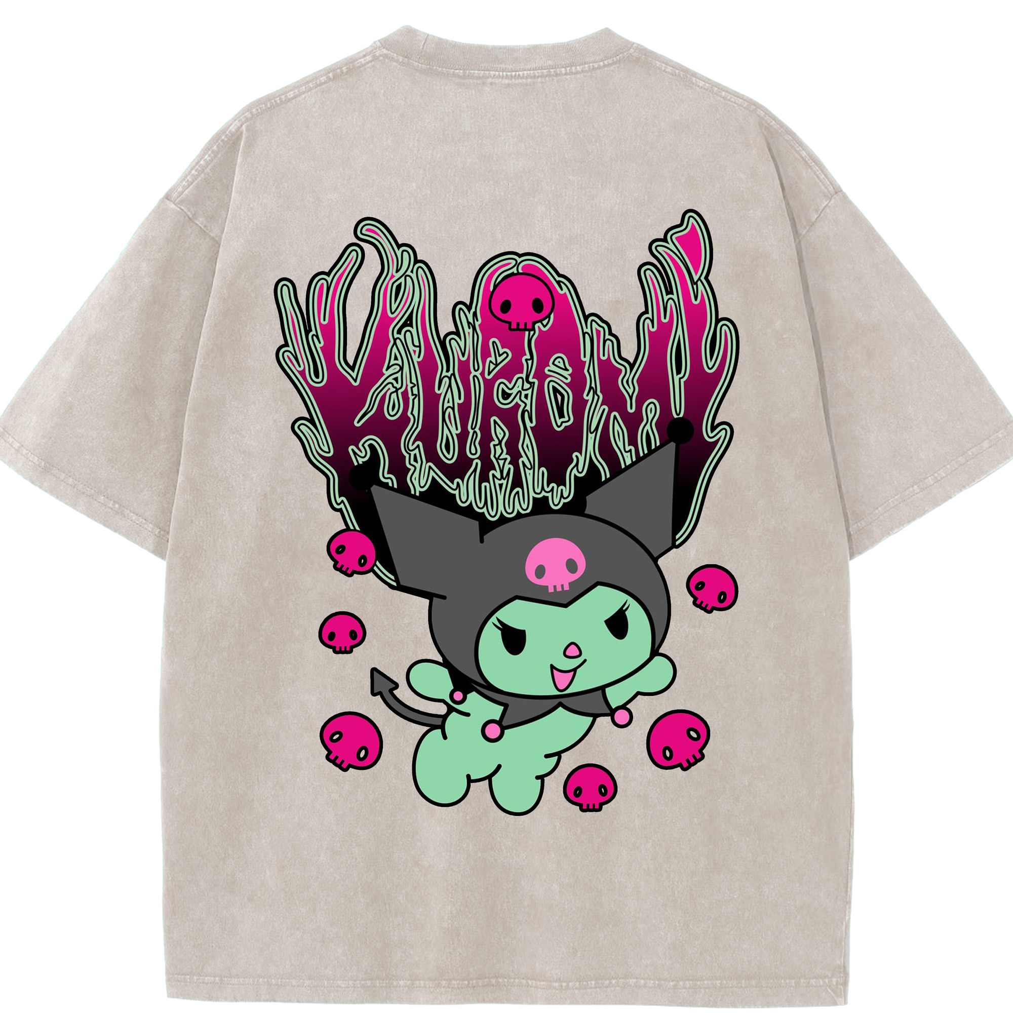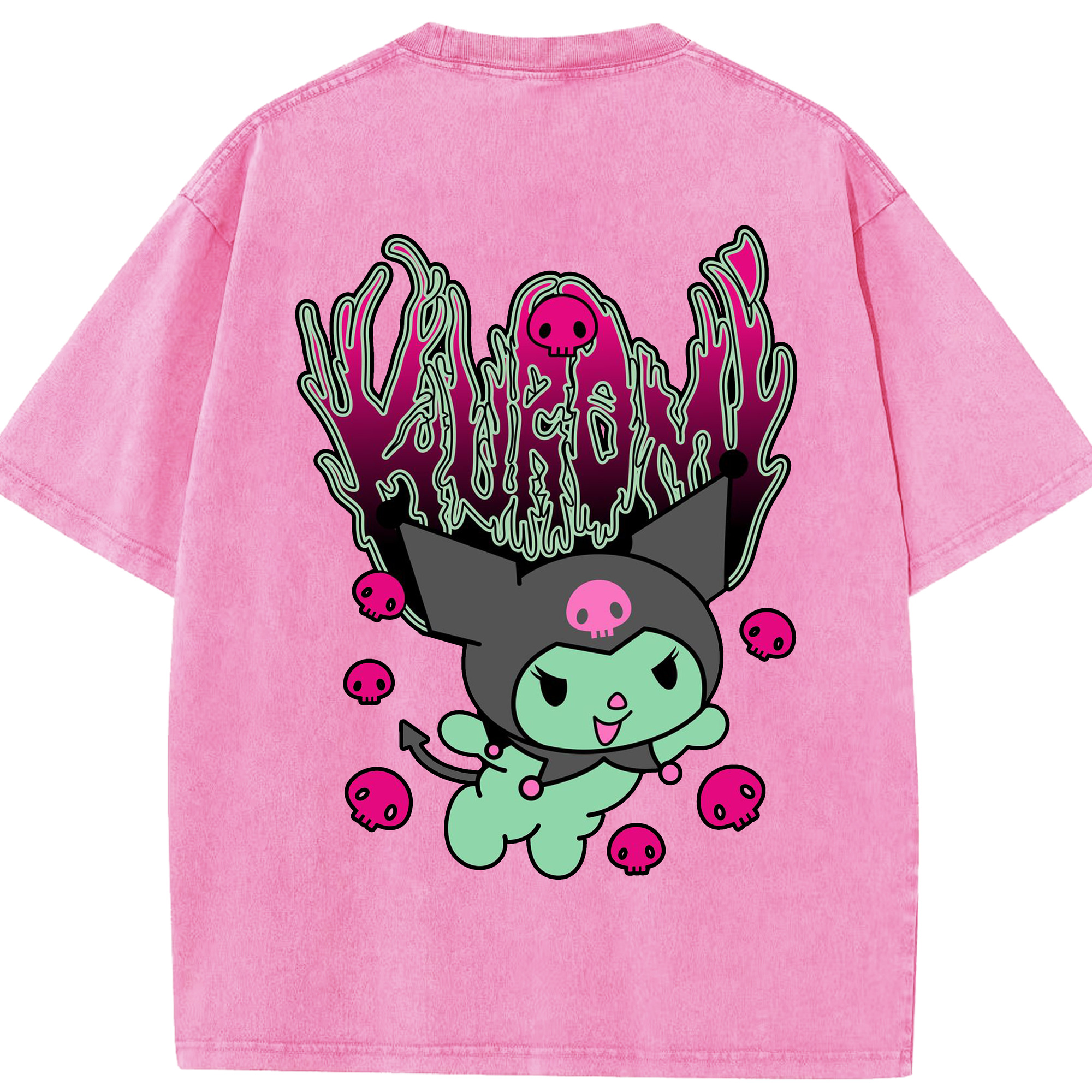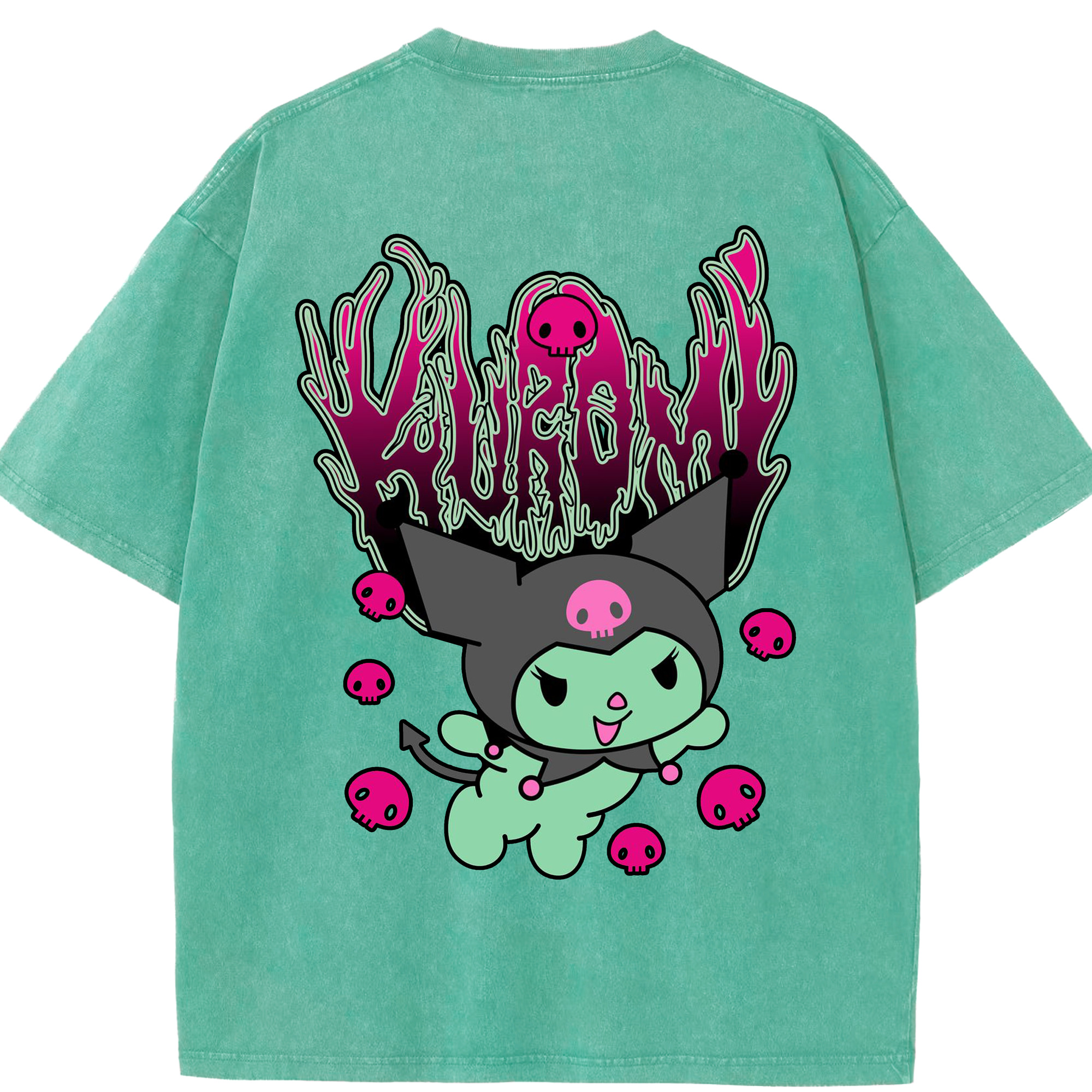 【限定】サンリオマイメロディ × ラブブ コラボ - 綿100% ヴィンテージ風 半袖Tシャツ ・ 背面プリント ・ 柔らか肌触り ・ 通気性 快適 ・ スポーツ カジュアル 外出用