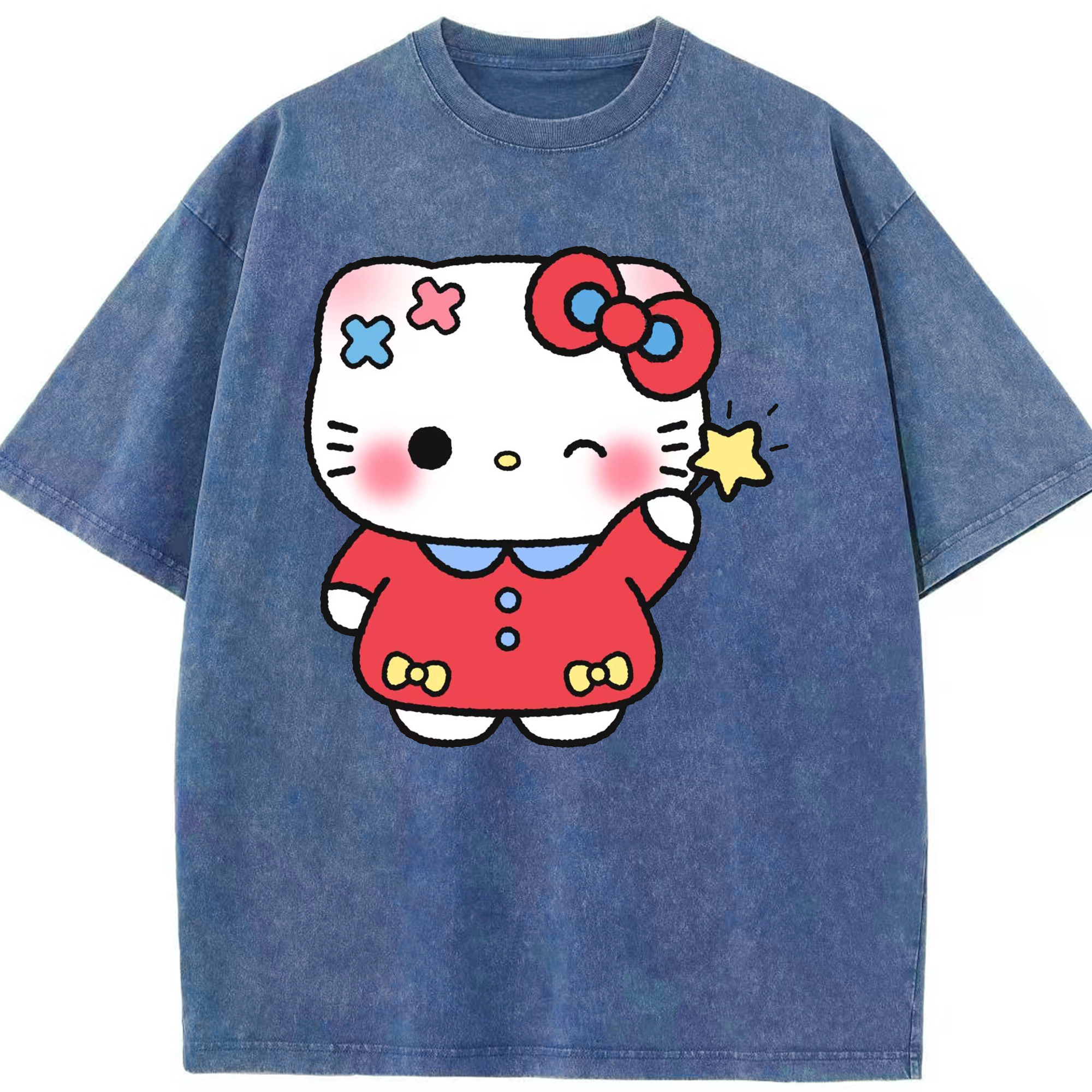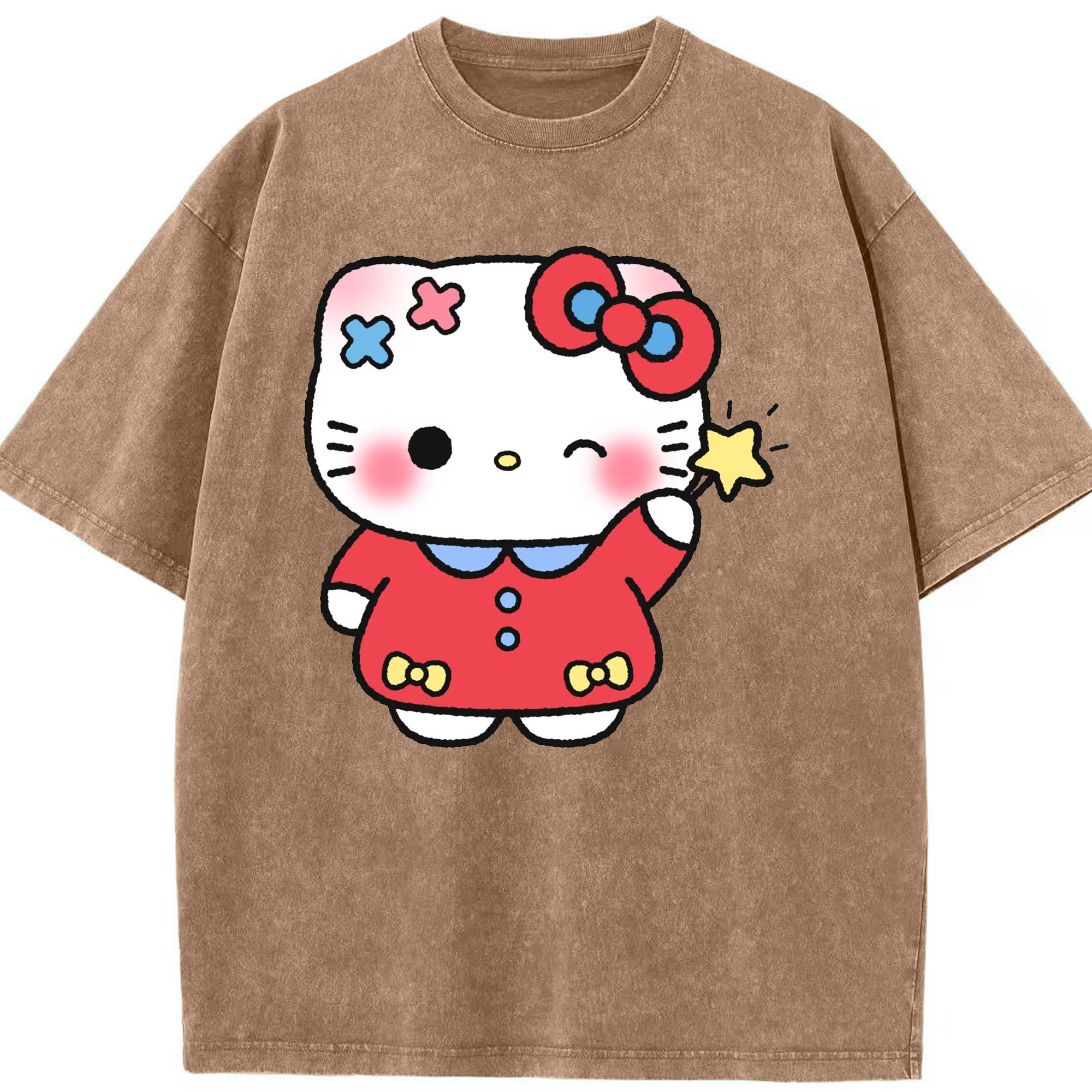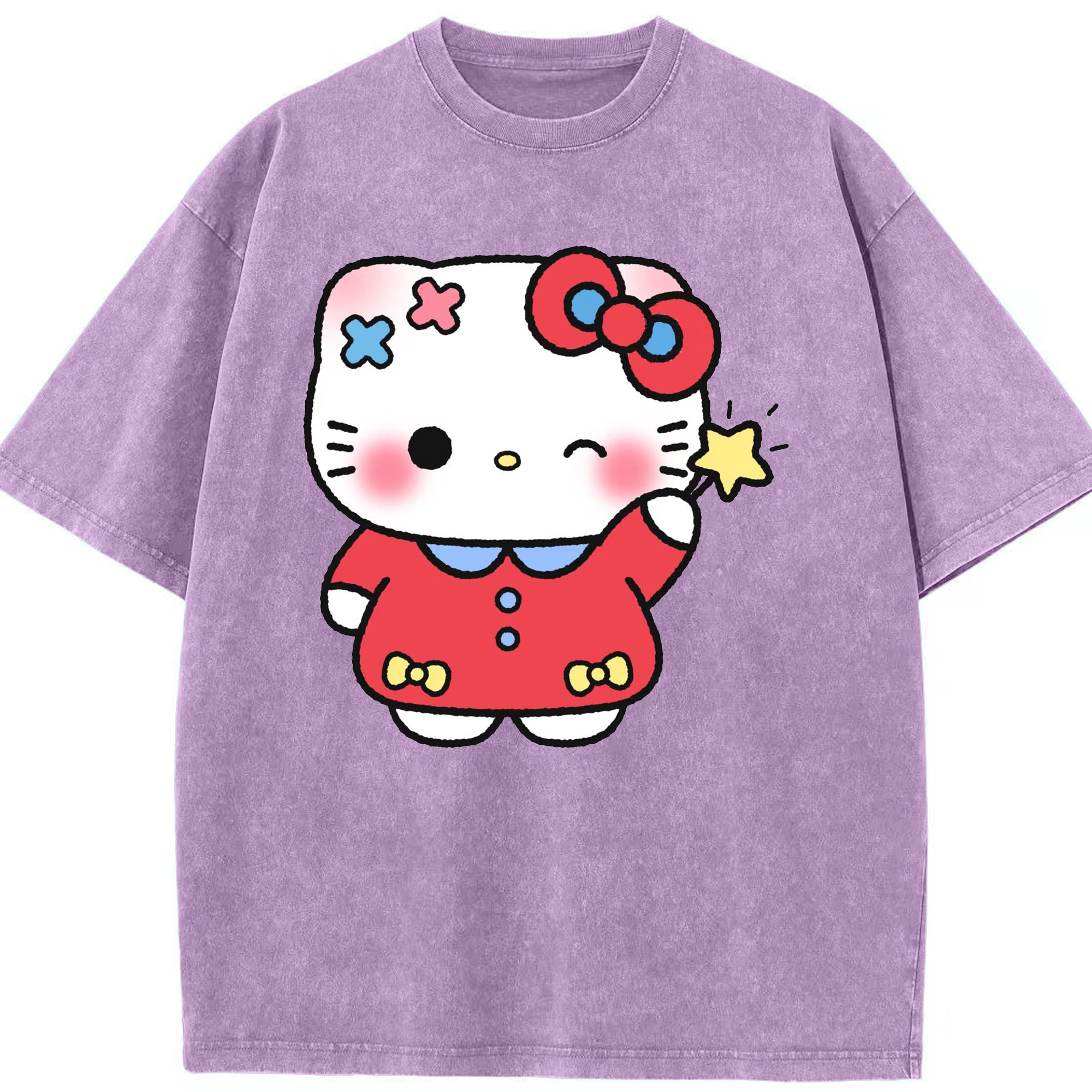 遊び心満載のハローキティ - 綿100% ヴィンテージ風 半袖Tシャツ ・ フロントプリント ・ 柔らか肌触り ・ 通気性 快適 ・ スポーツ カジュアル 外出用