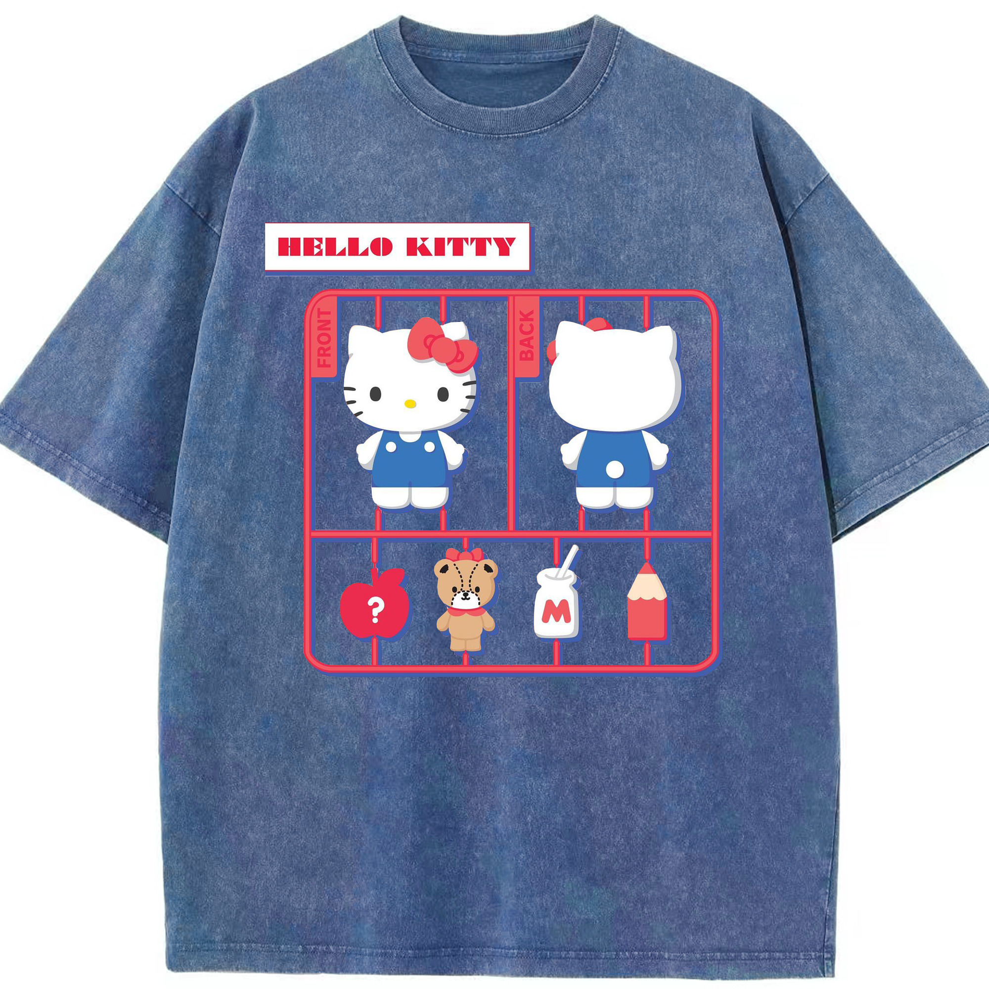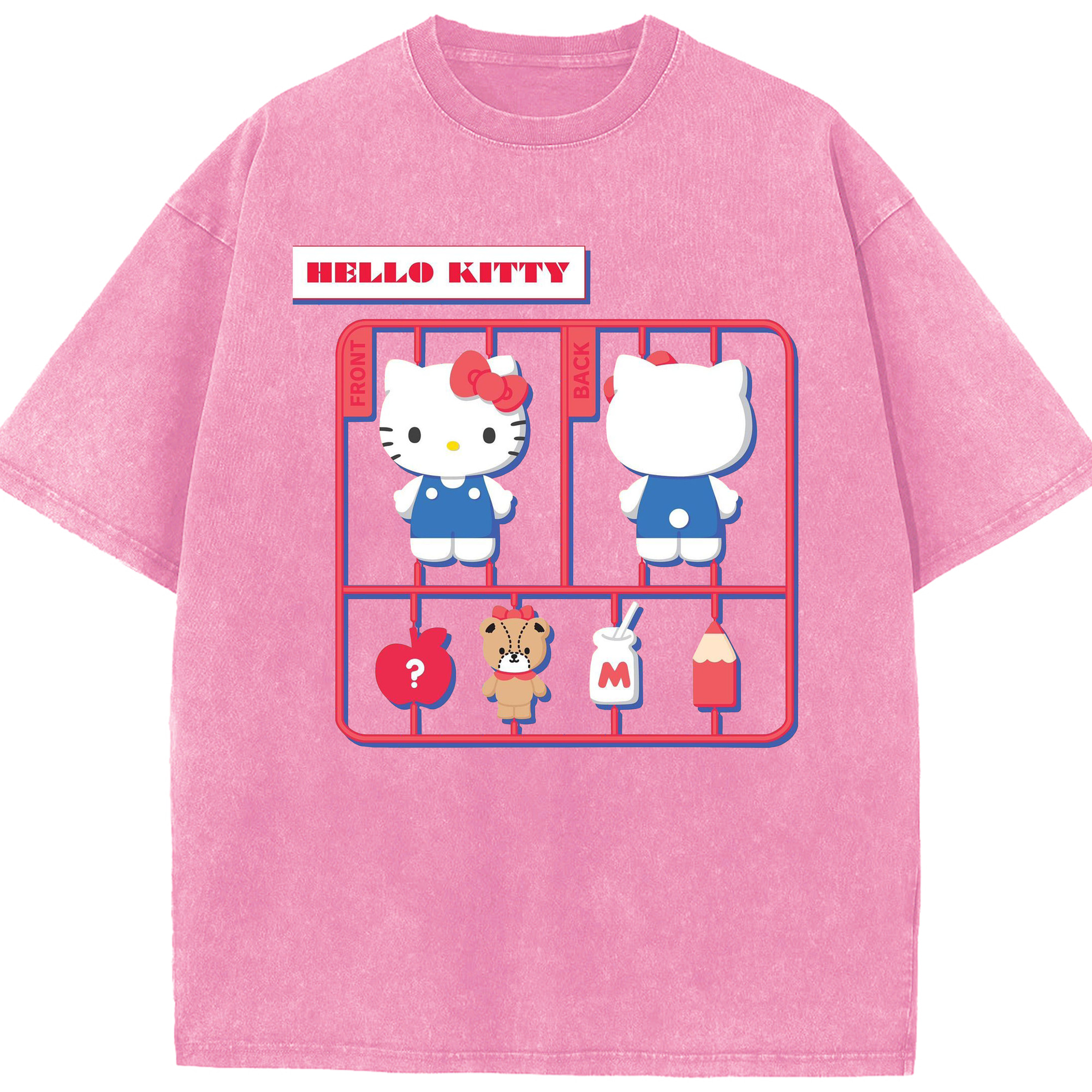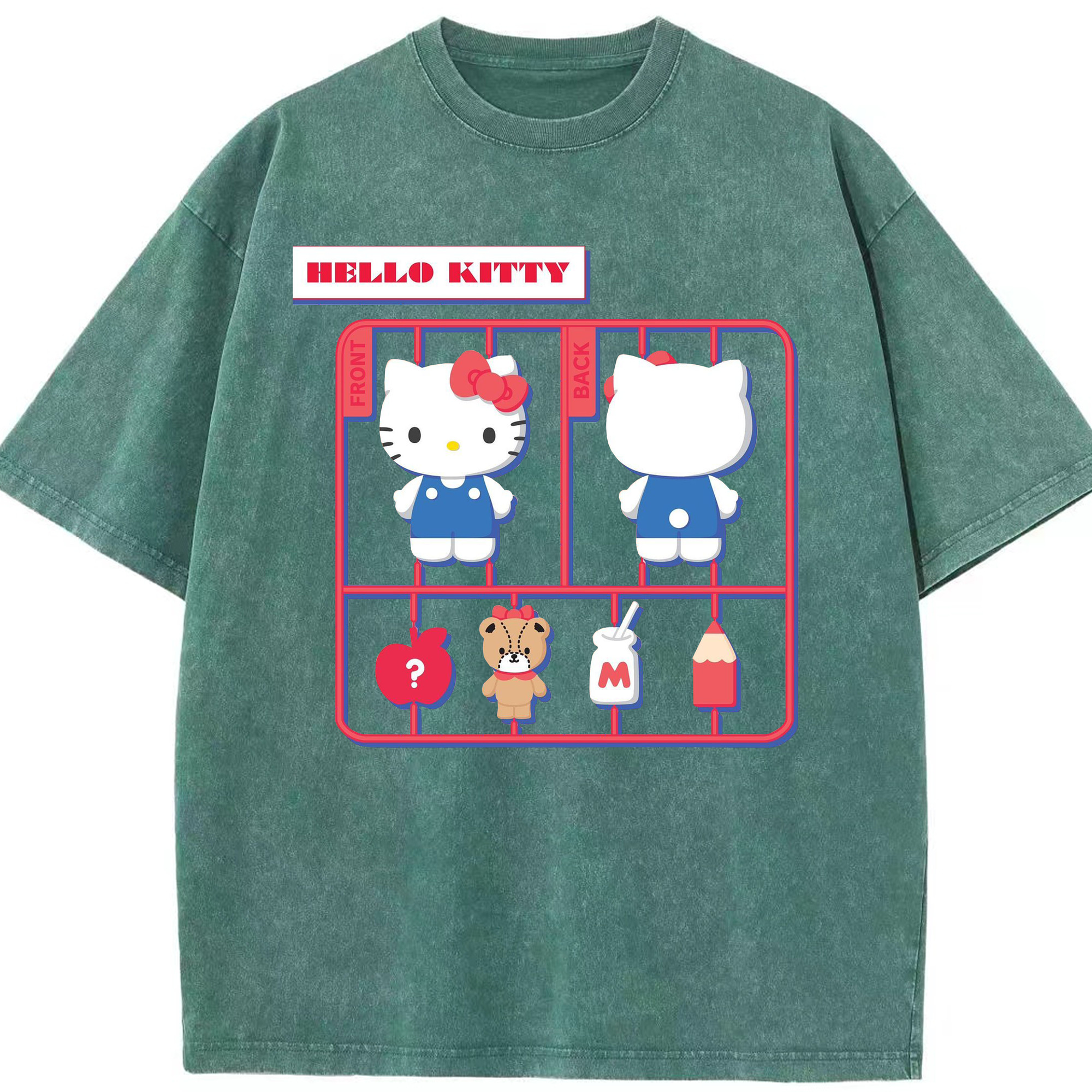 遊び心満載のハローキティ - 綿100% ヴィンテージ風 半袖Tシャツ ・ 背面プリント ・ 柔らか肌触り ・ 通気性 快適 ・ スポーツ カジュアル 外出用