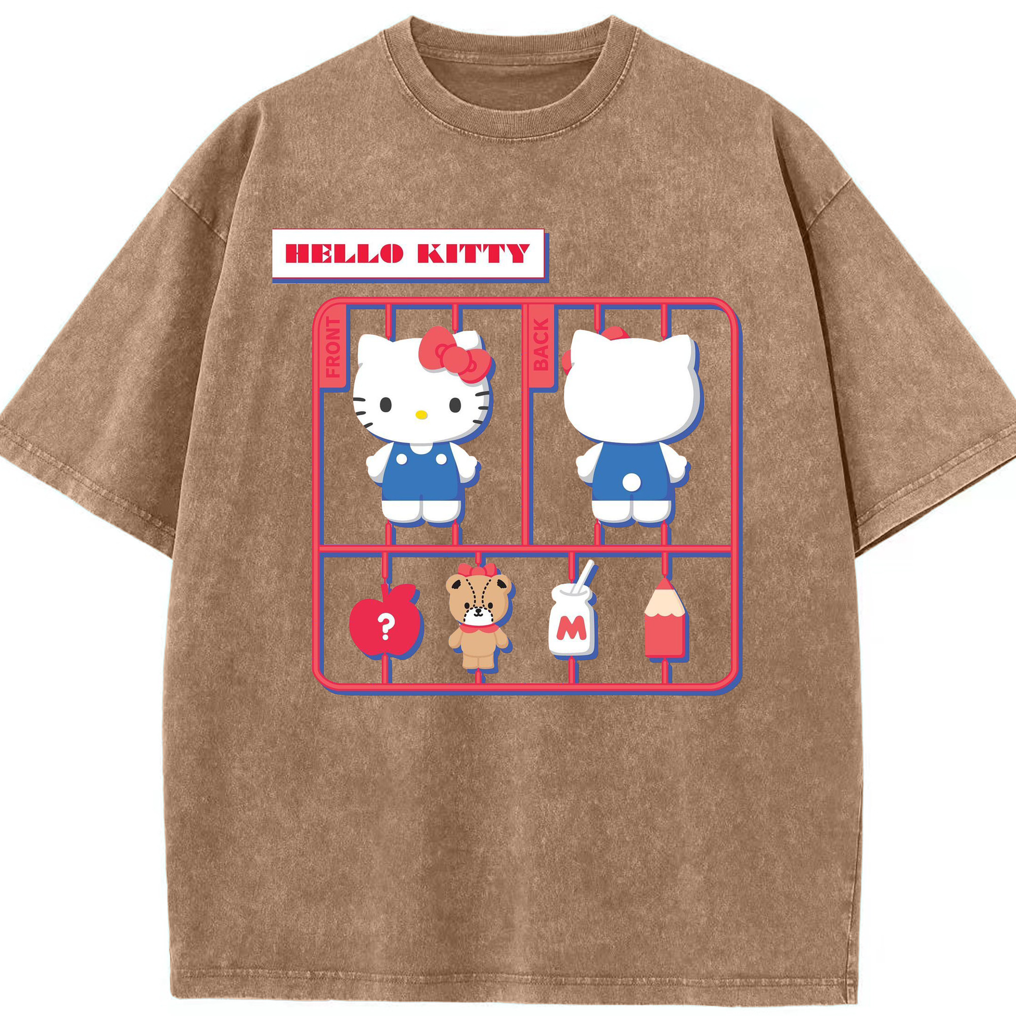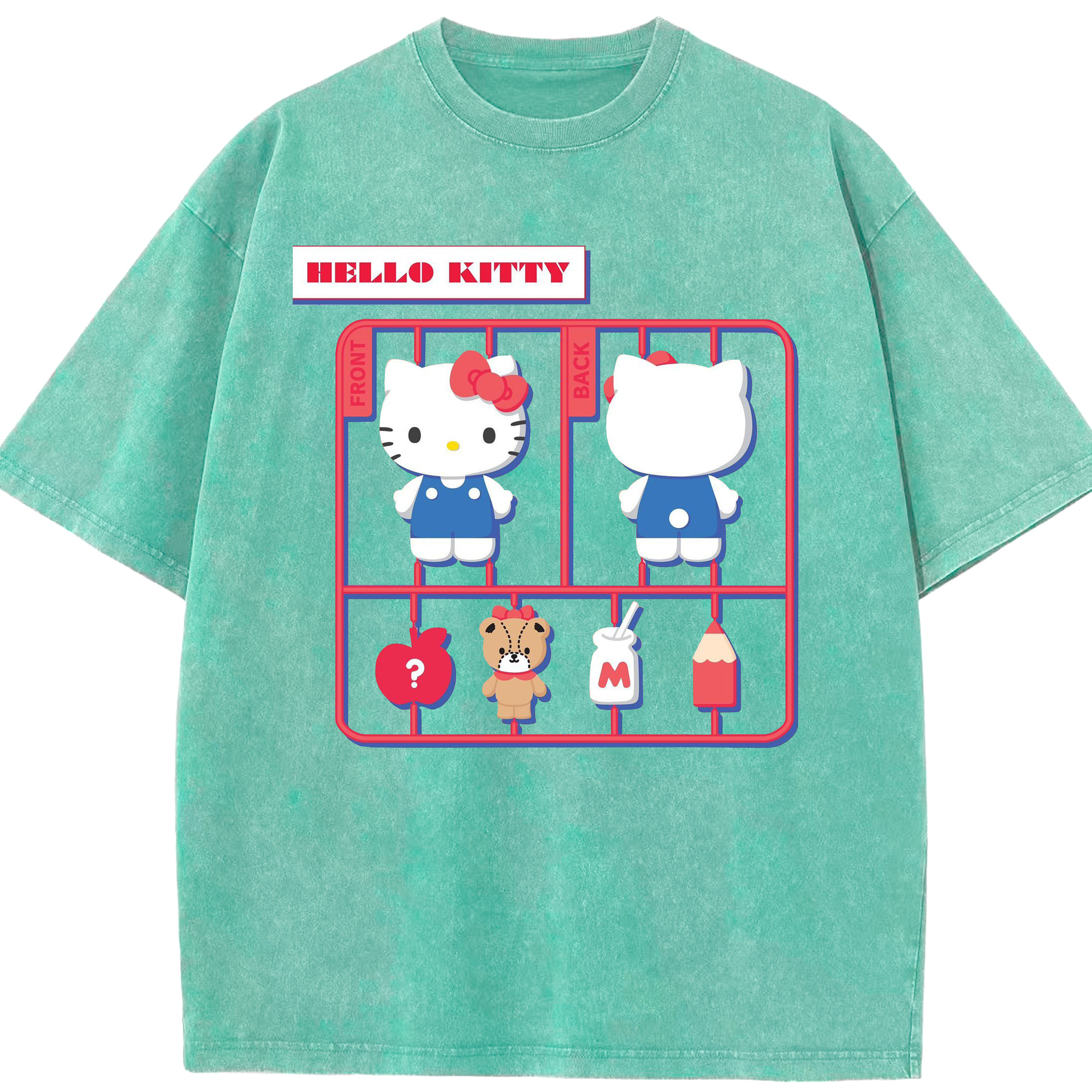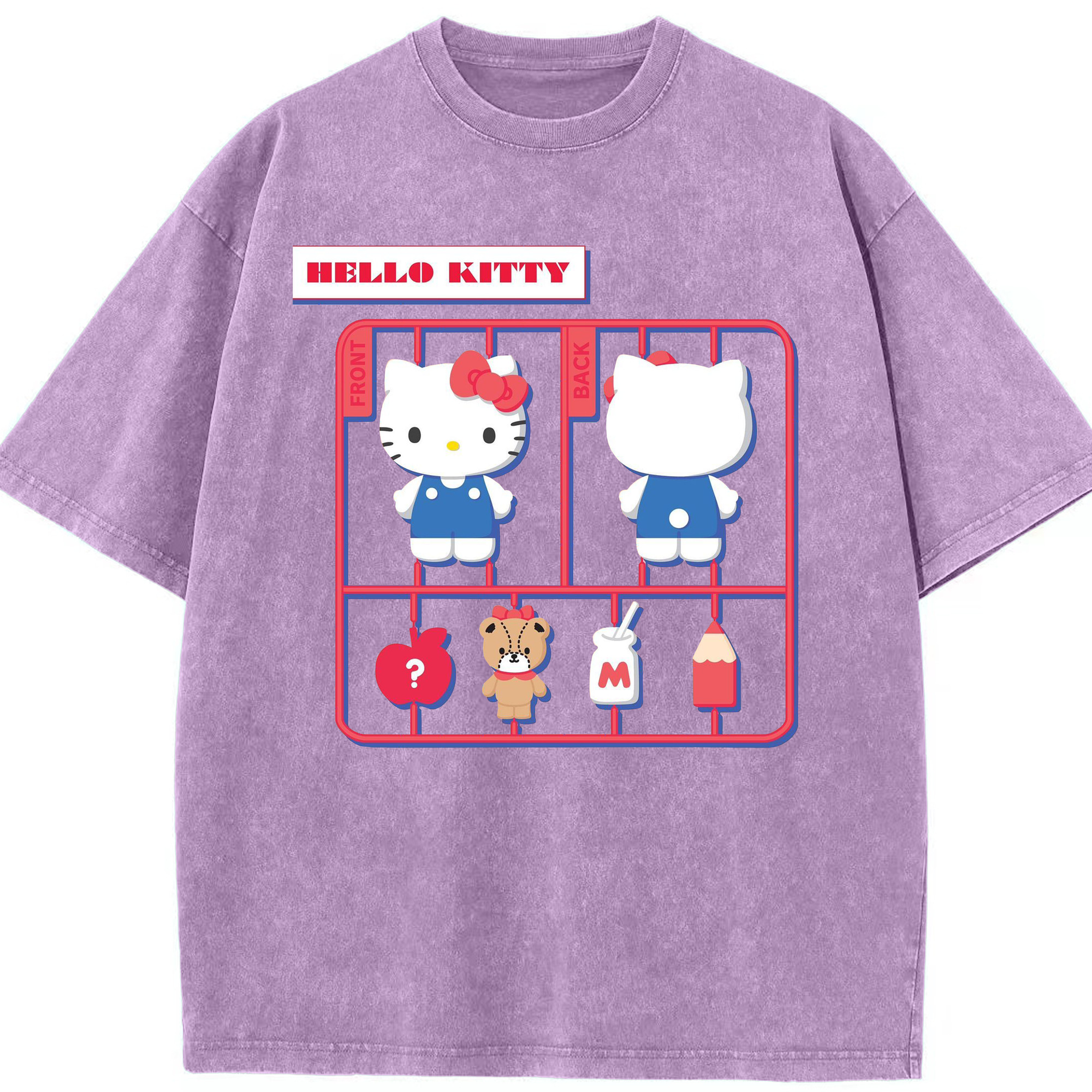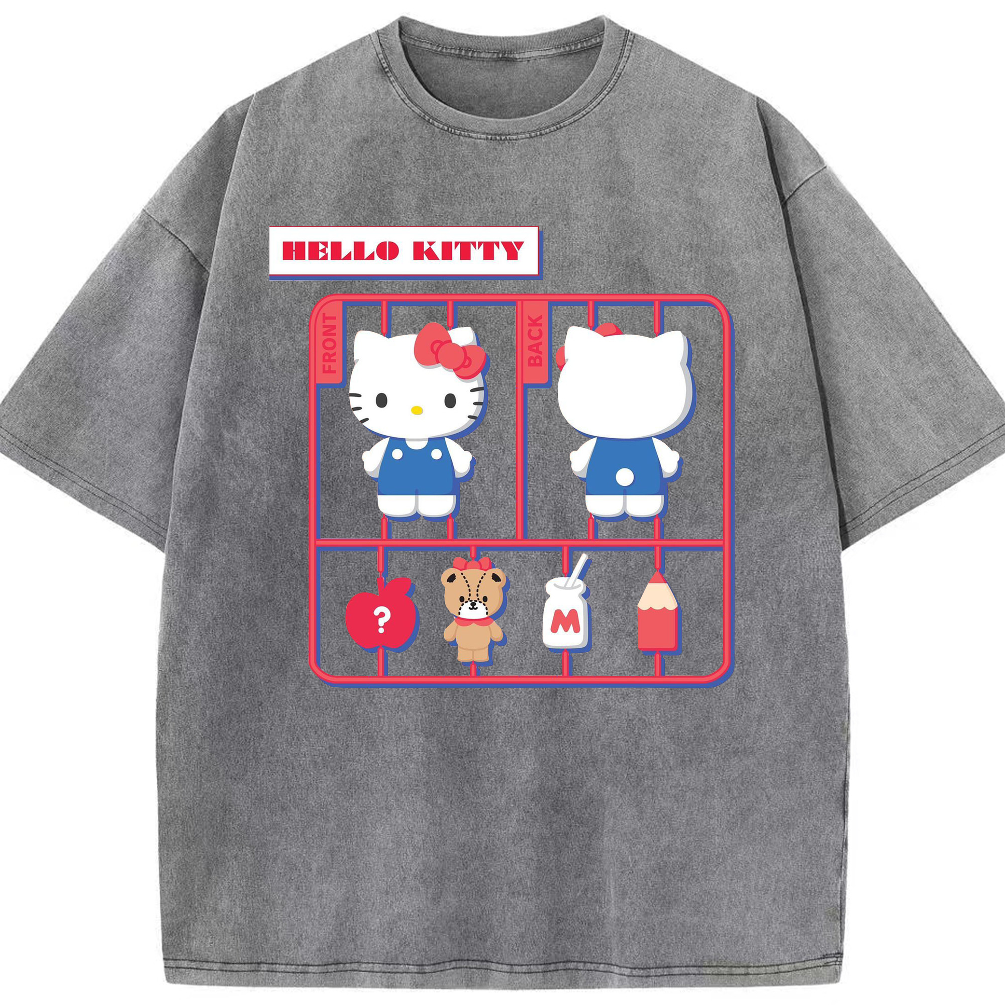 遊び心満載のハローキティ - 綿100% ヴィンテージ風 半袖Tシャツ ・ 背面プリント ・ 柔らか肌触り ・ 通気性 快適 ・ スポーツ カジュアル 外出用