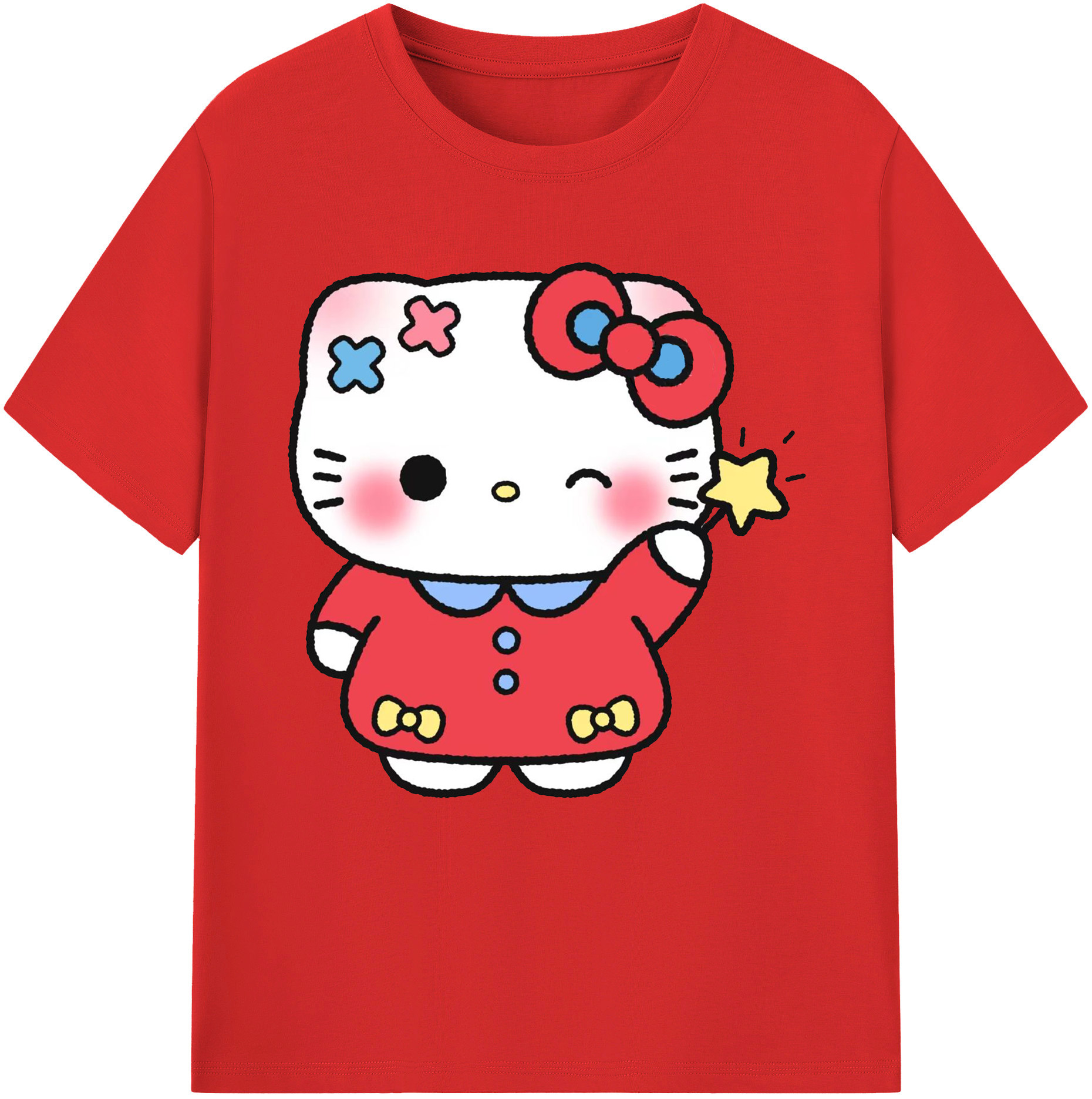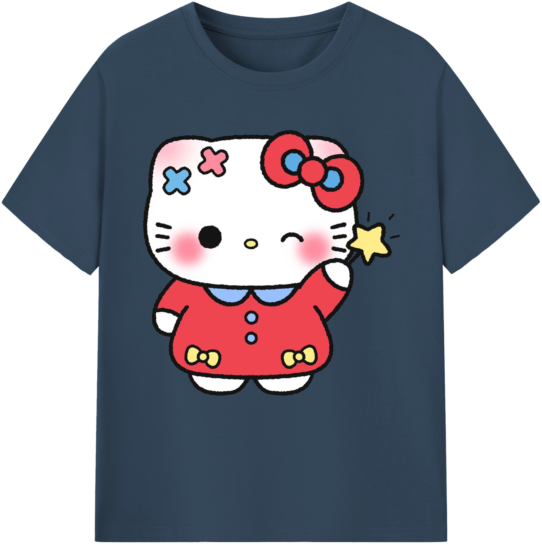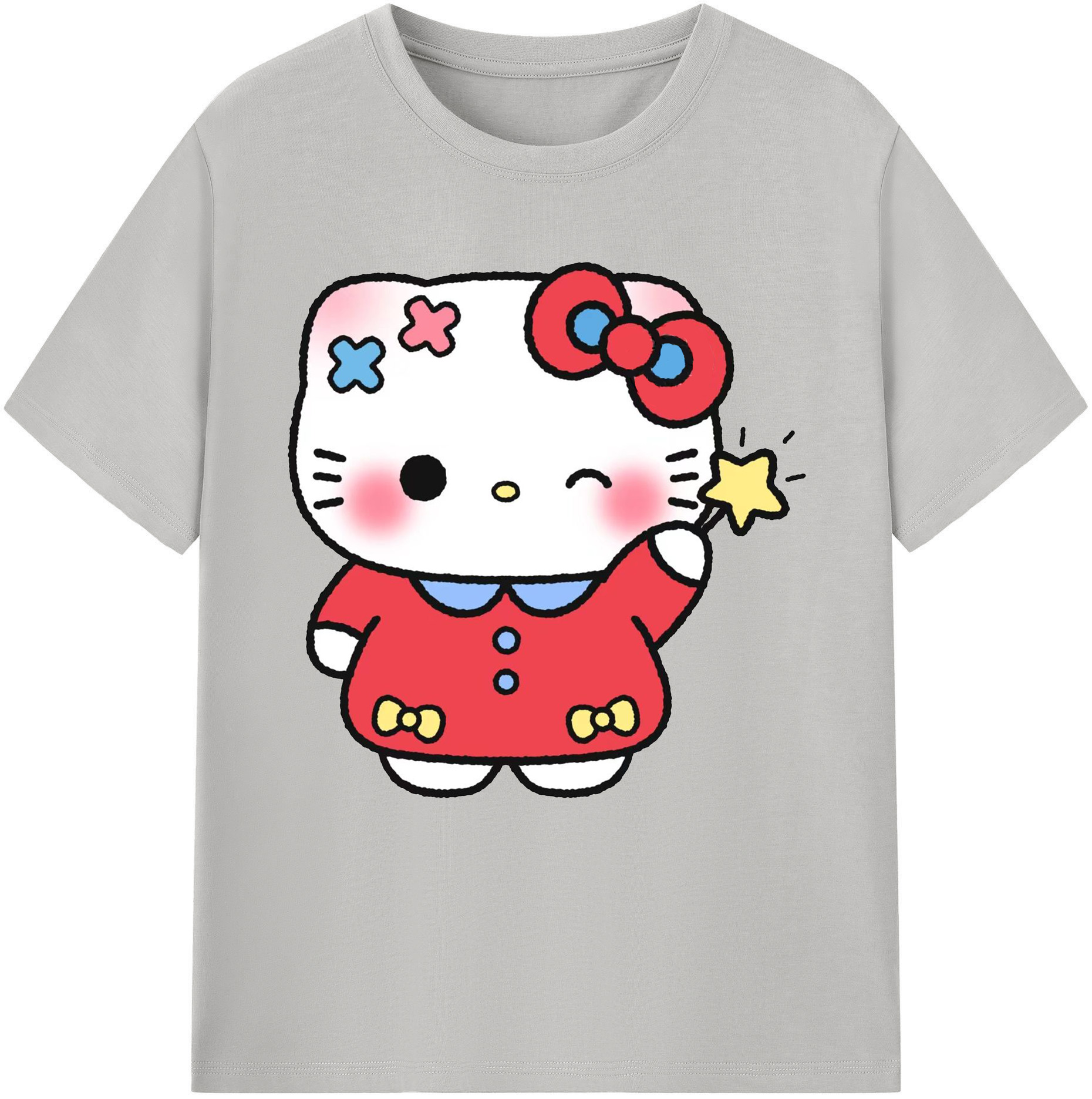 遊び心満載のハローキティ - レディースカジュアルプリントTシャツ ・ 綿100% ・ クルーネック ・ フロントプリント ・ 柔らかく快適 ・ フィットネス カジュアル 旅行用
