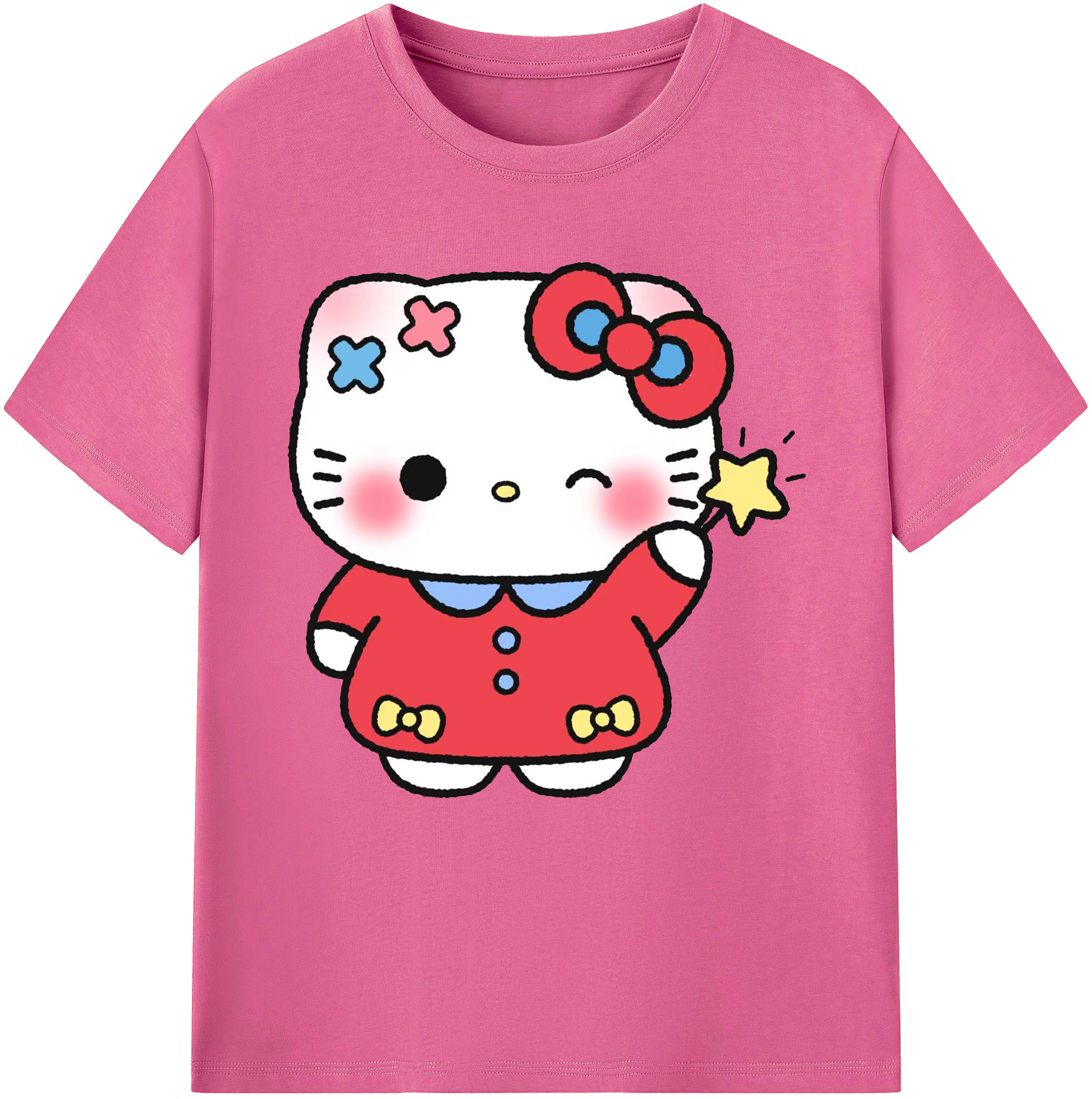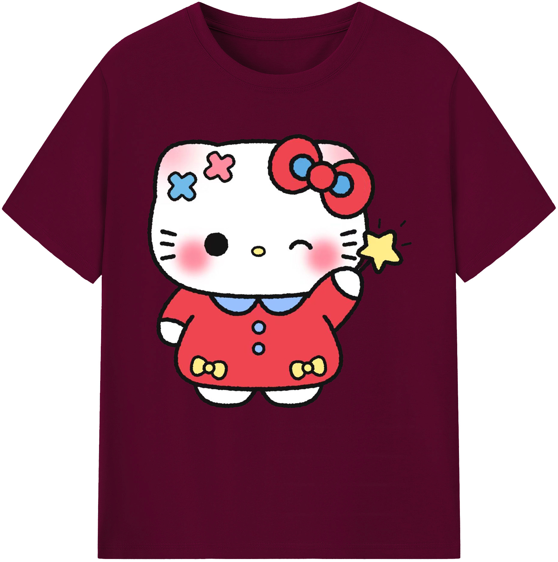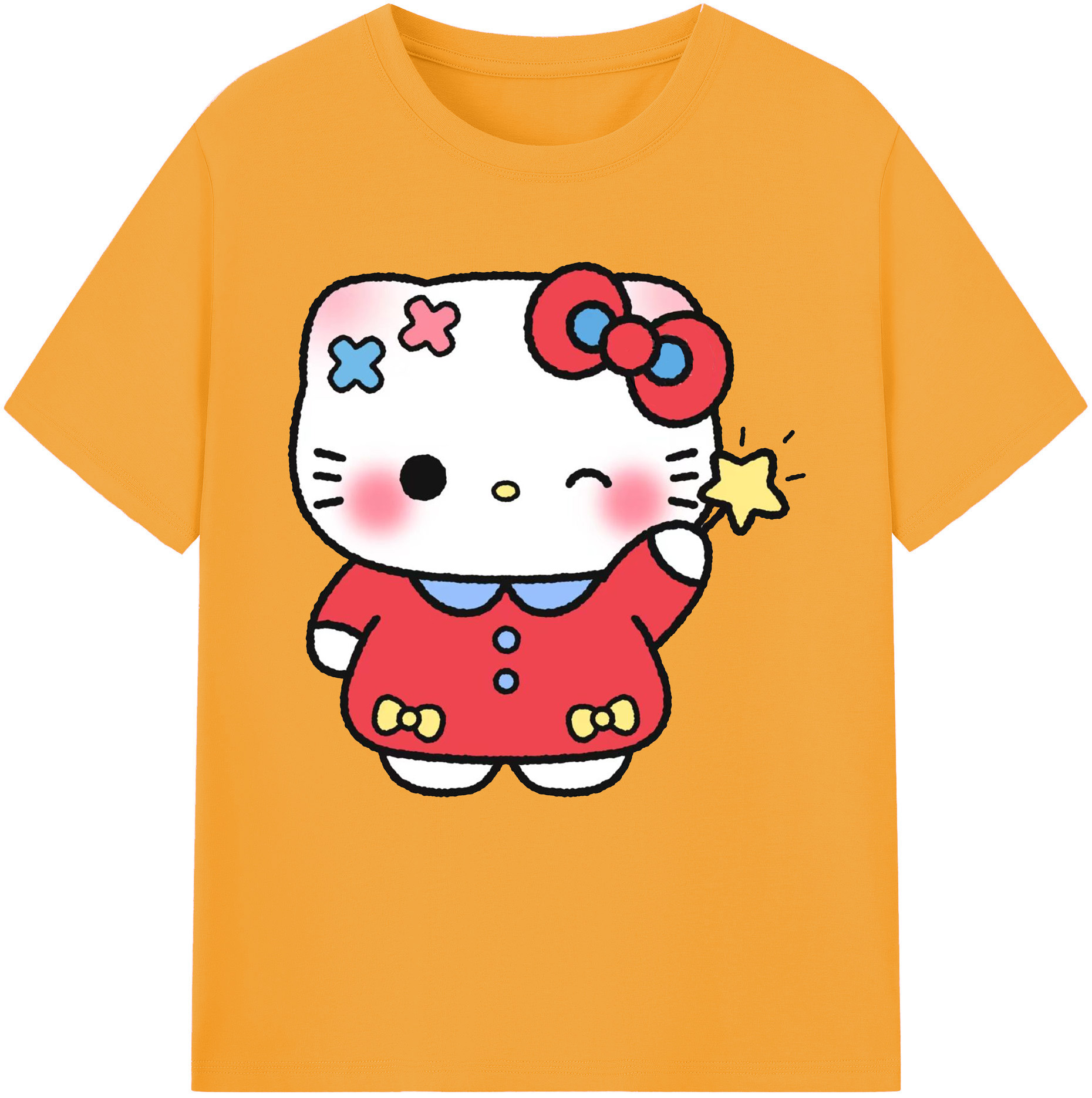遊び心満載のハローキティ - レディースカジュアルプリントTシャツ ・ 綿100% ・ クルーネック ・ フロントプリント ・ 柔らかく快適 ・ フィットネス カジュアル 旅行用